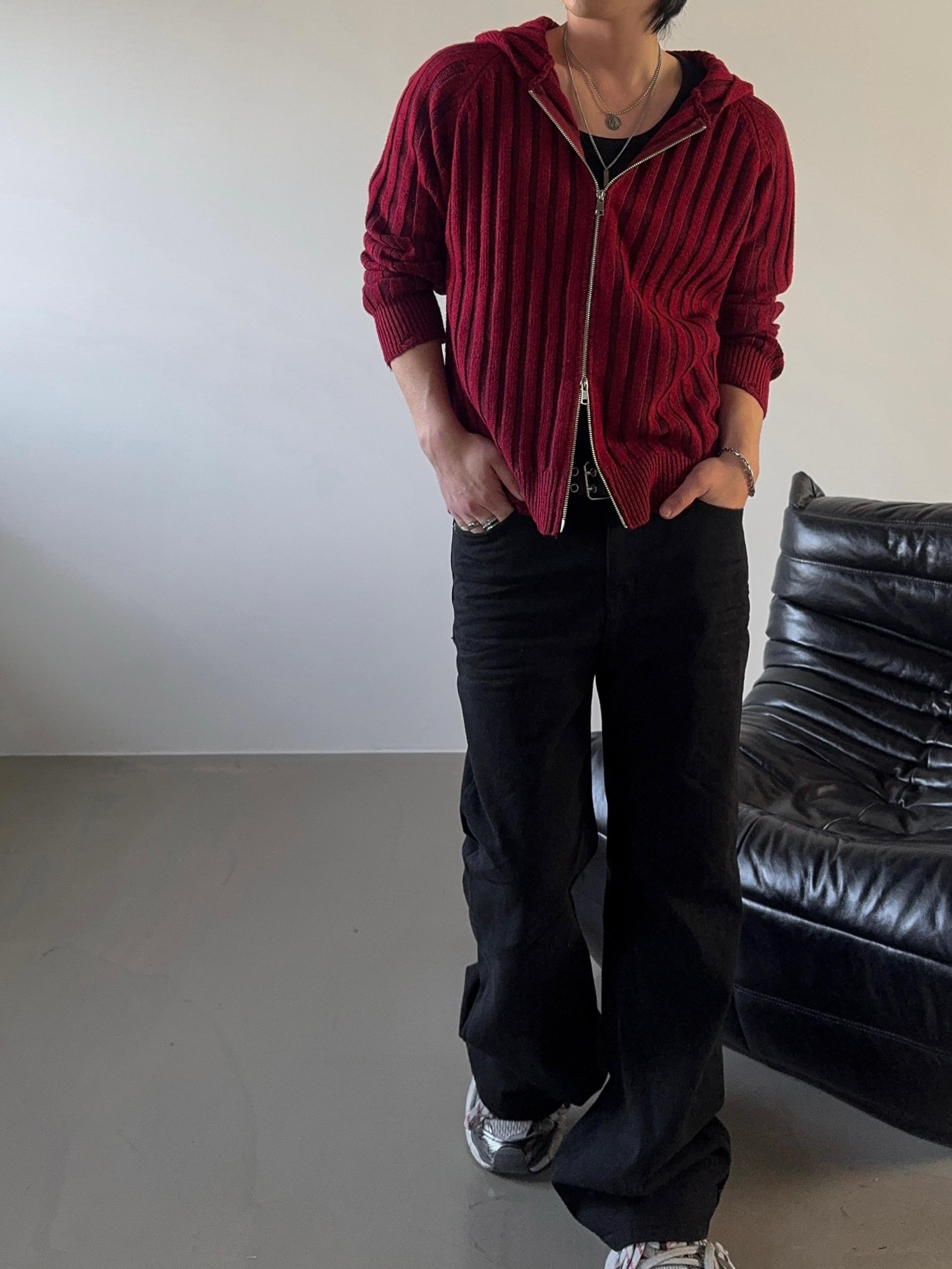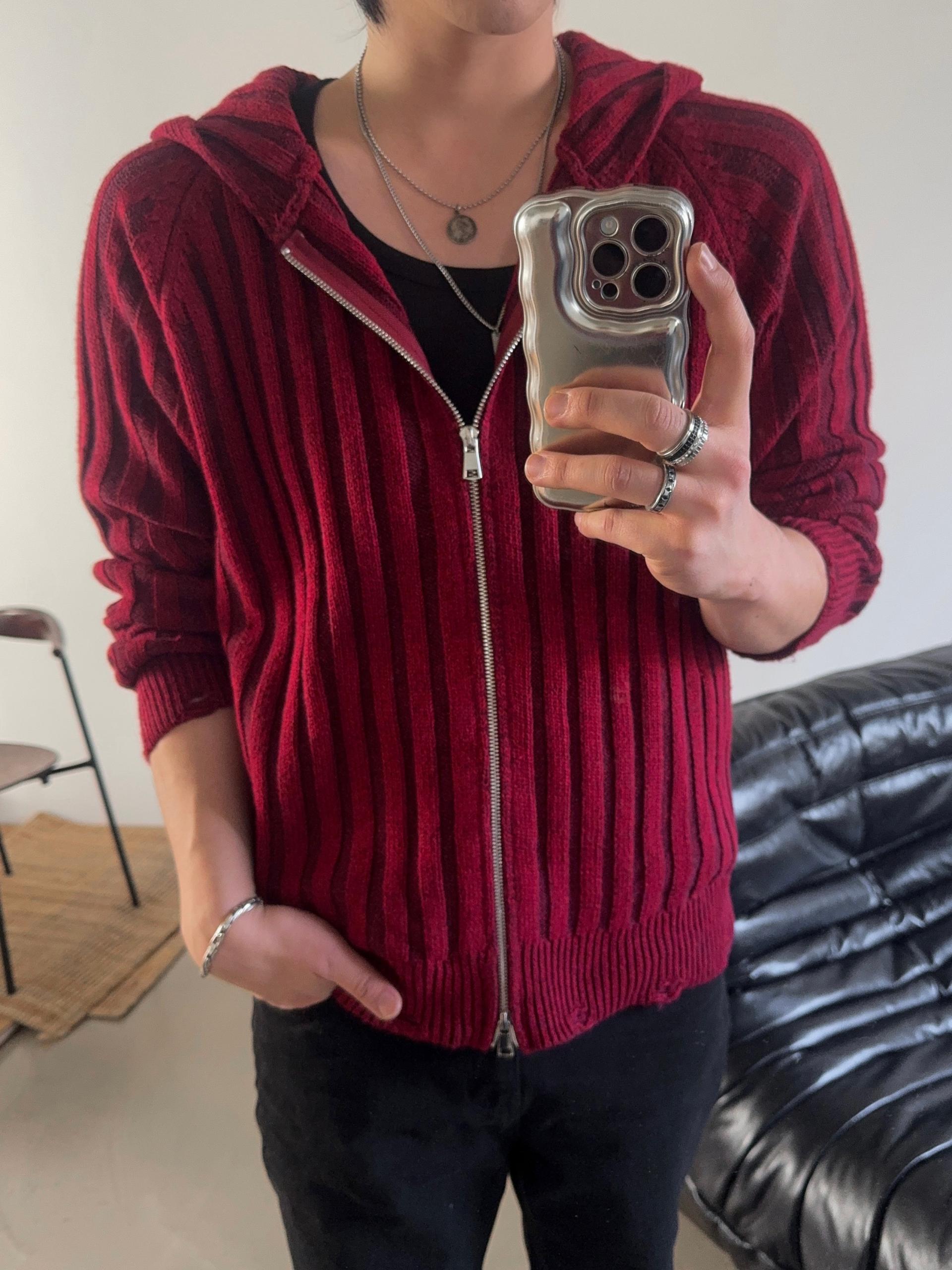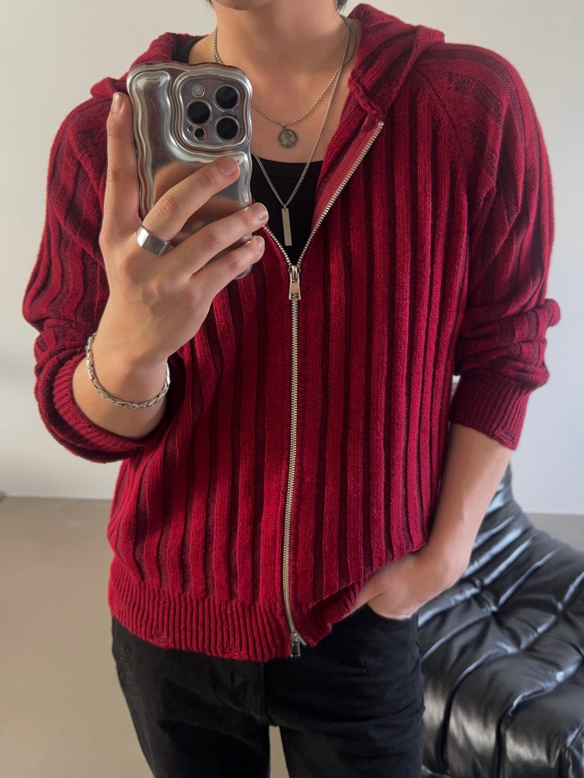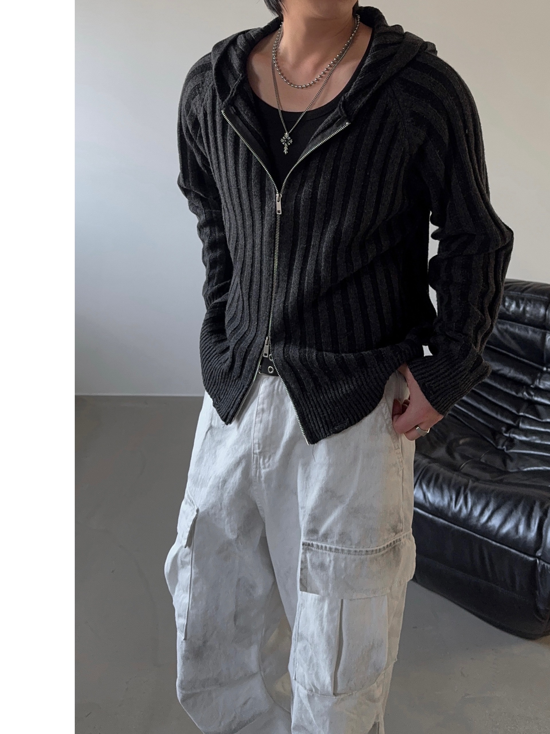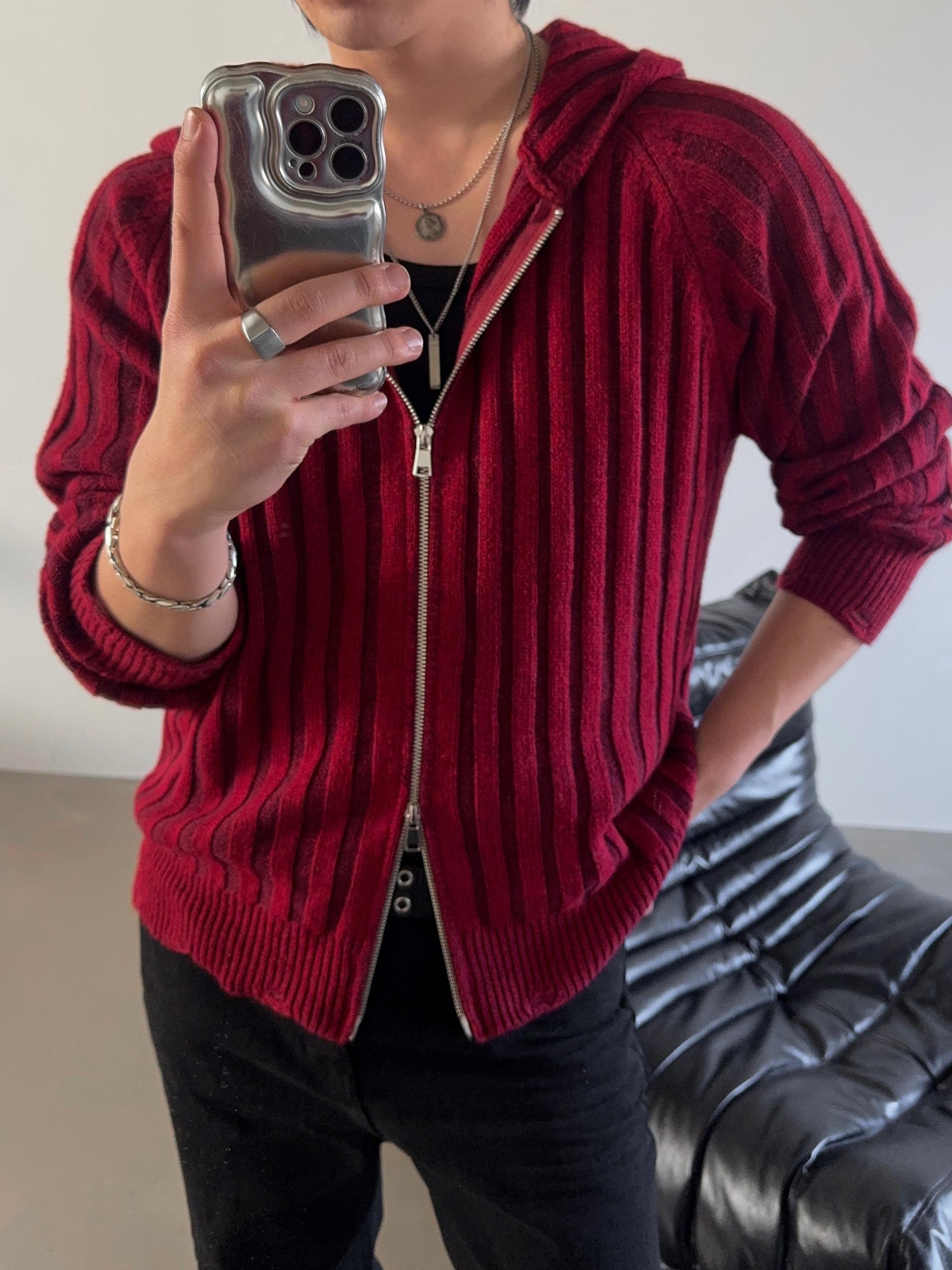 -울 혼방 조직으로 제작된 니트 후드 집업