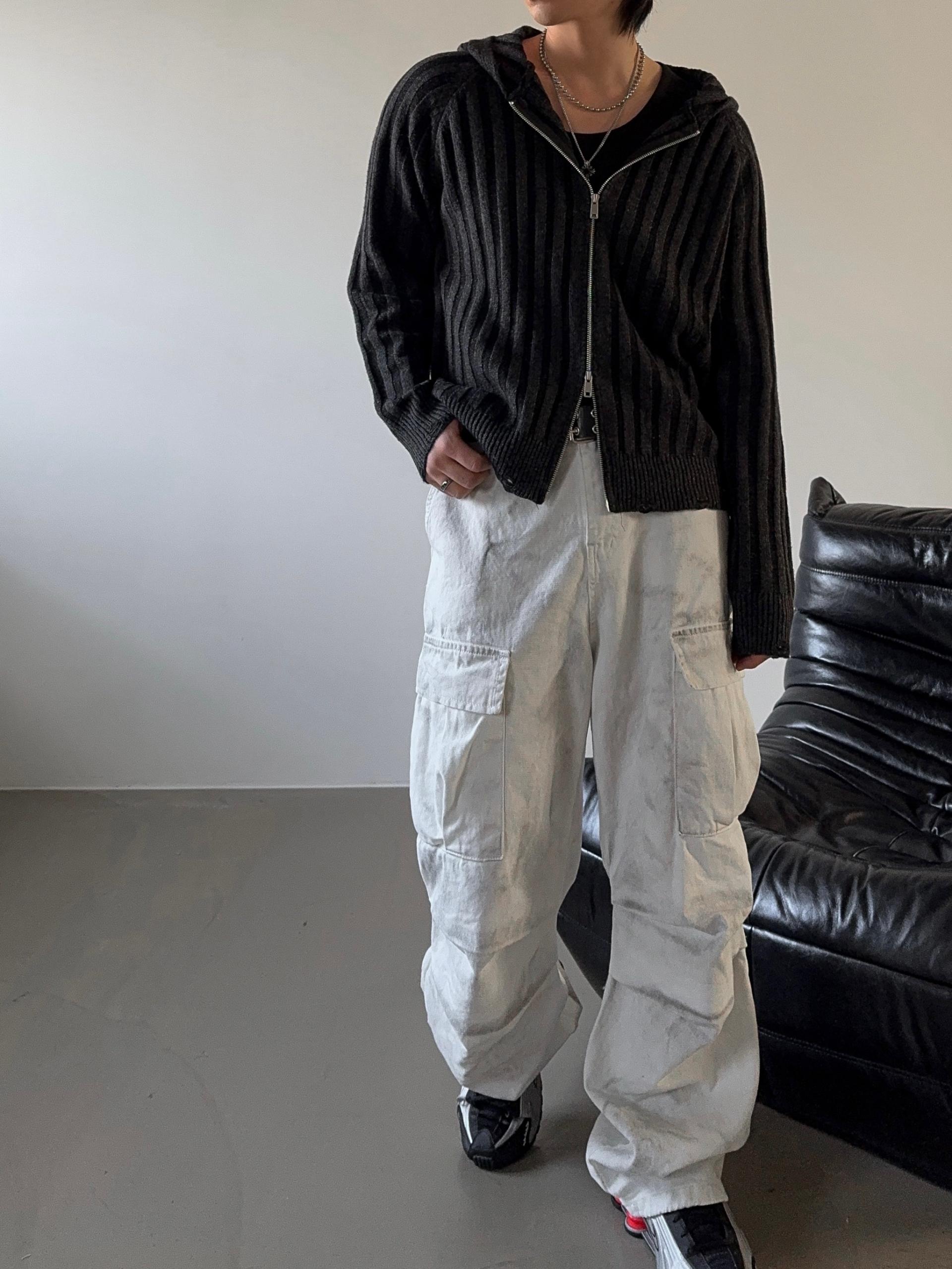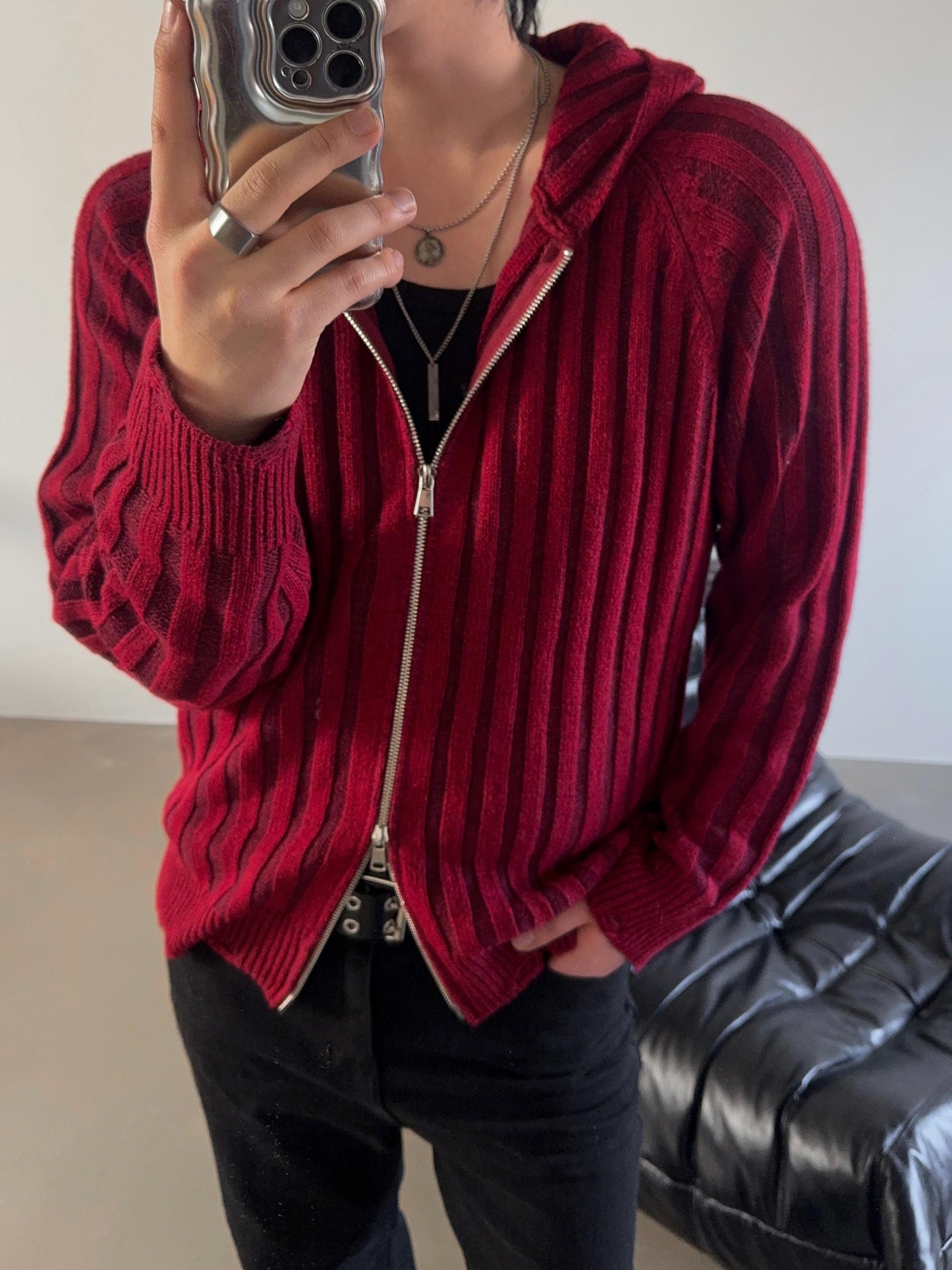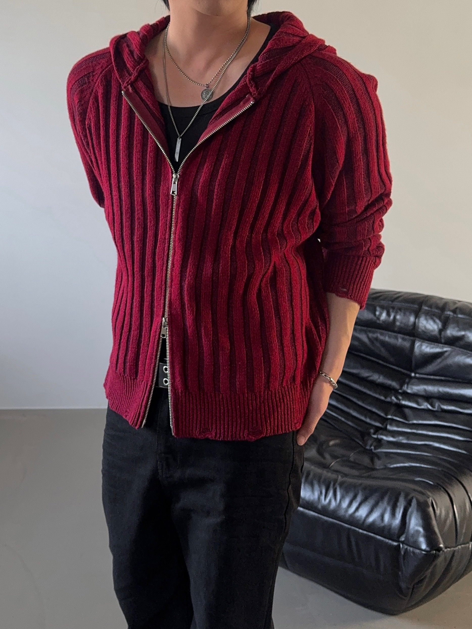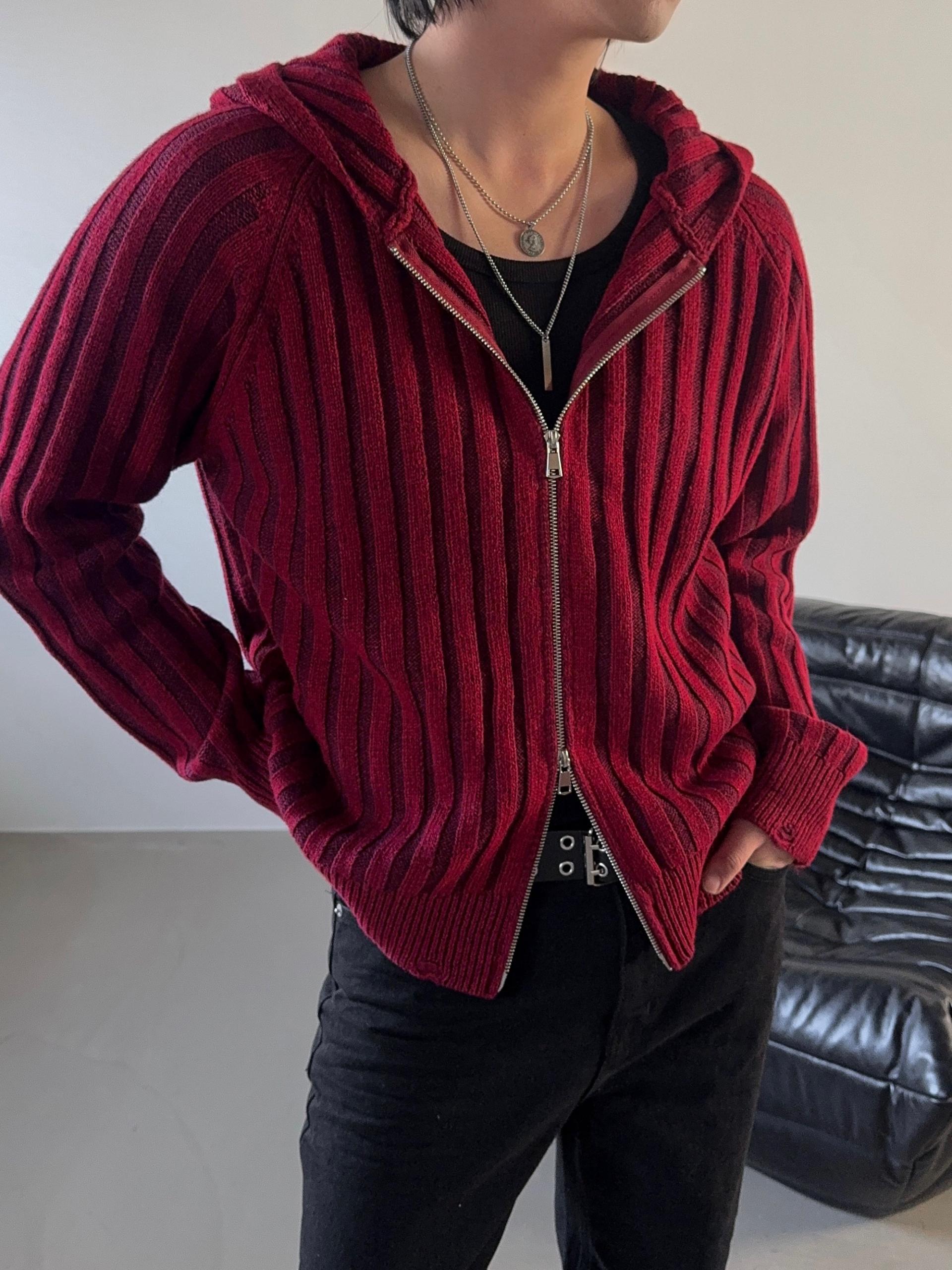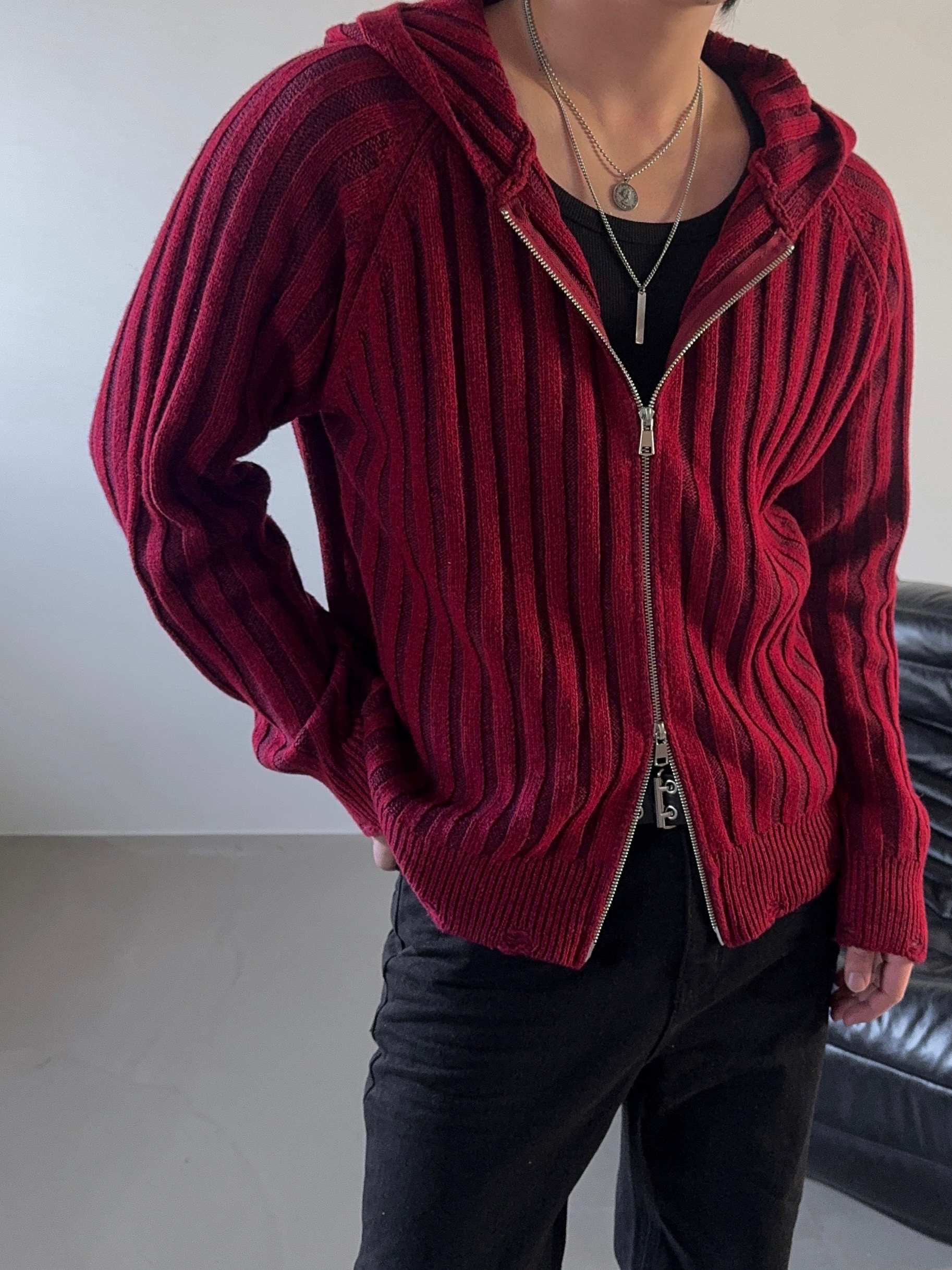 -울 혼방 조직으로 제작된 니트 후드 집업