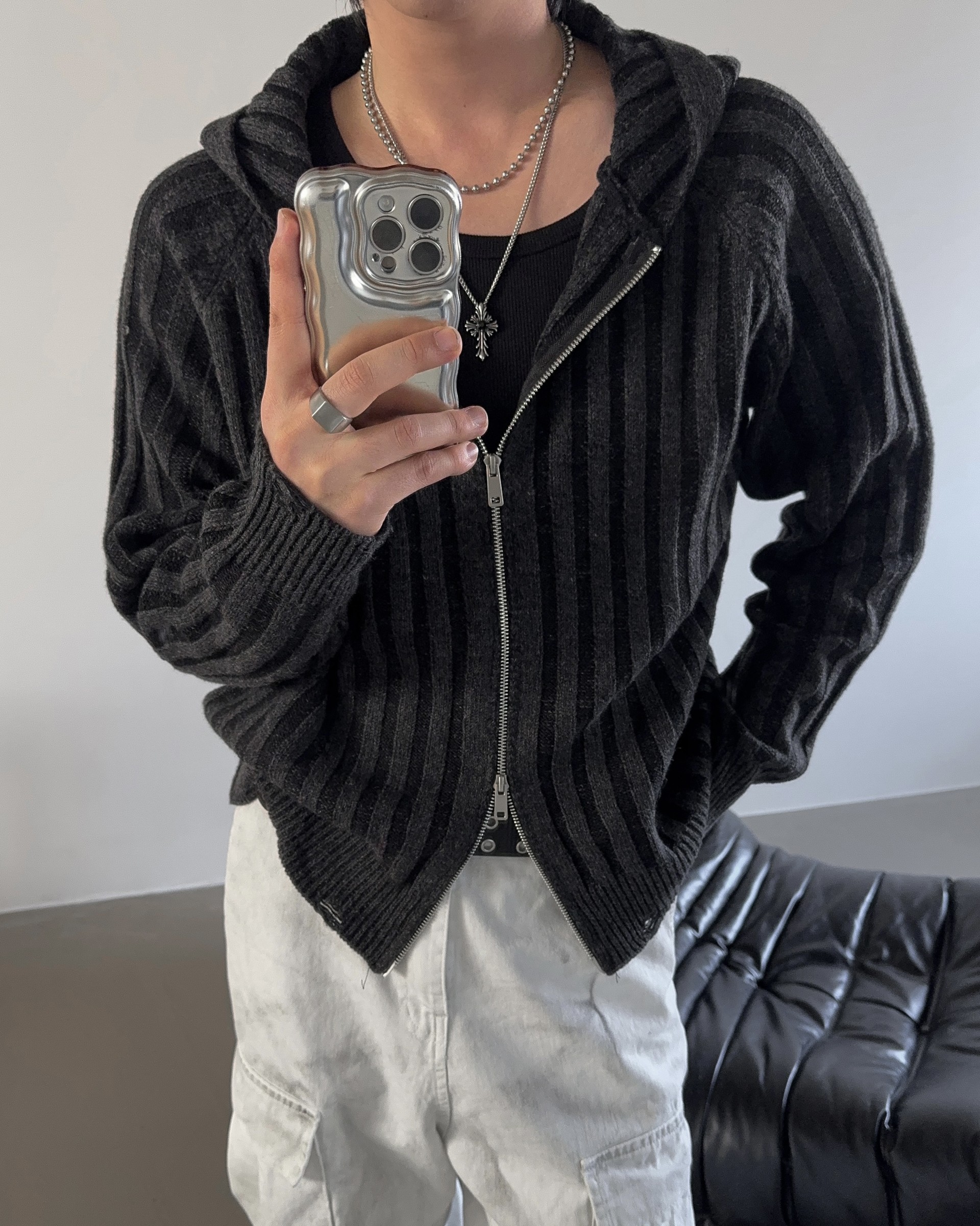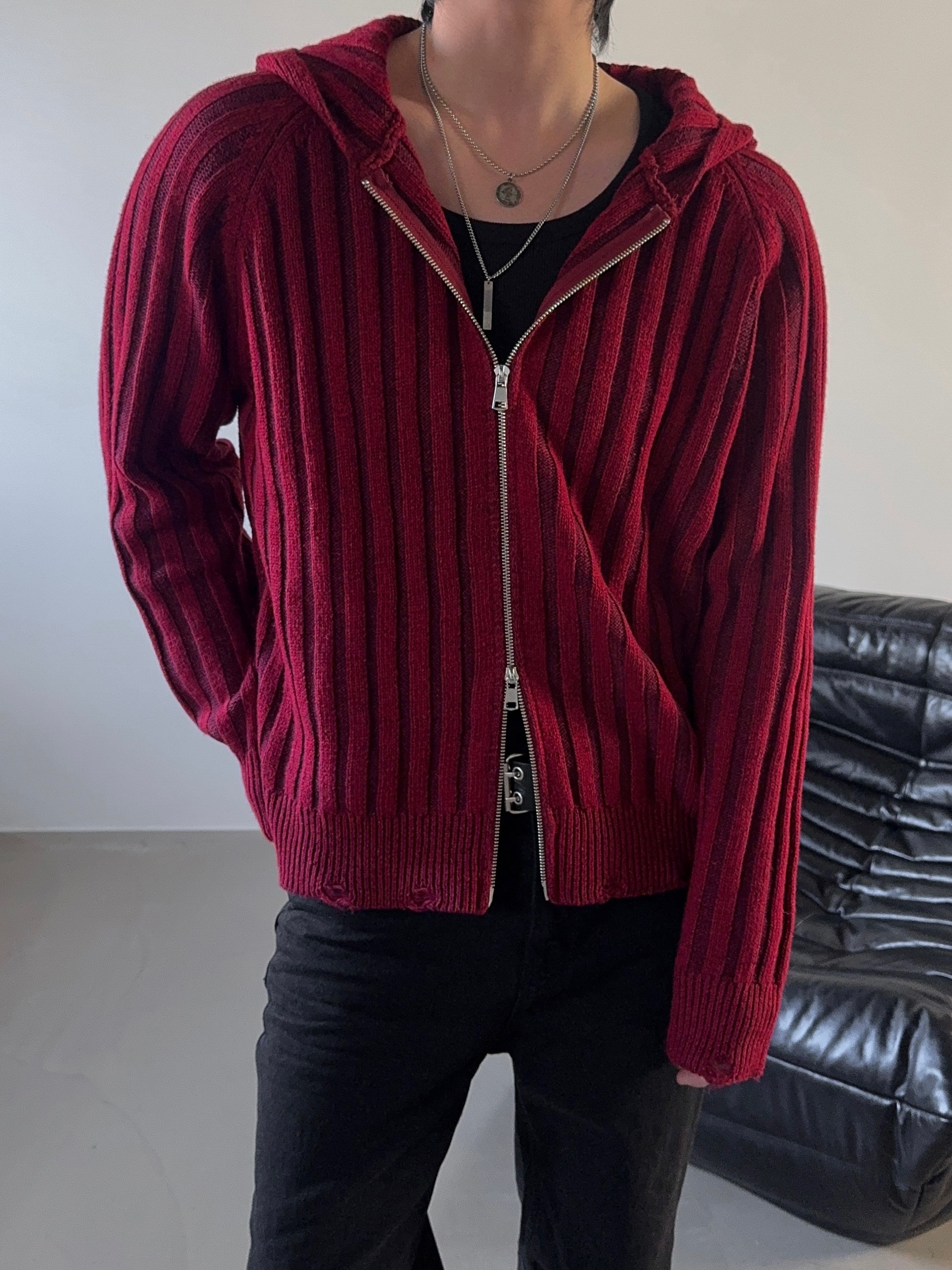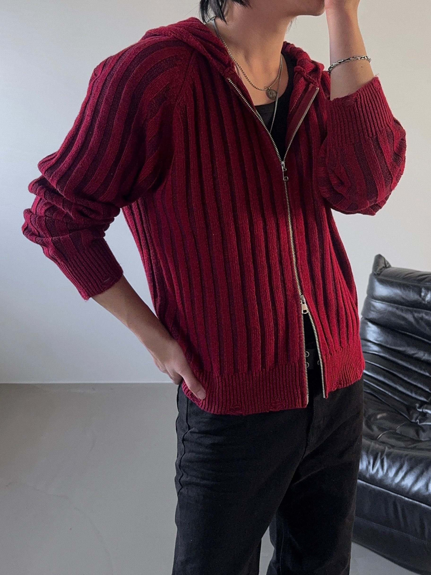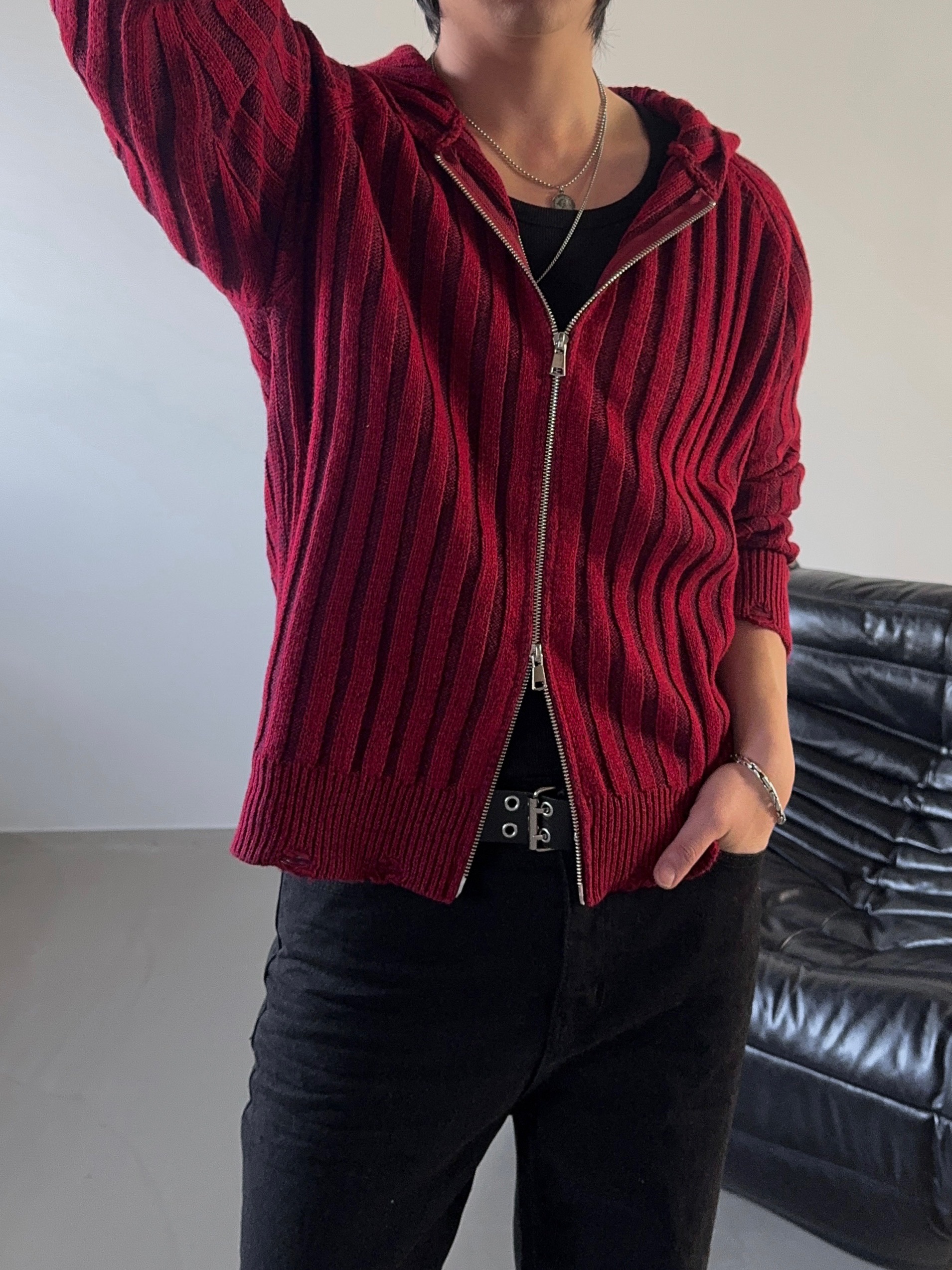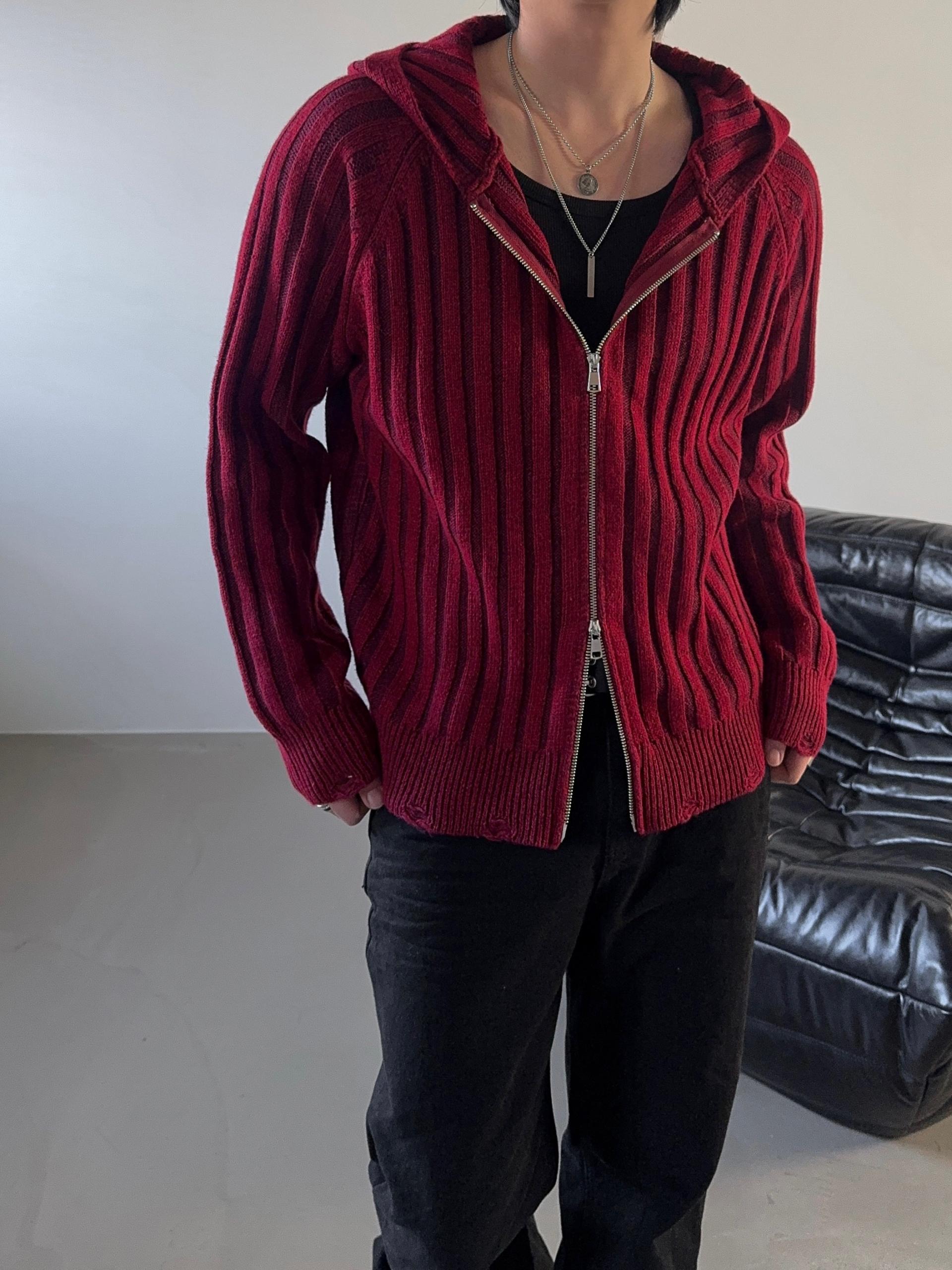 -울 혼방 조직으로 제작된 니트 후드 집업