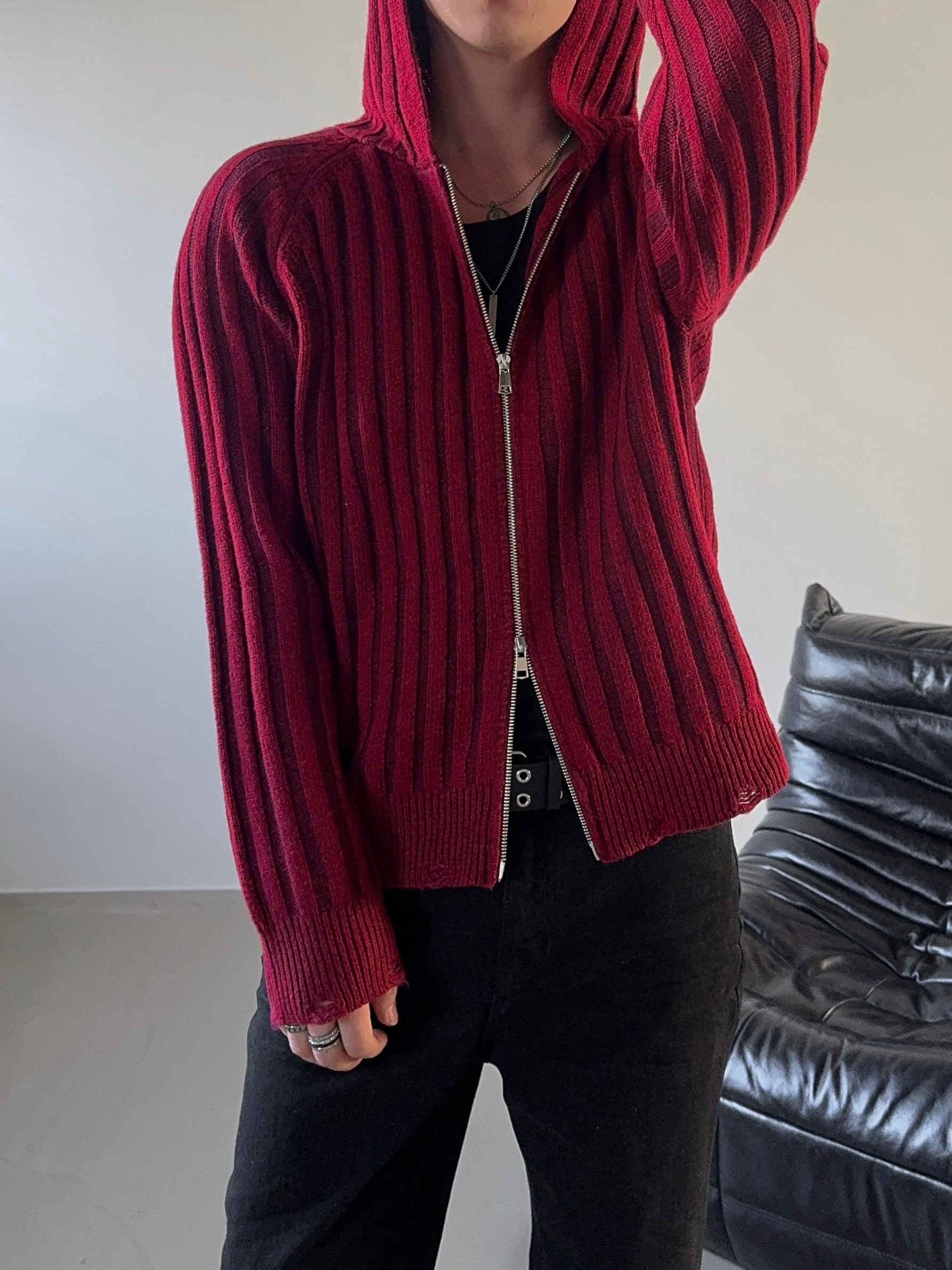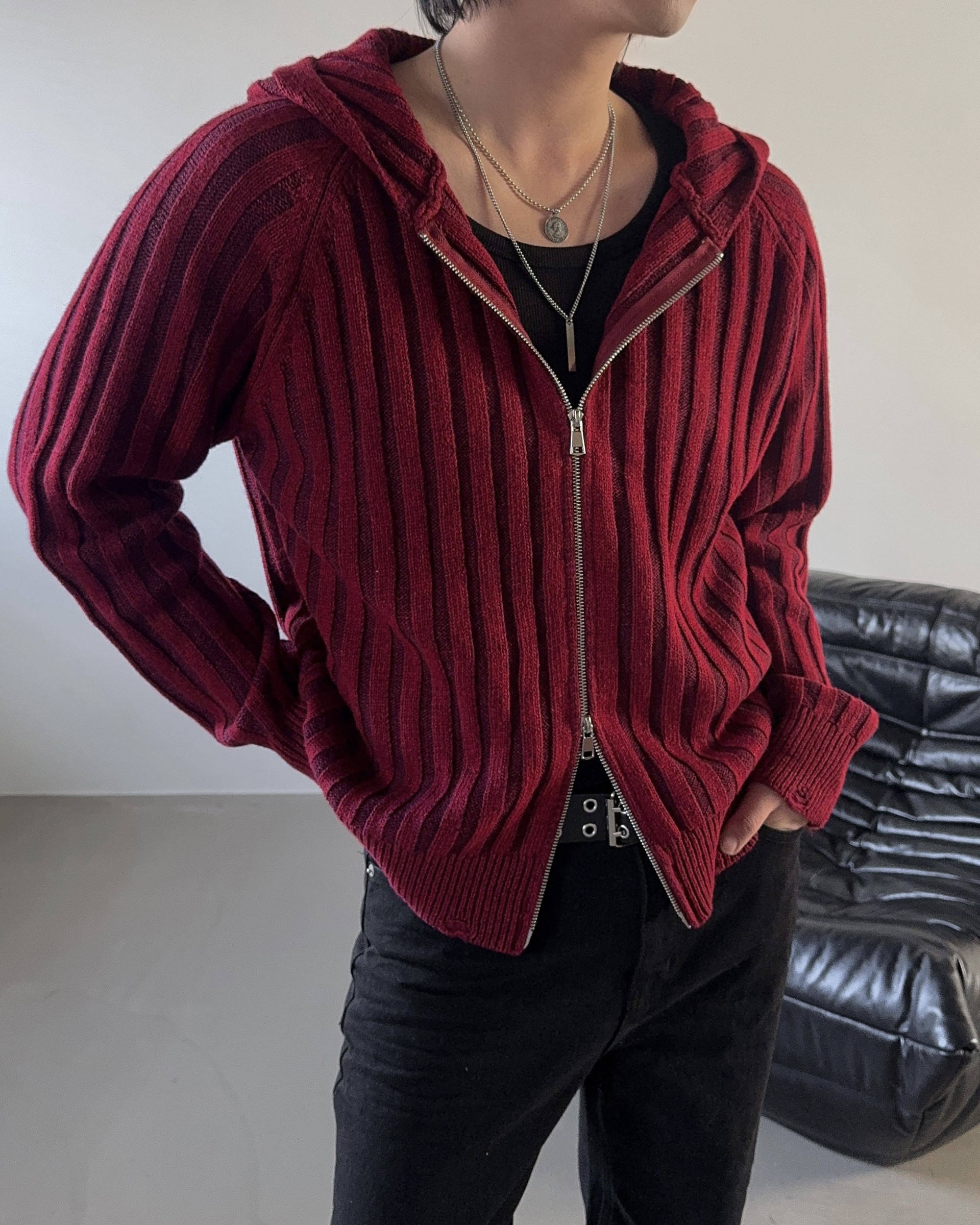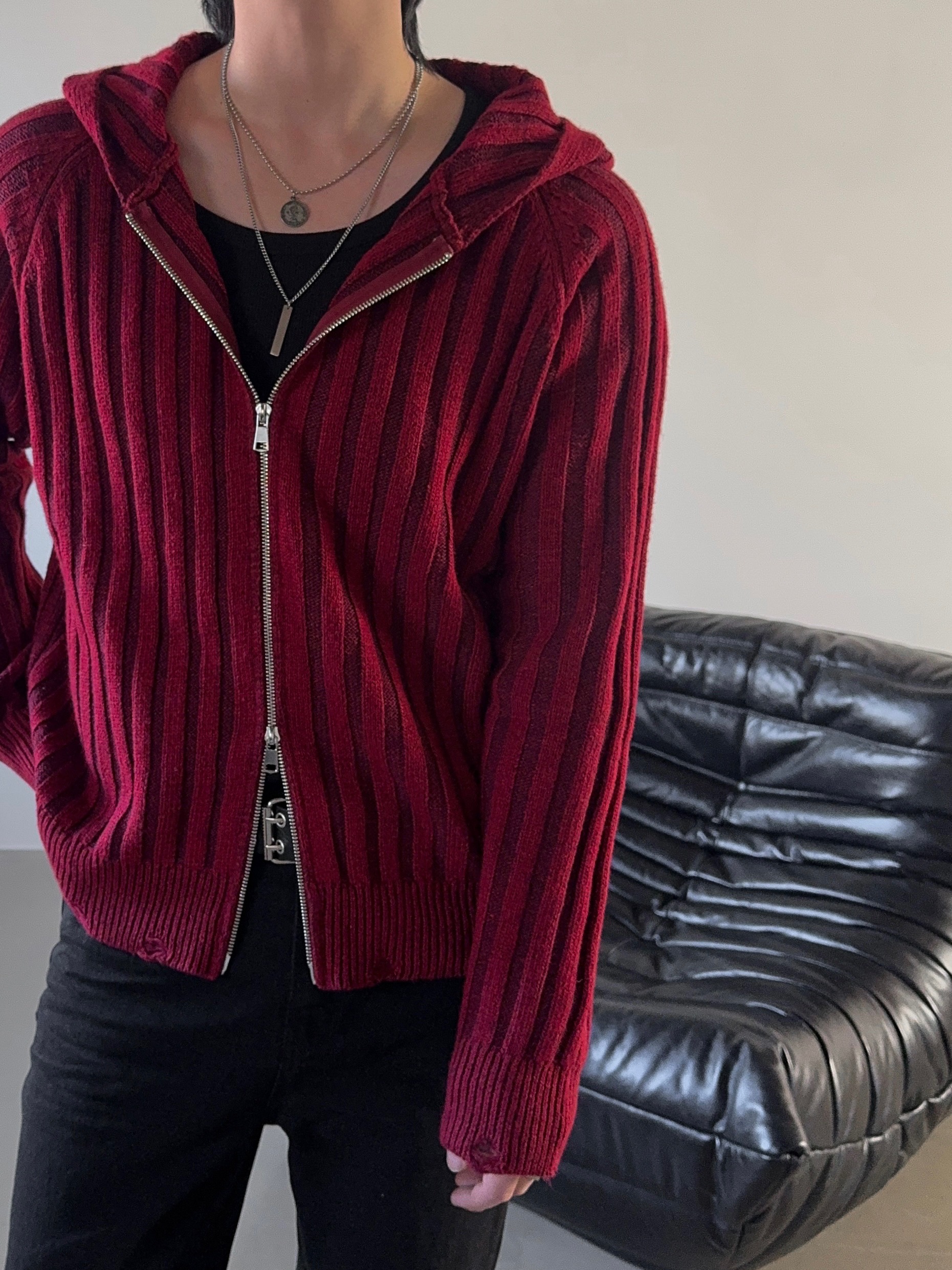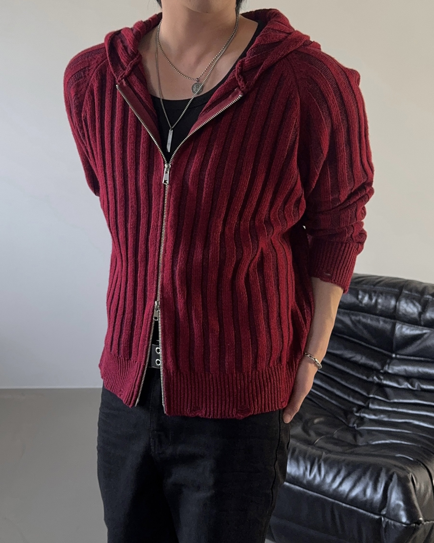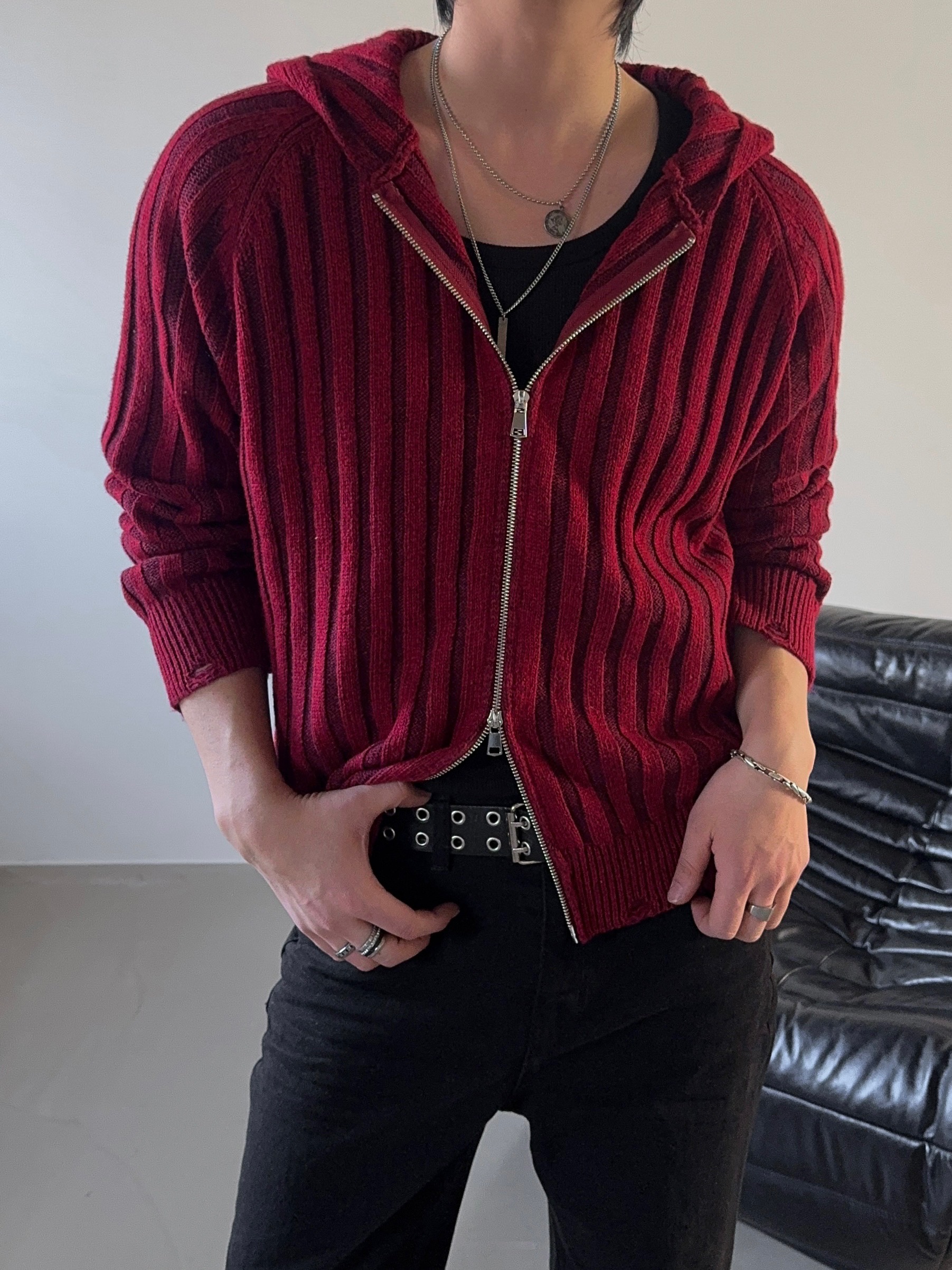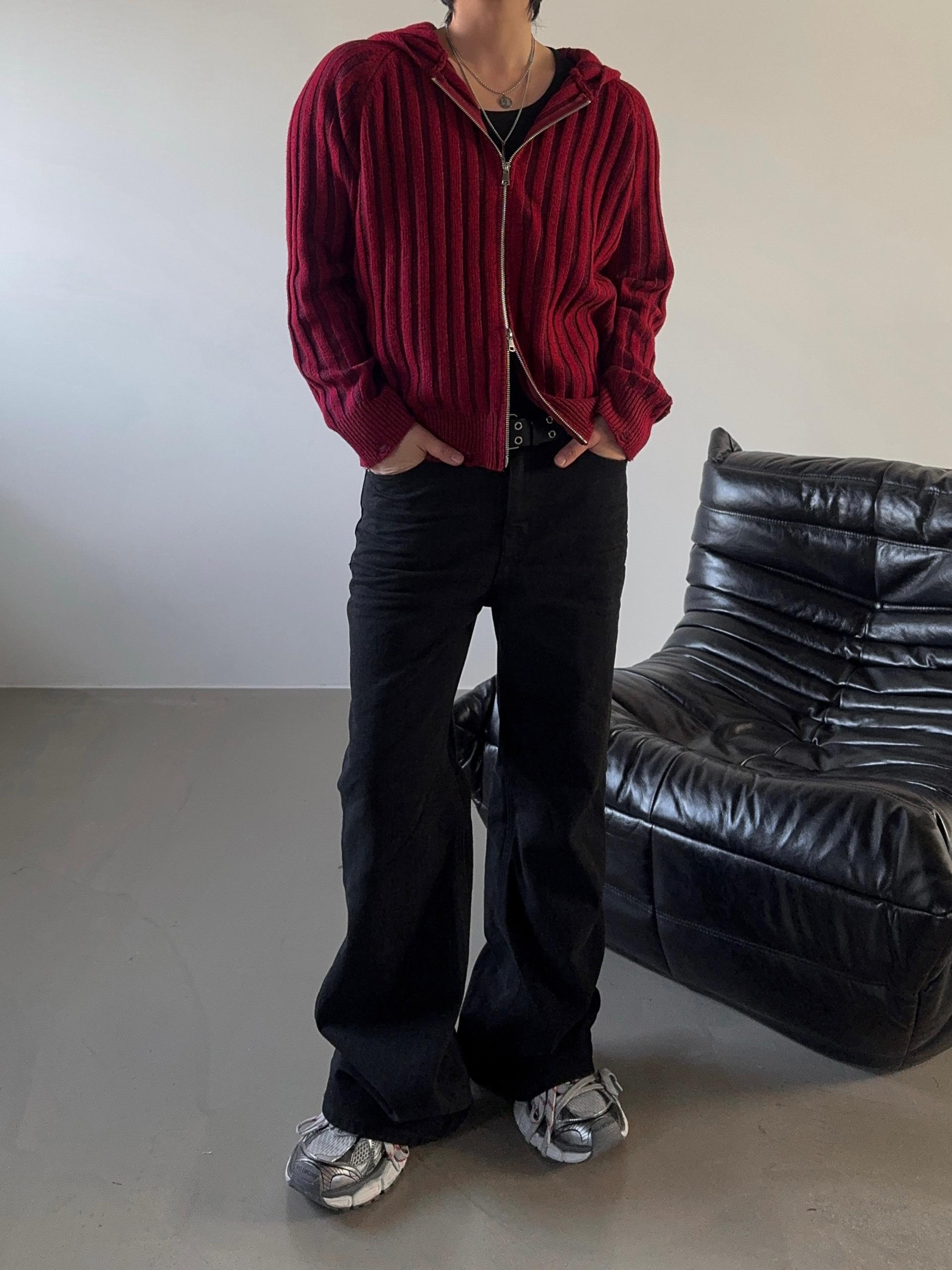 -울 혼방 조직으로 제작된 니트 후드 집업