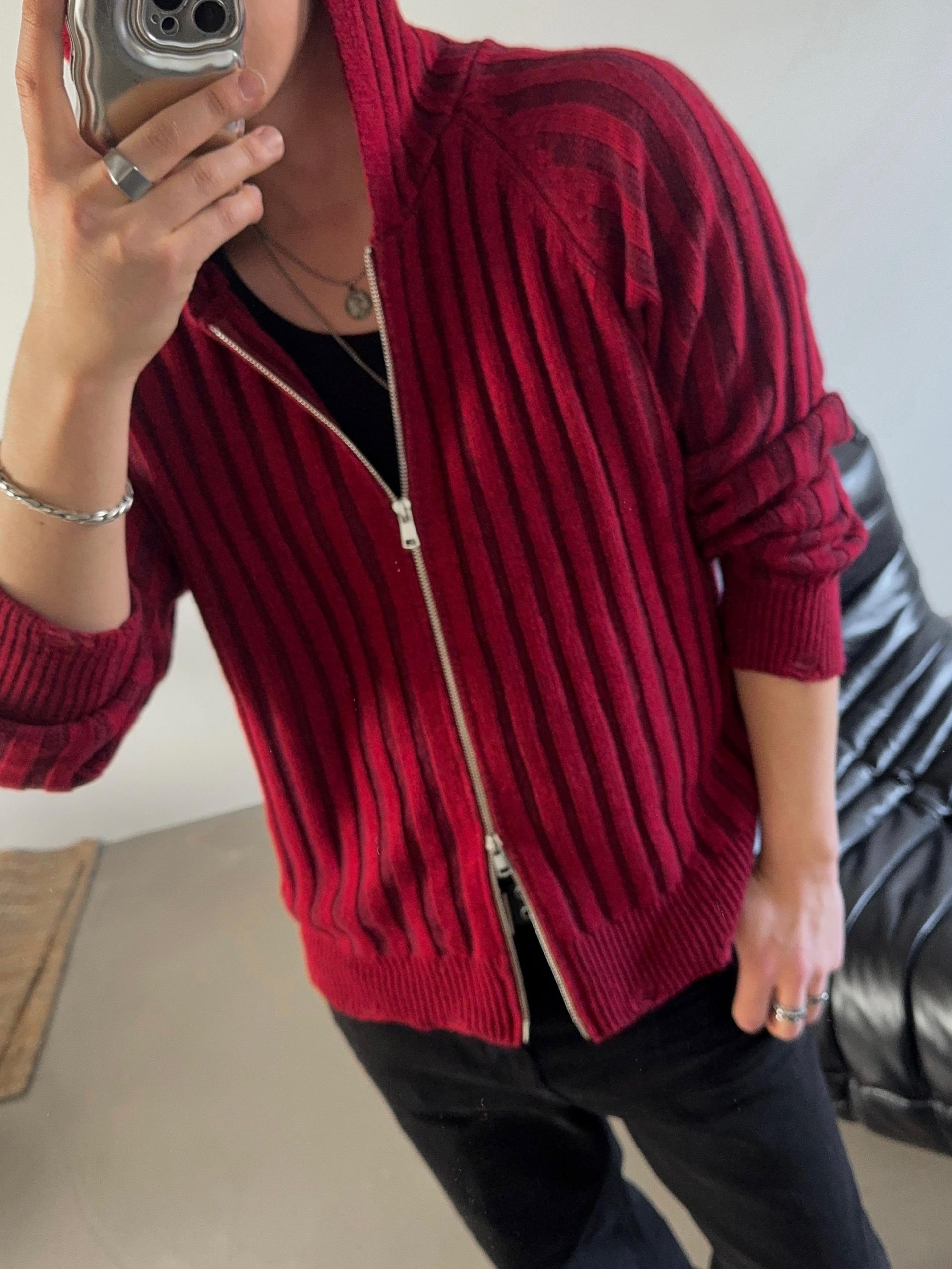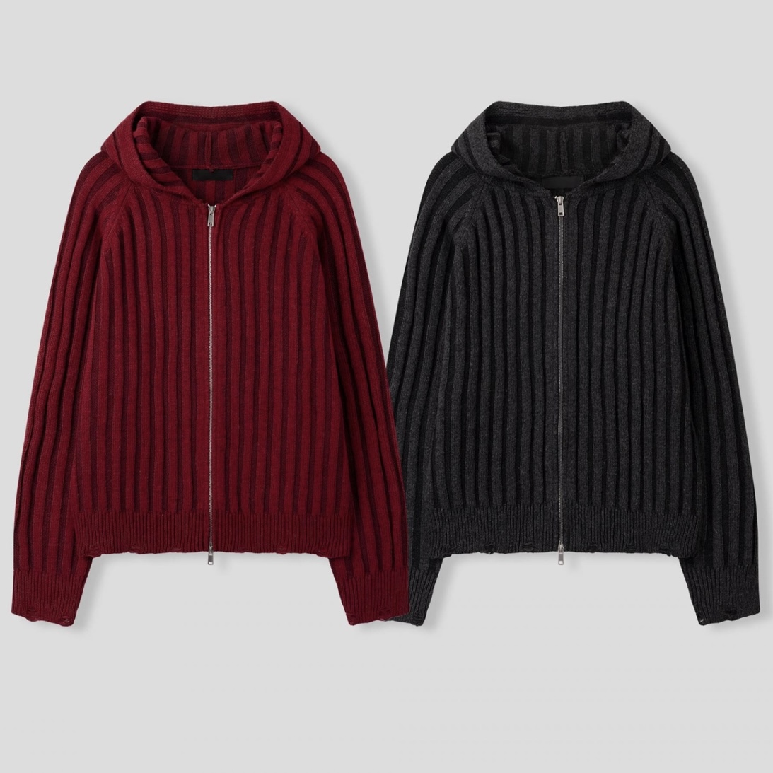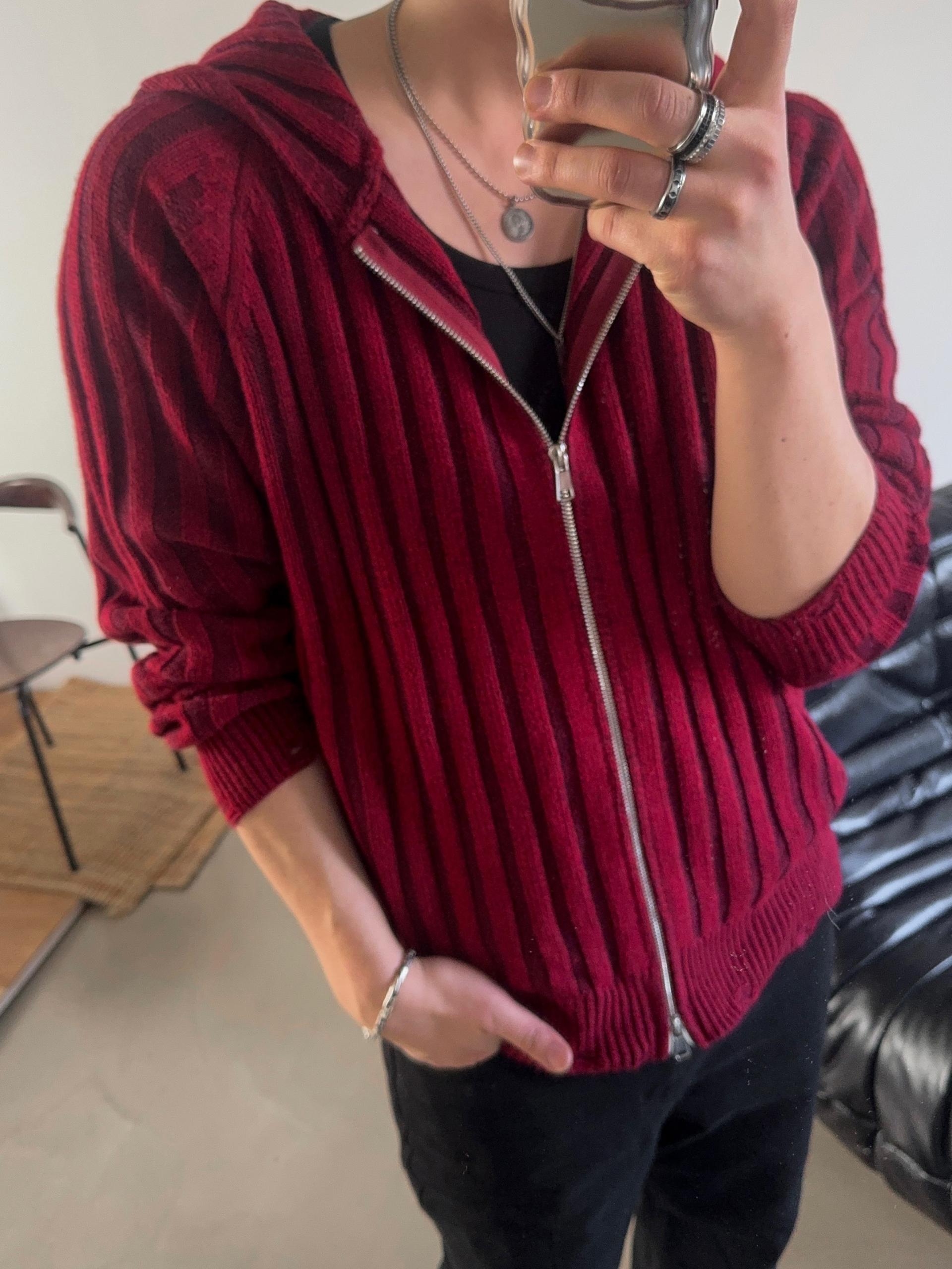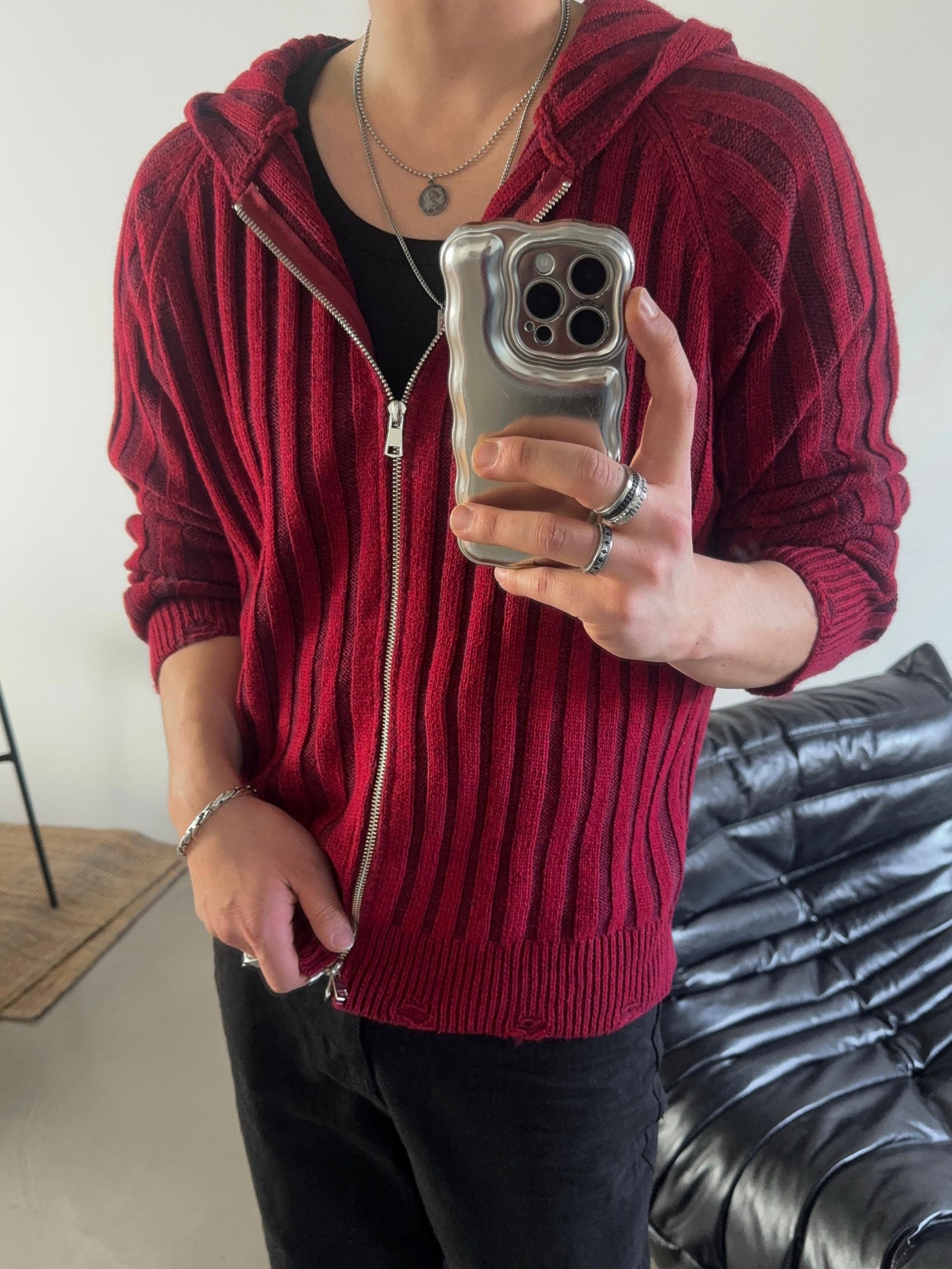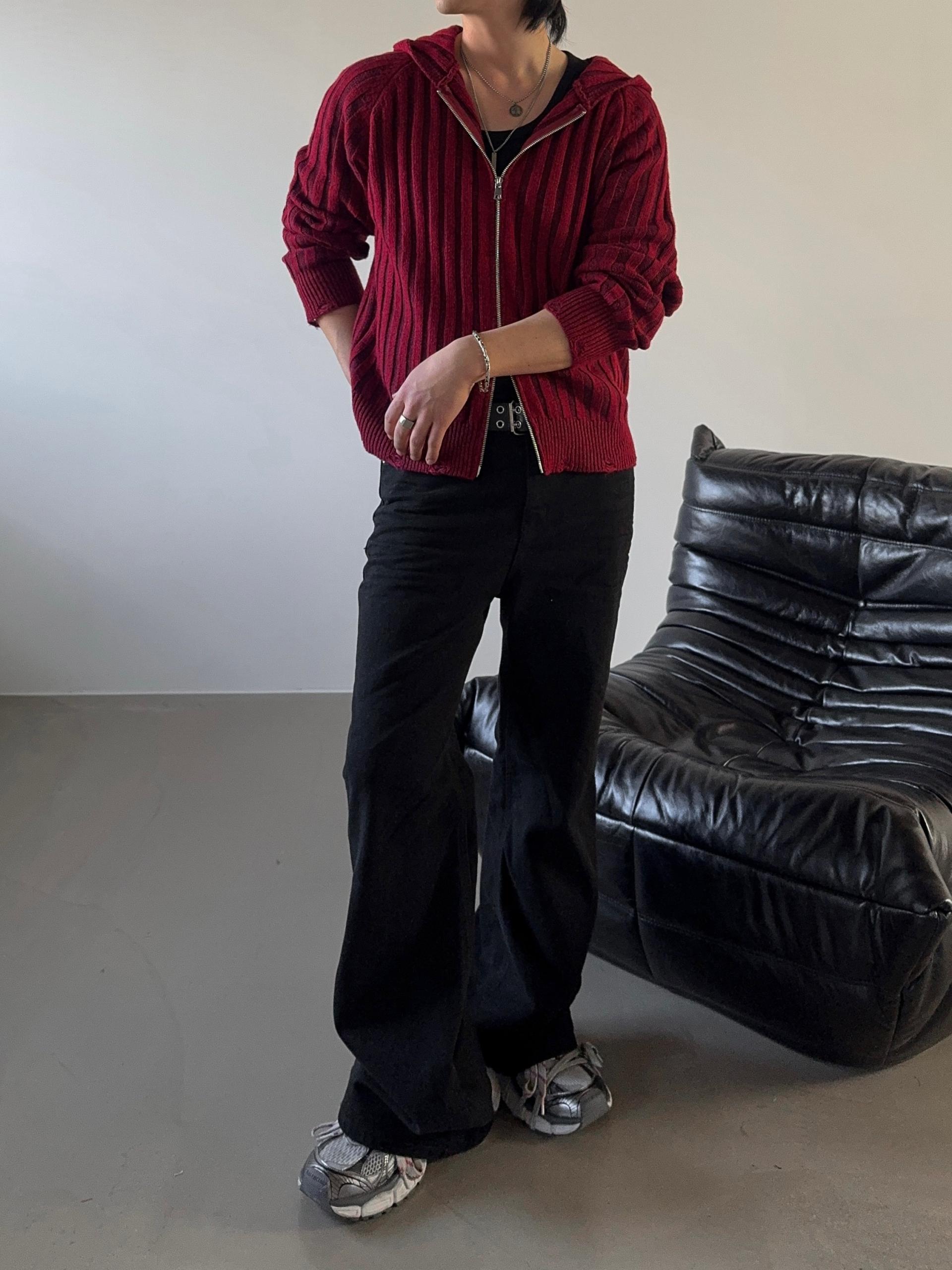 -울 혼방 조직으로 제작된 니트 후드 집업