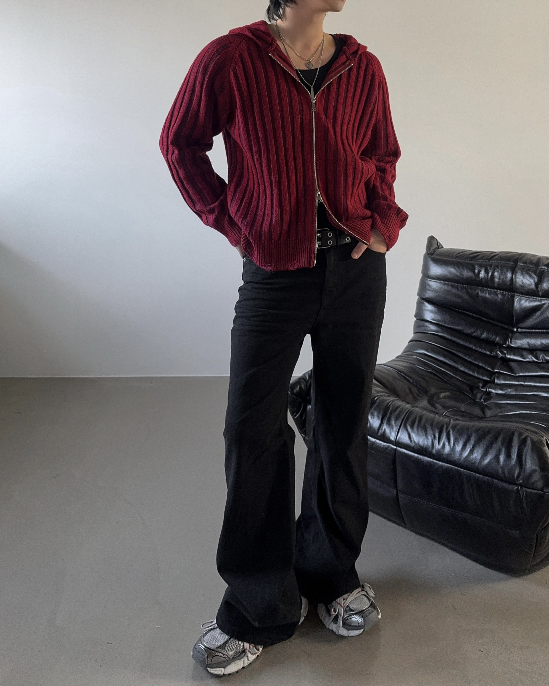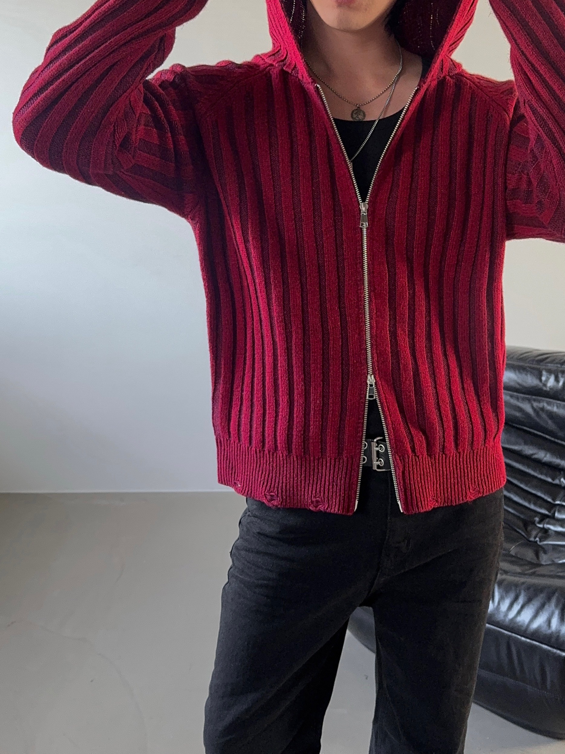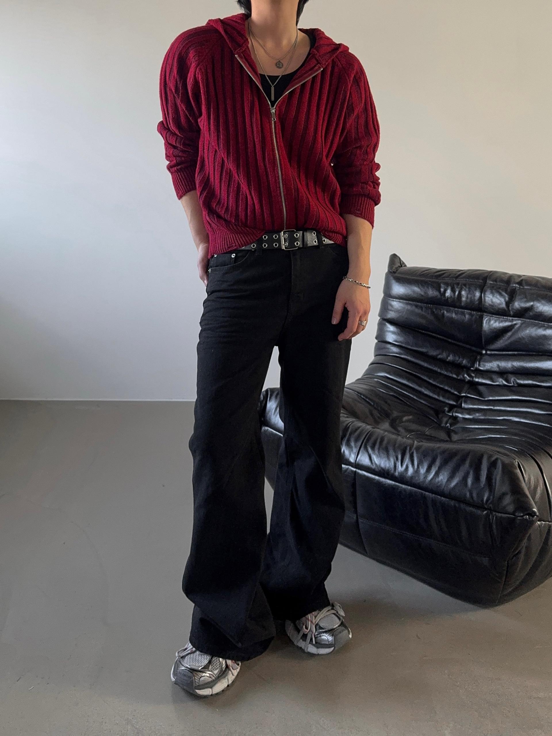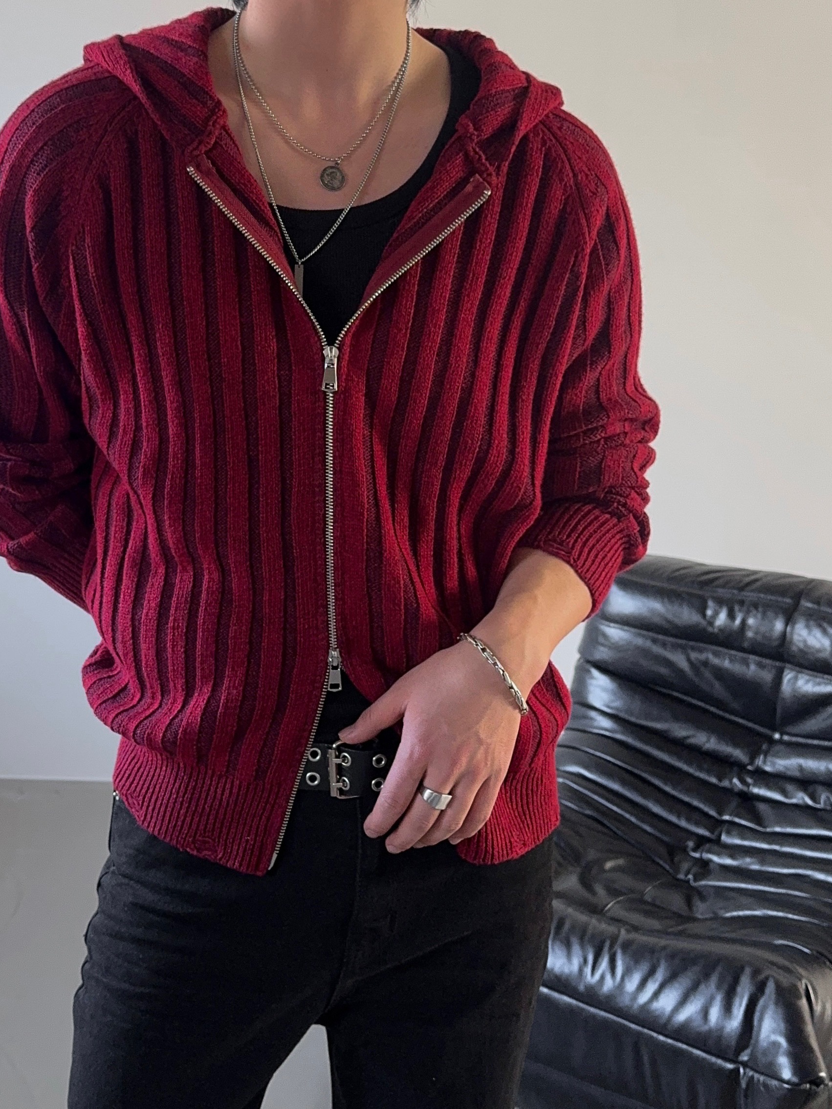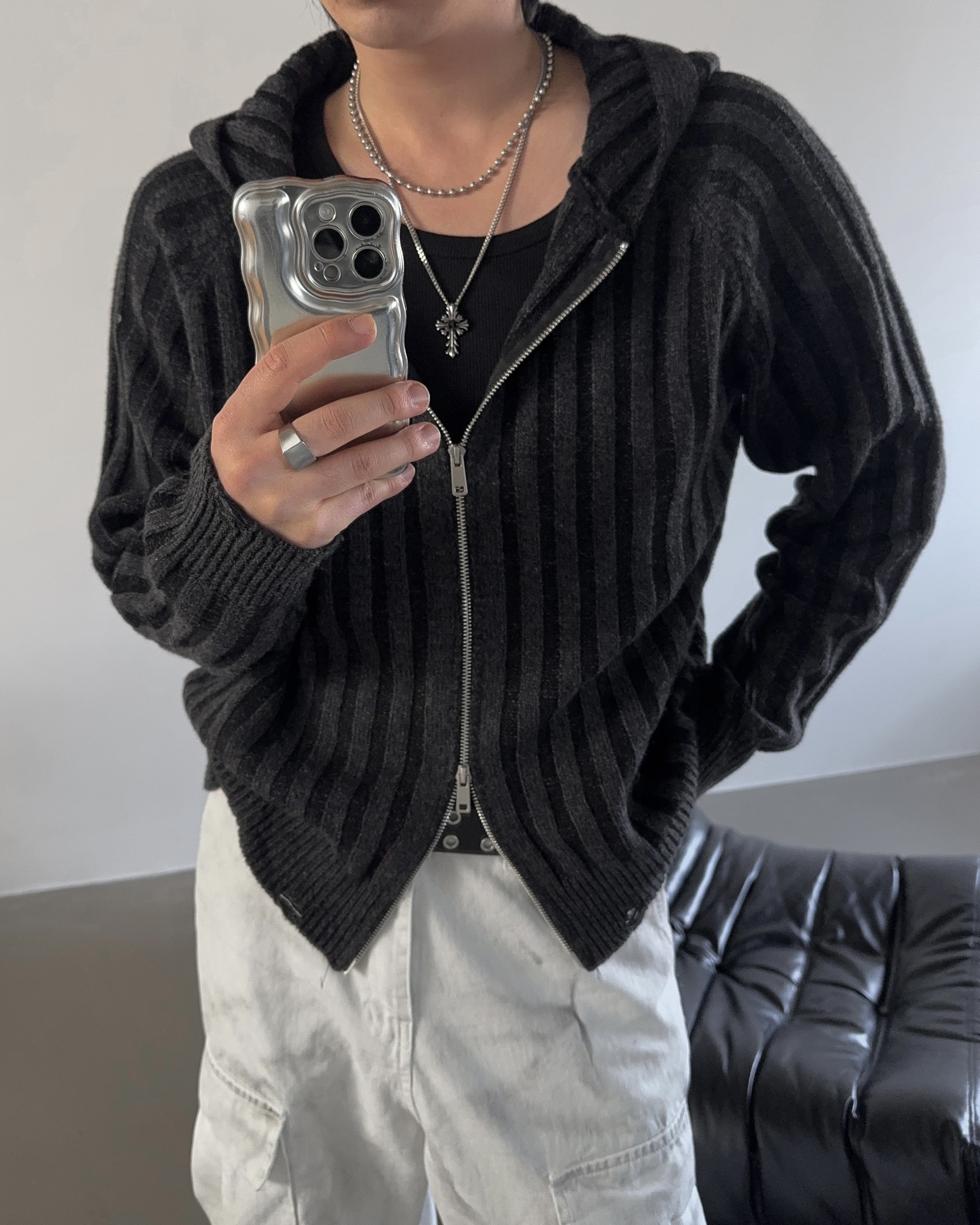 -울 혼방 조직으로 제작된 니트 후드 집업