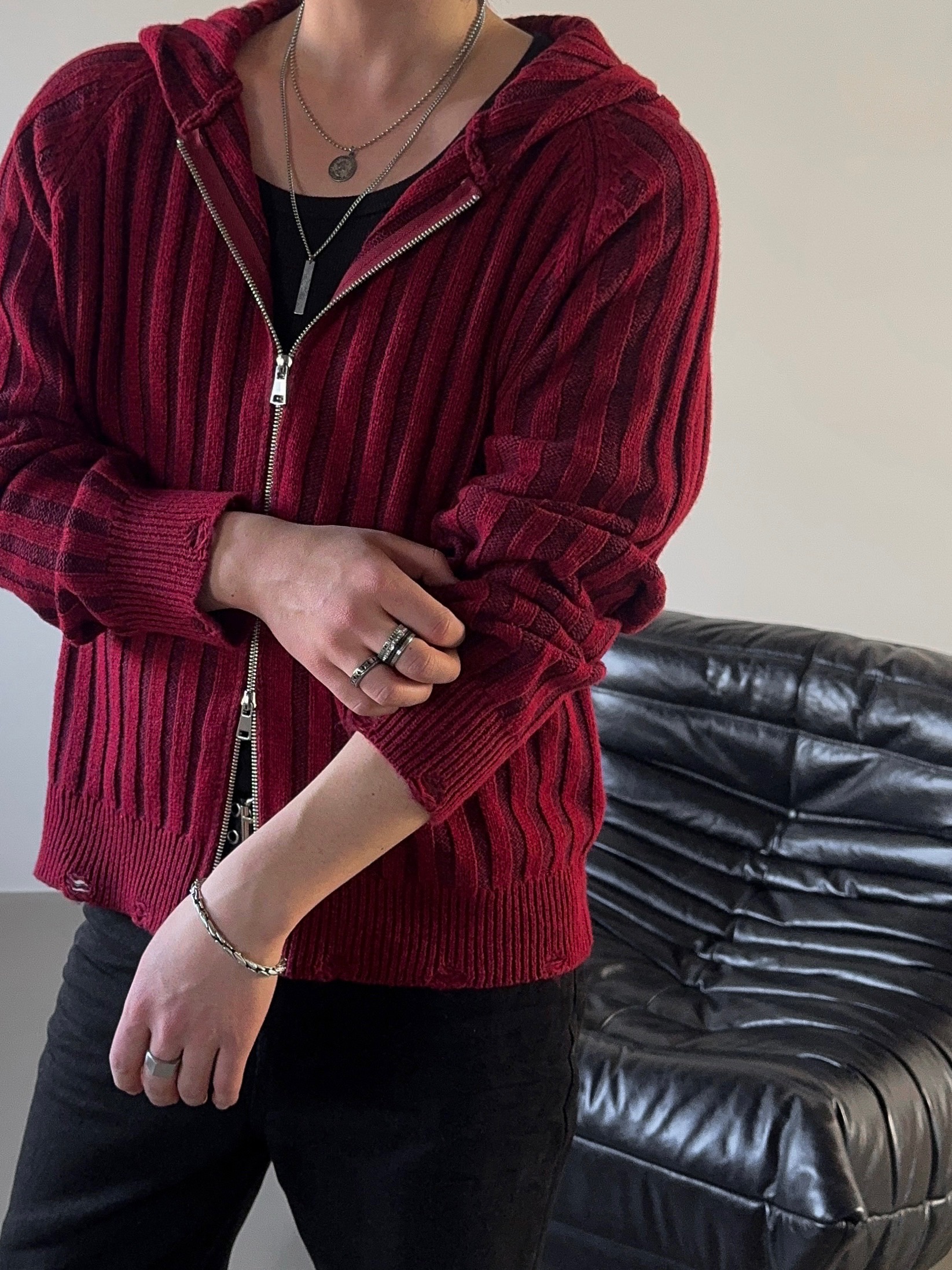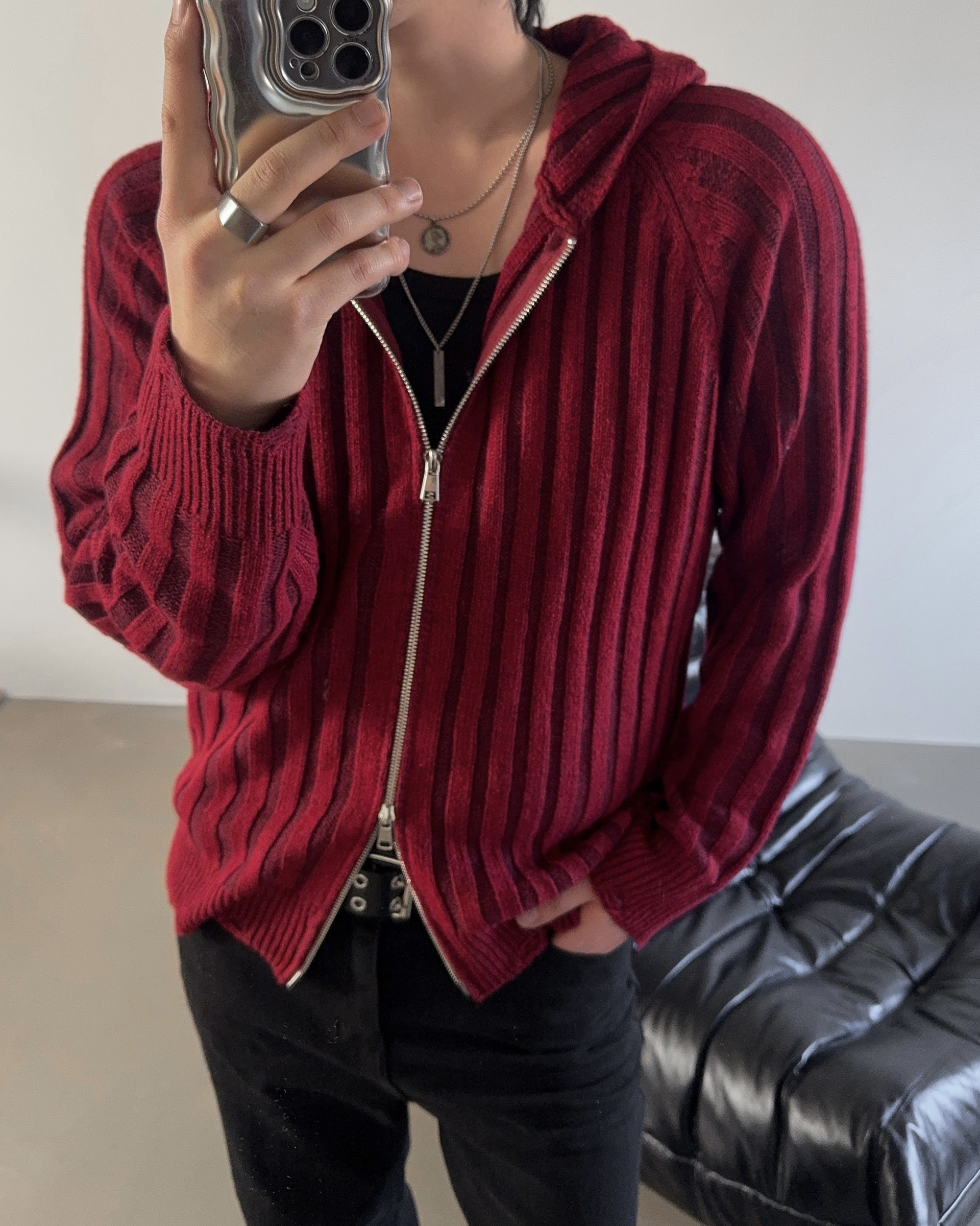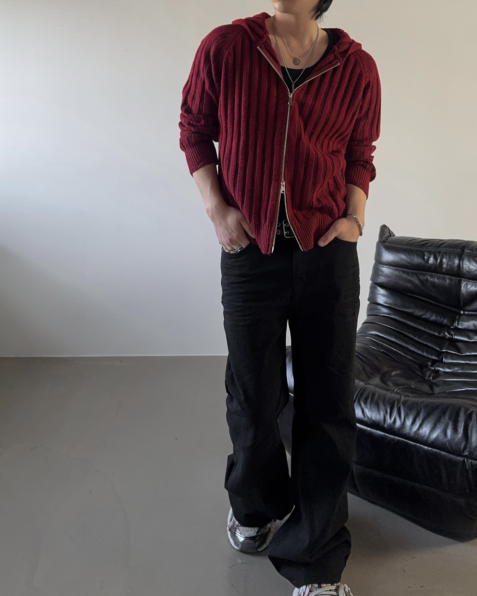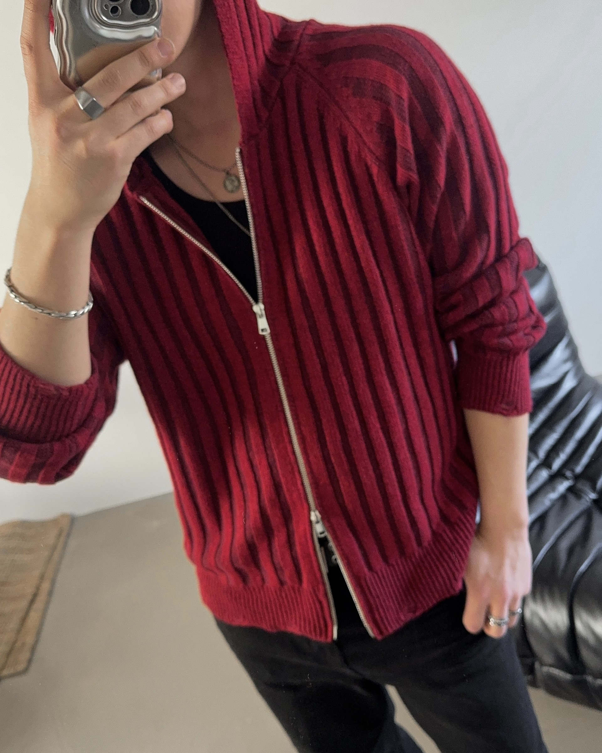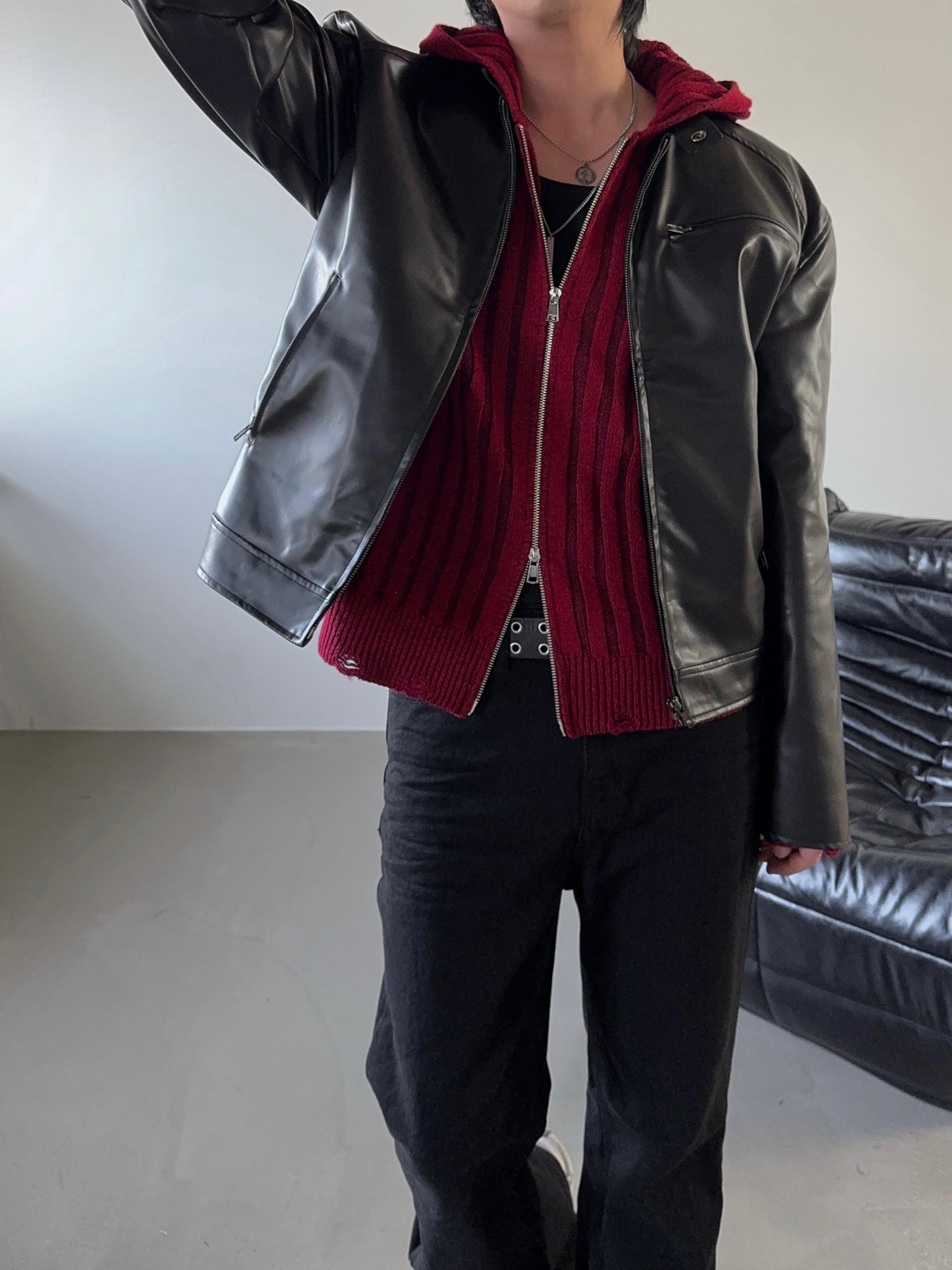 -울 혼방 조직으로 제작된 니트 후드 집업
