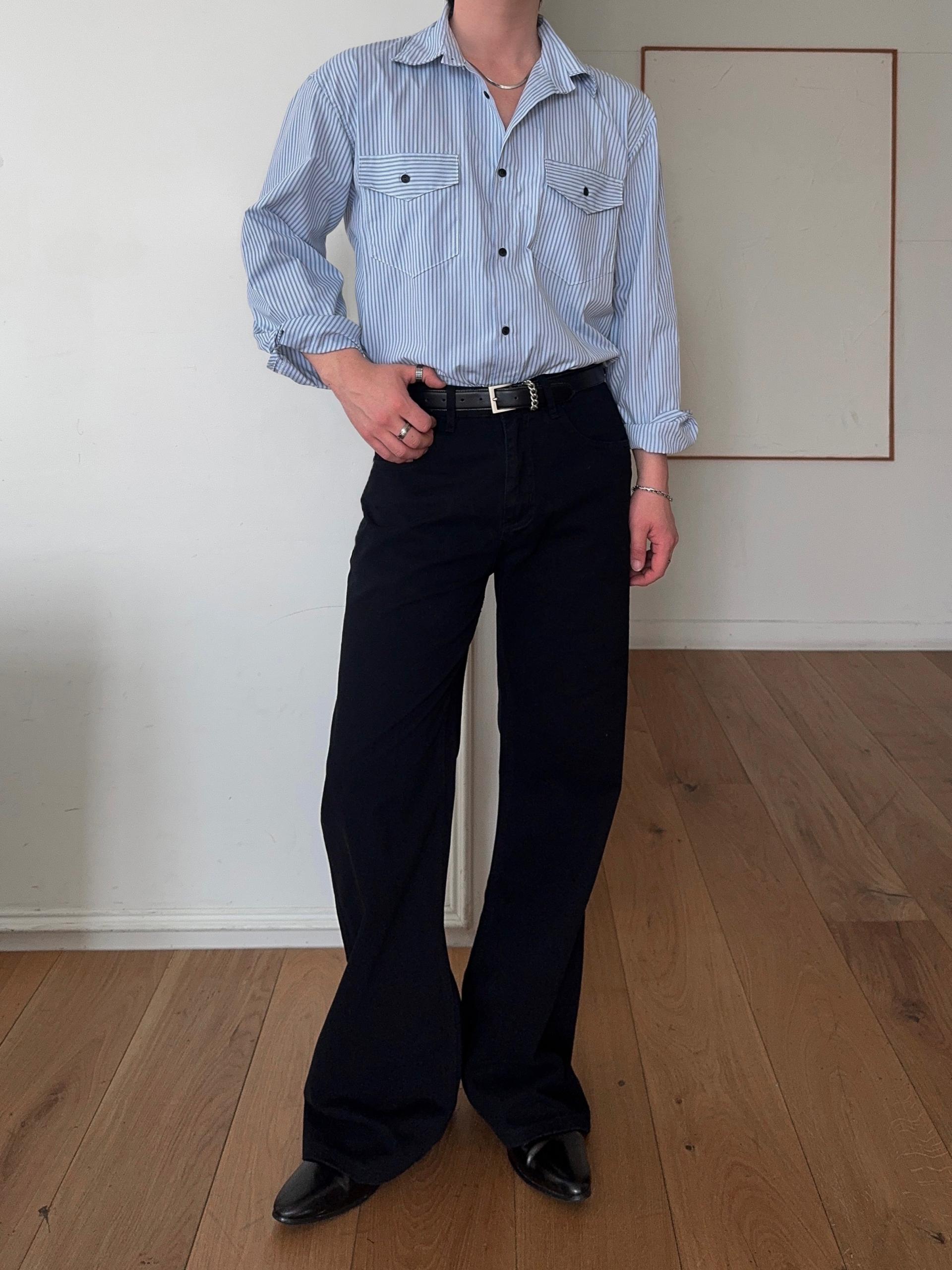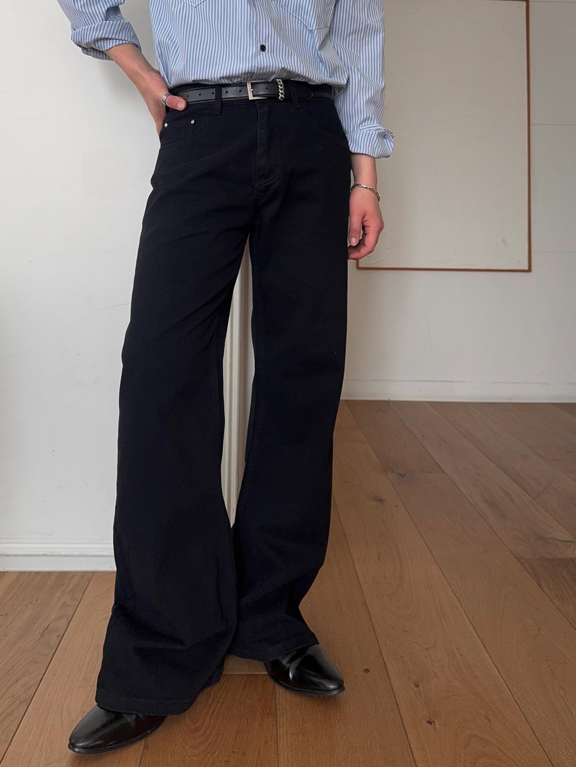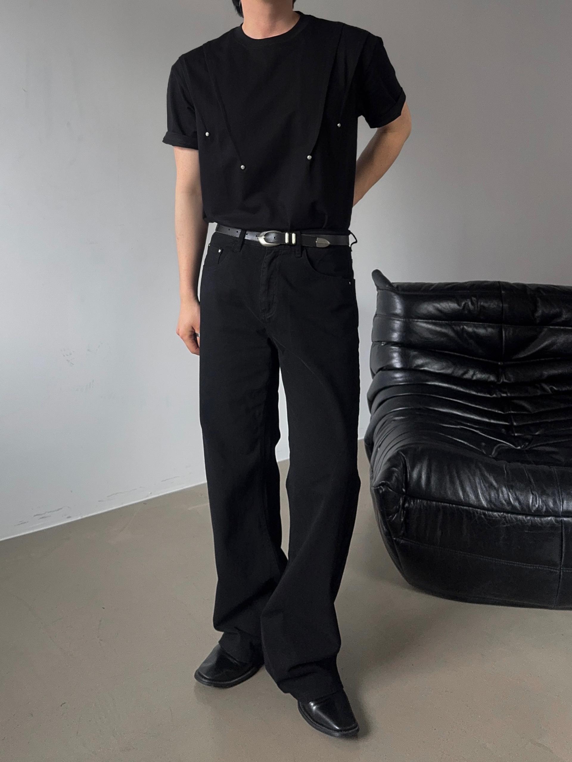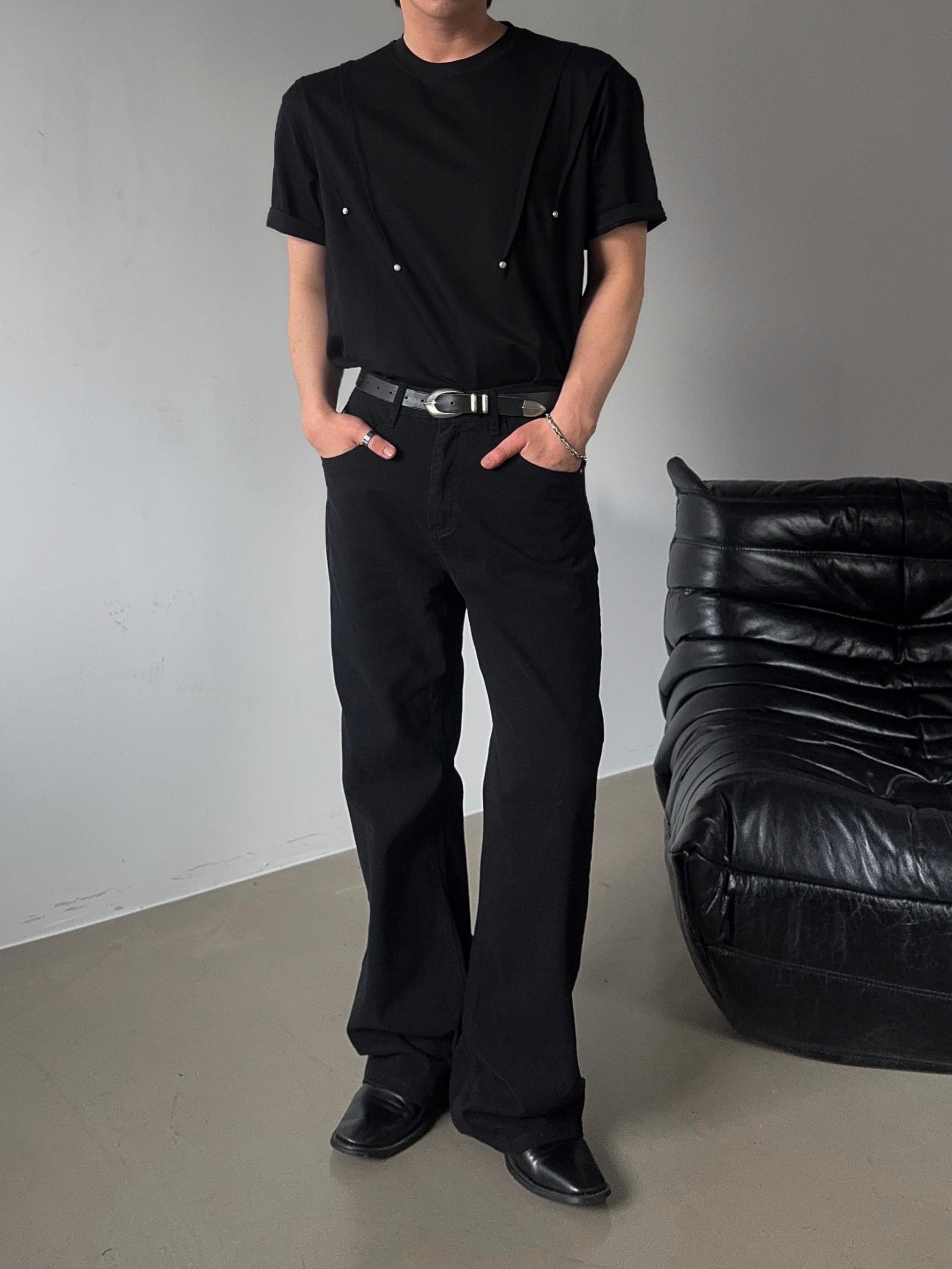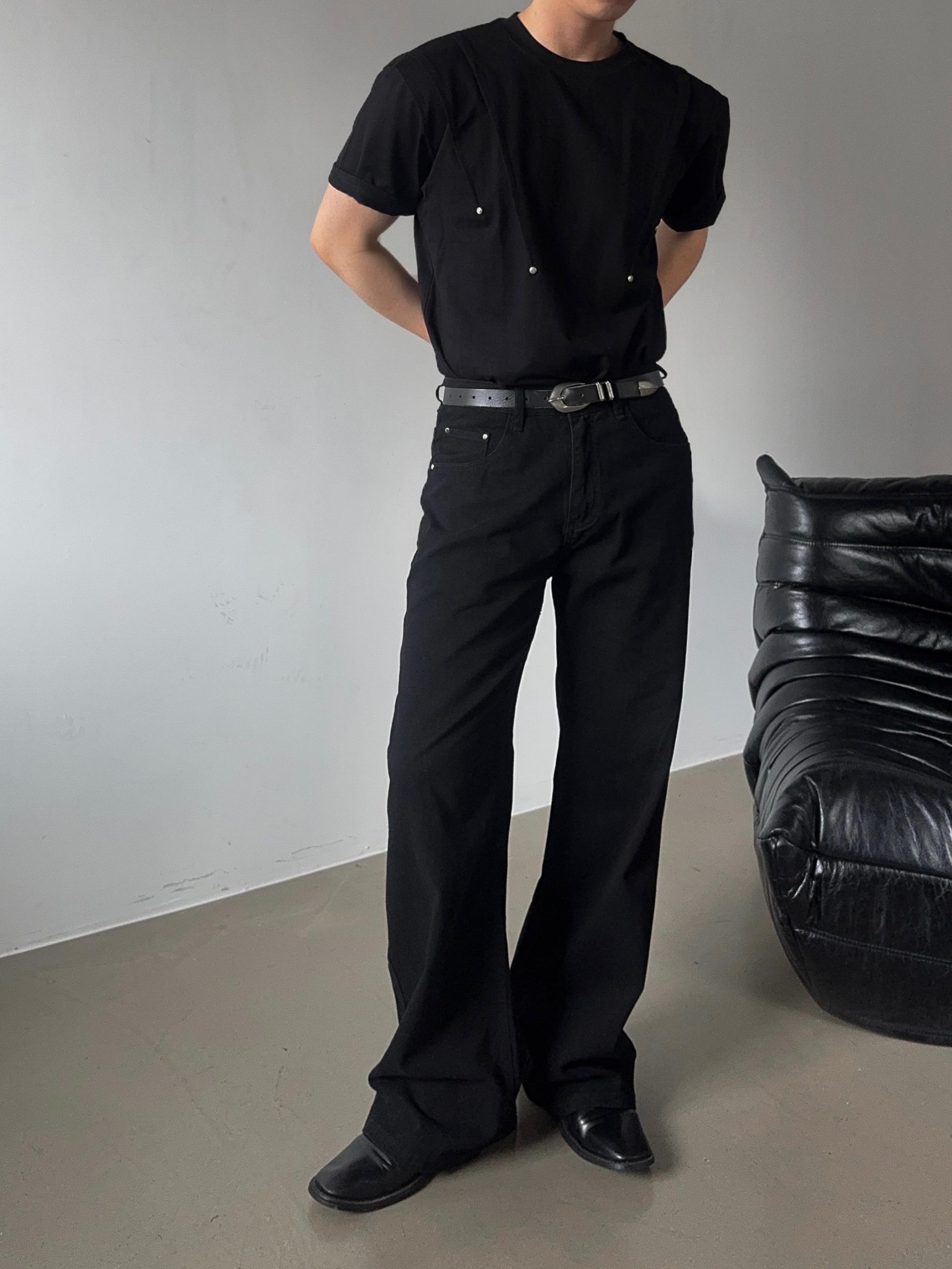 -S: 허리 38 / 허벅지 30 / 밑위 29 / 밑단 27 / 총장 107