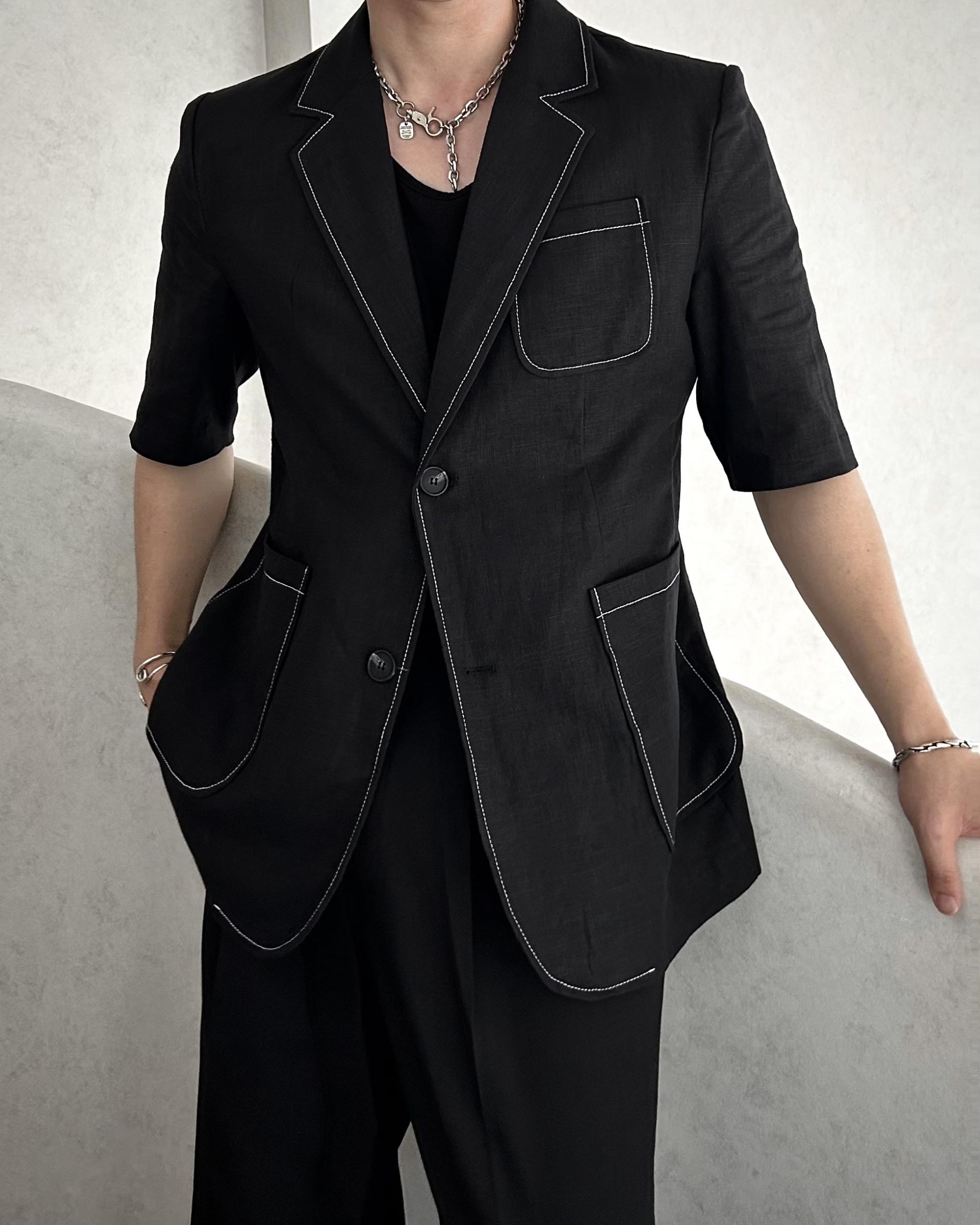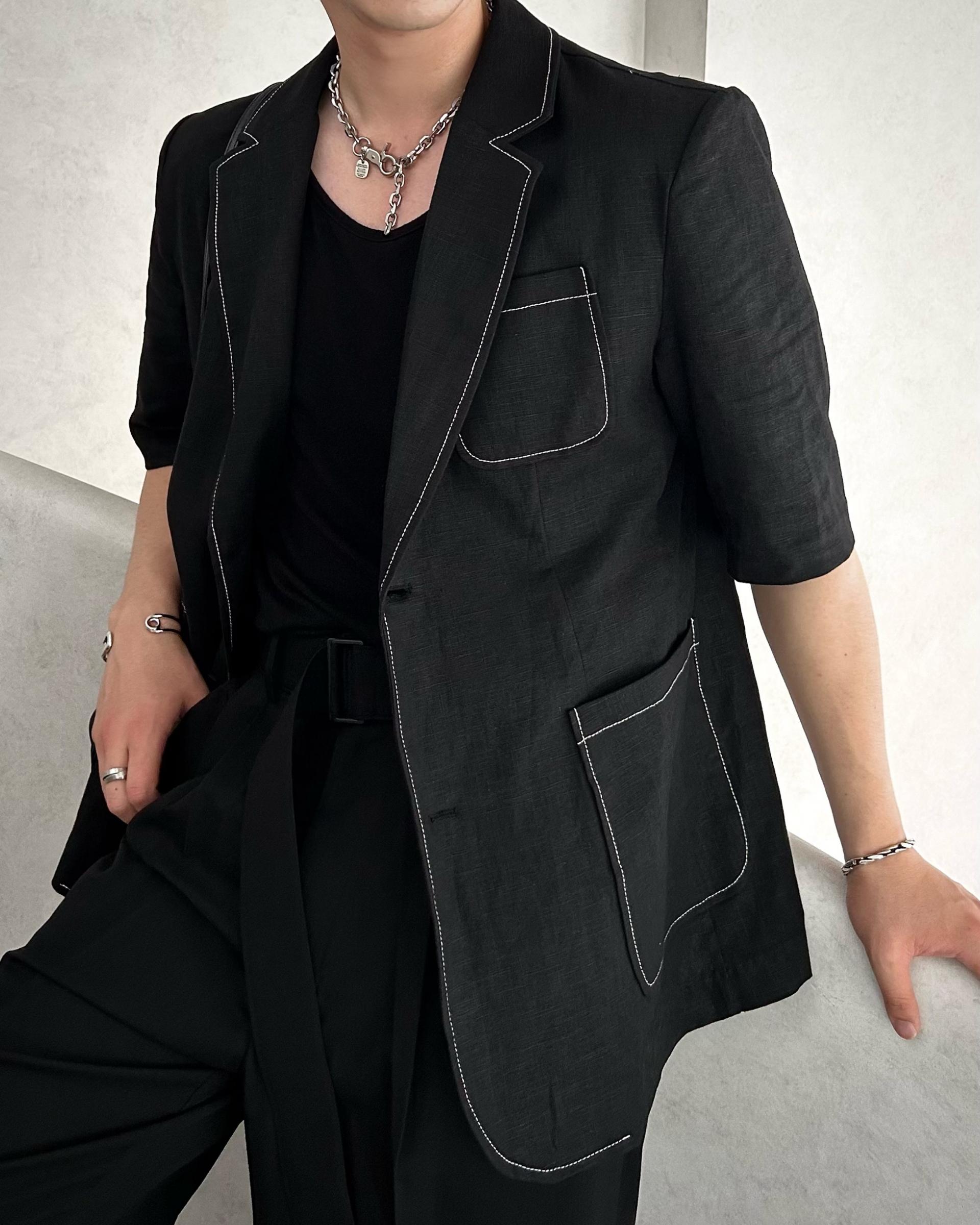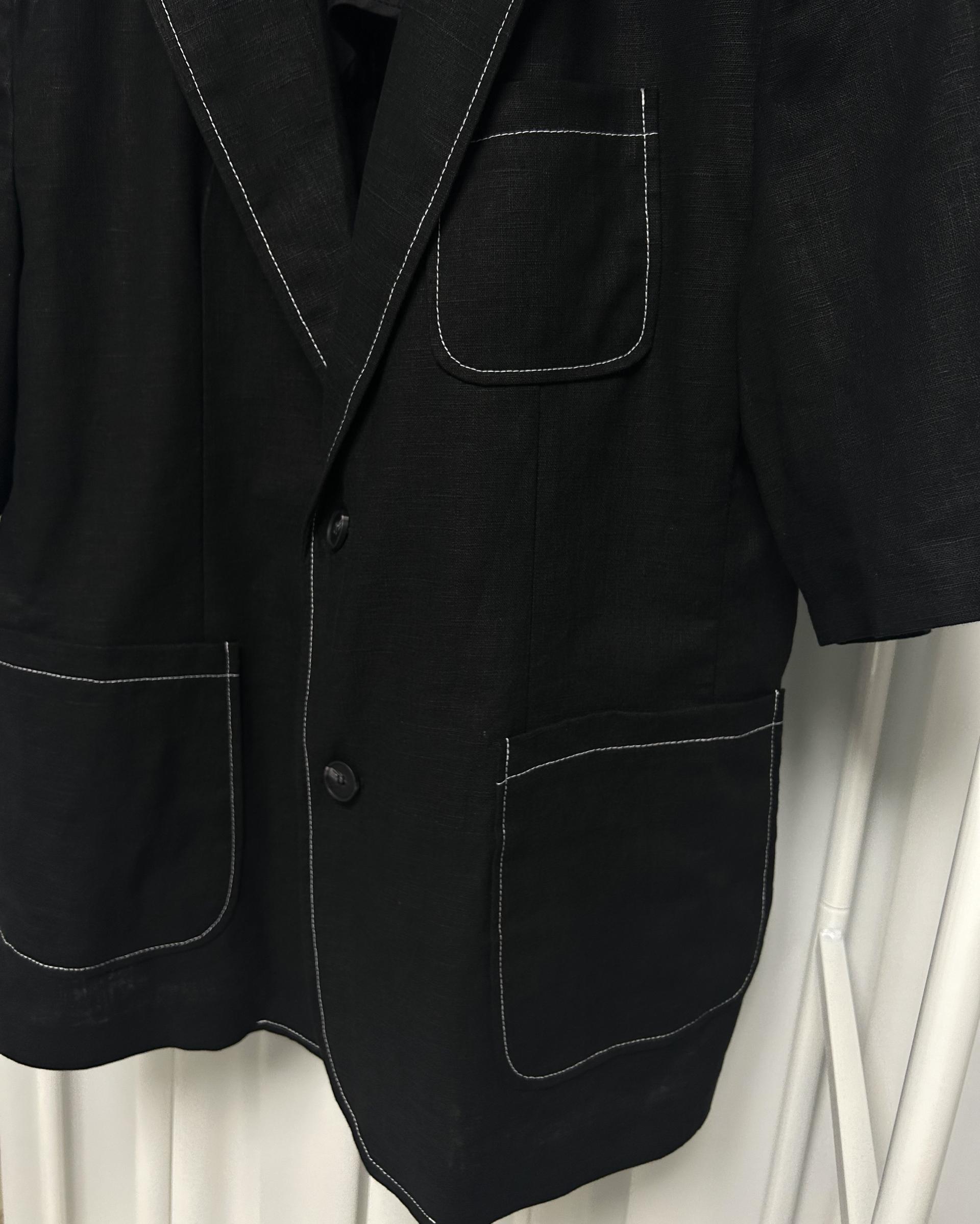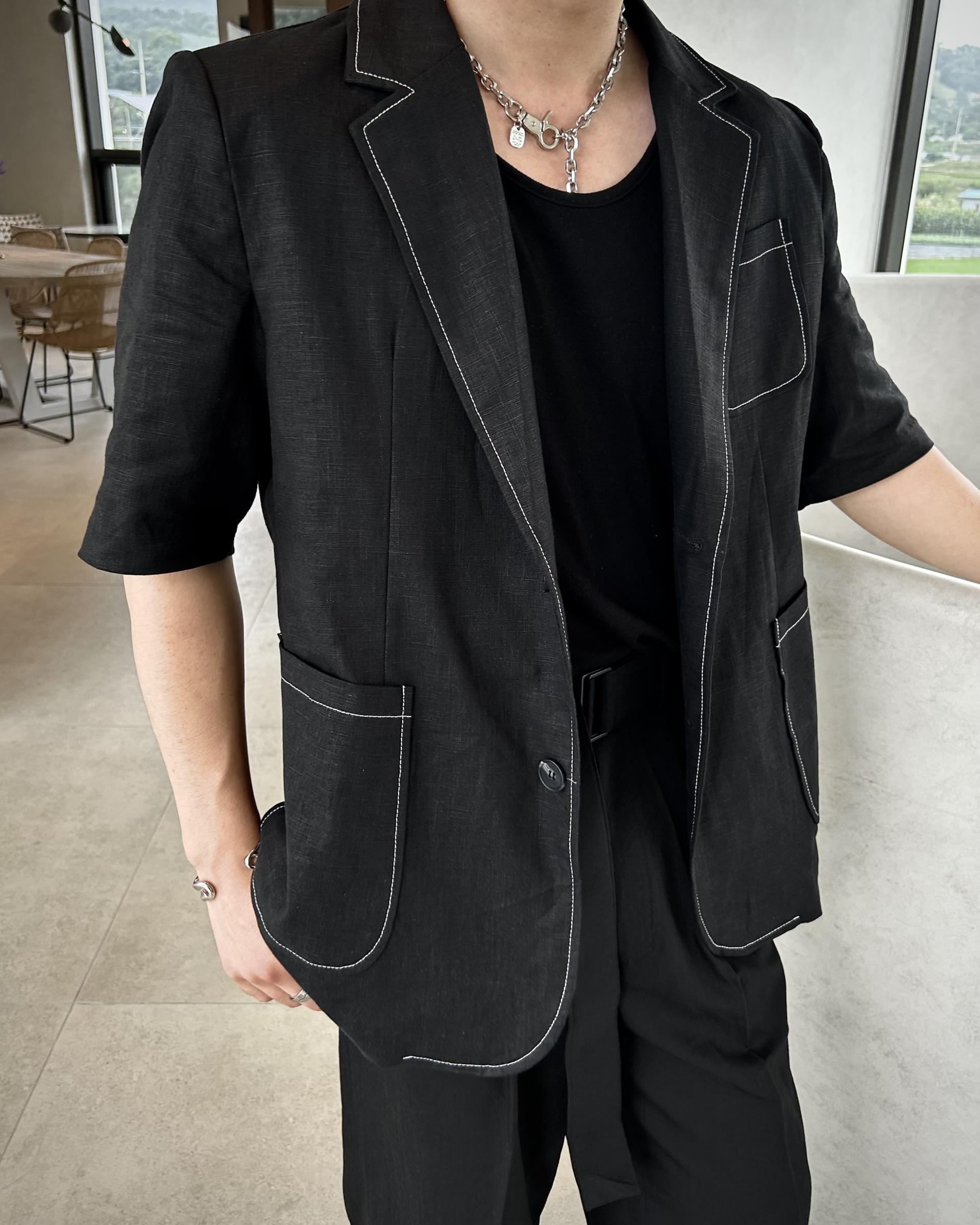 스티치 라인의 디테일이 들어간 린넨 반팔 자켓 입니다.