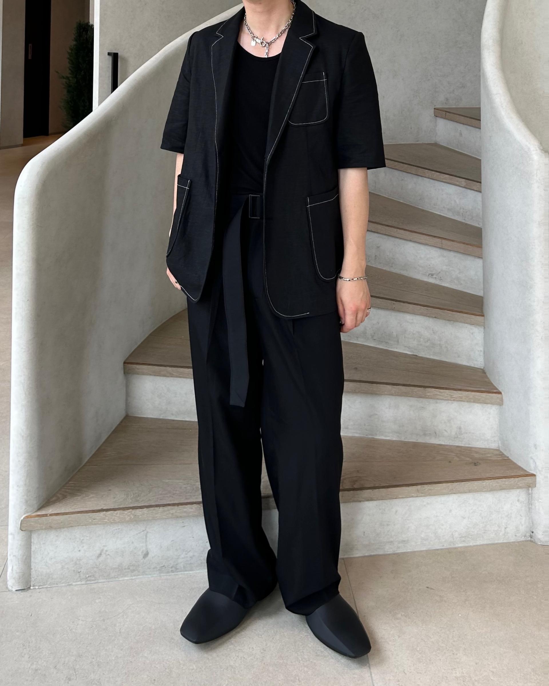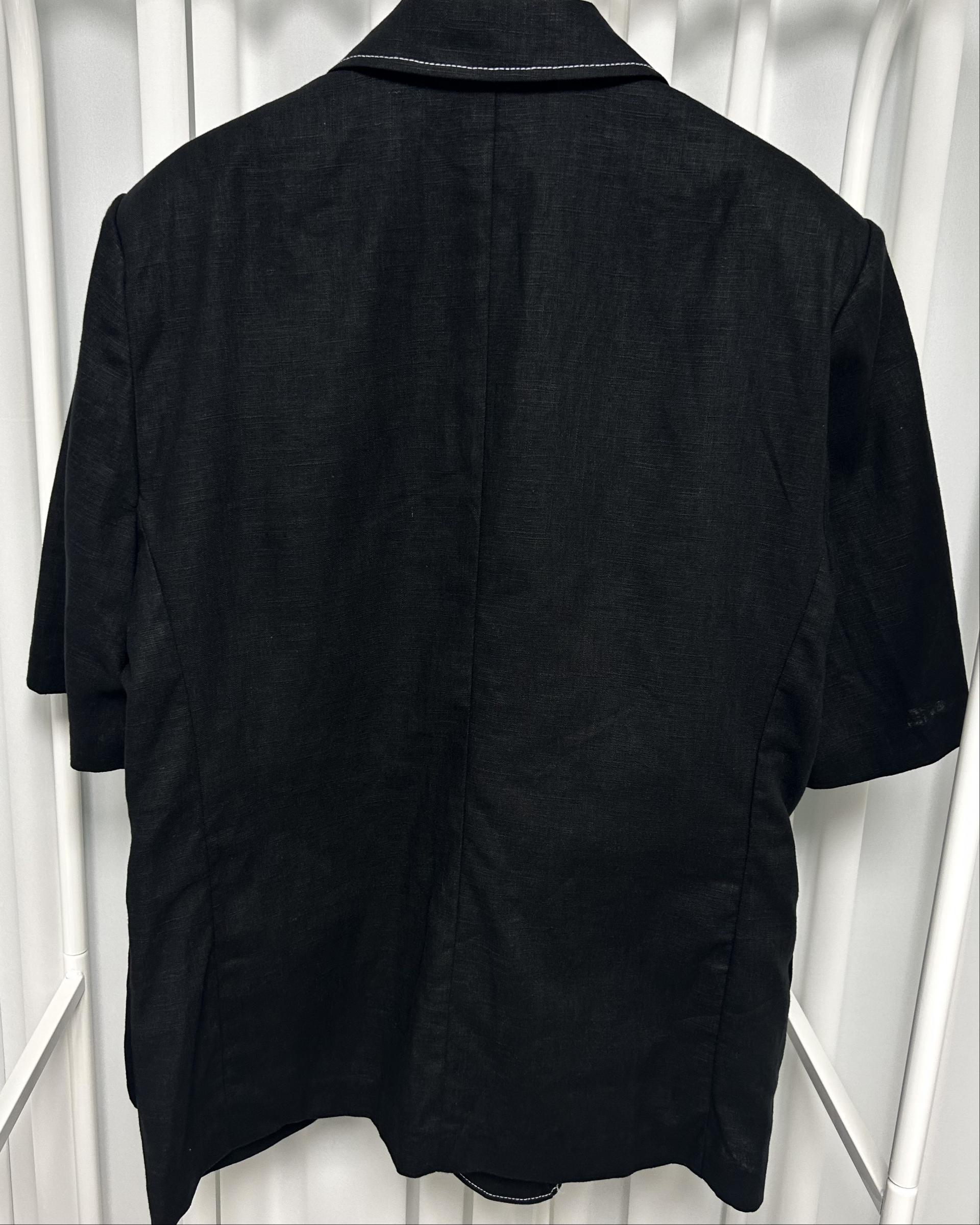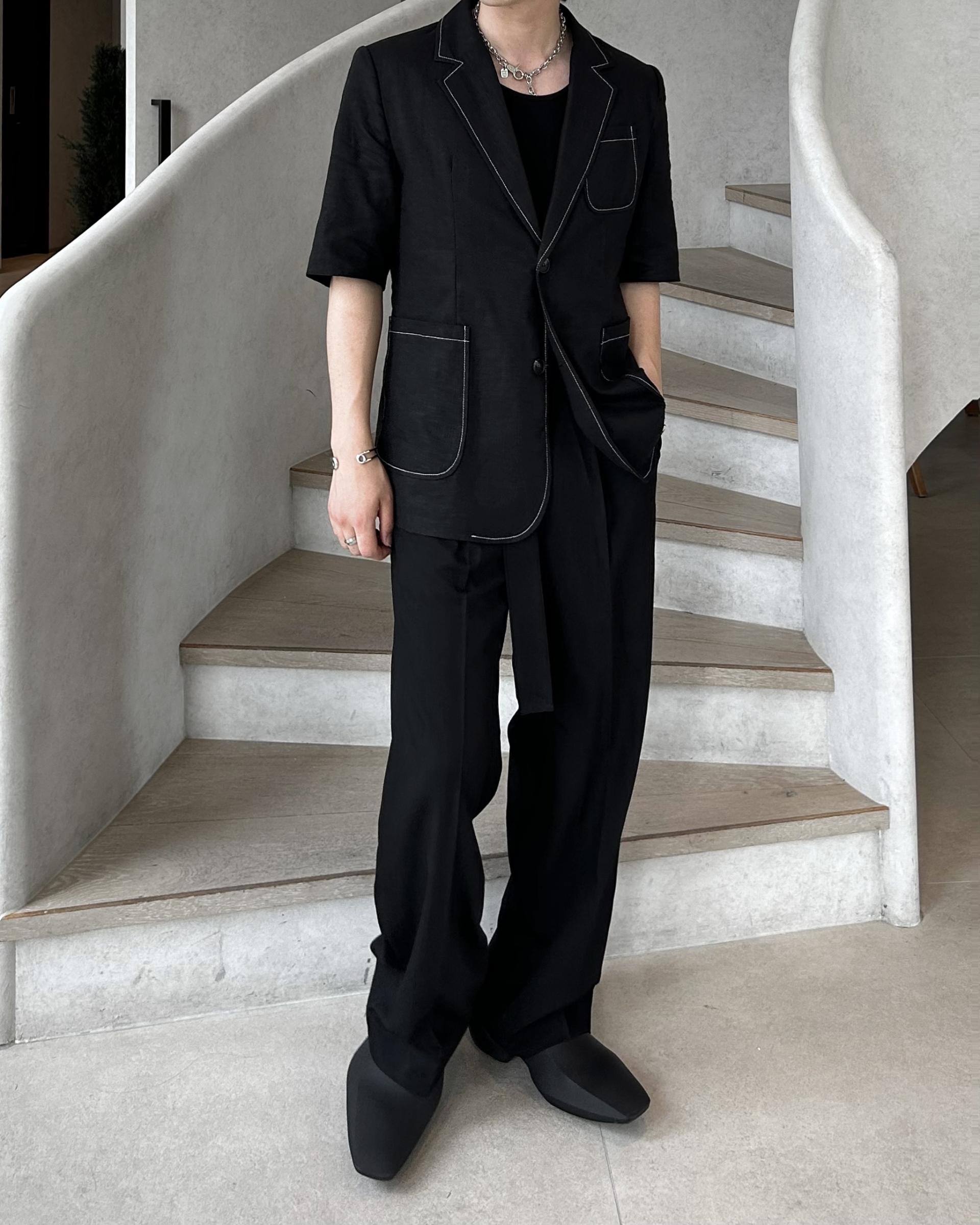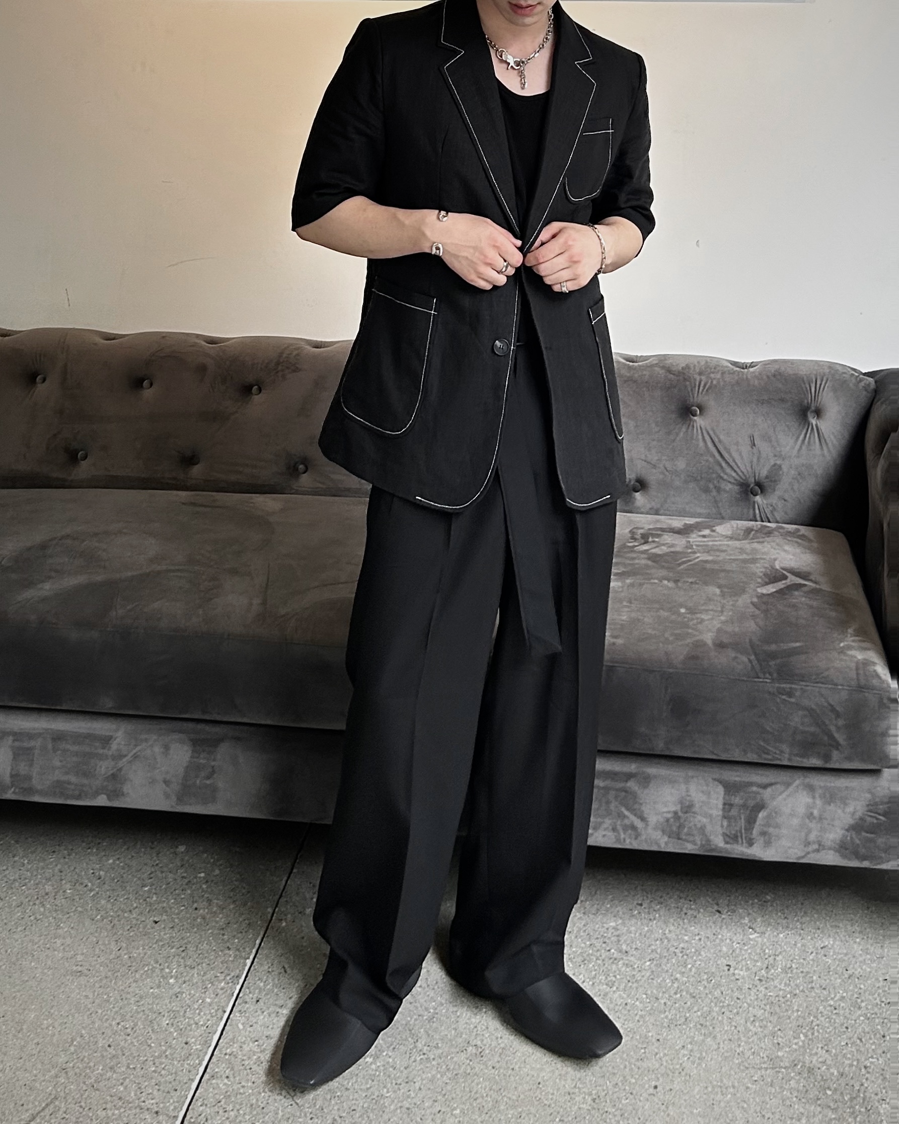 스티치 라인의 디테일이 들어간 린넨 반팔 자켓 입니다.