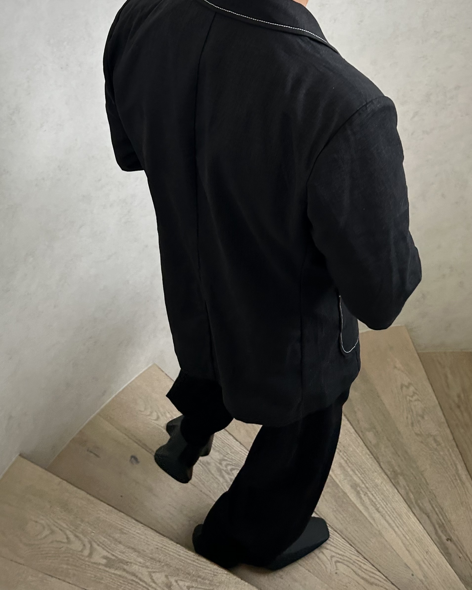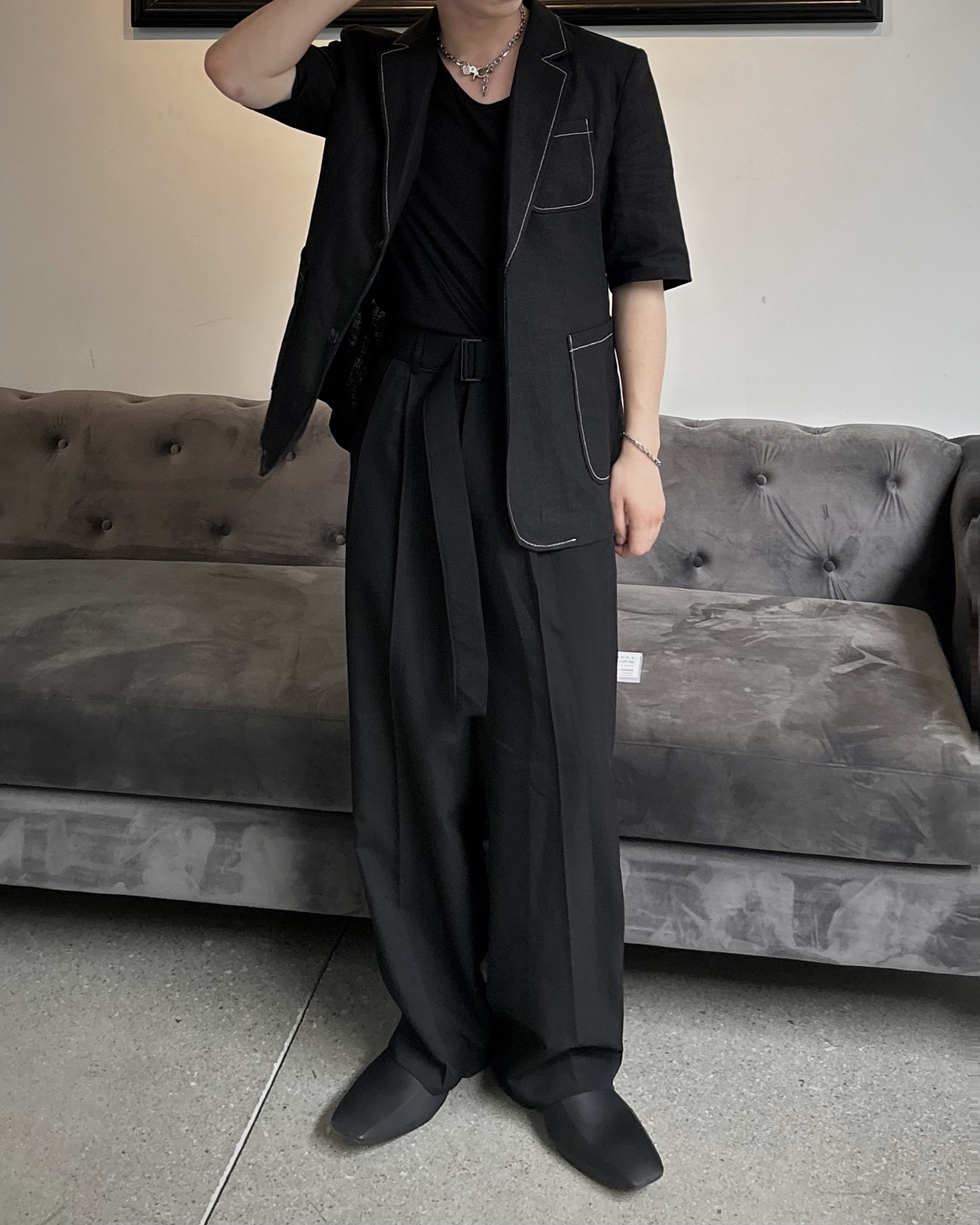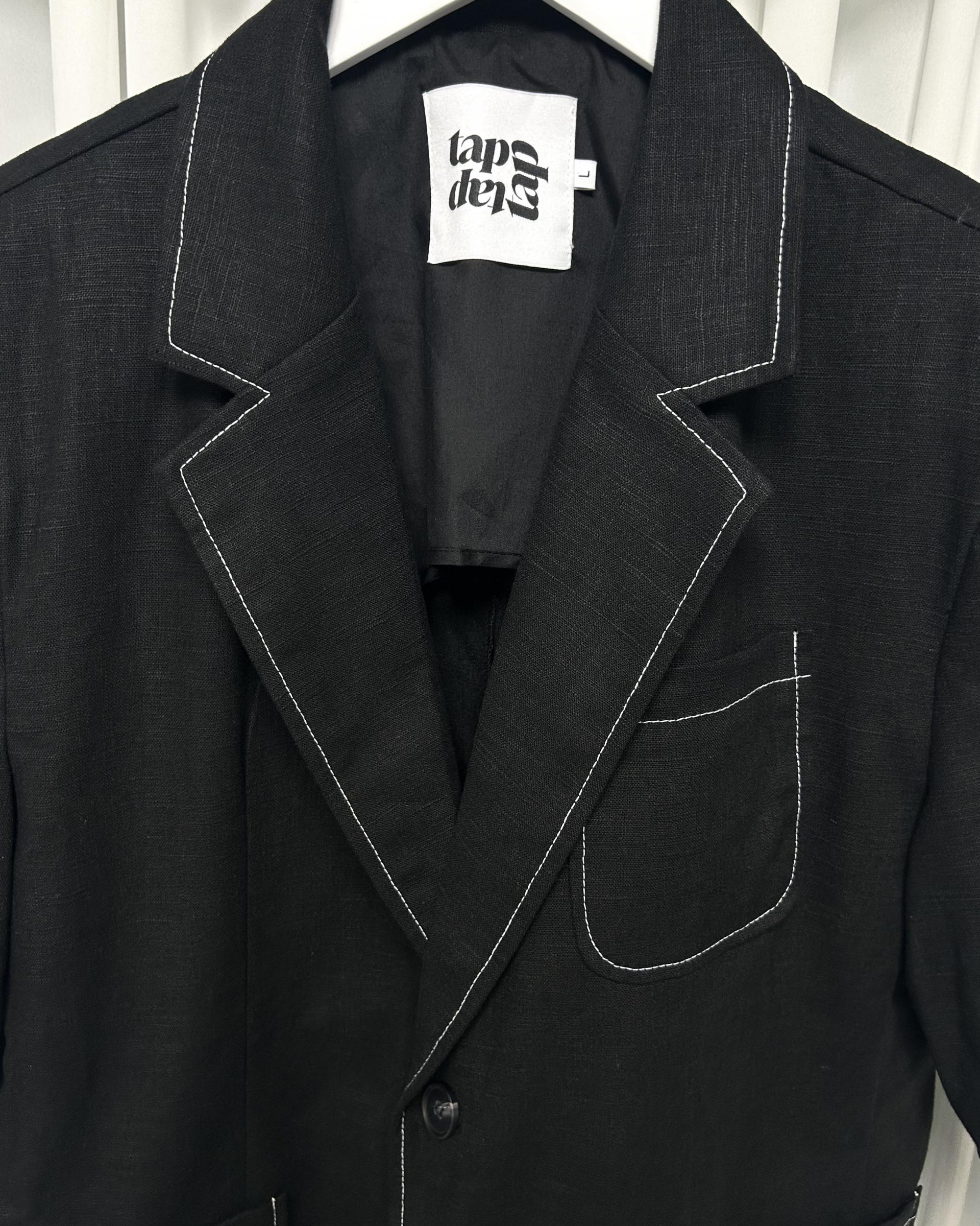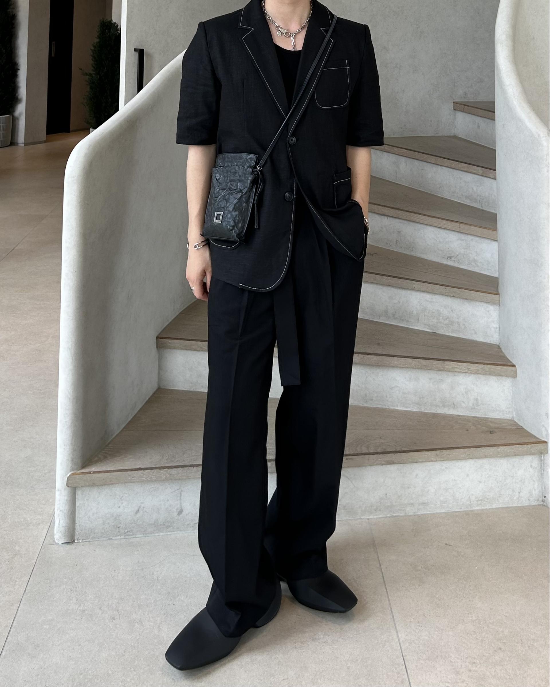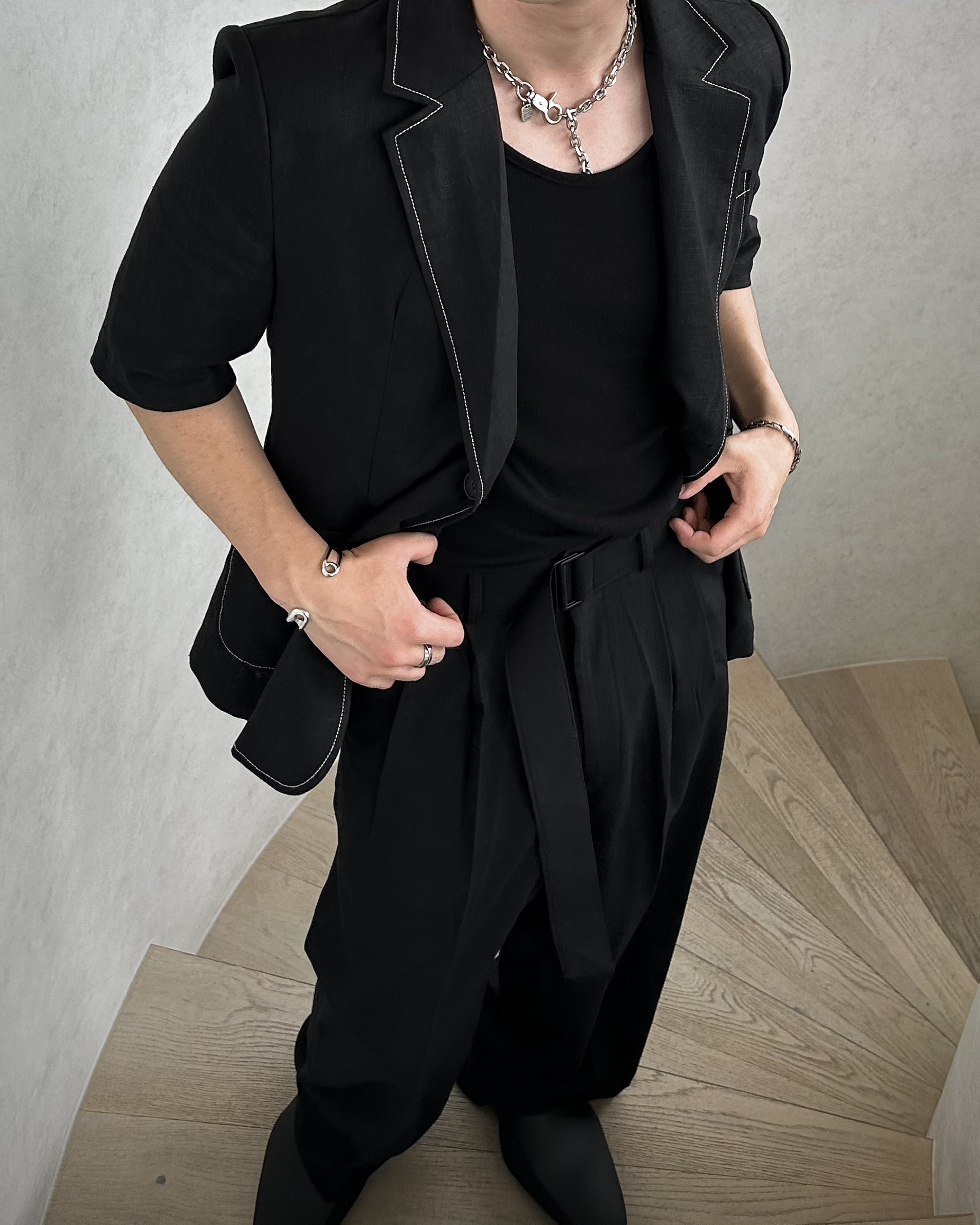스티치 라인의 디테일이 들어간 린넨 반팔 자켓 입니다.