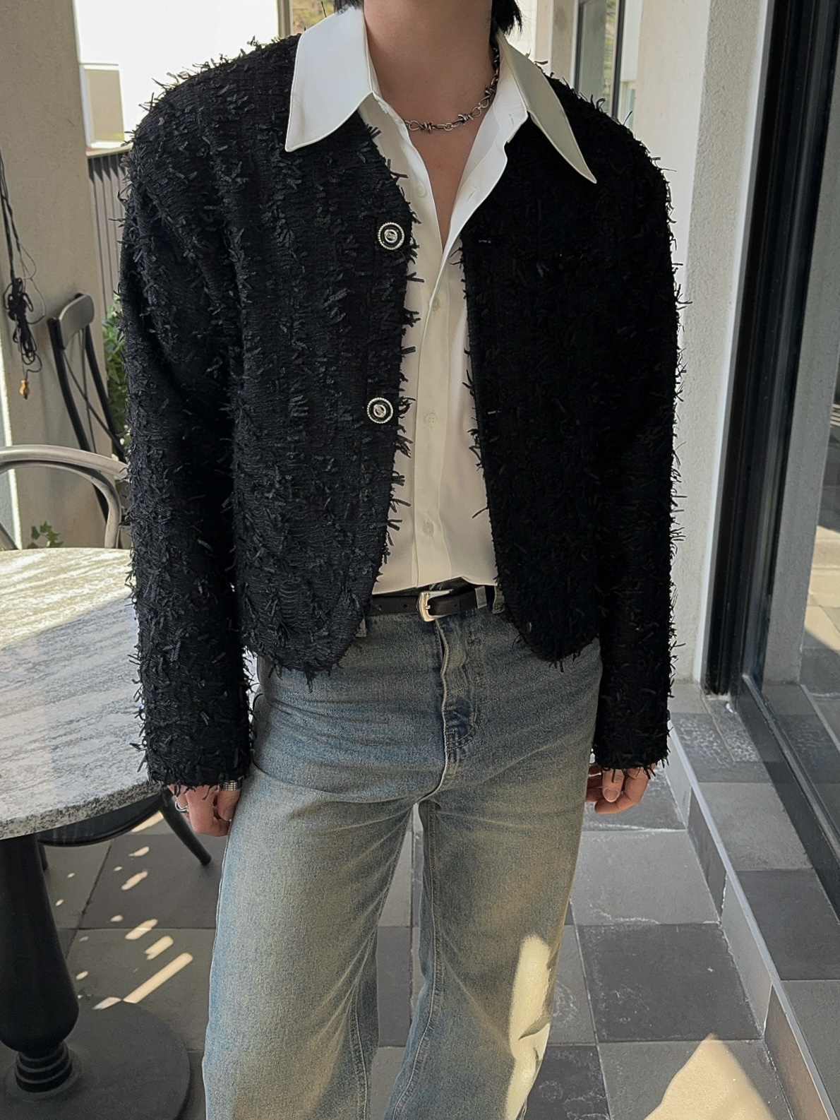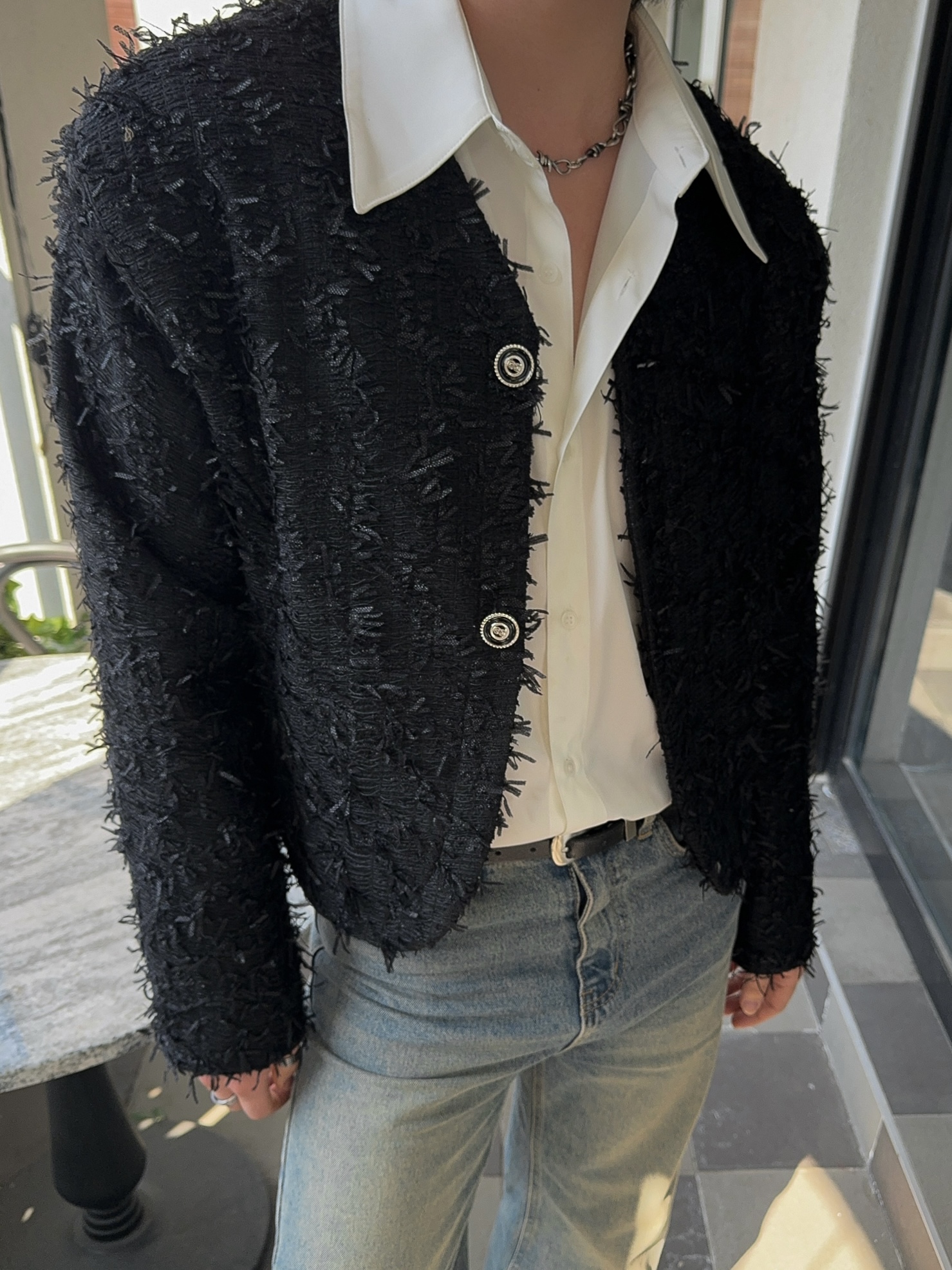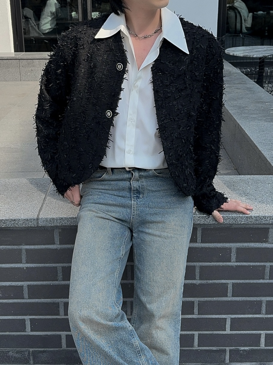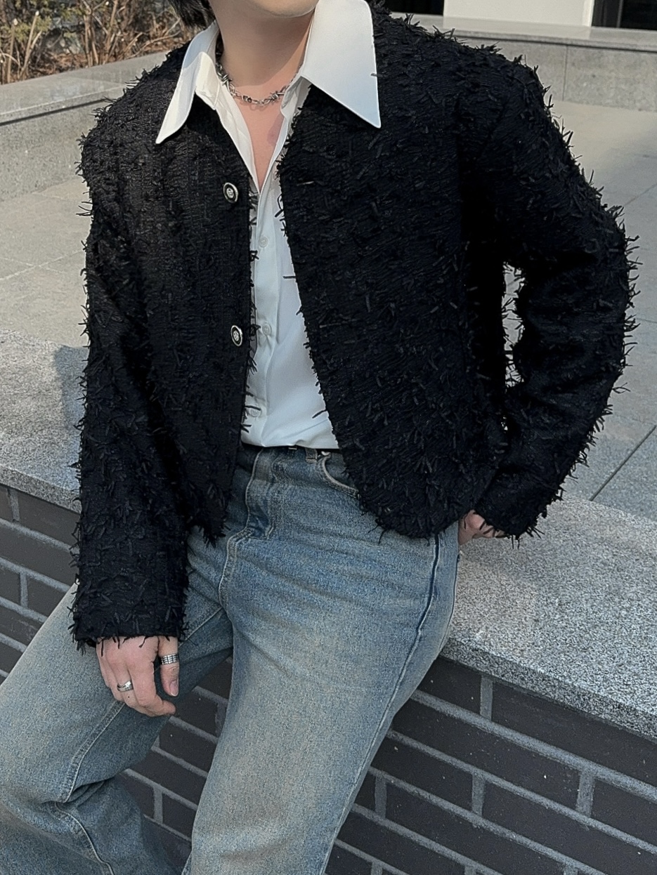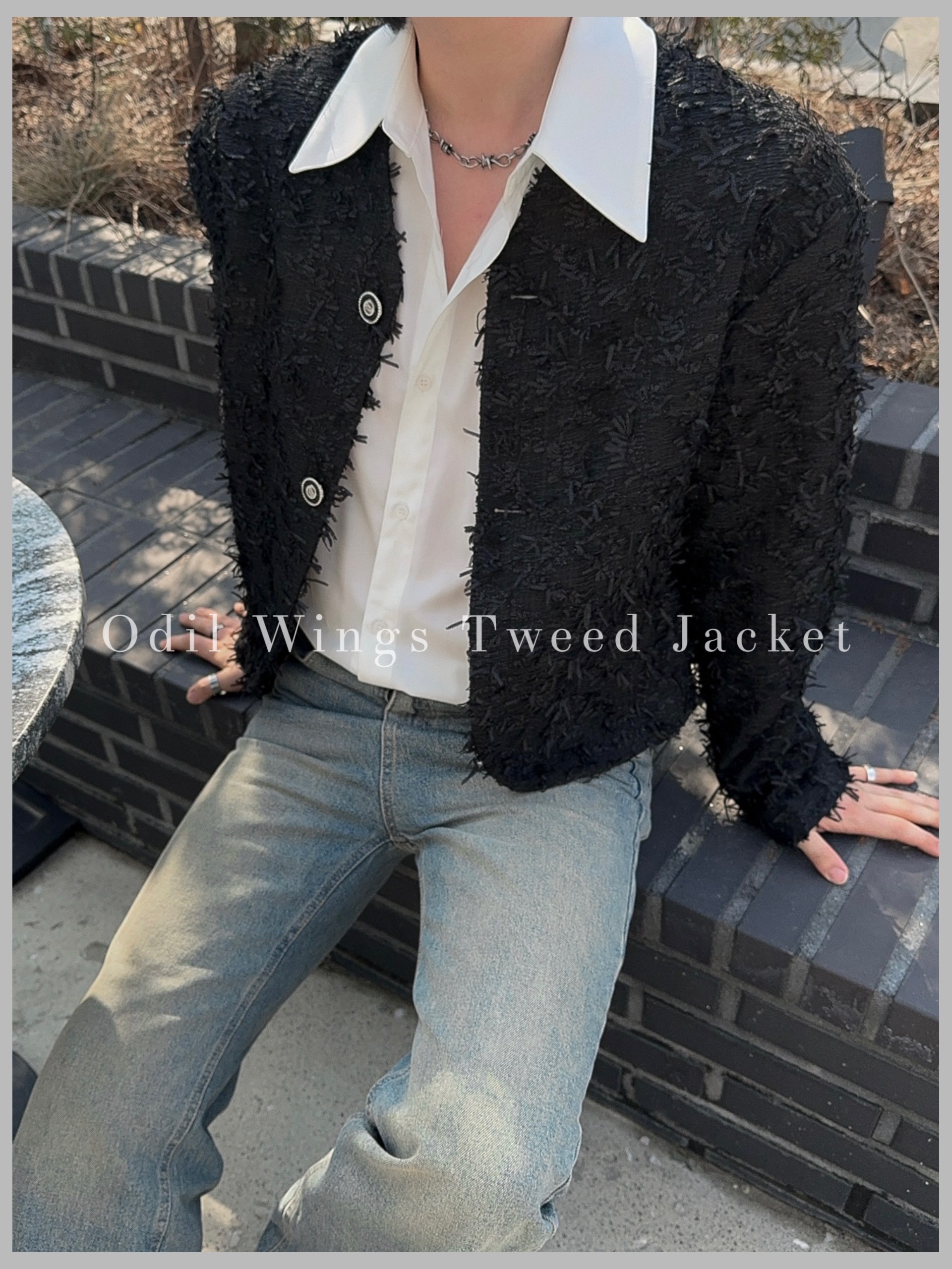 -유니크한 오딜 소재감의 트위드 자켓