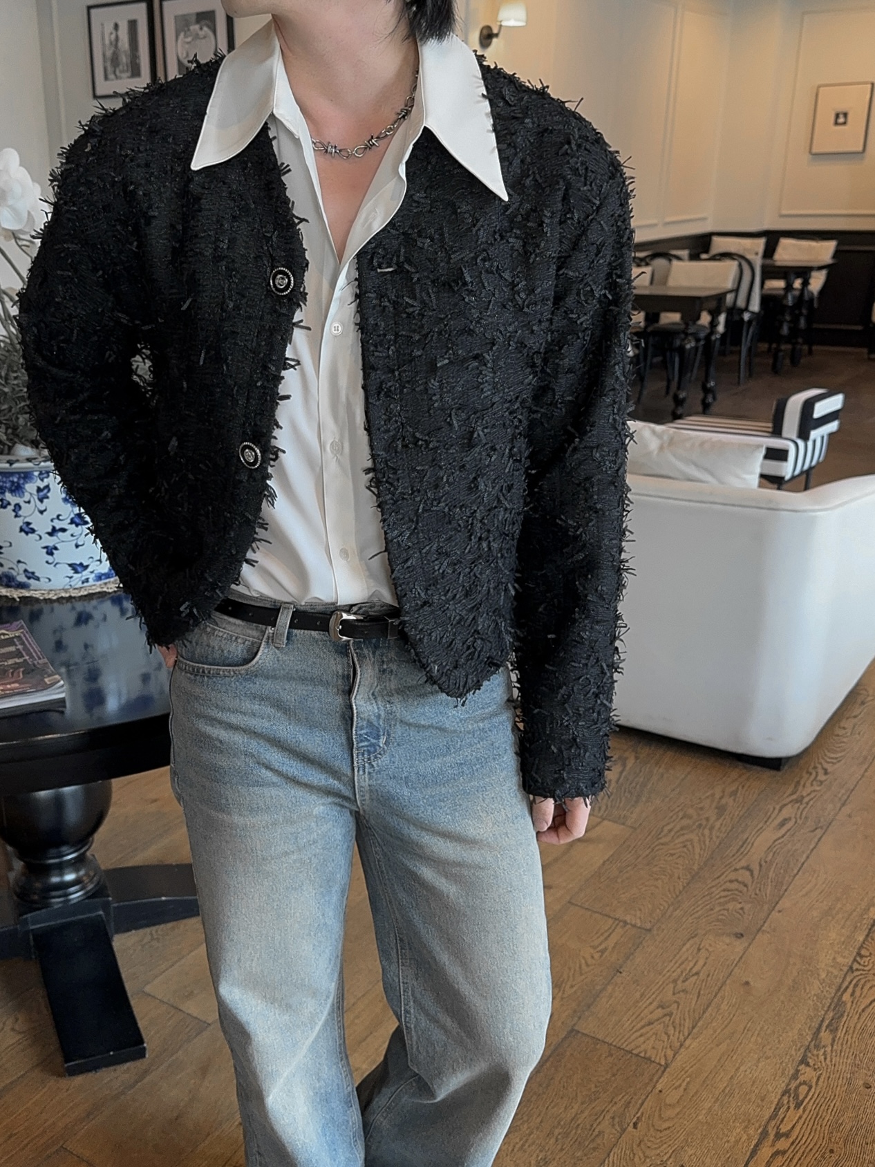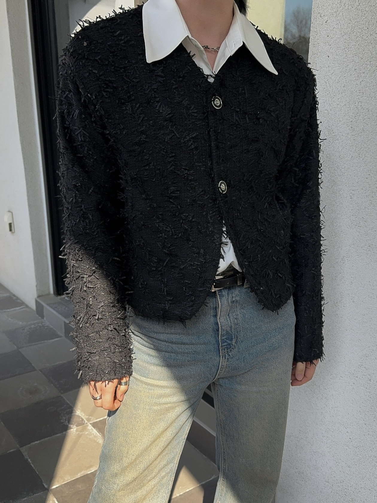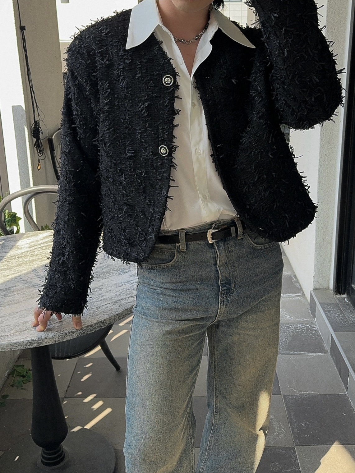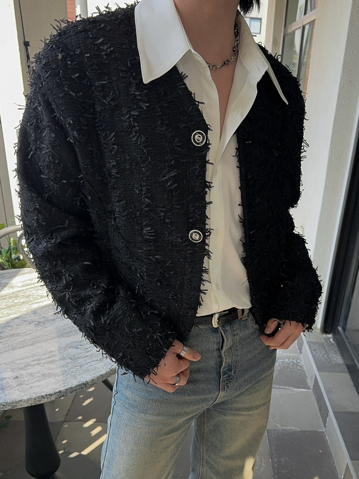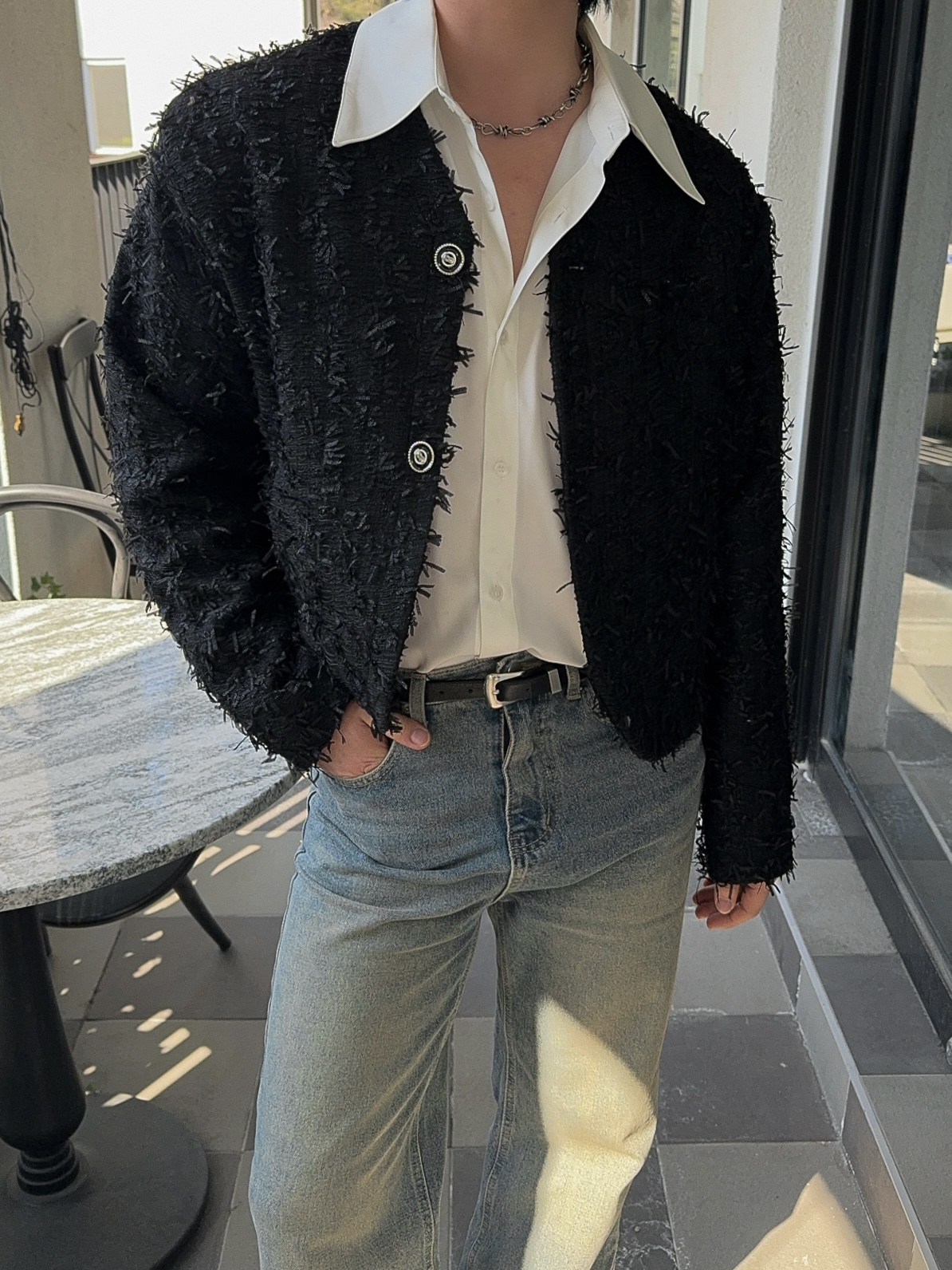 -유니크한 오딜 소재감의 트위드 자켓
