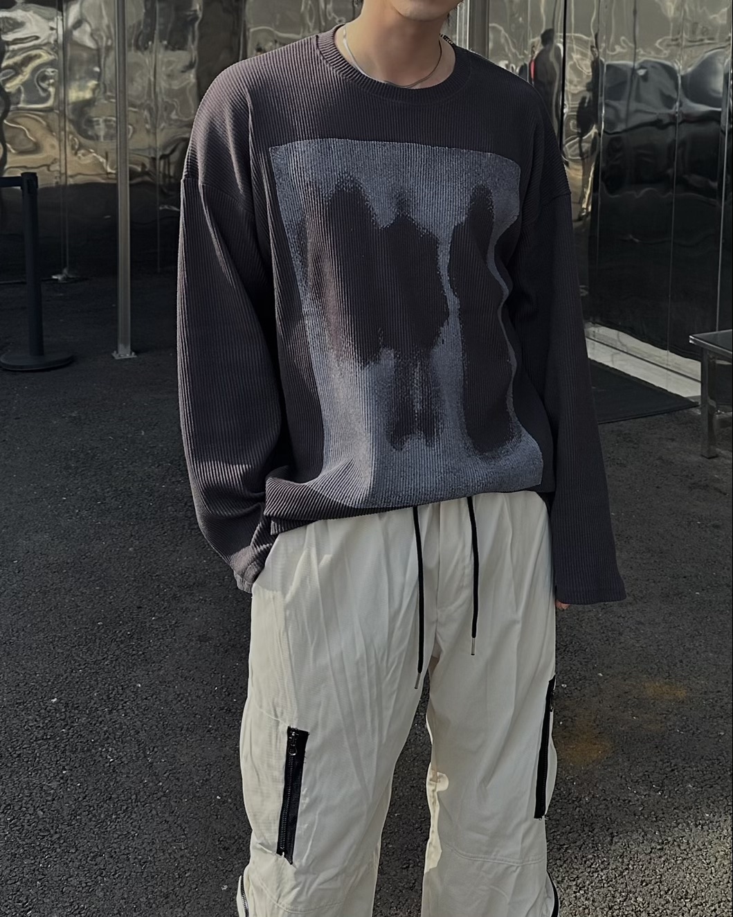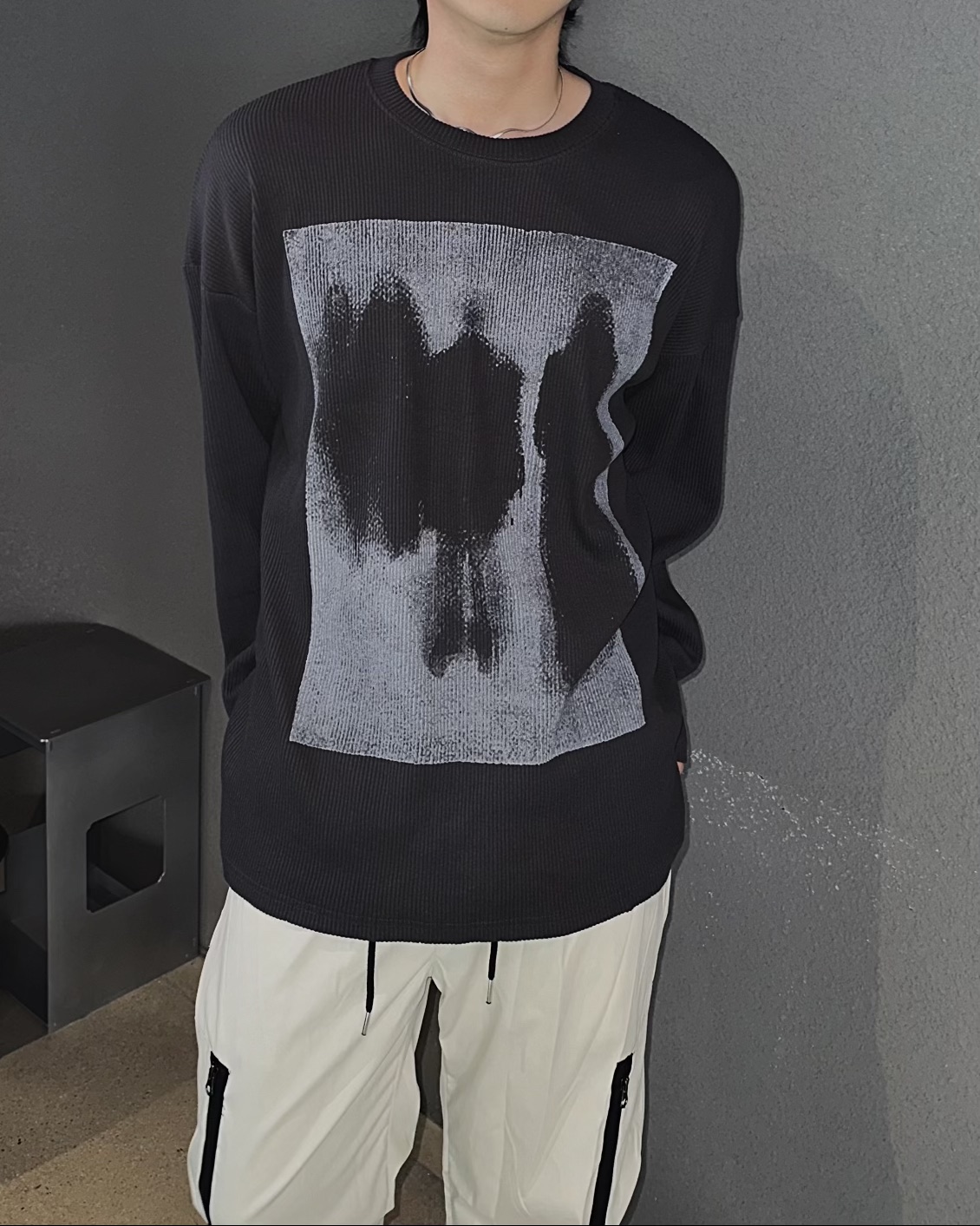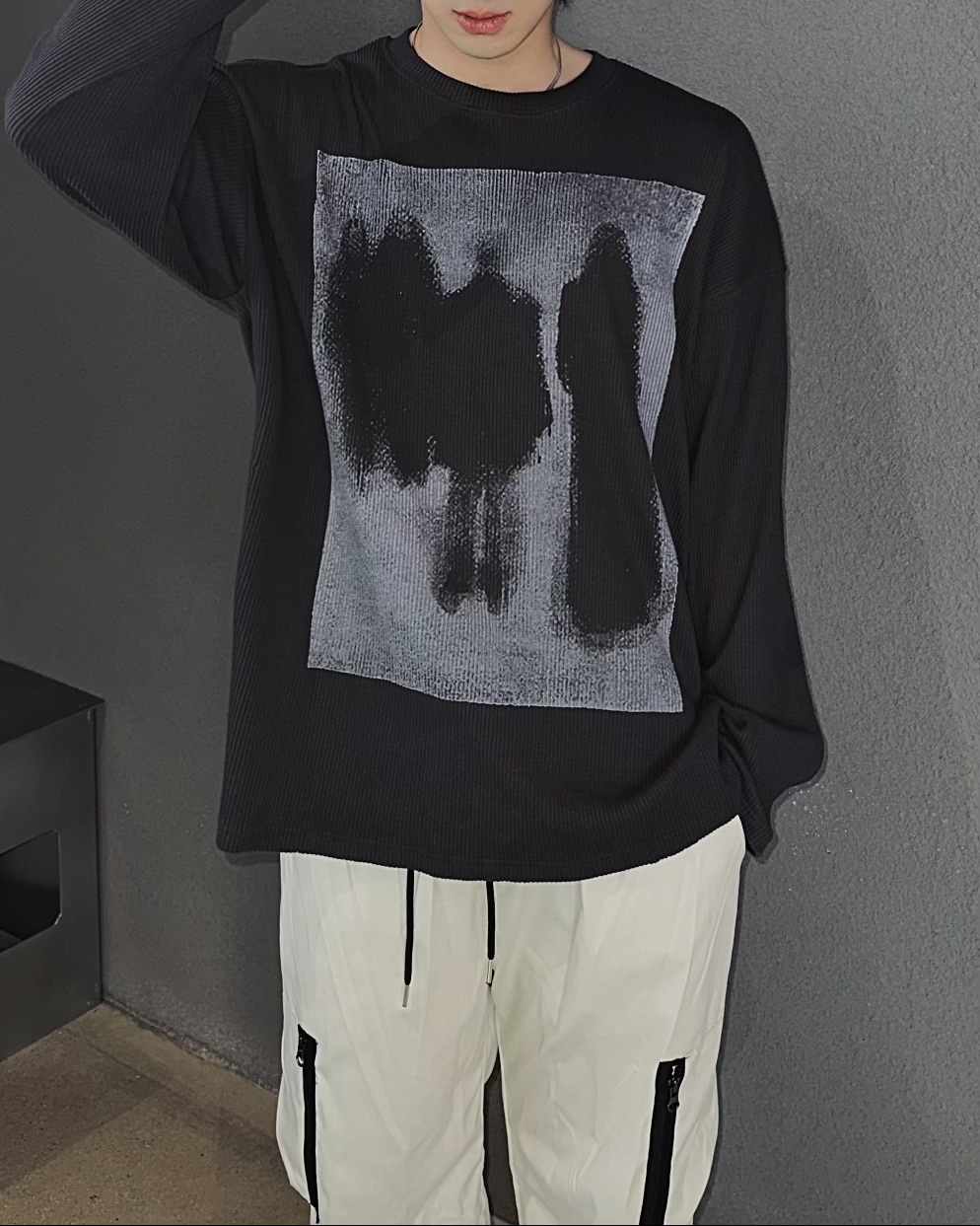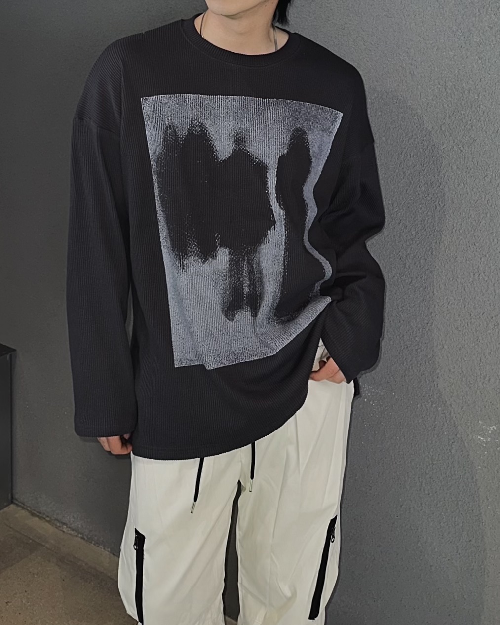 -유니크한 쉐도우 프린팅이 매력적인 데일리한 골지 티셔츠