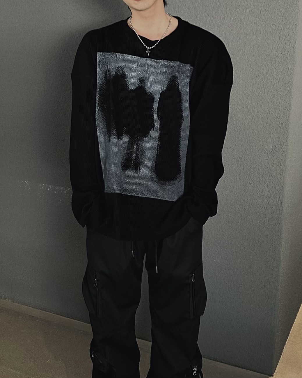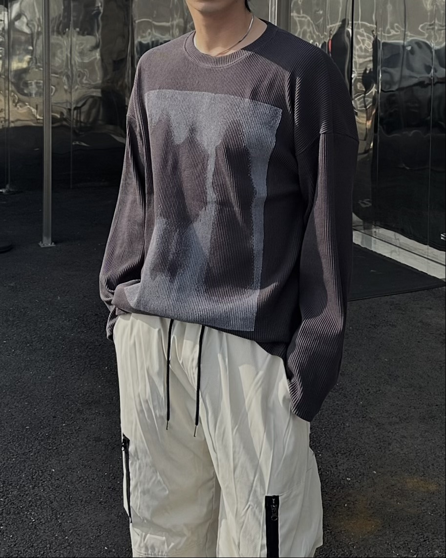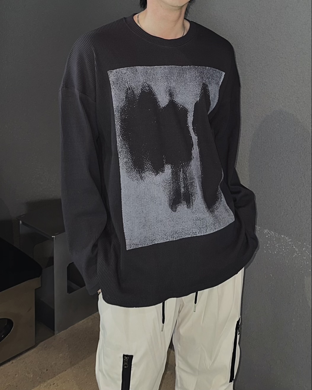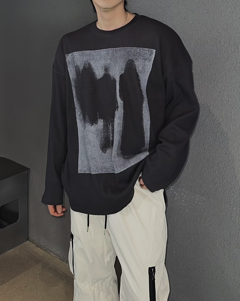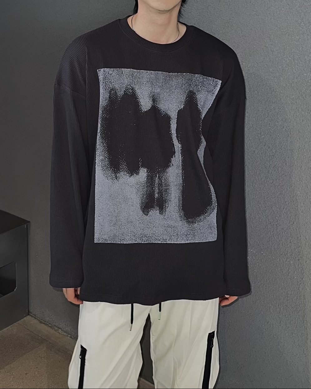 -유니크한 쉐도우 프린팅이 매력적인 데일리한 골지 티셔츠