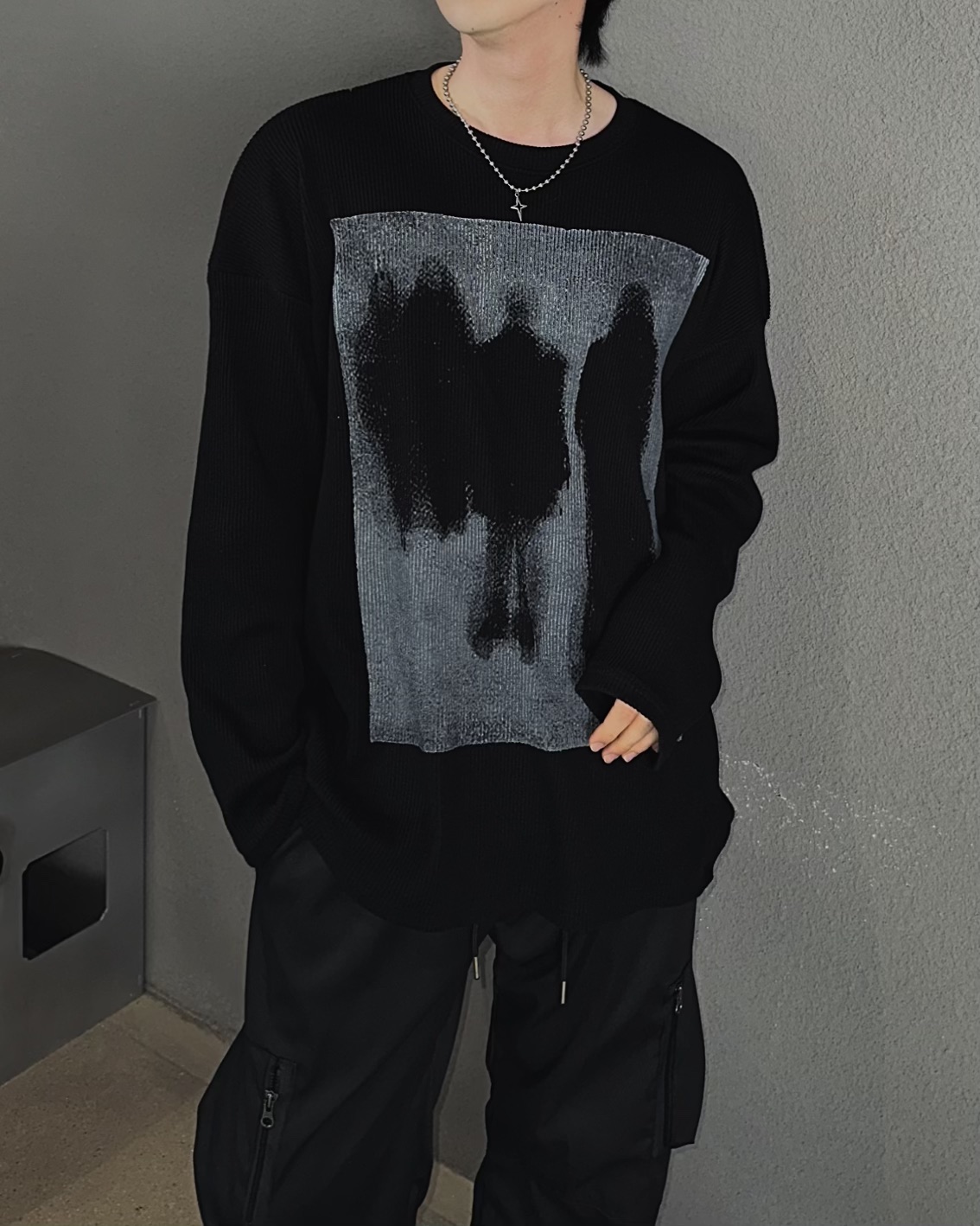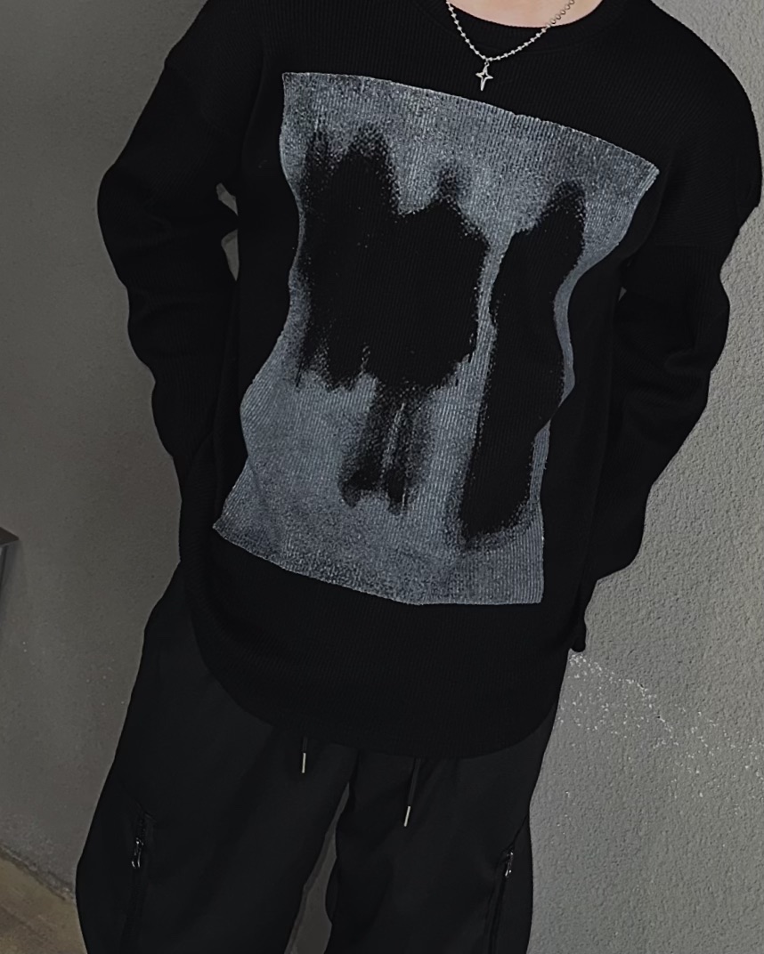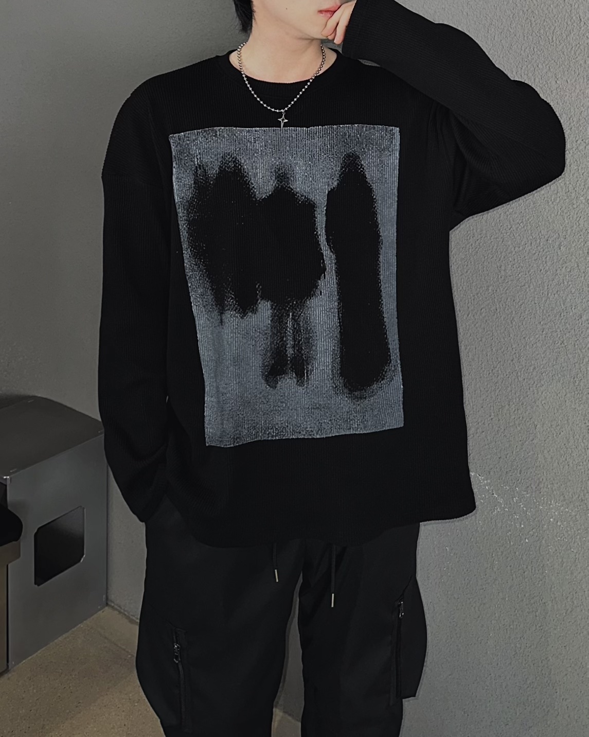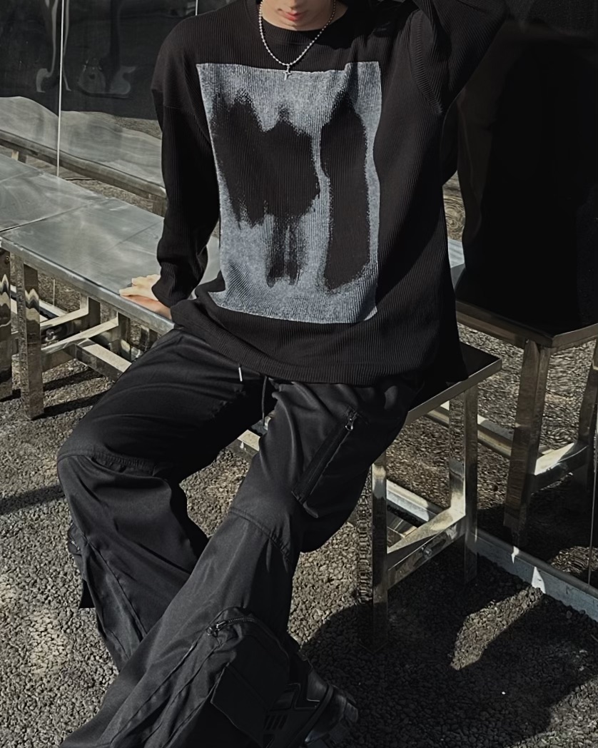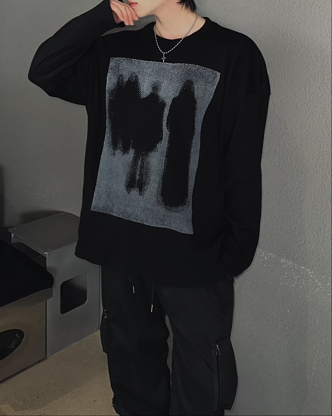 -유니크한 쉐도우 프린팅이 매력적인 데일리한 골지 티셔츠