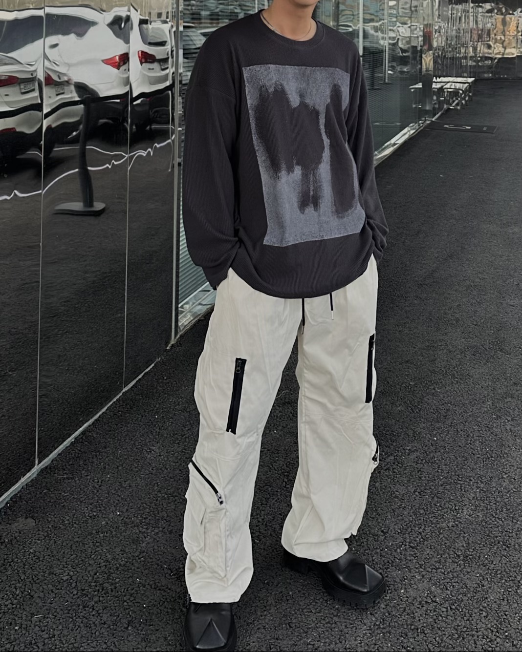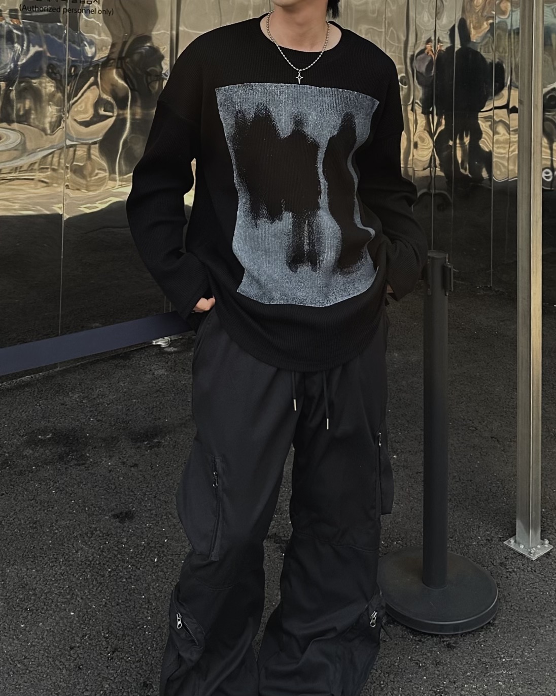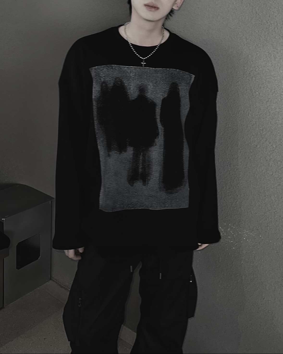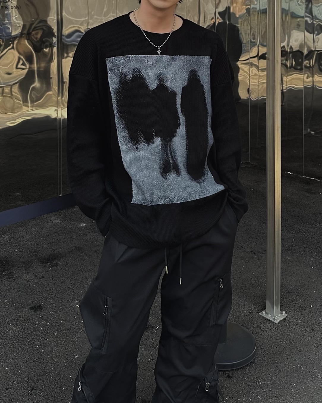-유니크한 쉐도우 프린팅이 매력적인 데일리한 골지 티셔츠