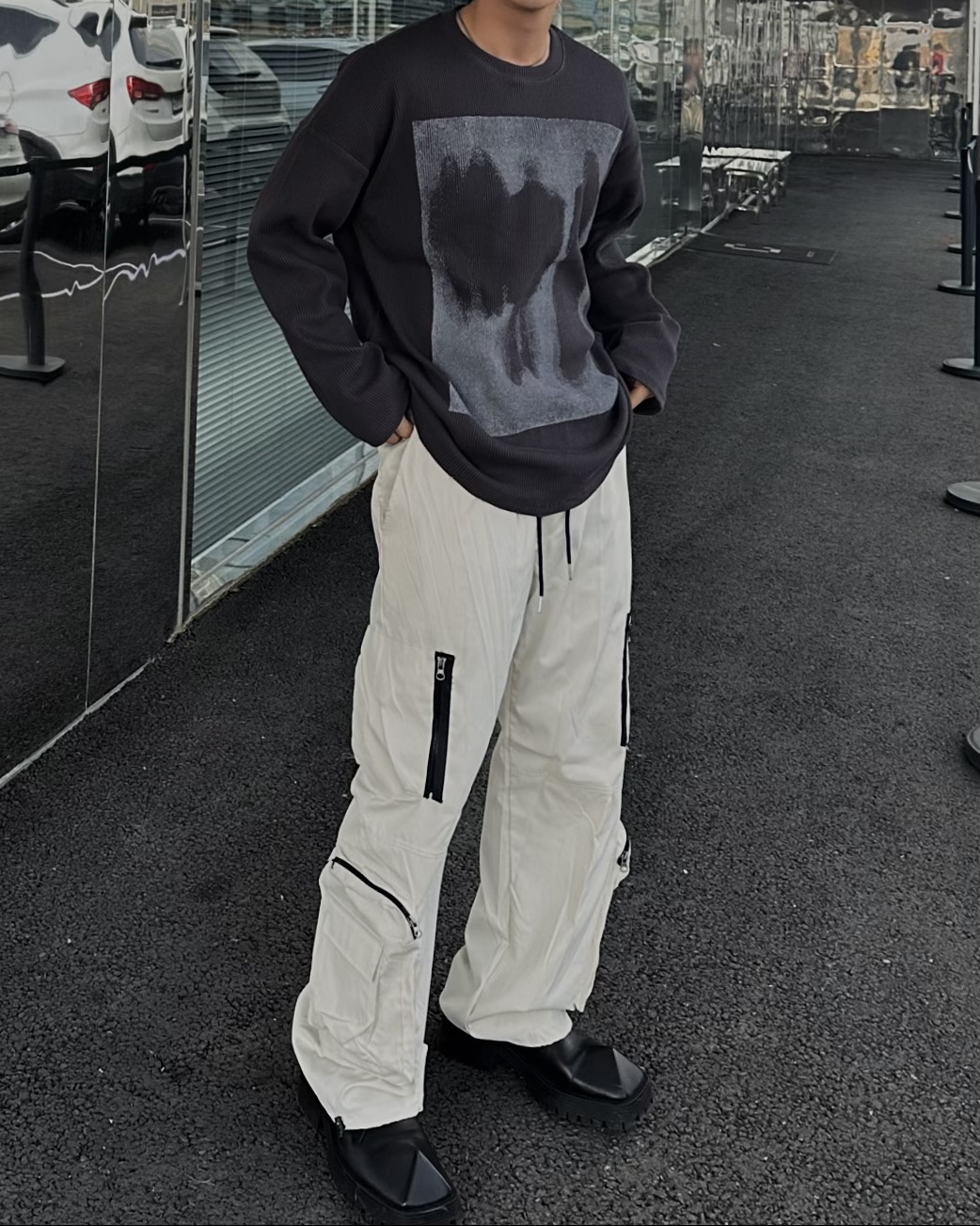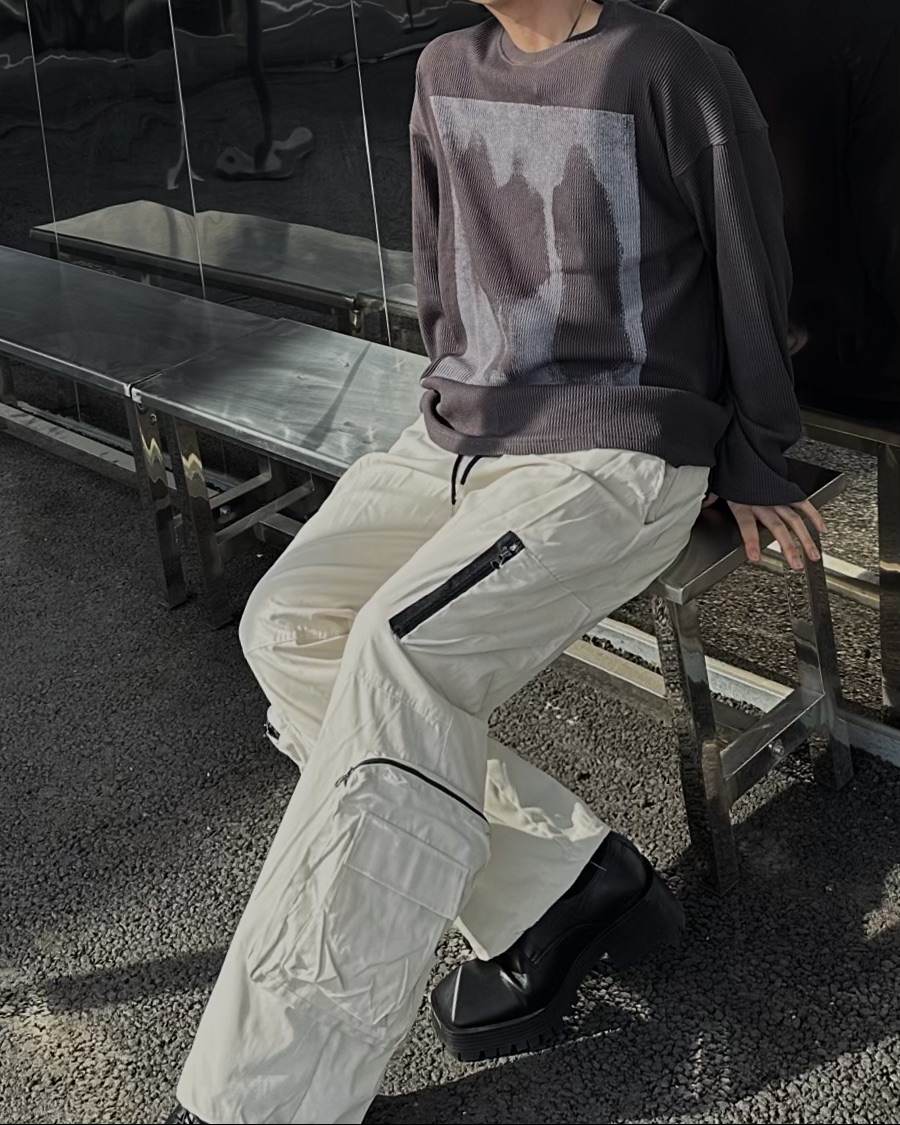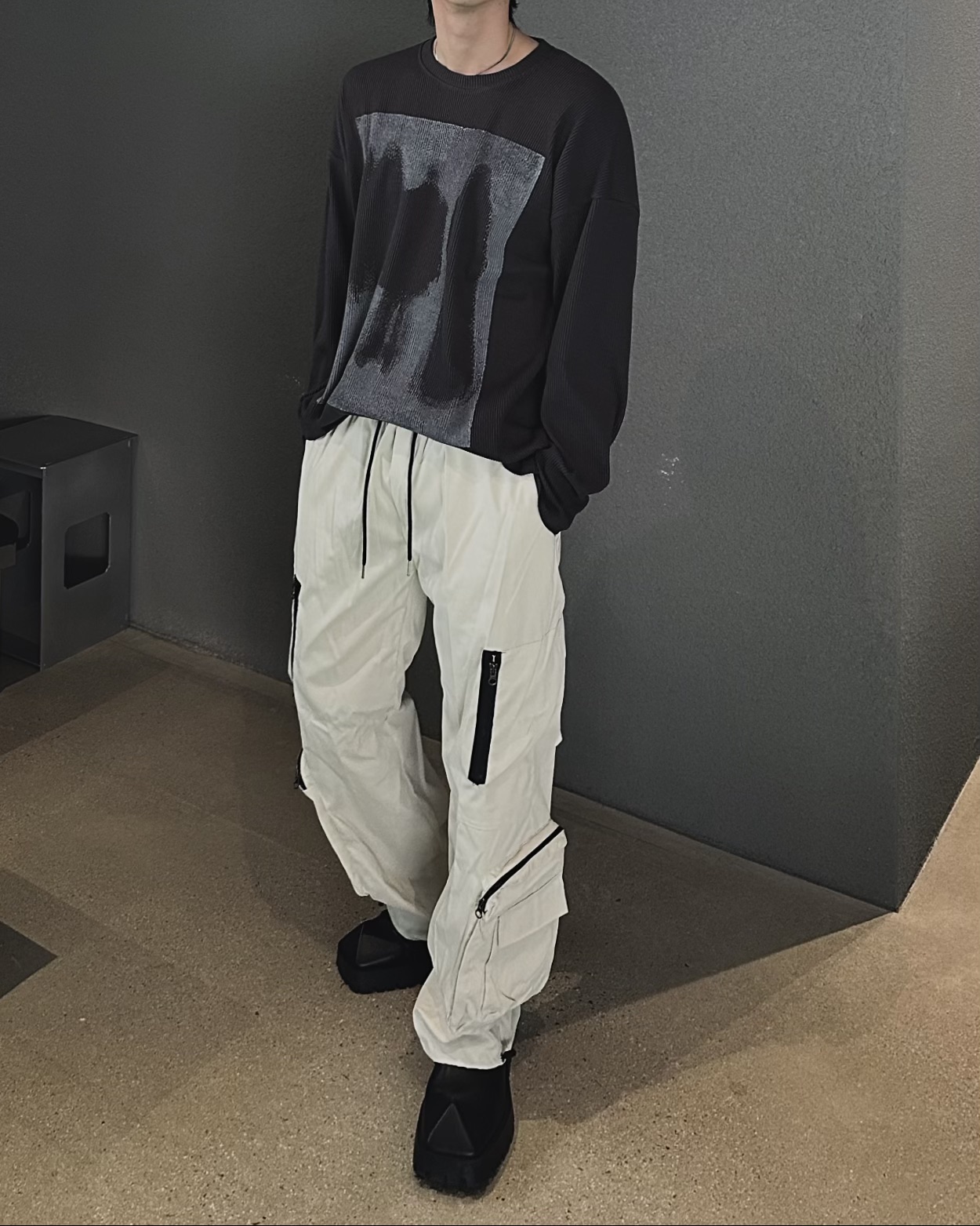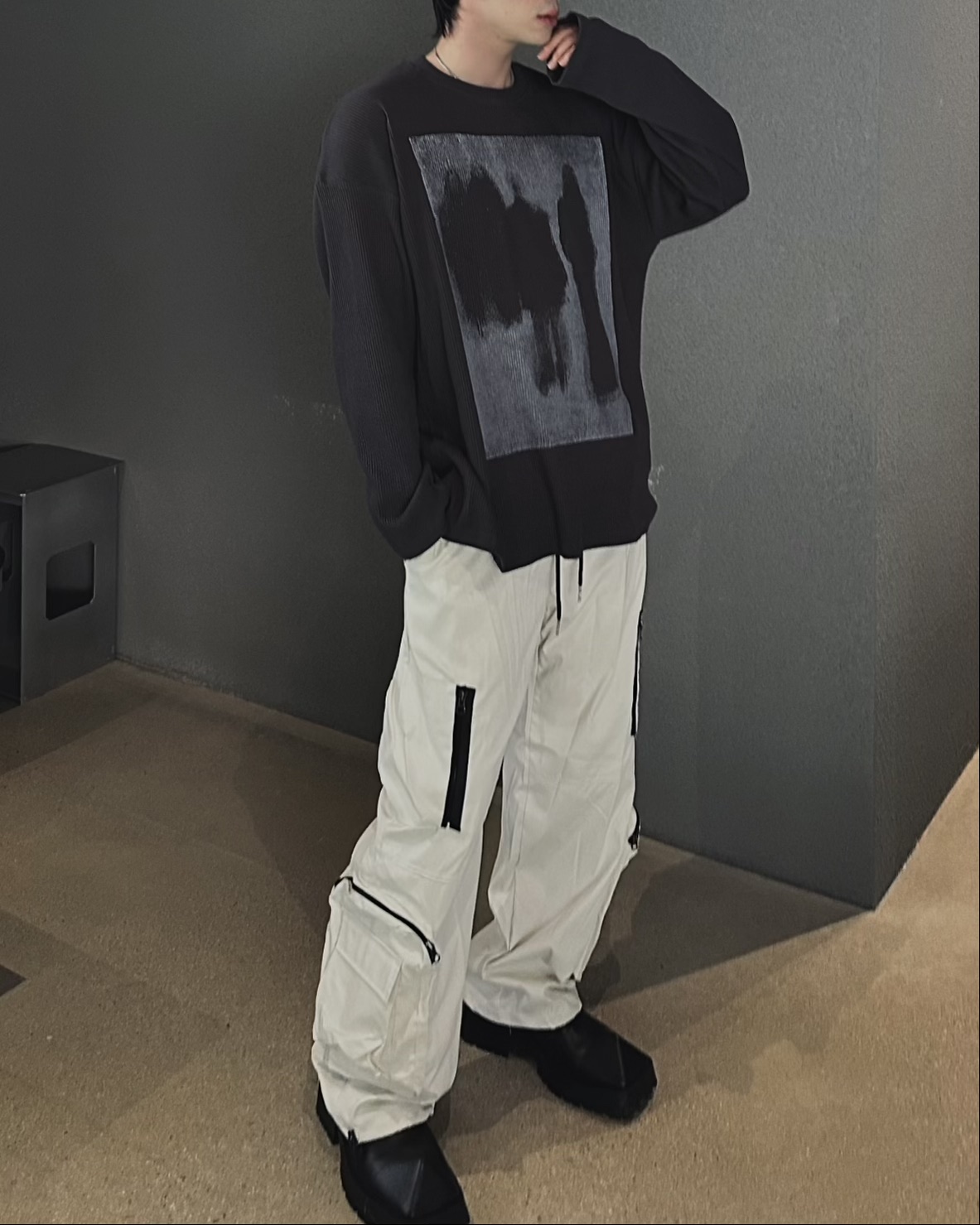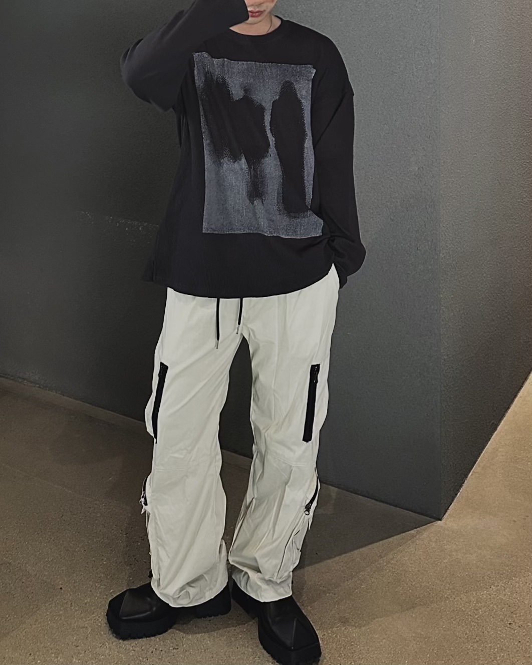 -유니크한 쉐도우 프린팅이 매력적인 데일리한 골지 티셔츠