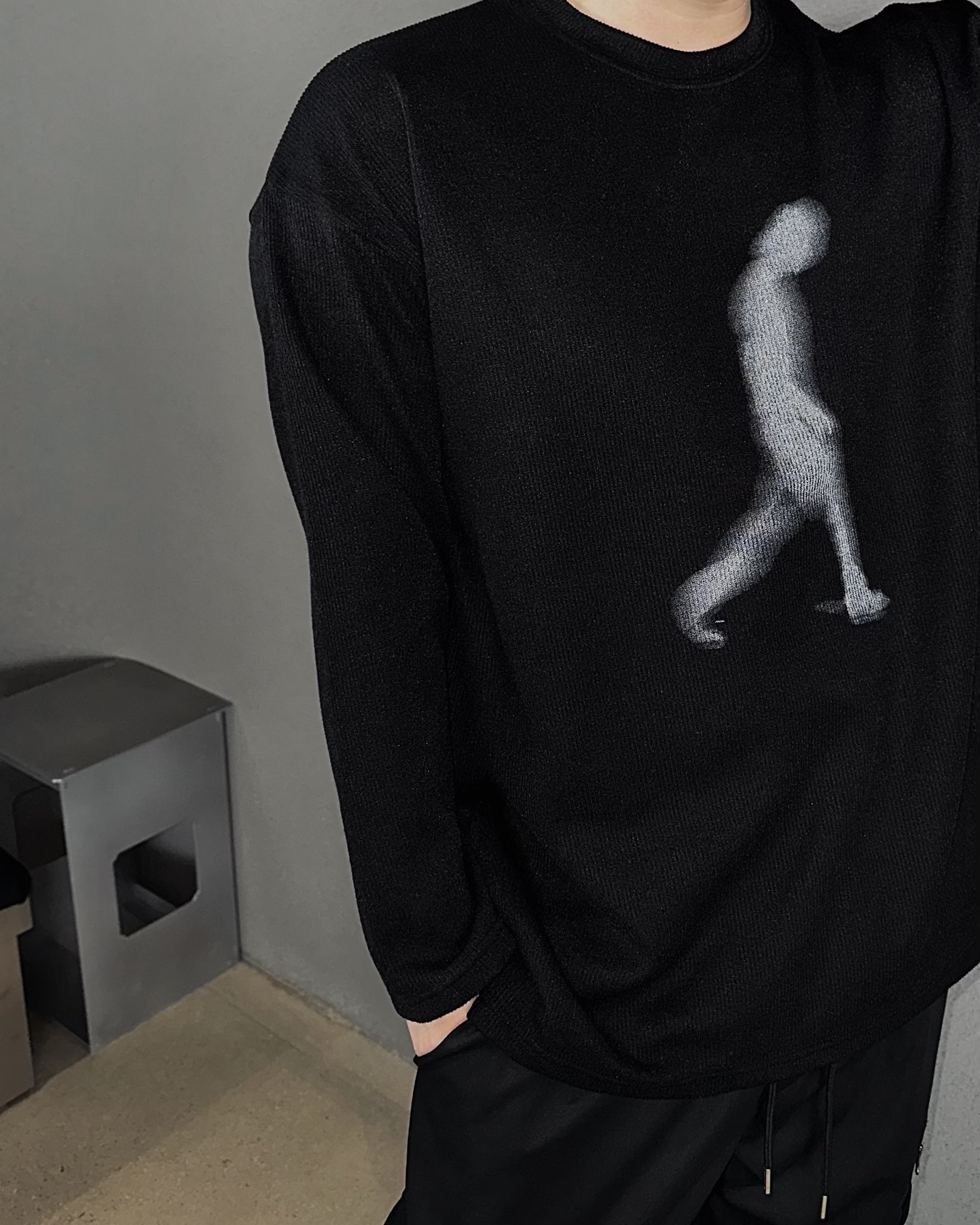 -니트지로 제작된 슬리브한 티셔츠