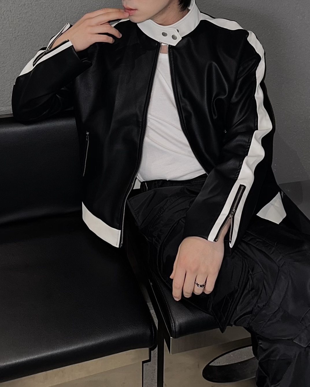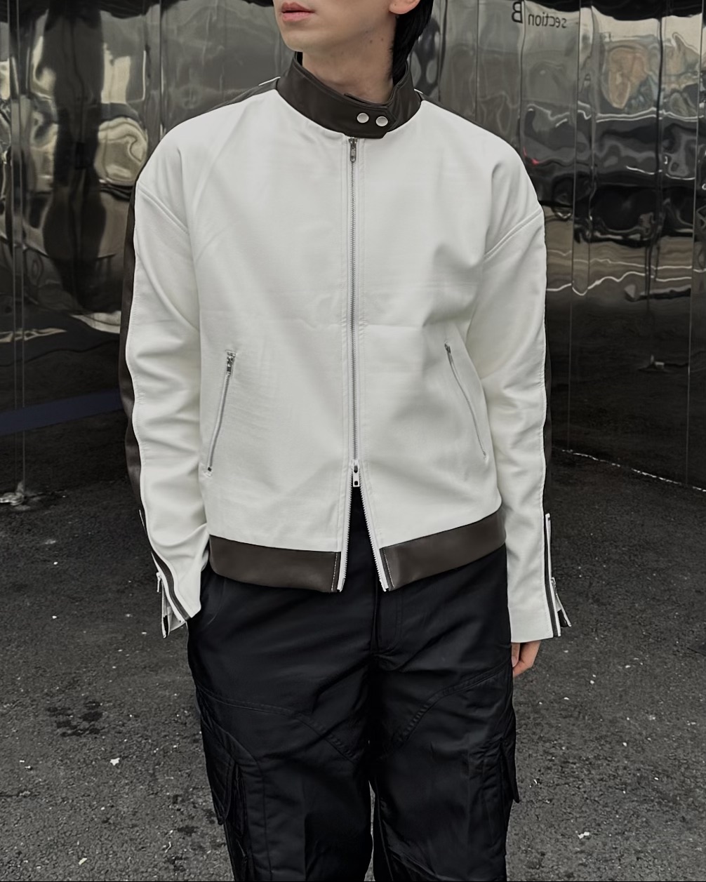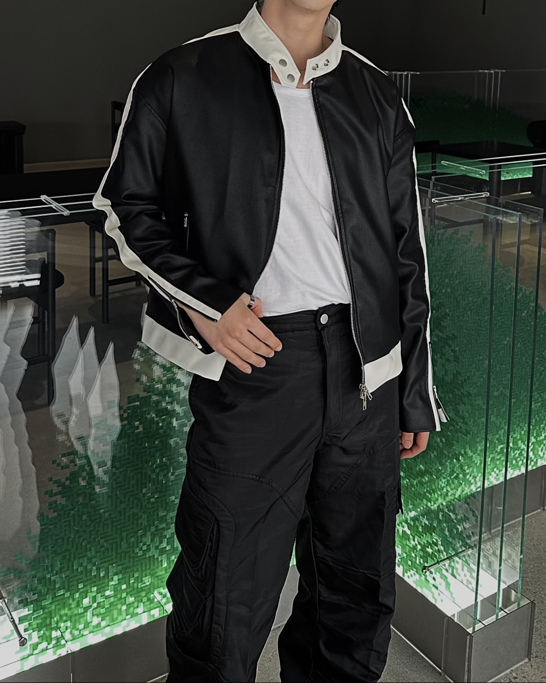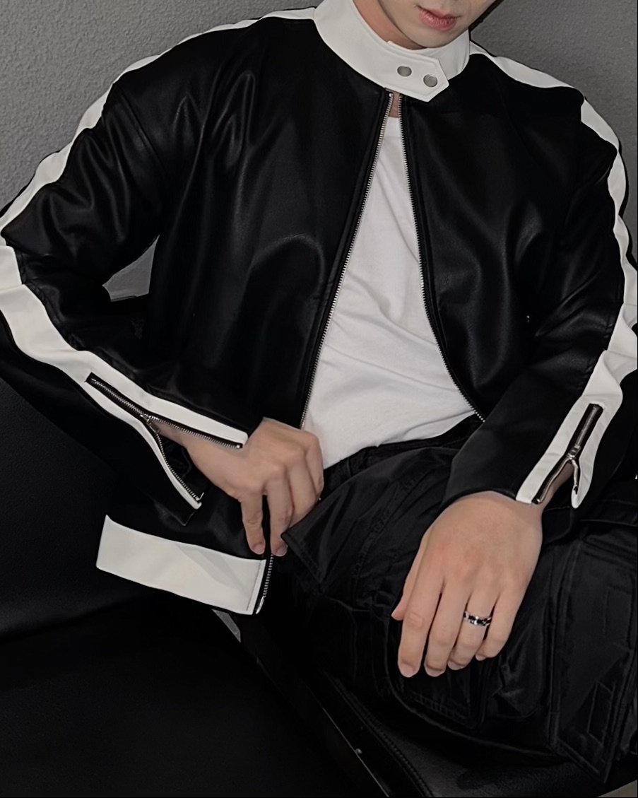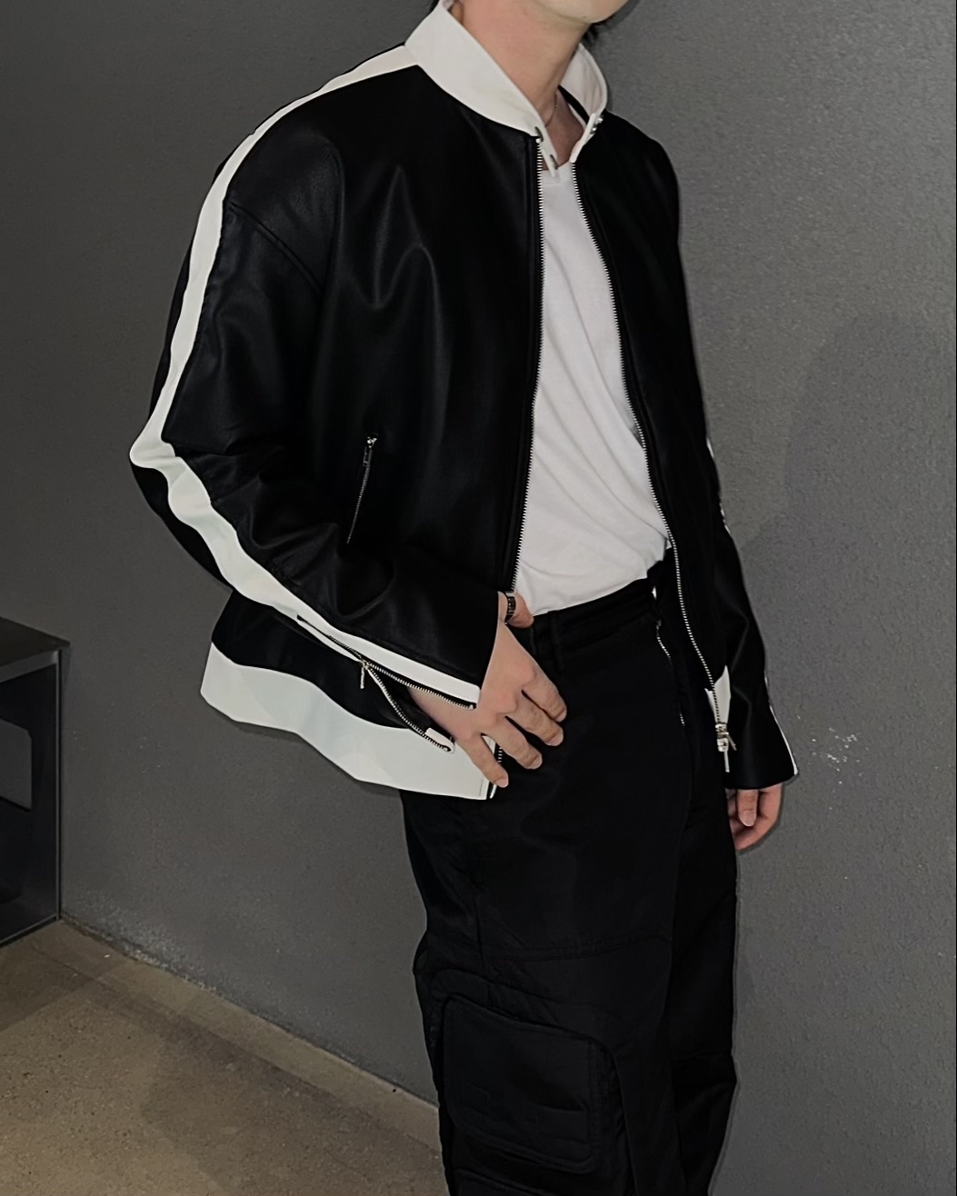 -군더더기 없는 핏감으로 봄 , 가을 걸쳐입기 좋은 레더 자켓