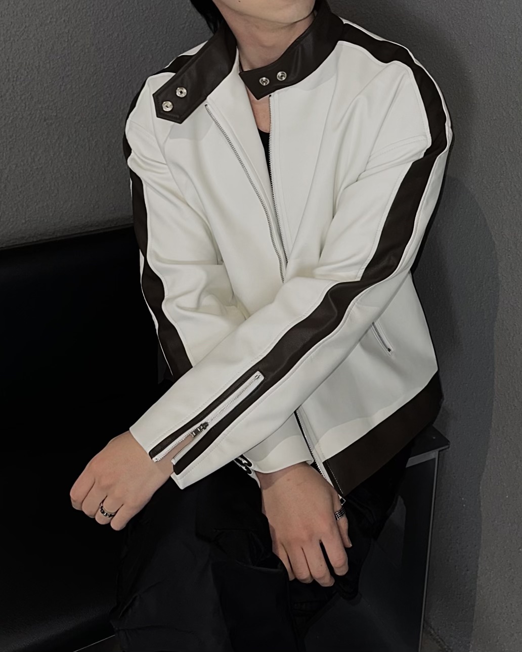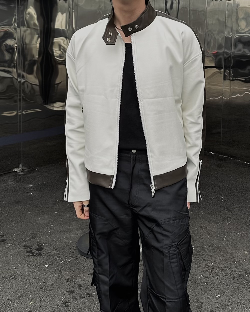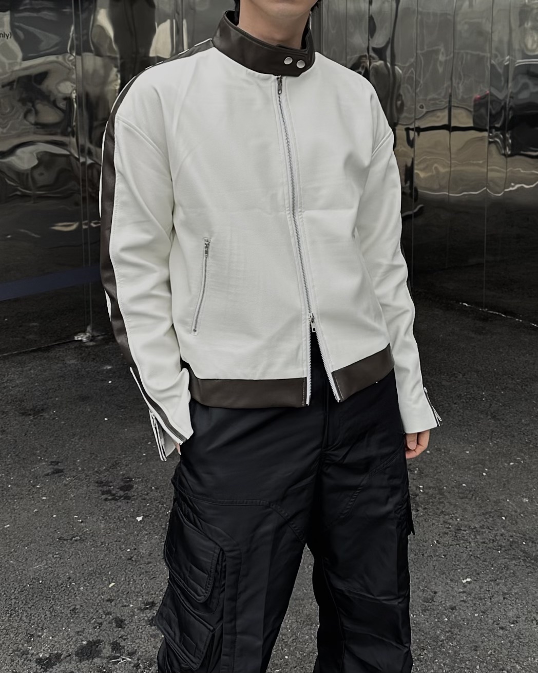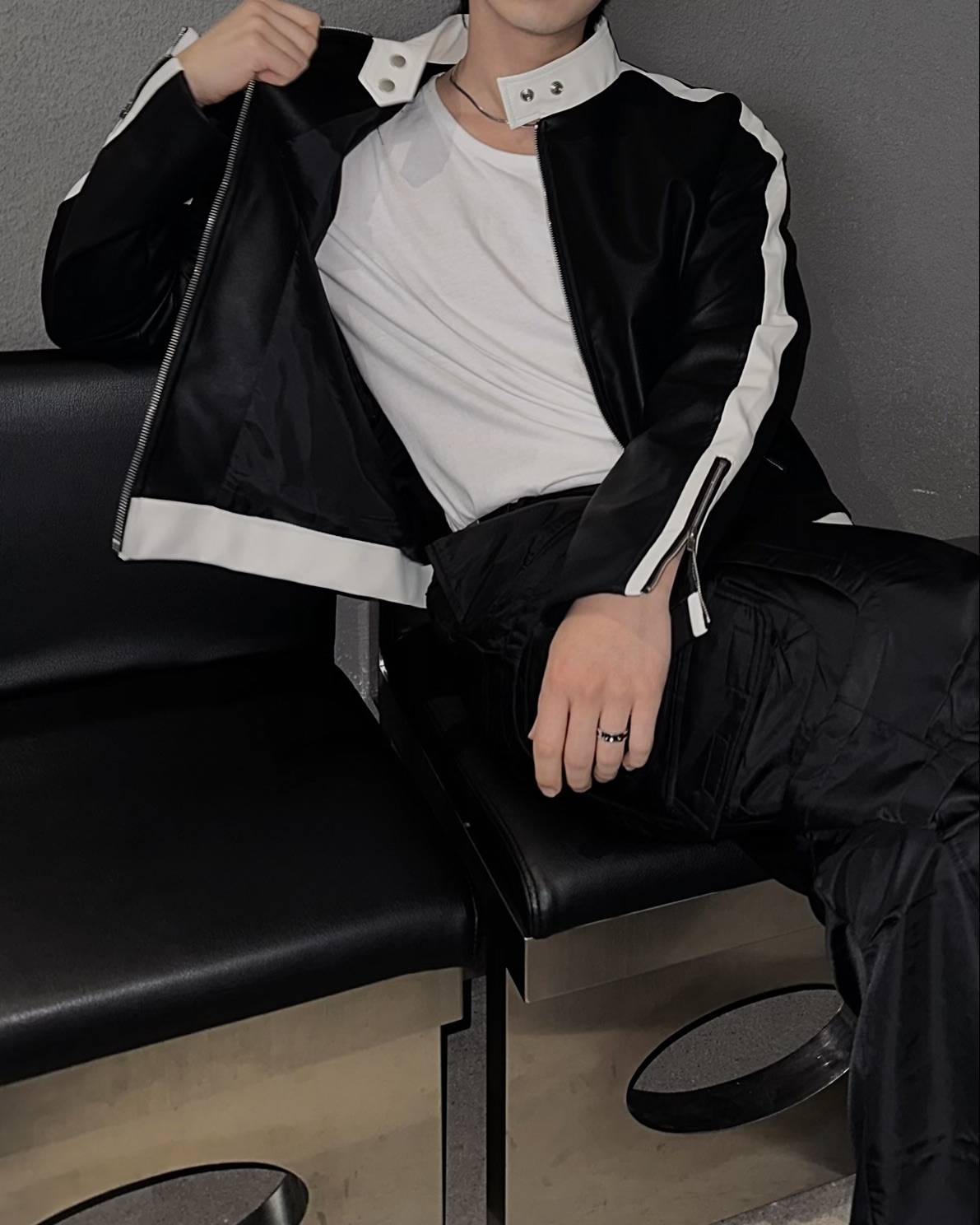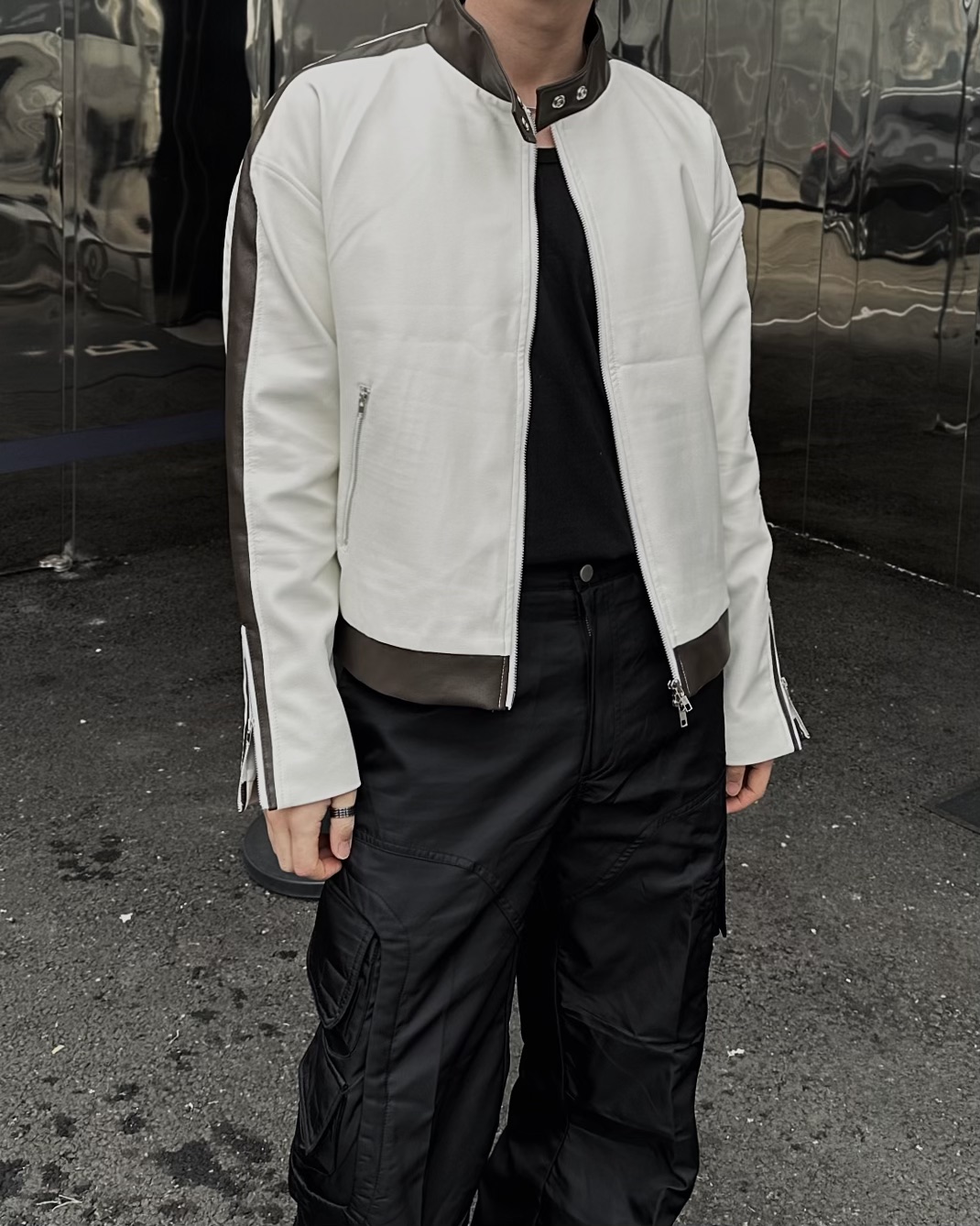 -군더더기 없는 핏감으로 봄 , 가을 걸쳐입기 좋은 레더 자켓