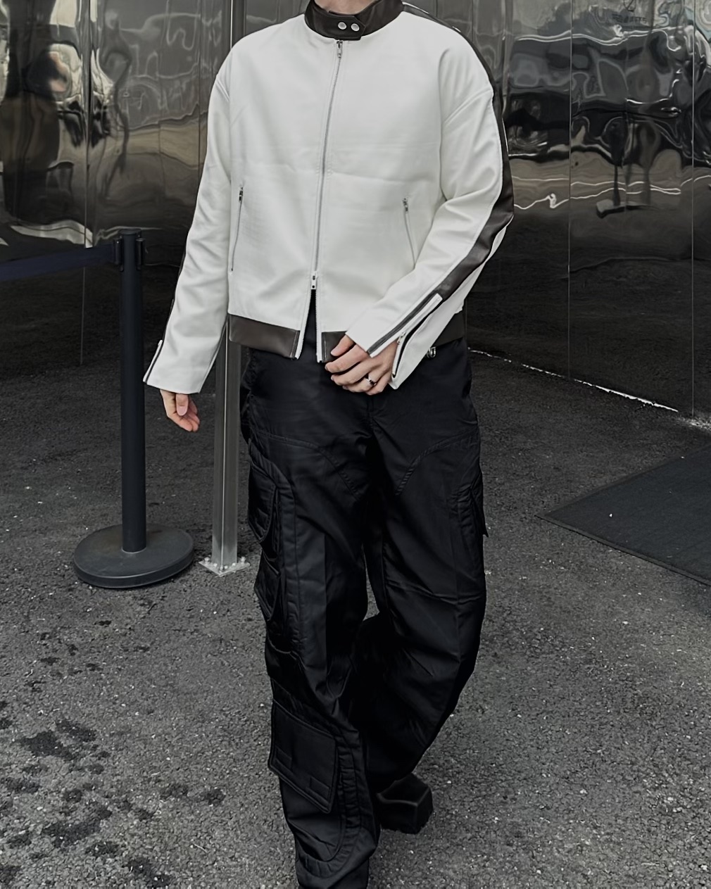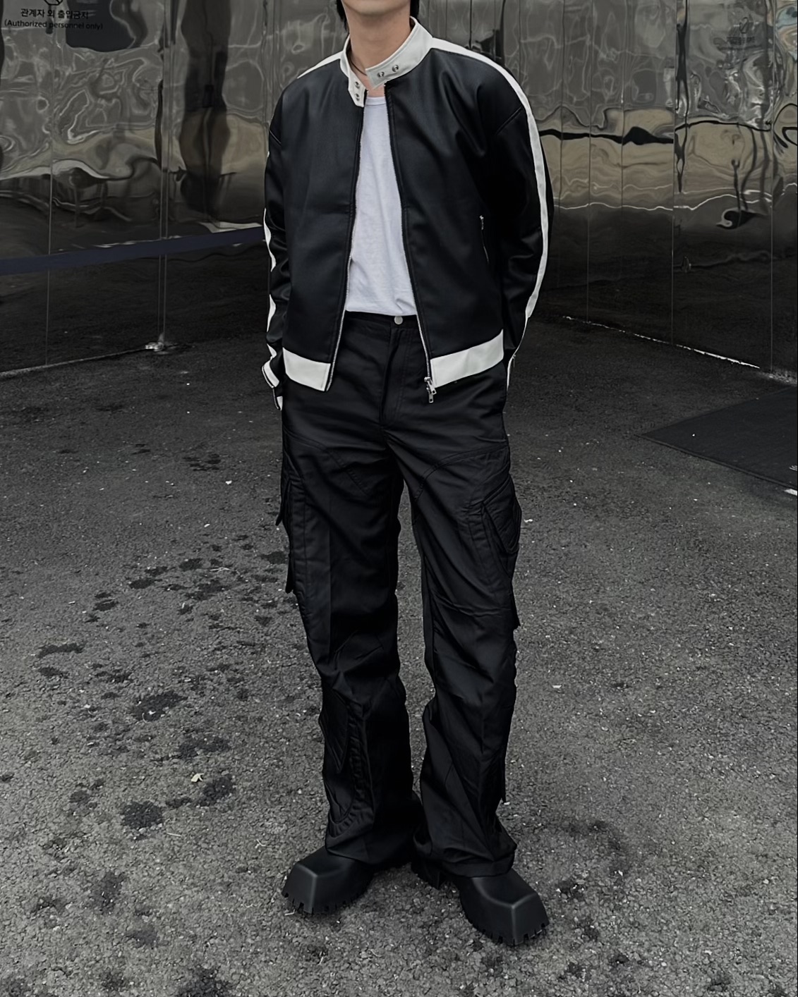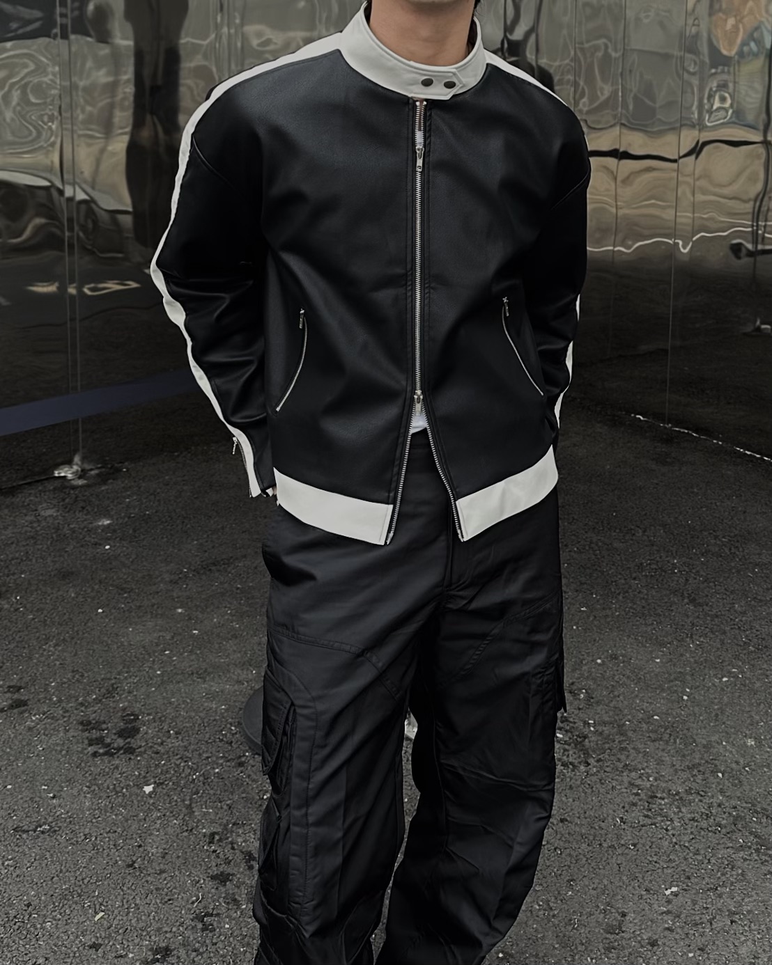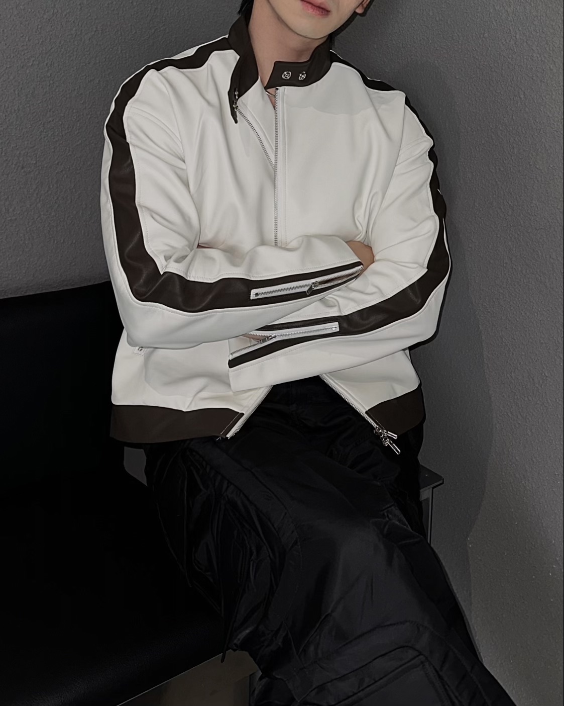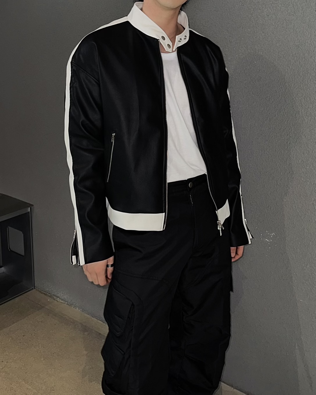 -군더더기 없는 핏감으로 봄 , 가을 걸쳐입기 좋은 레더 자켓