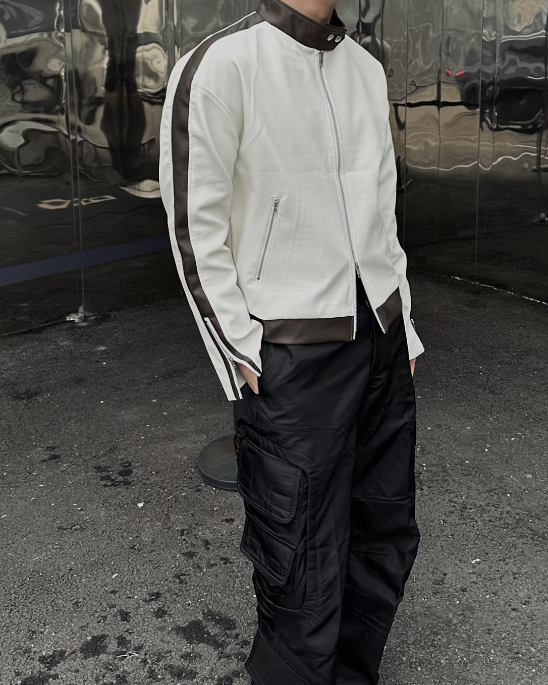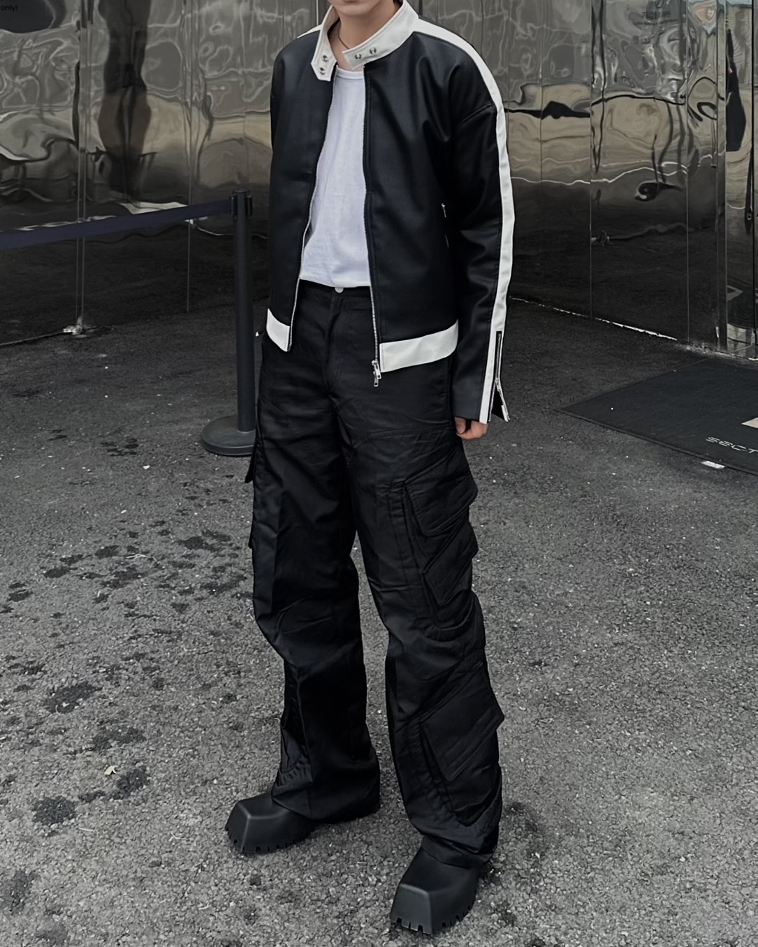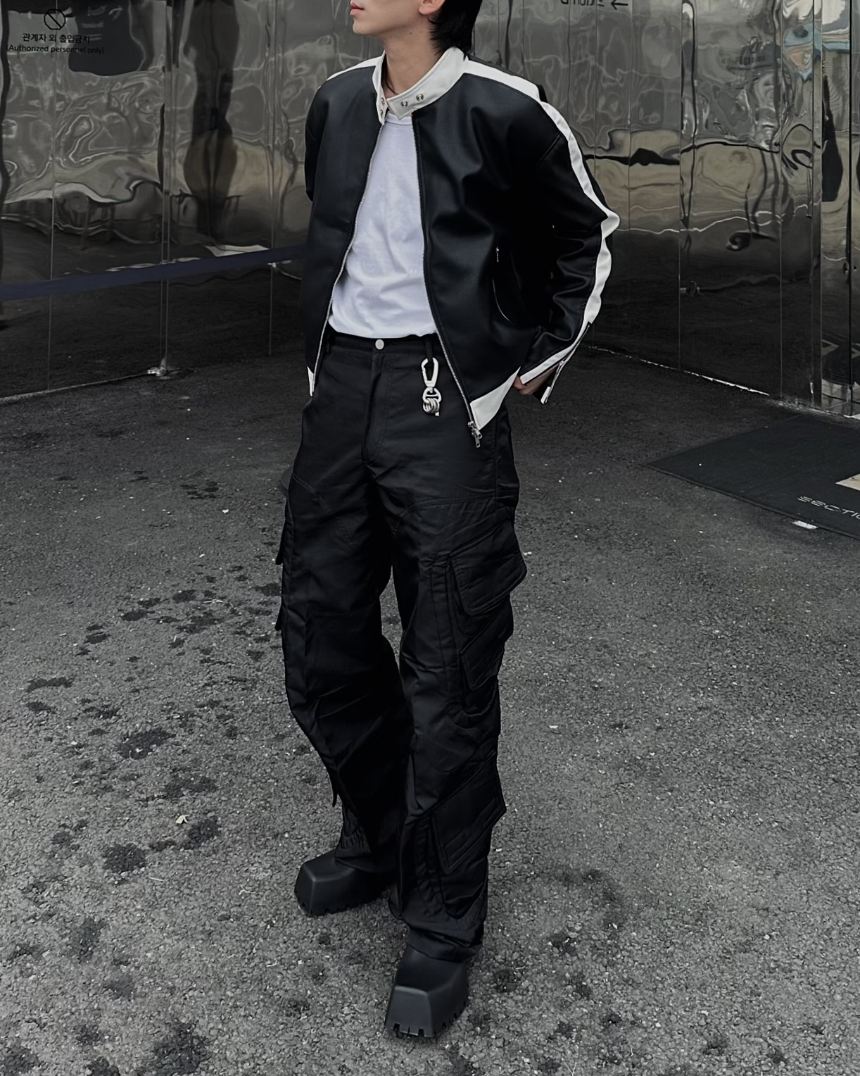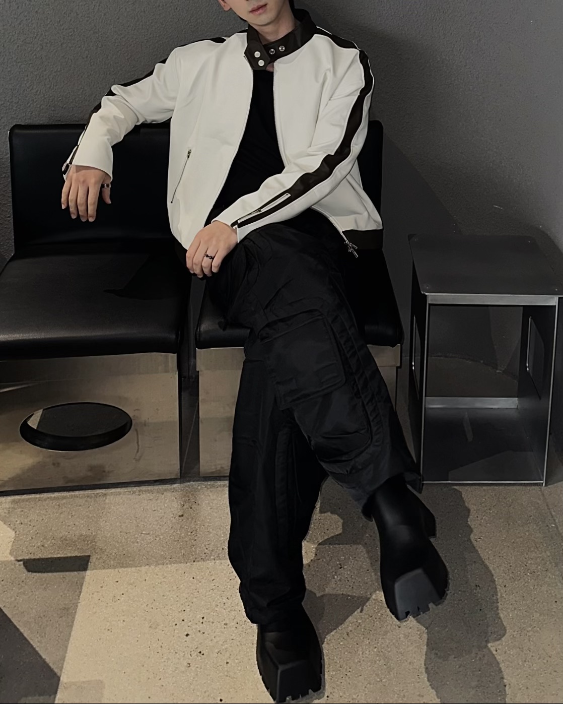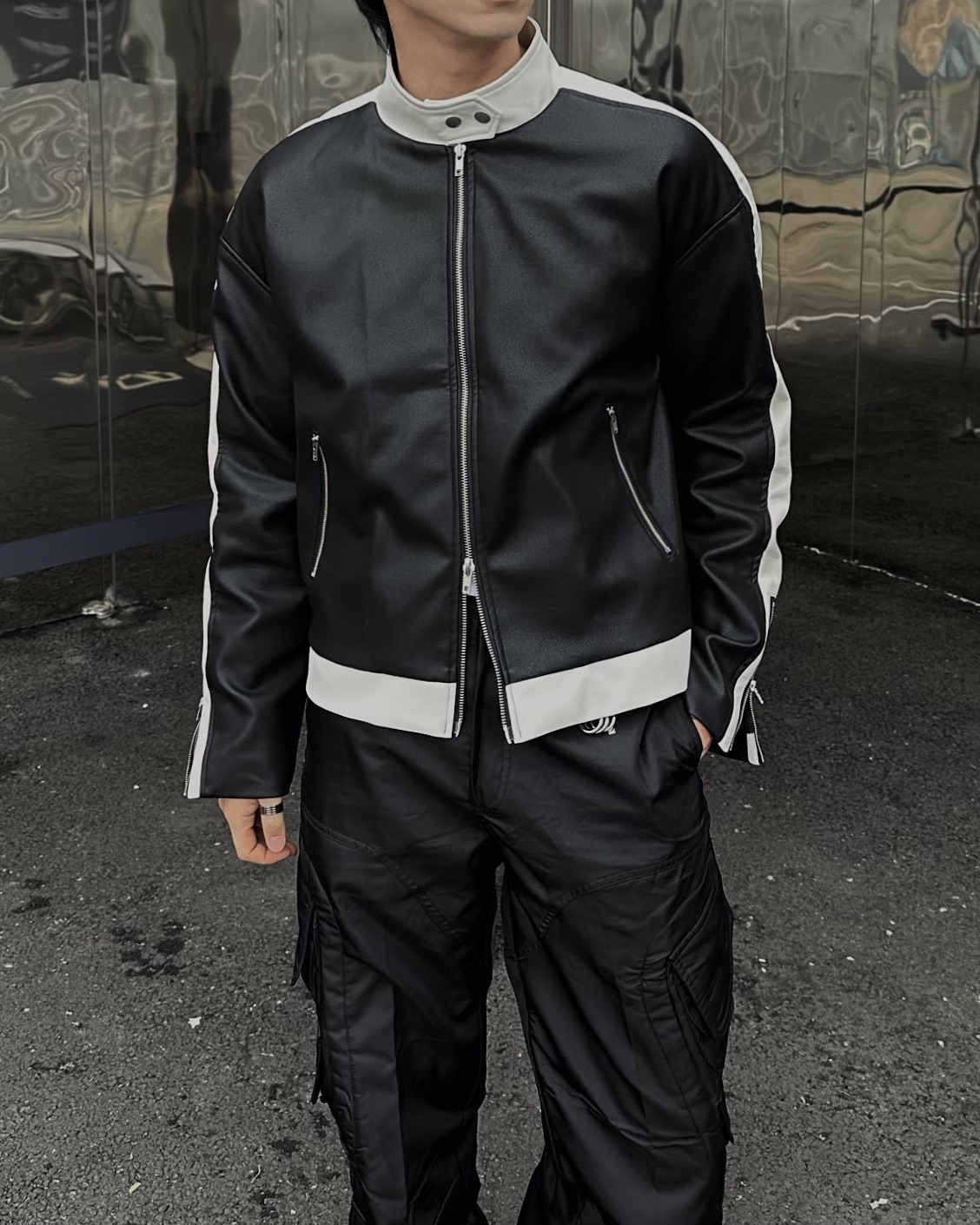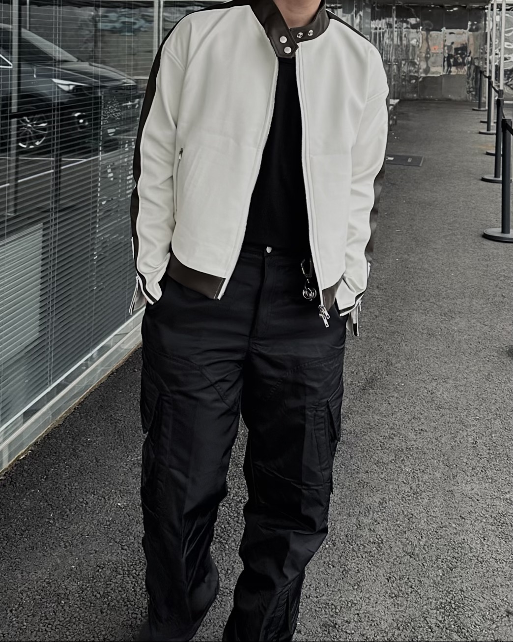 -군더더기 없는 핏감으로 봄 , 가을 걸쳐입기 좋은 레더 자켓