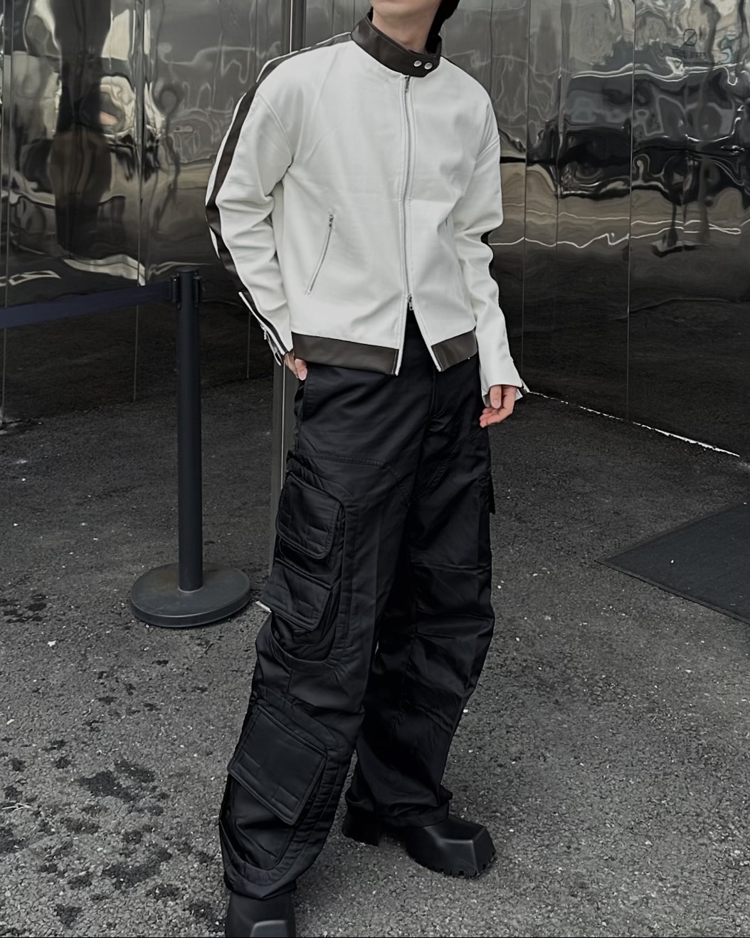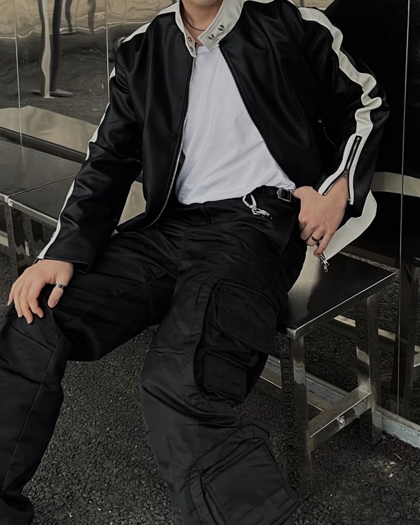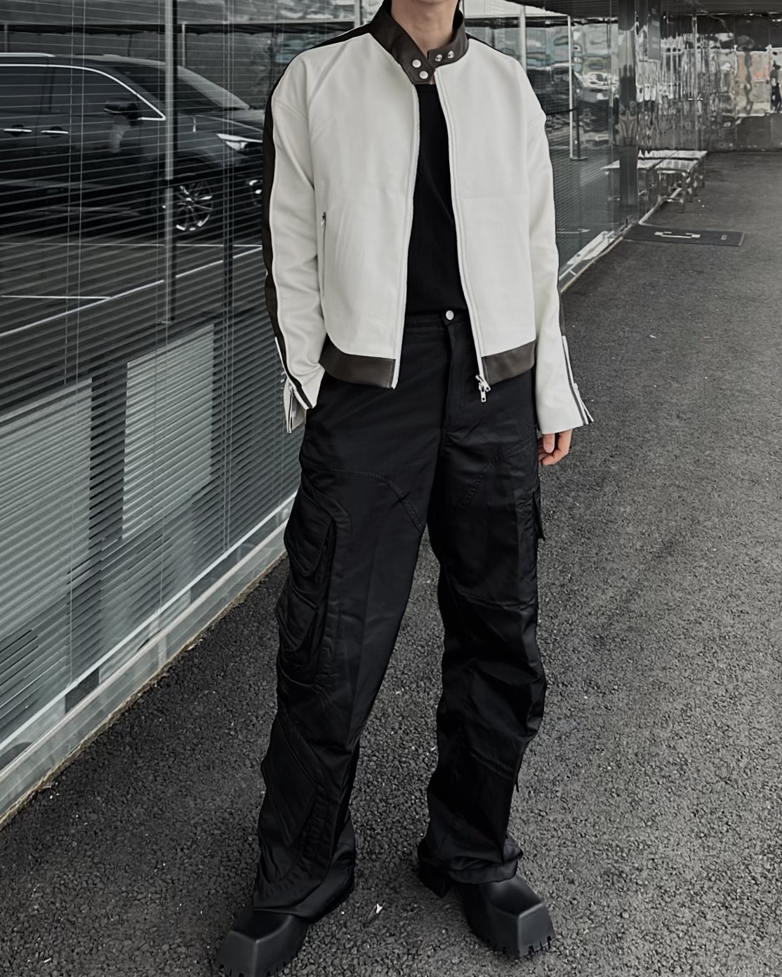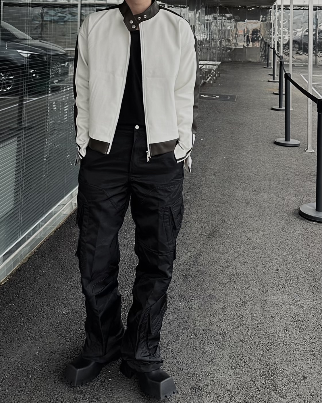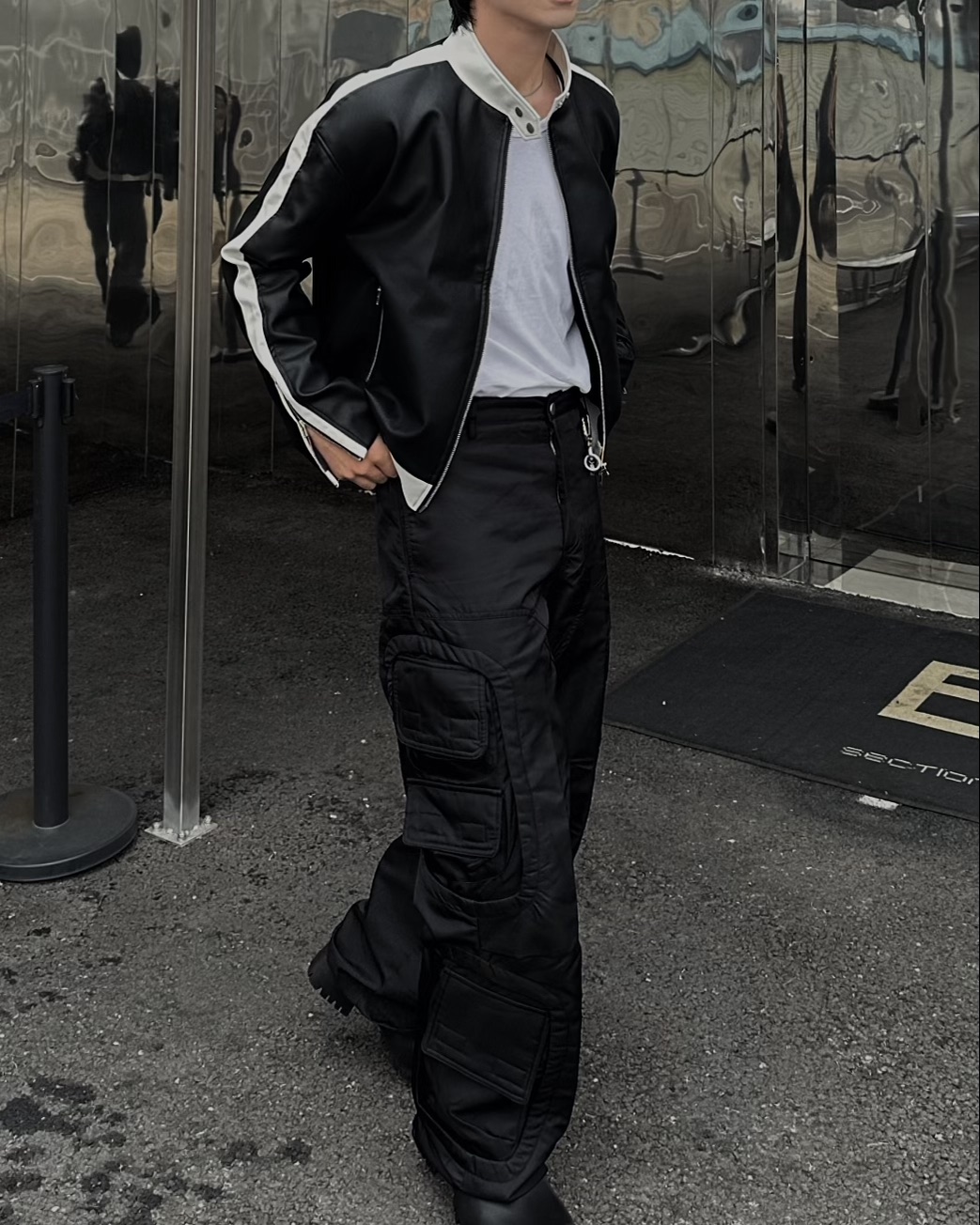 -군더더기 없는 핏감으로 봄 , 가을 걸쳐입기 좋은 레더 자켓