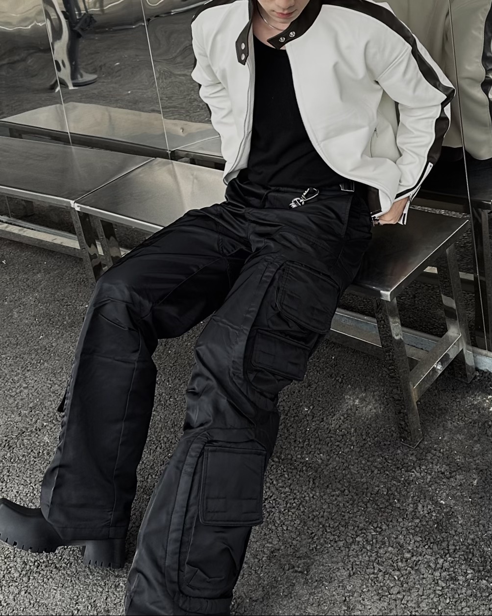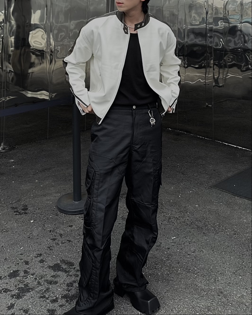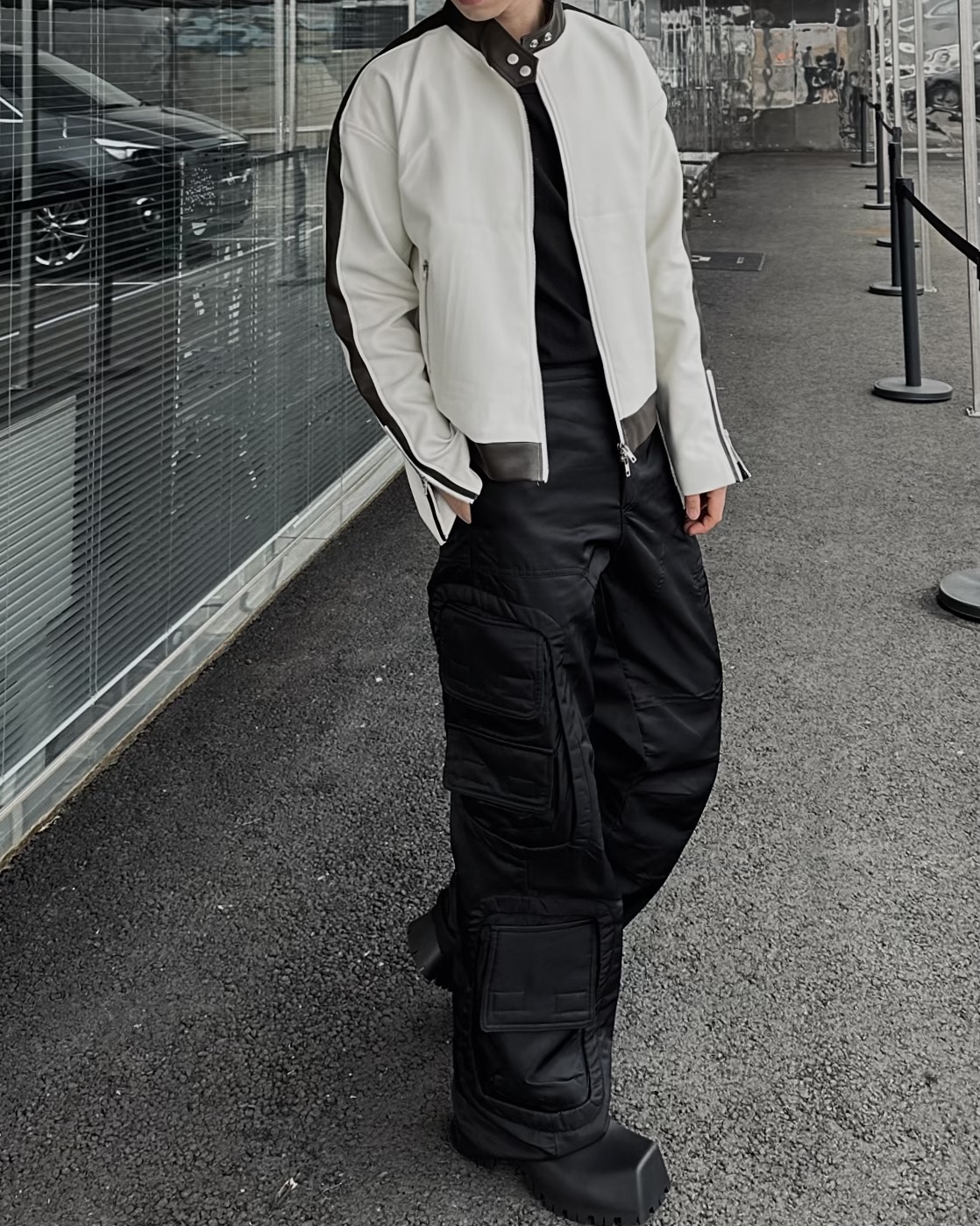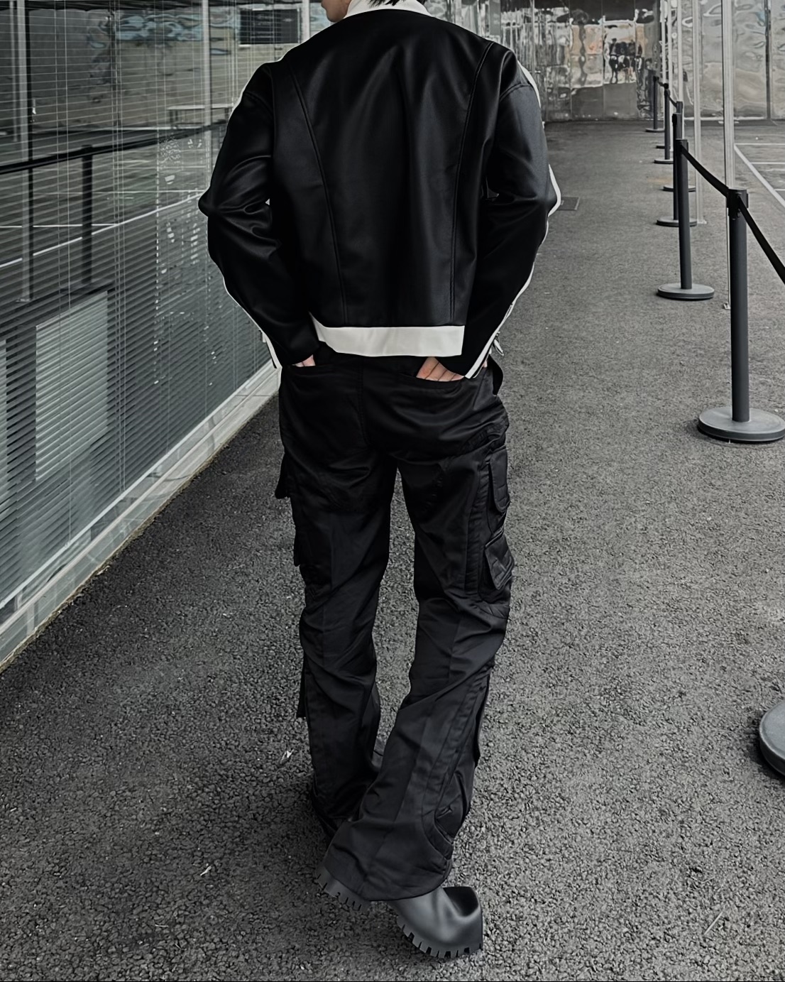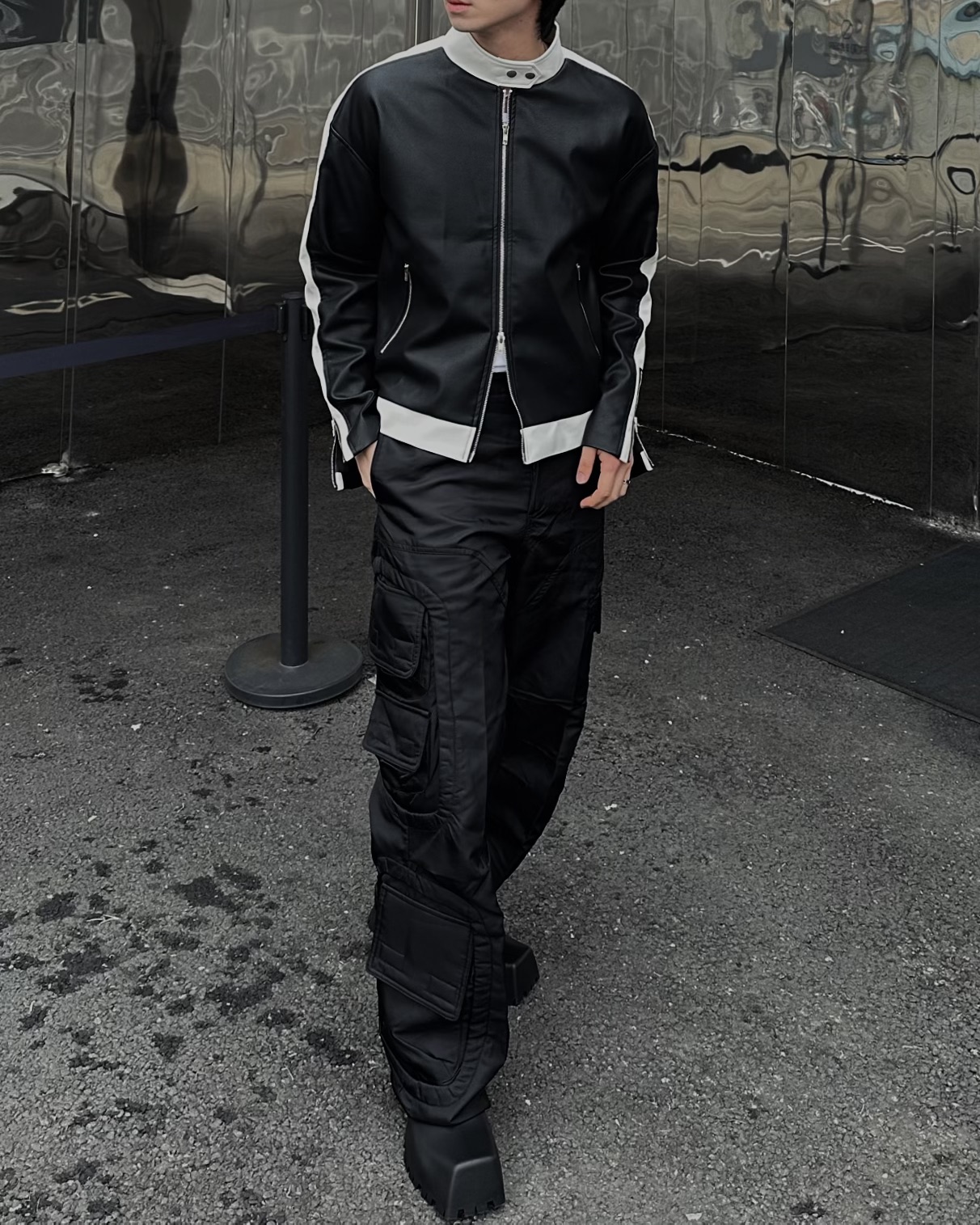 -군더더기 없는 핏감으로 봄 , 가을 걸쳐입기 좋은 레더 자켓