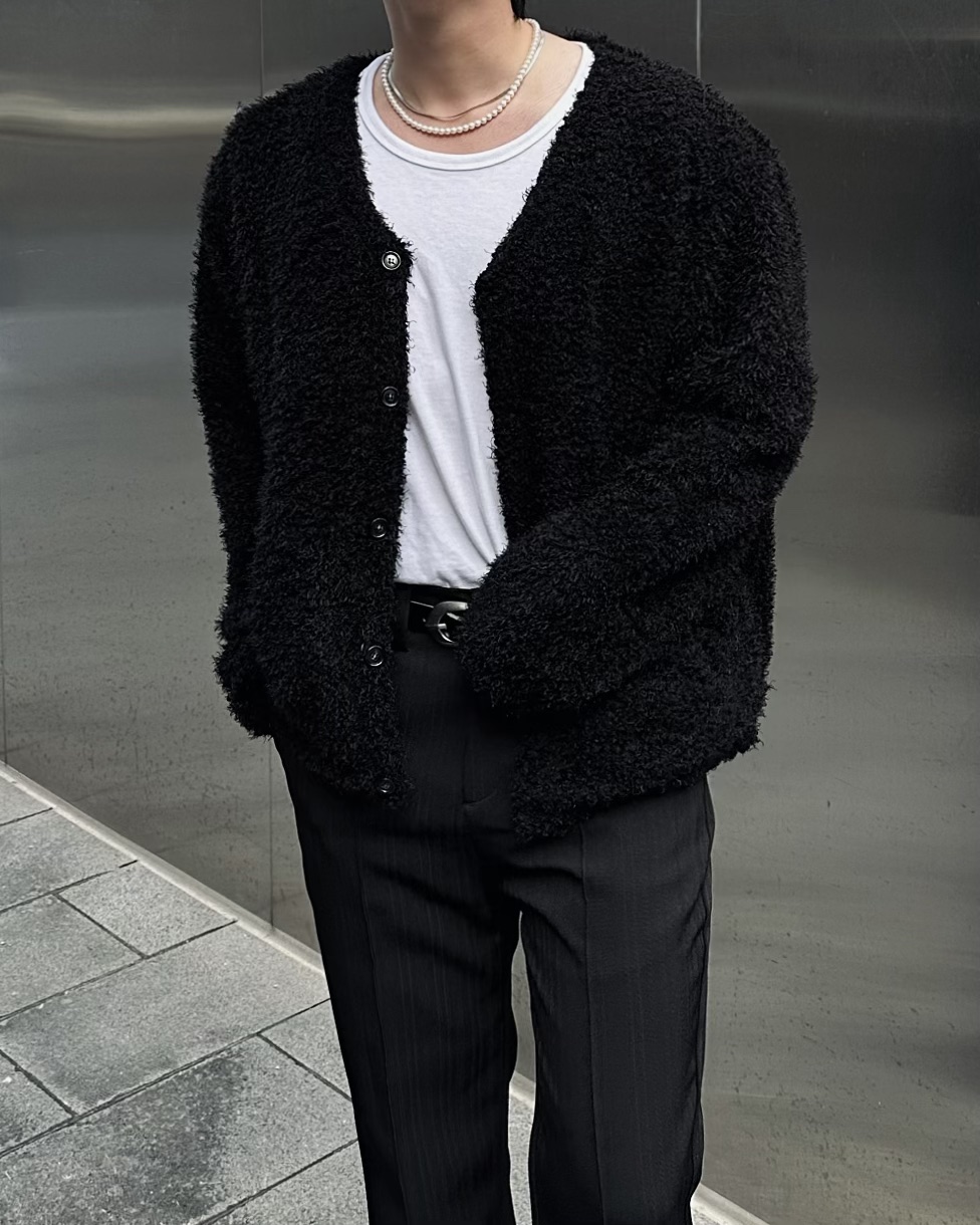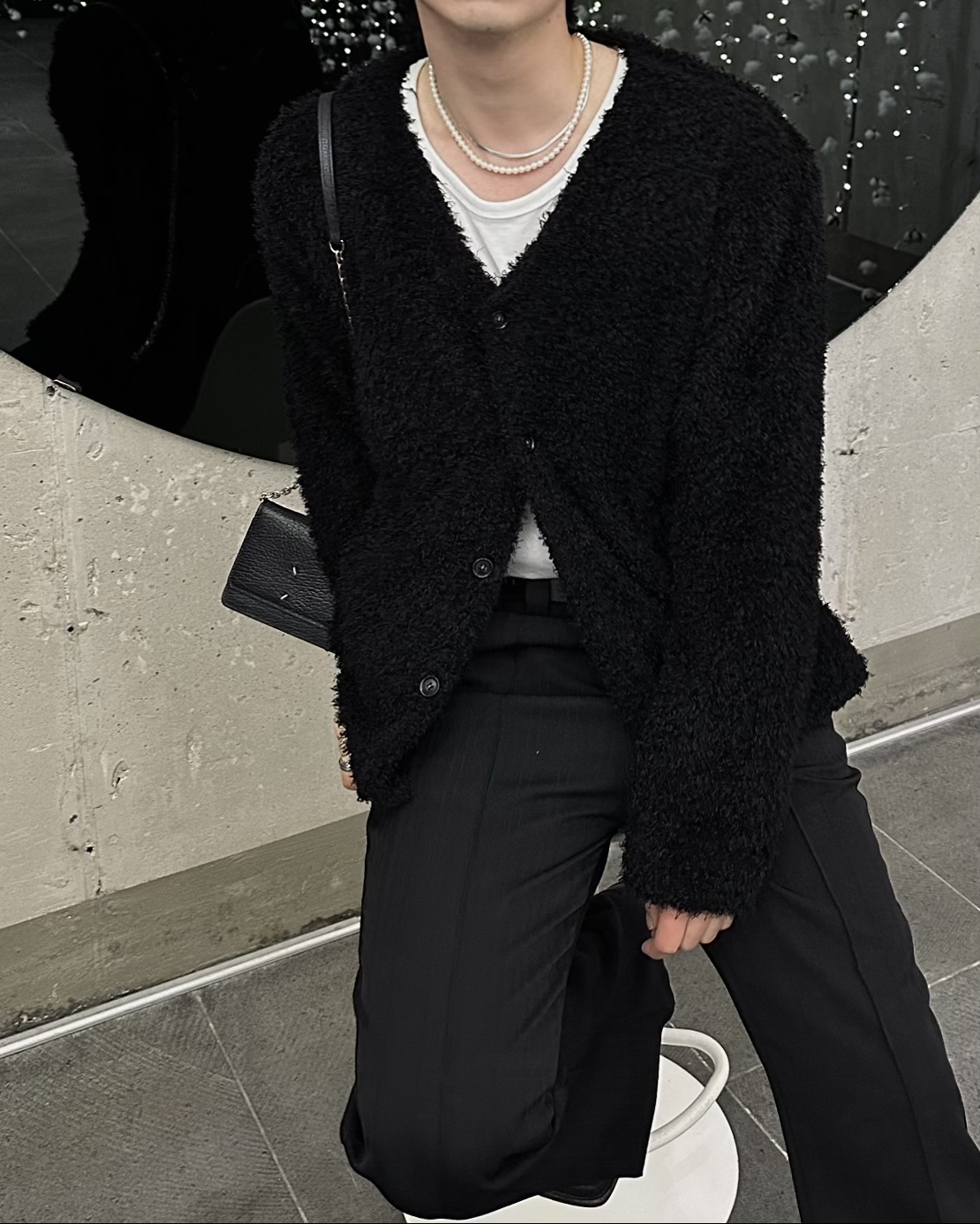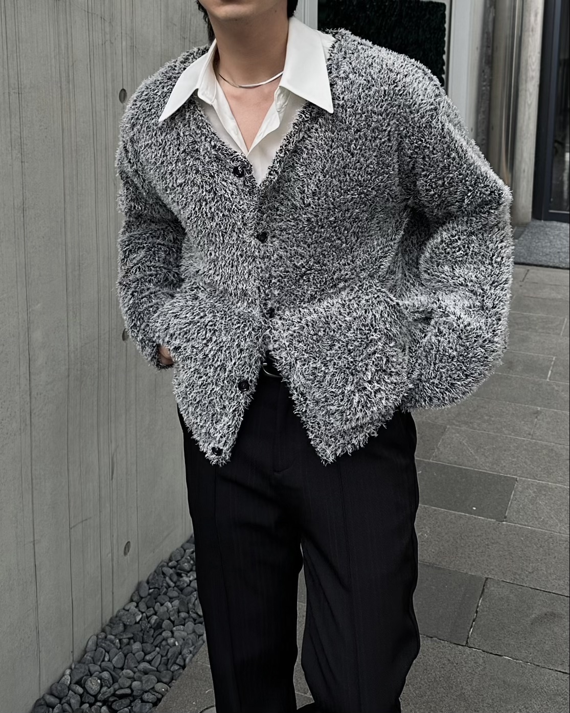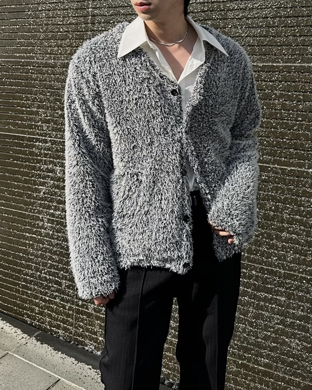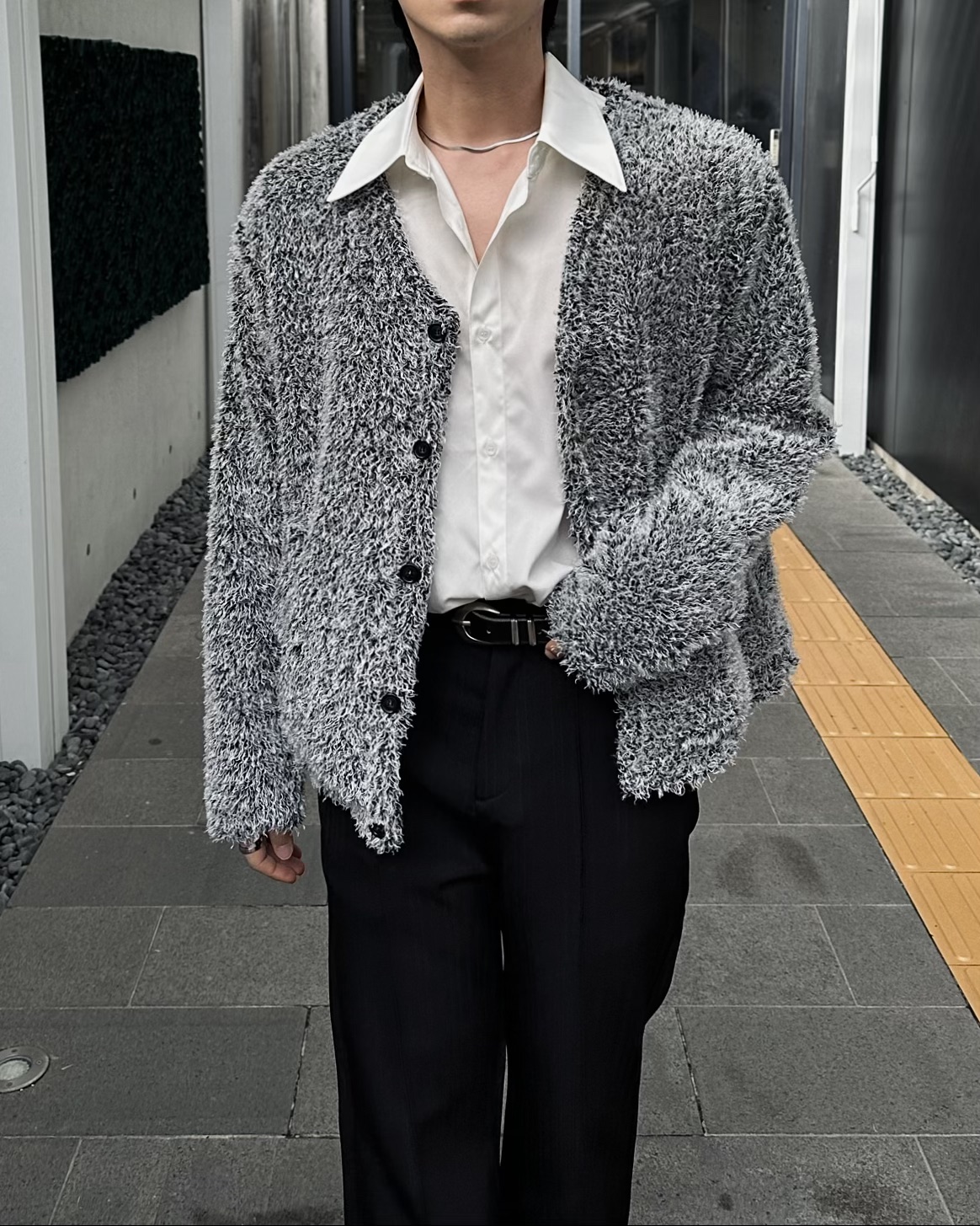 -유니크한 텍스처의 퍼 소재의 모헤어 가디건