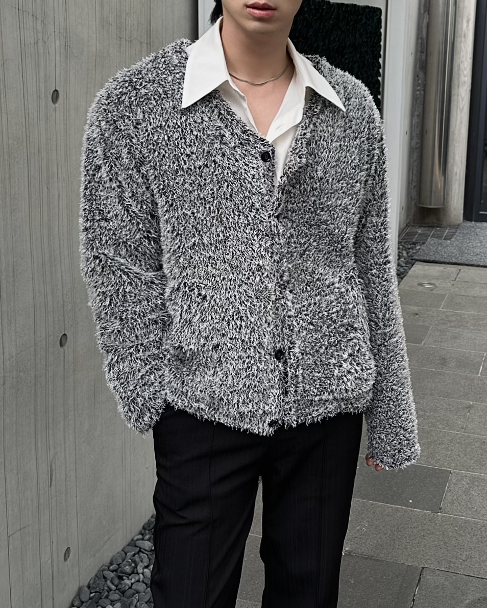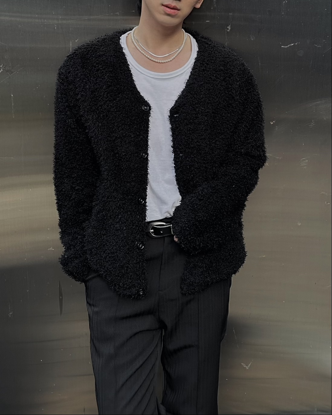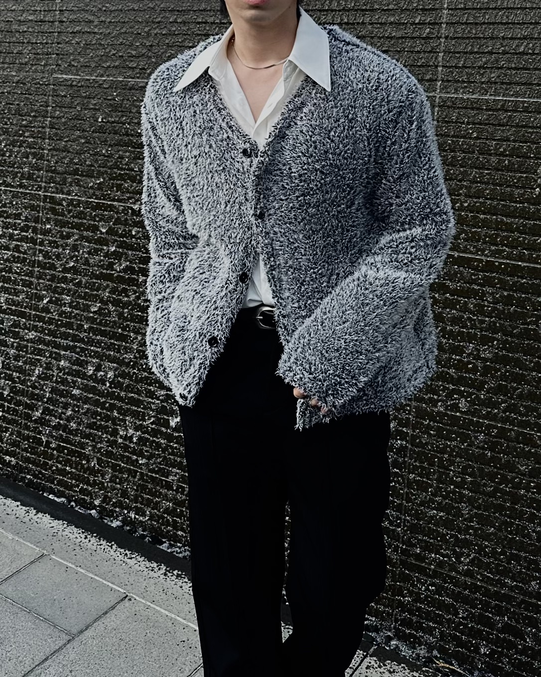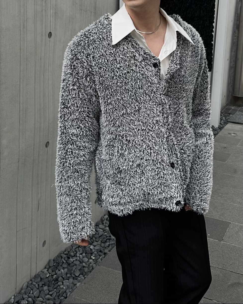 -유니크한 텍스처의 퍼 소재의 모헤어 가디건