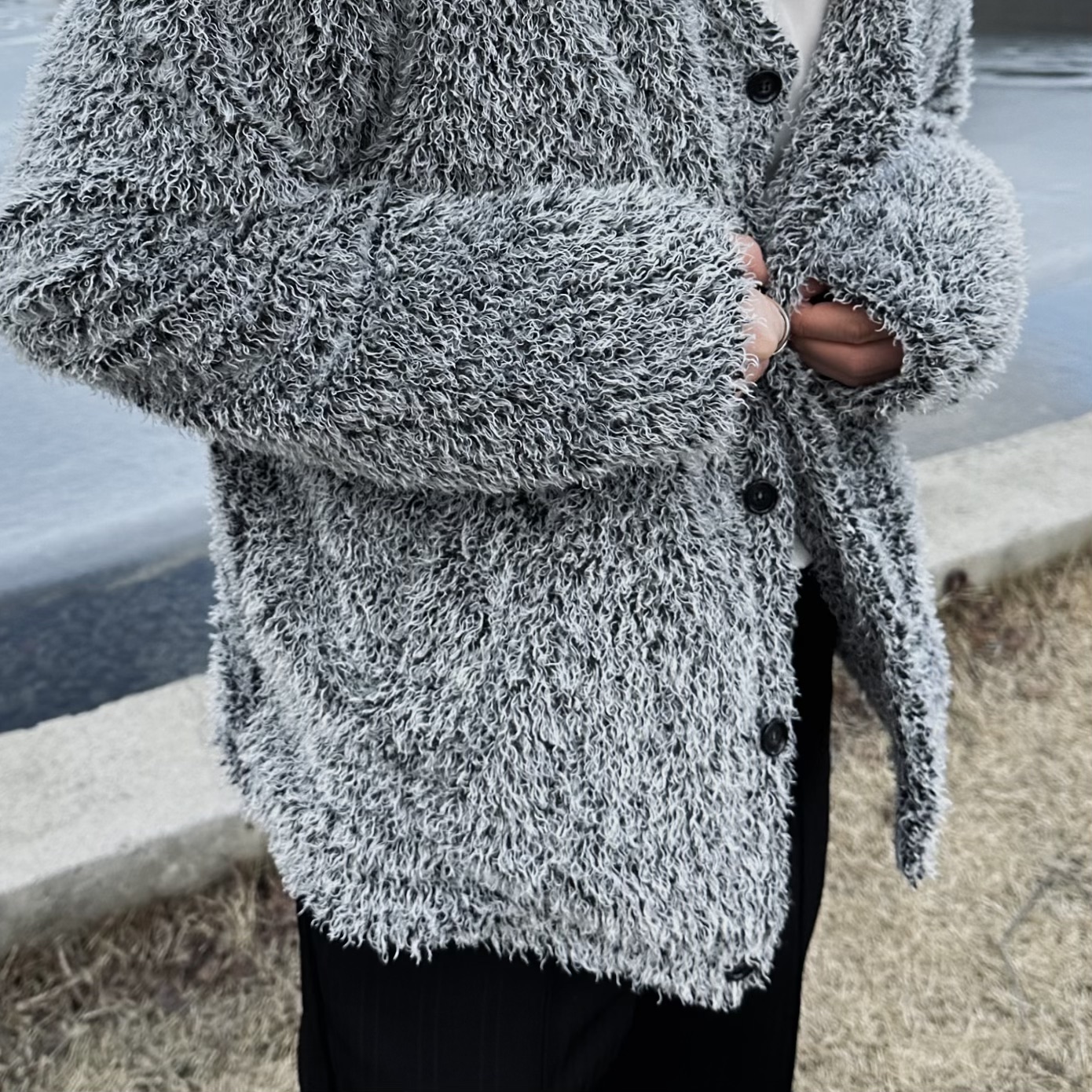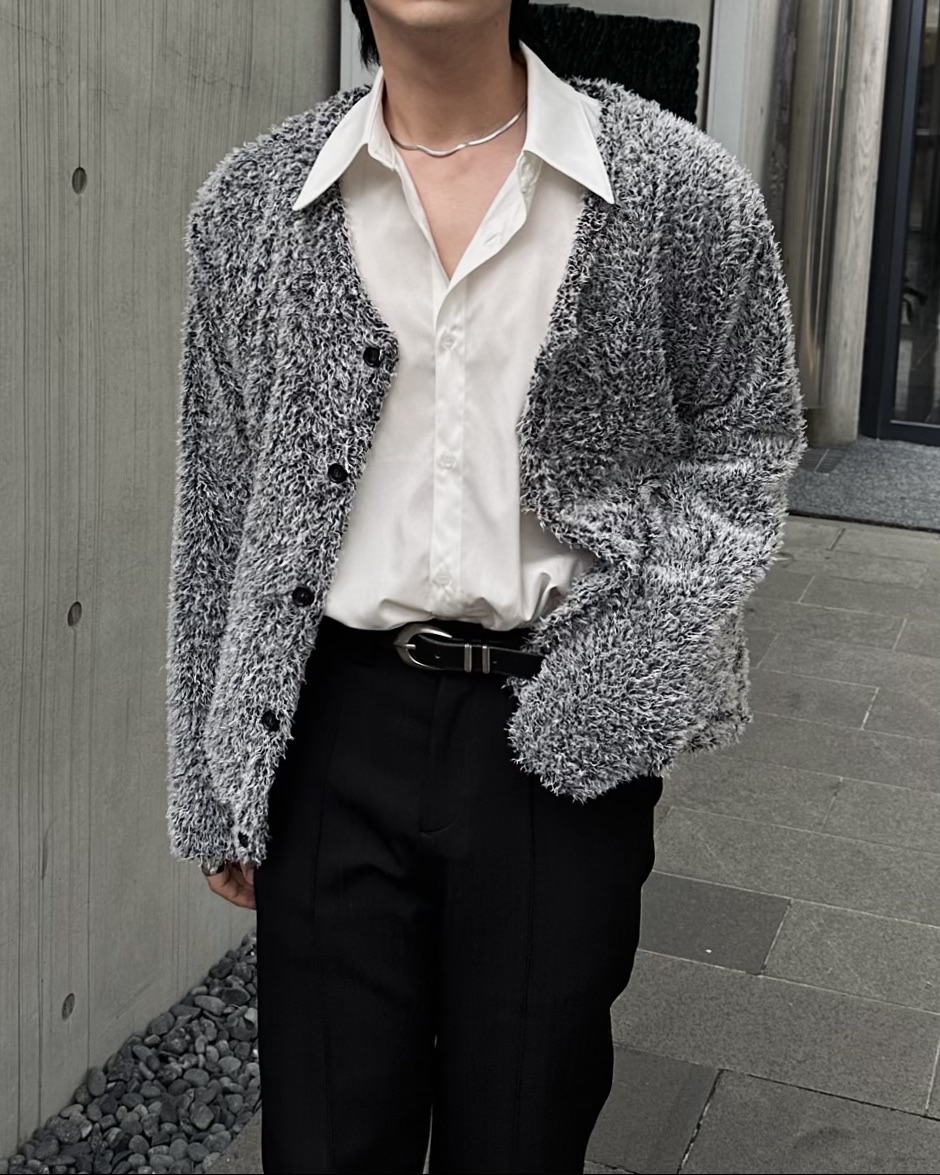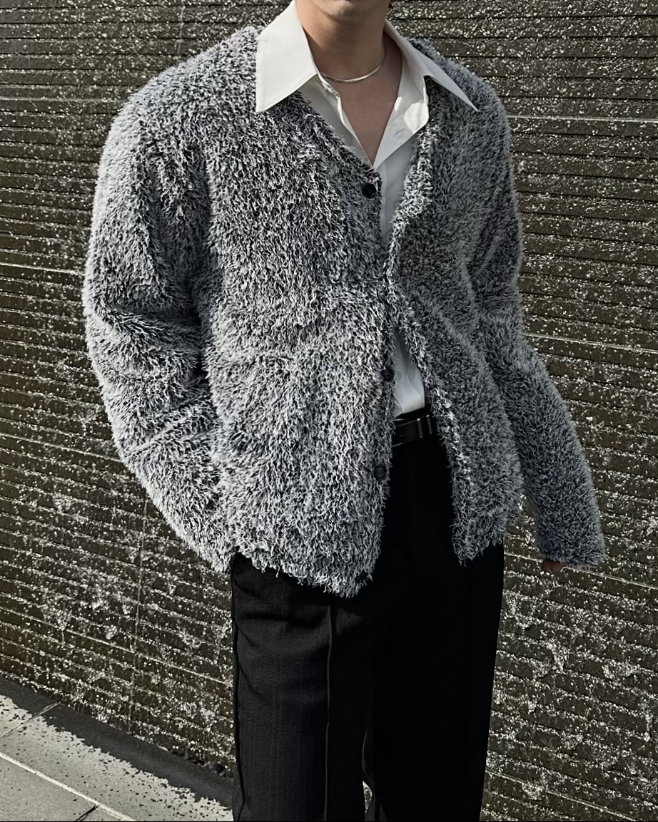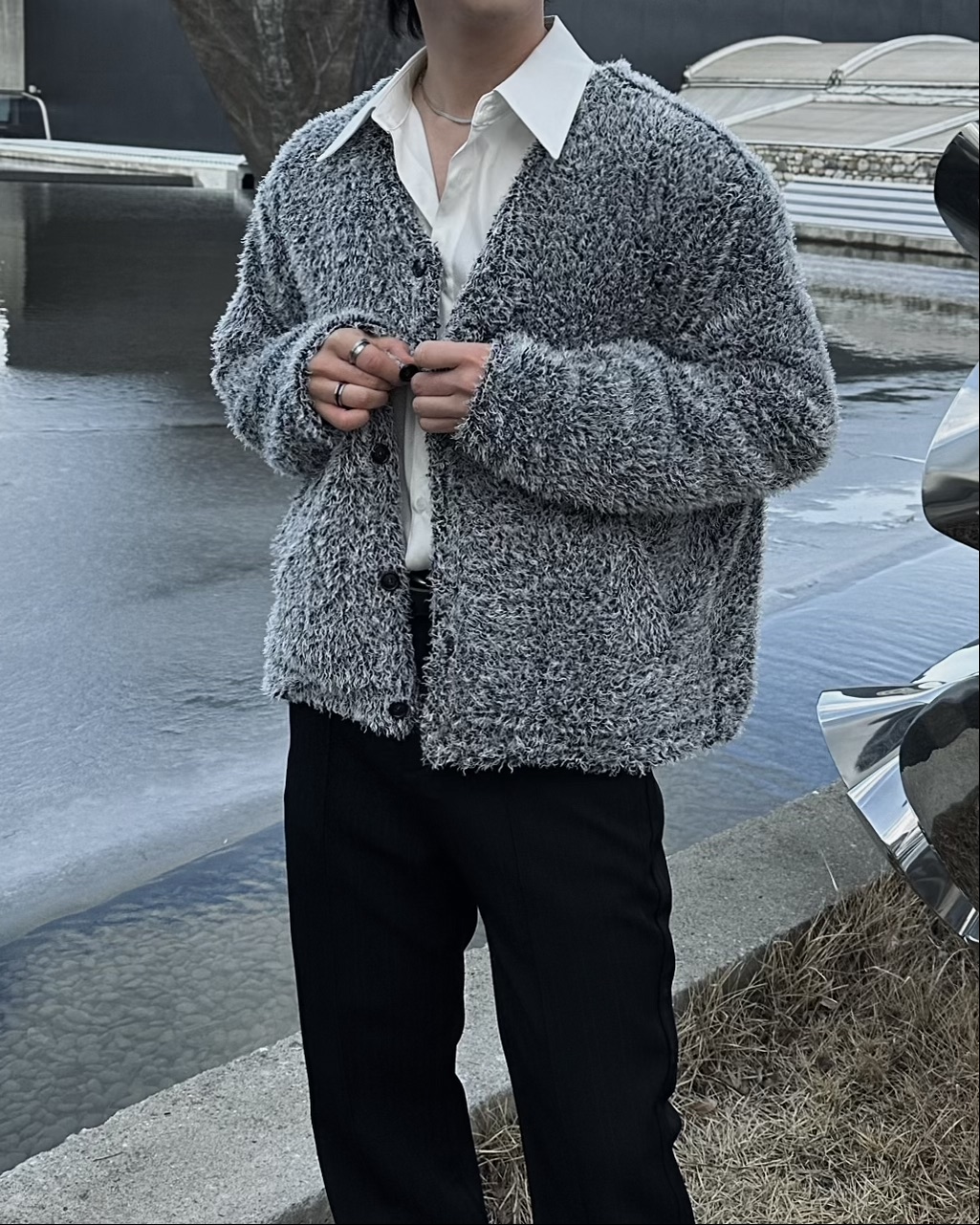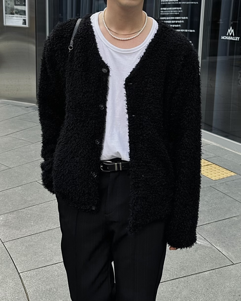 -유니크한 텍스처의 퍼 소재의 모헤어 가디건