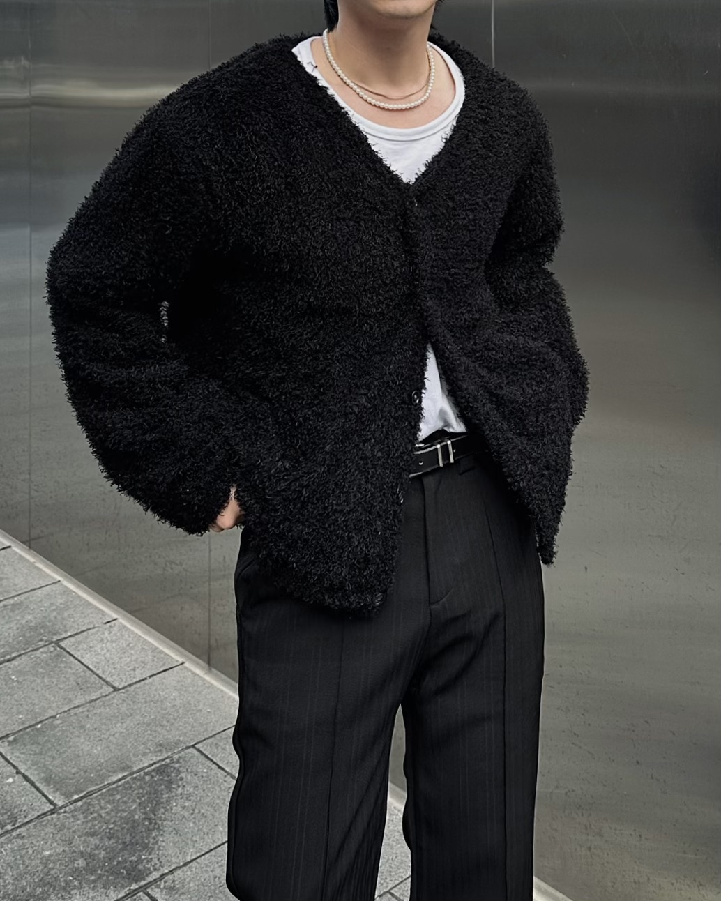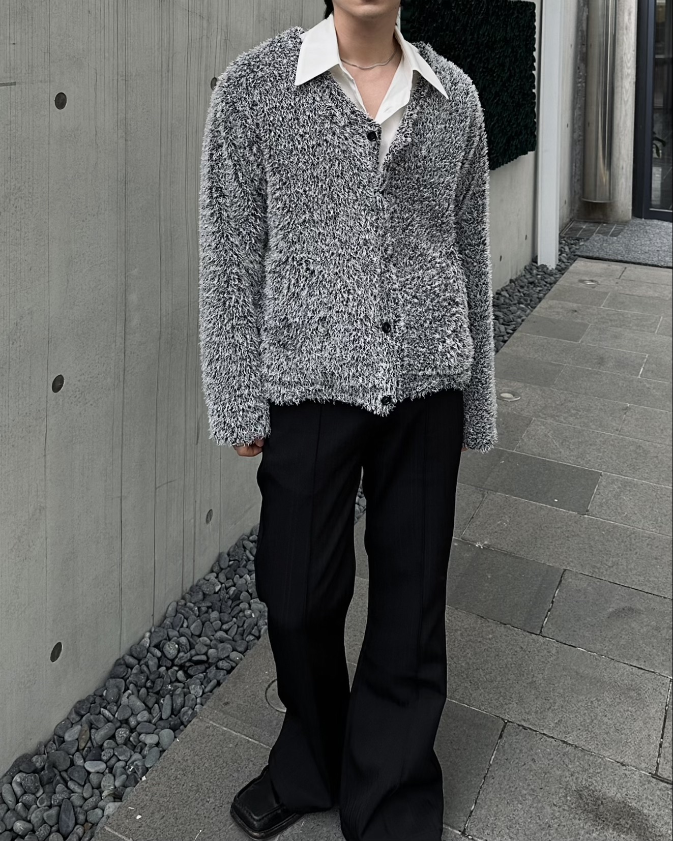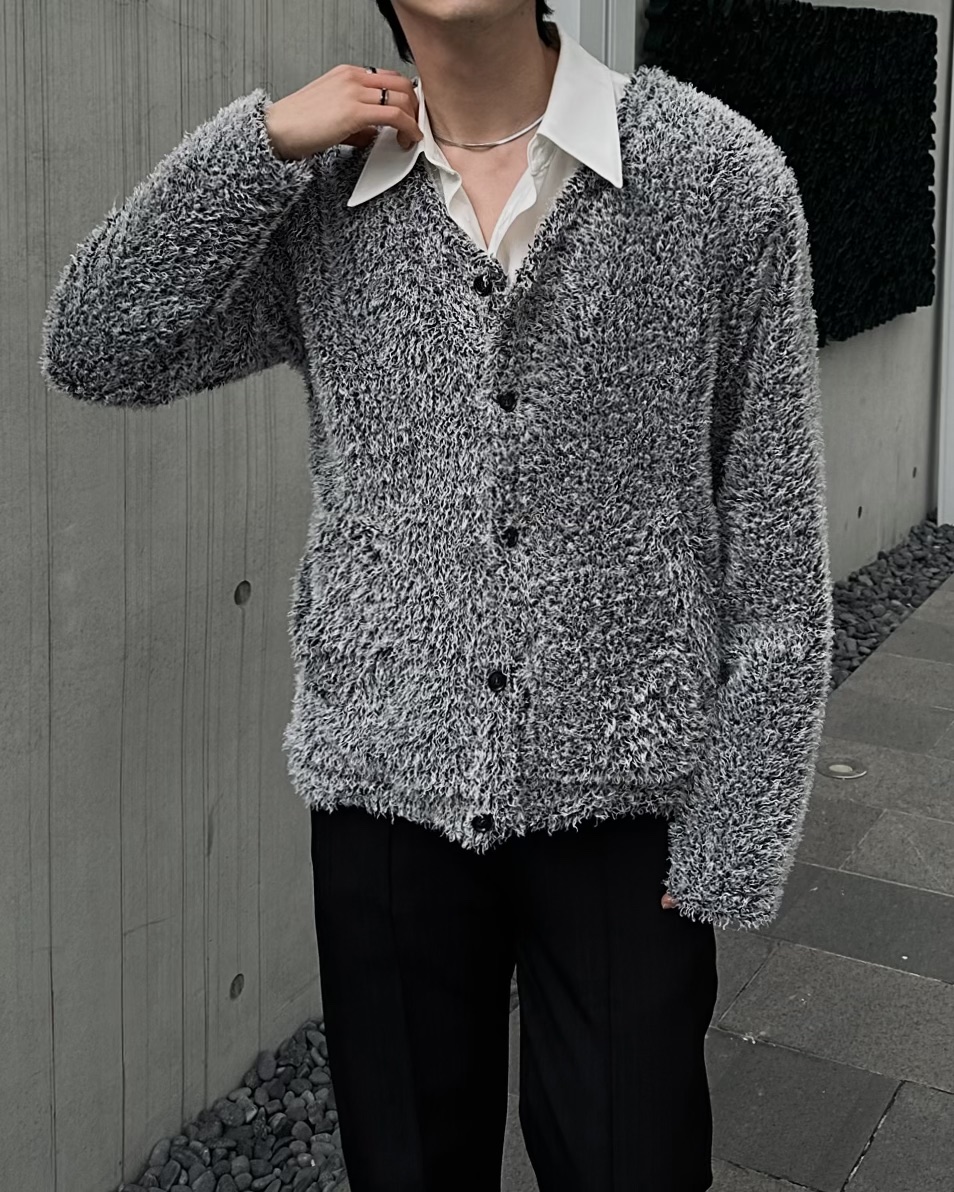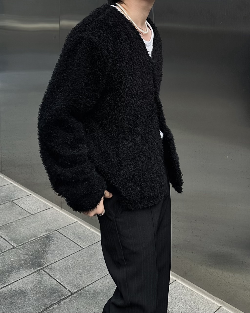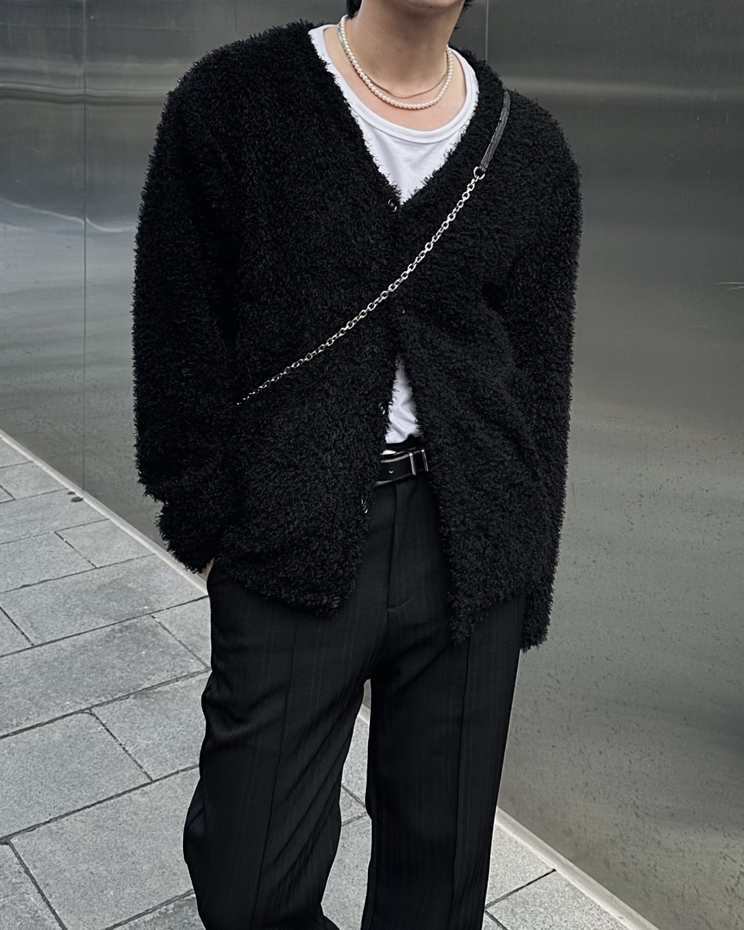 -유니크한 텍스처의 퍼 소재의 모헤어 가디건