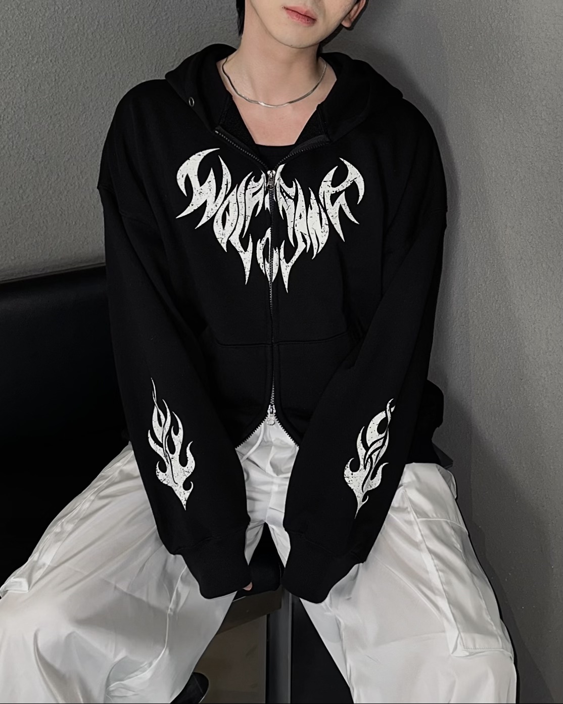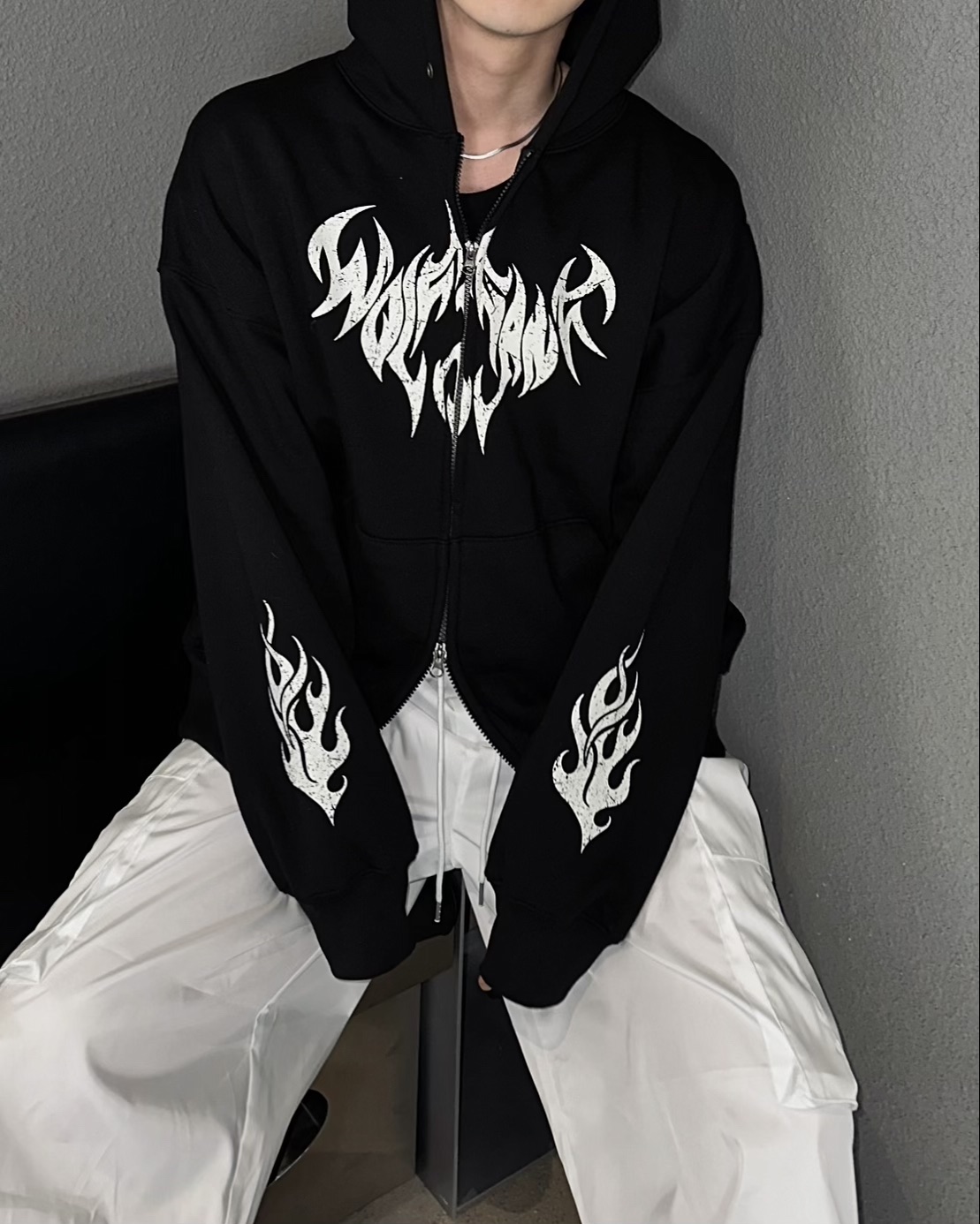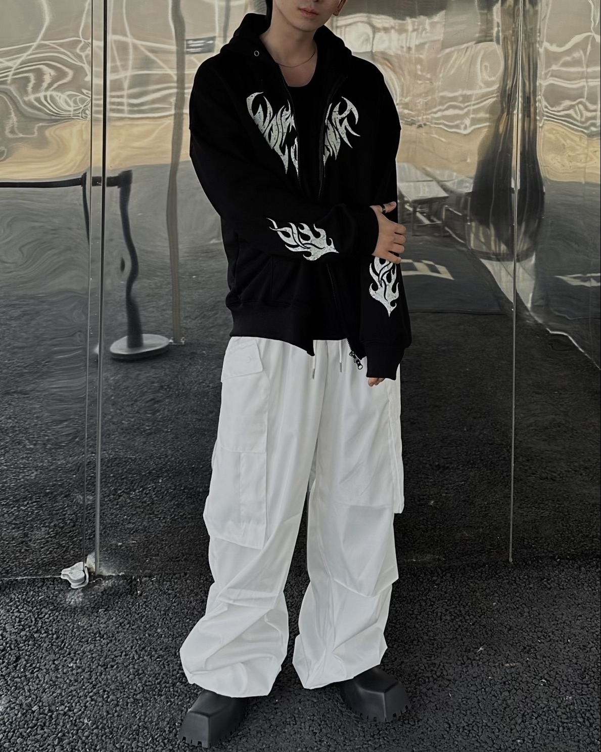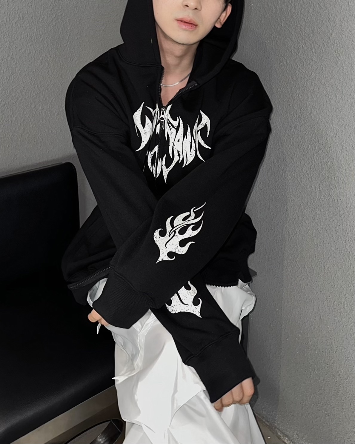 -프론트 , 소매 플레임 로고 포인트 디테일