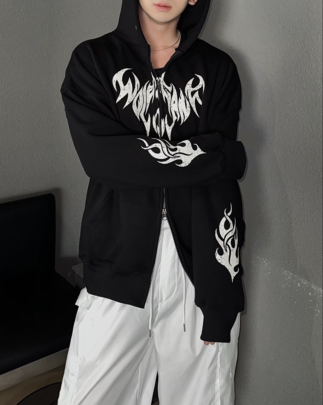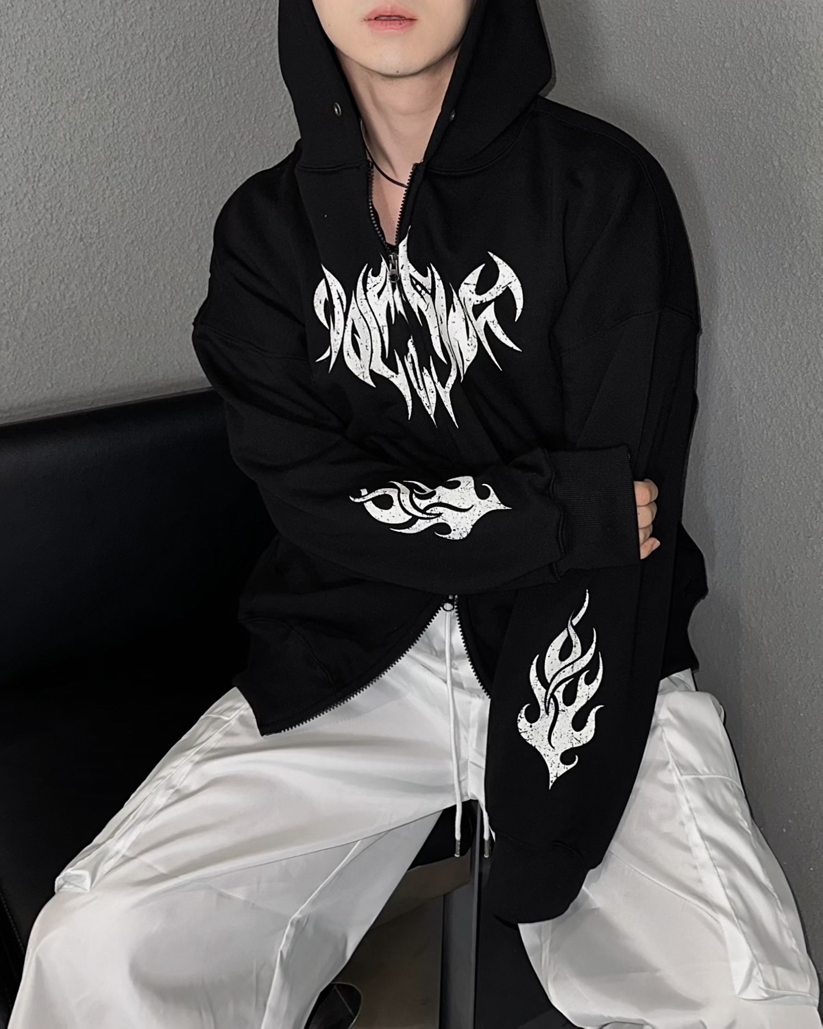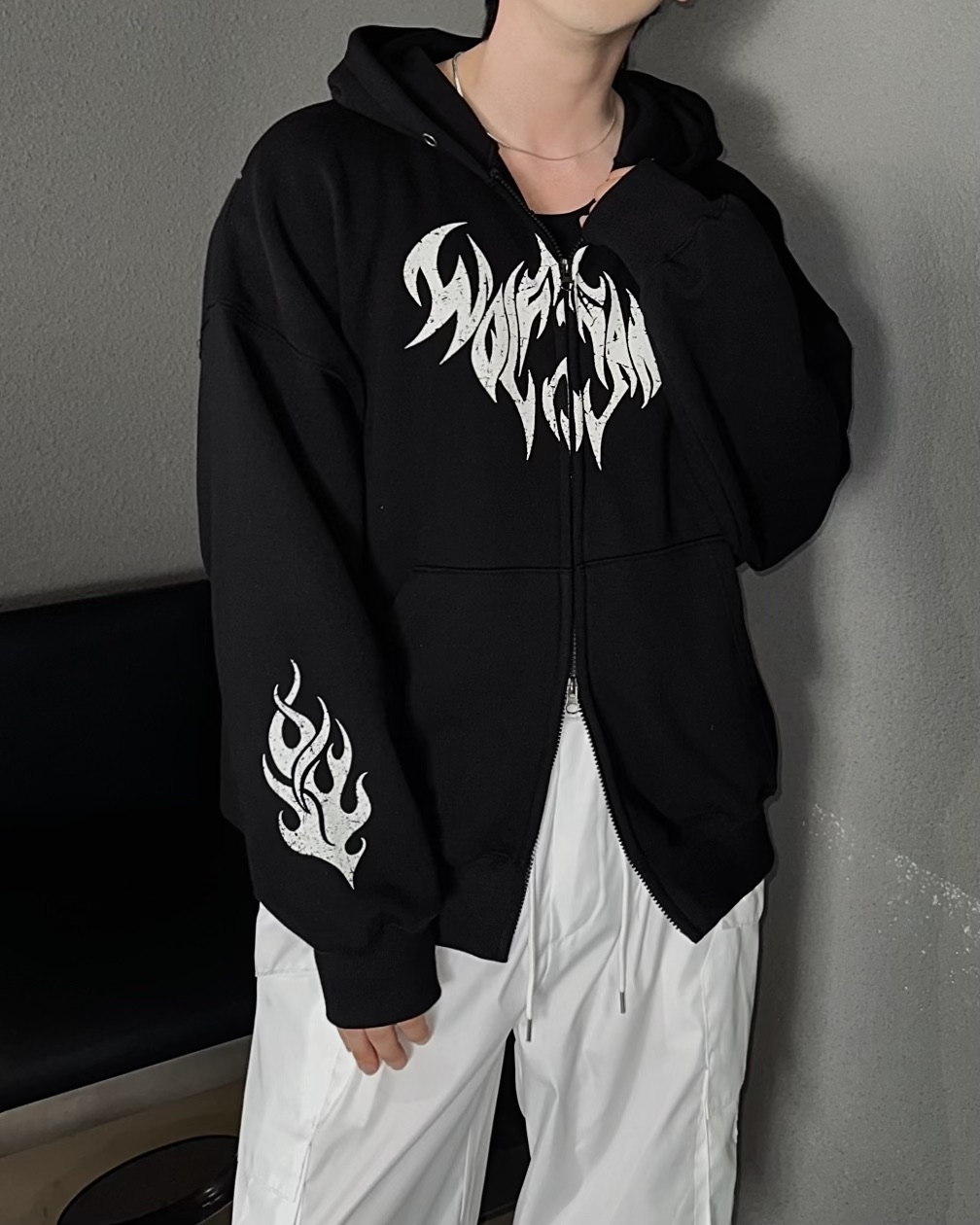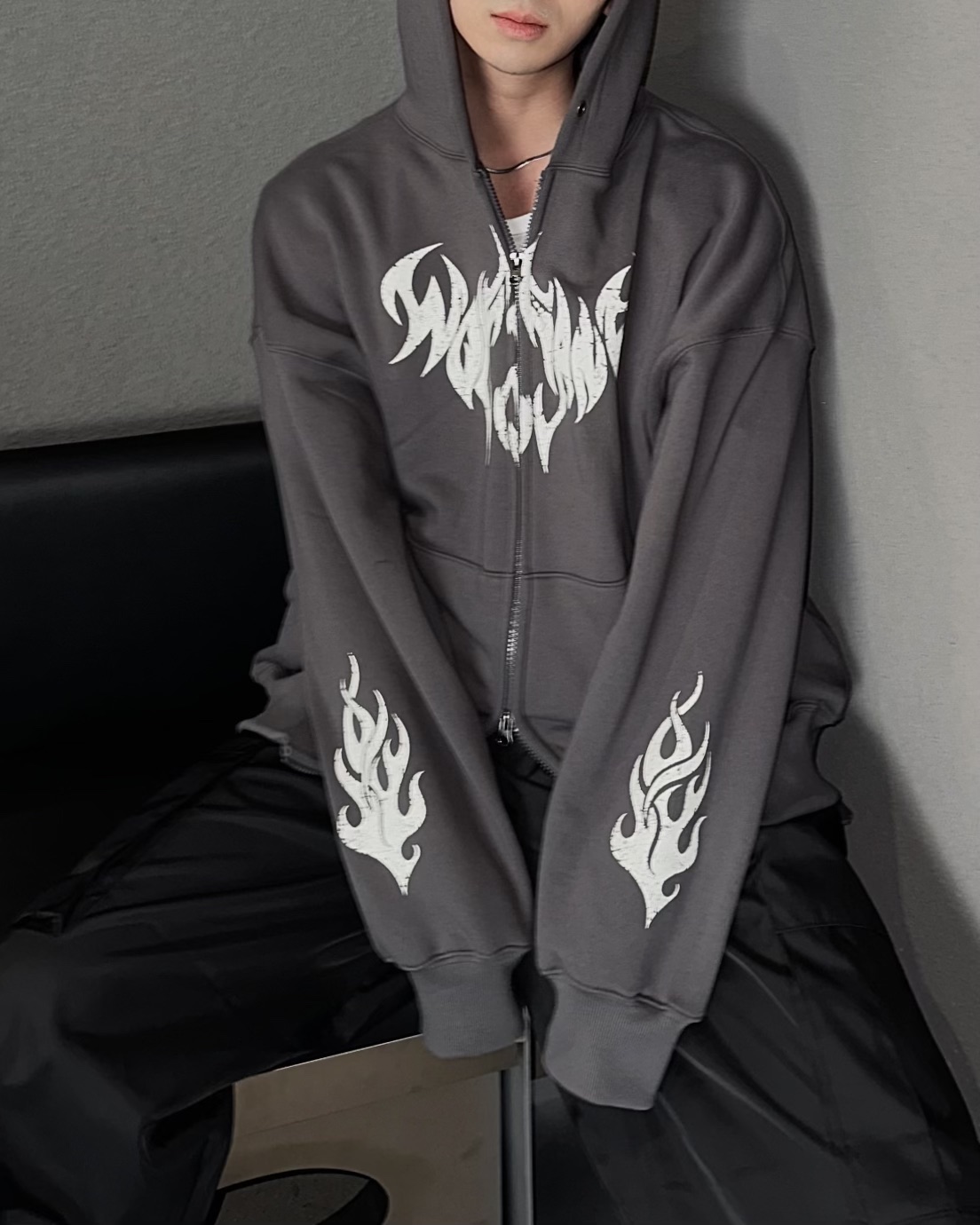 -프론트 , 소매 플레임 로고 포인트 디테일