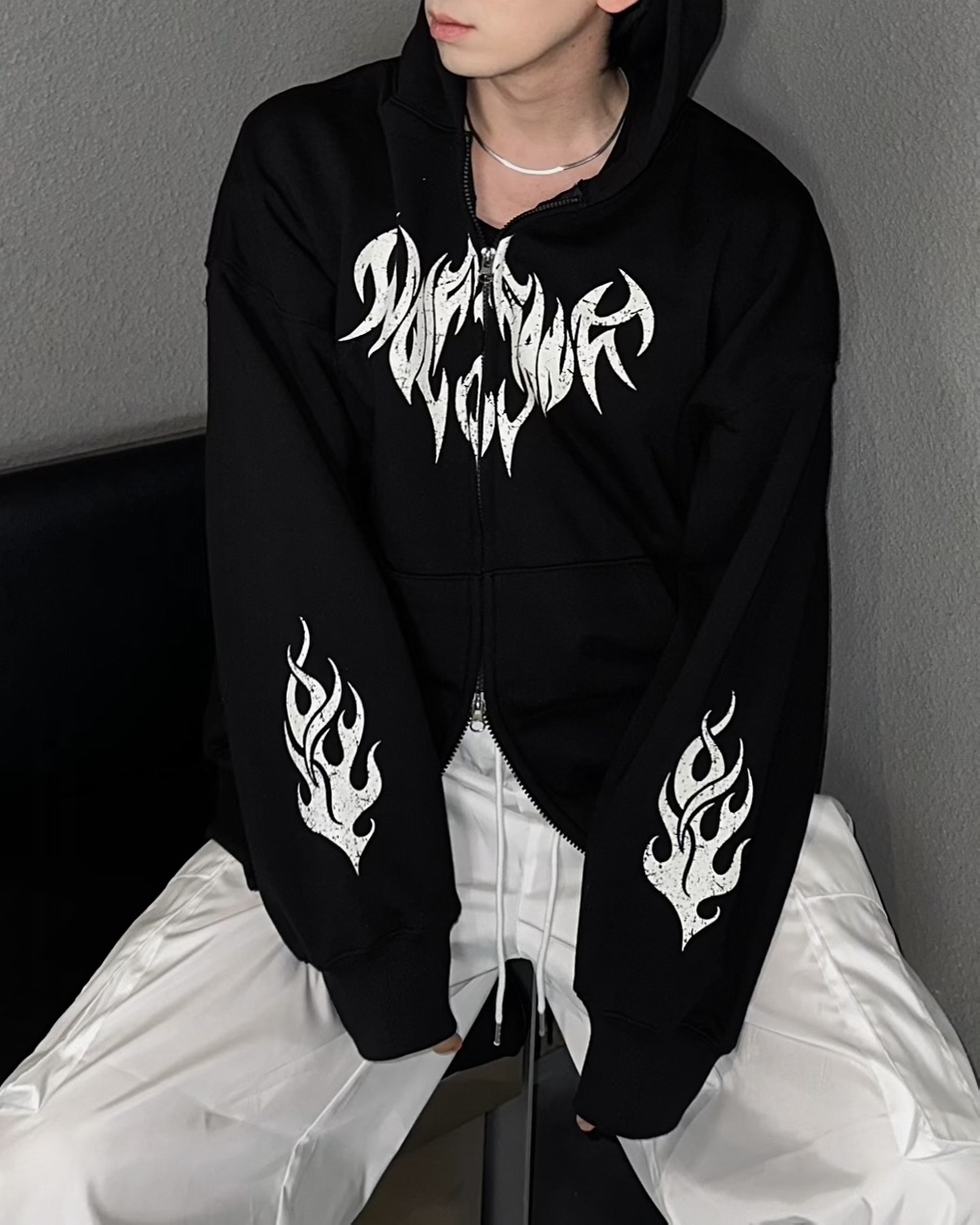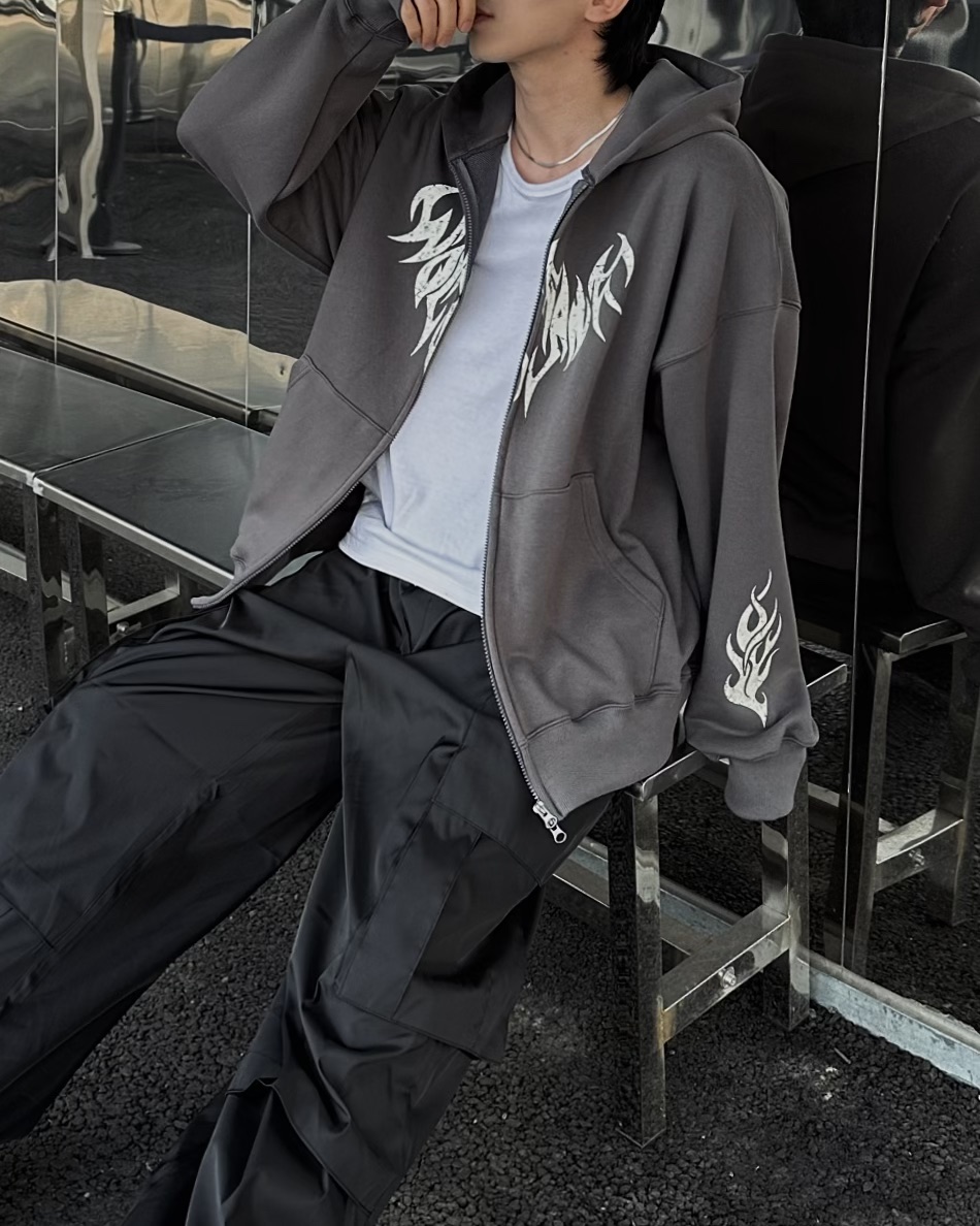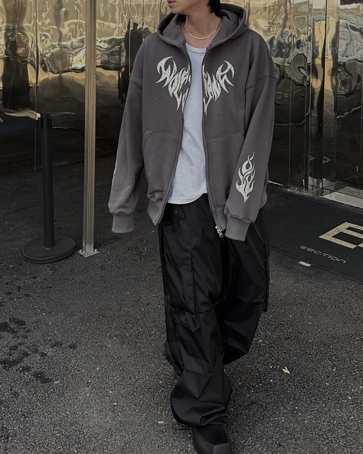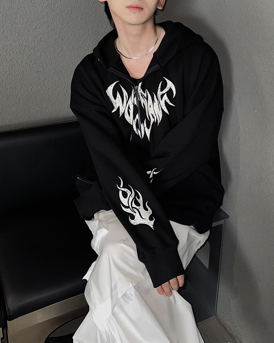 -프론트 , 소매 플레임 로고 포인트 디테일