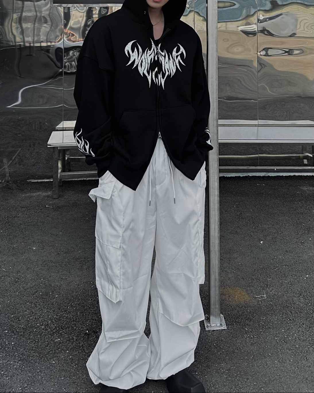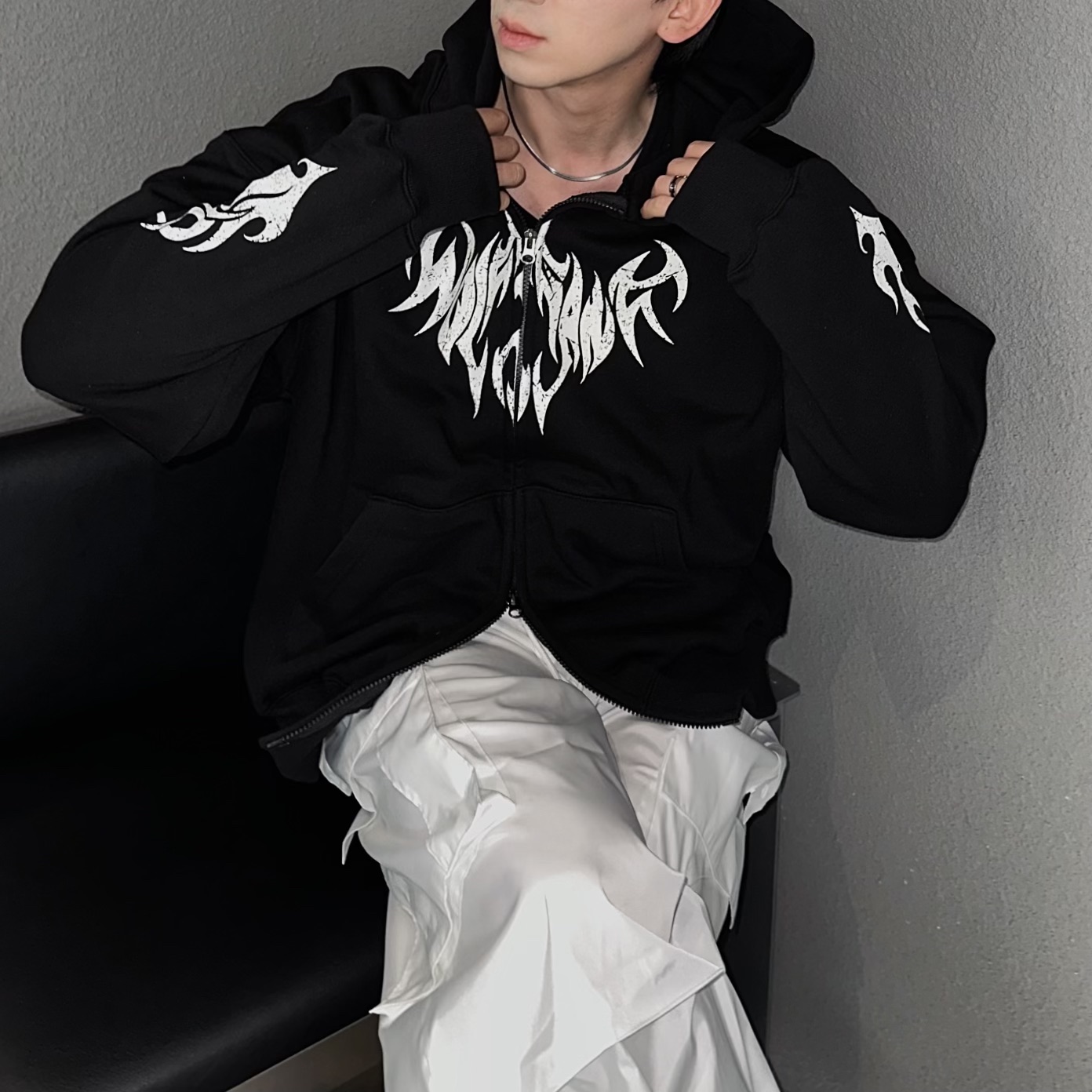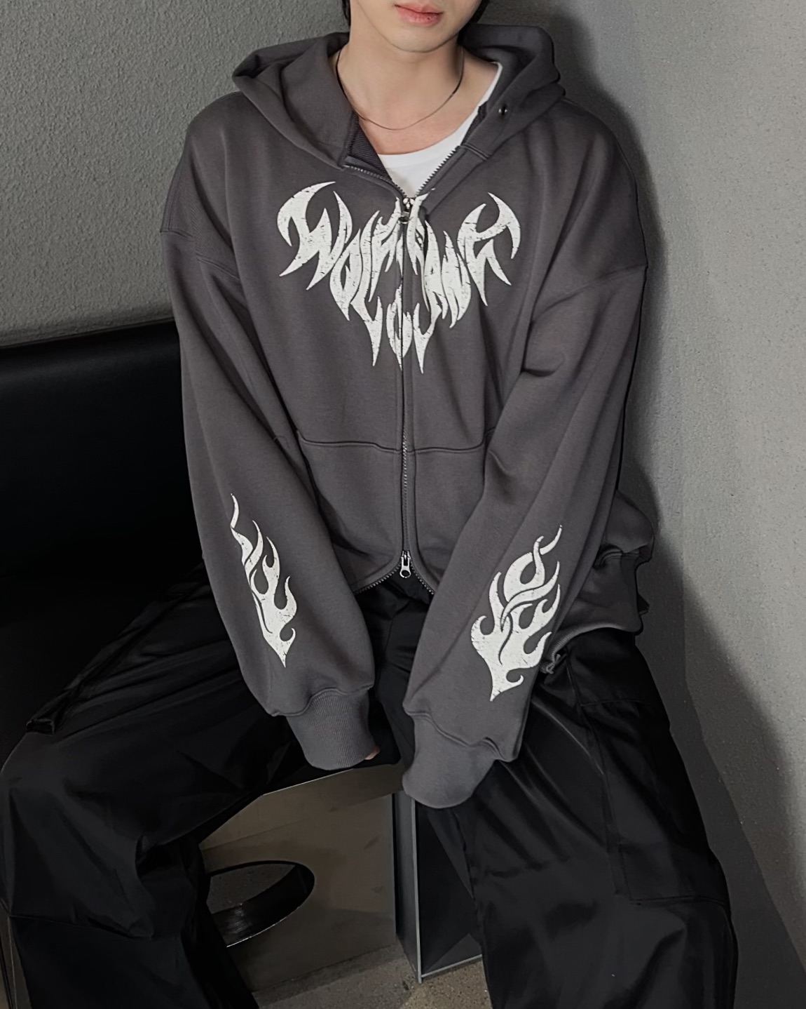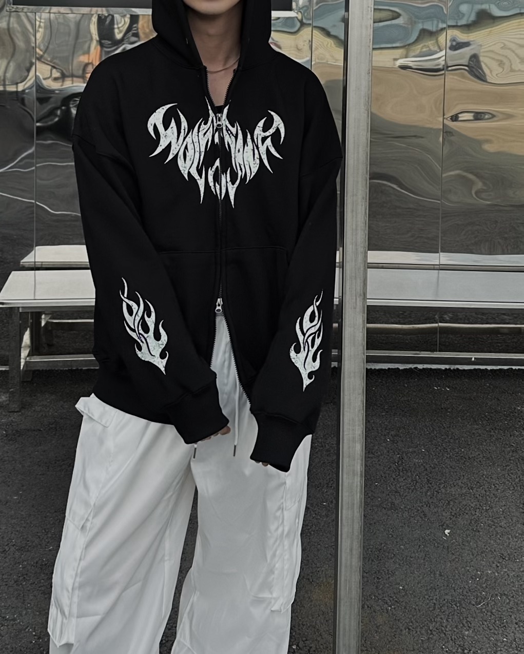 -프론트 , 소매 플레임 로고 포인트 디테일