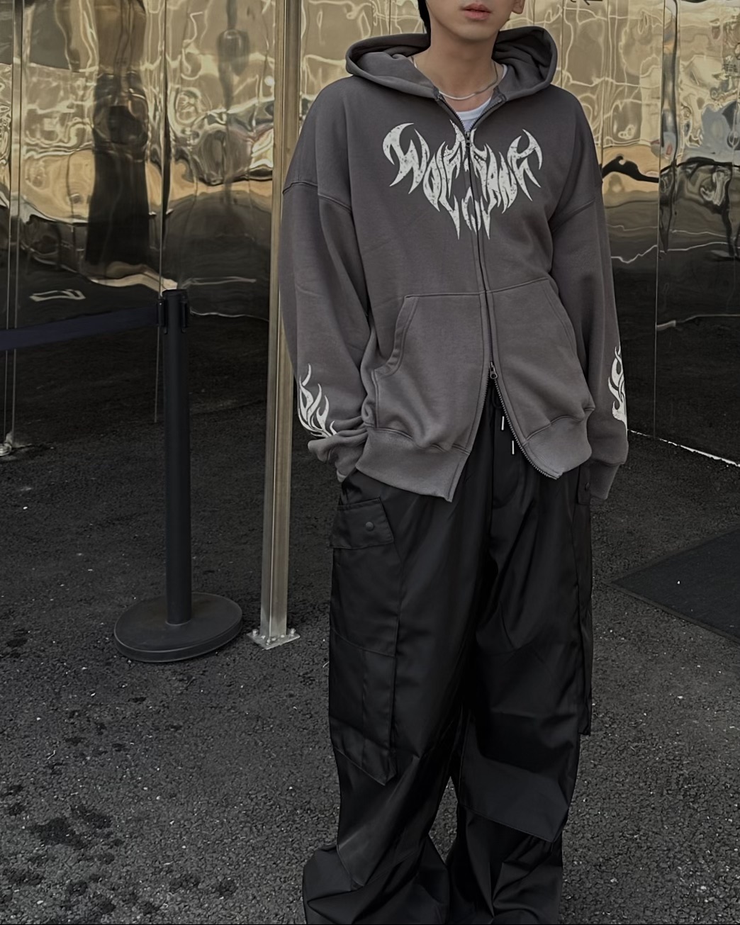 -탄탄한 쭈리 원단의 유니크한 후드 집업