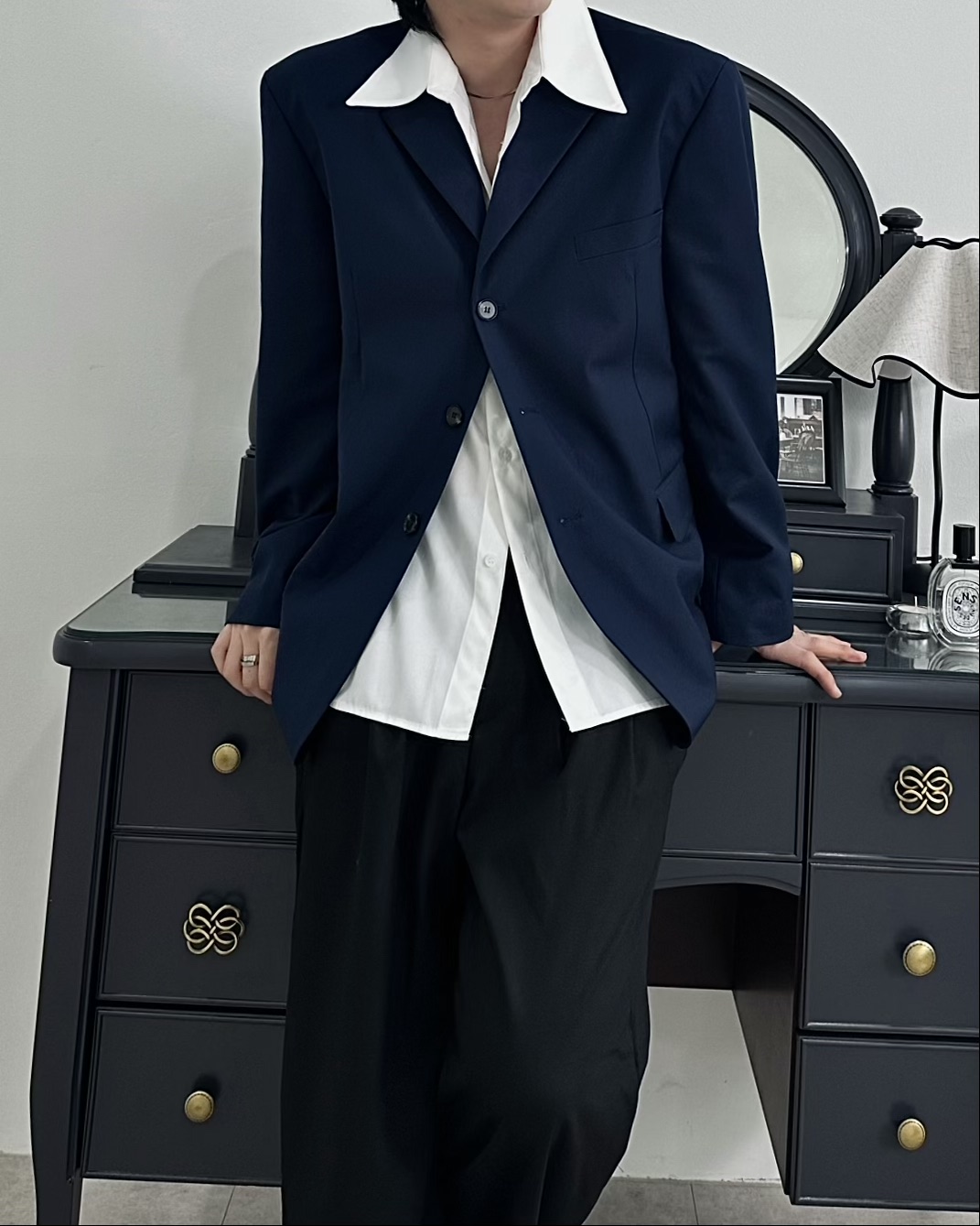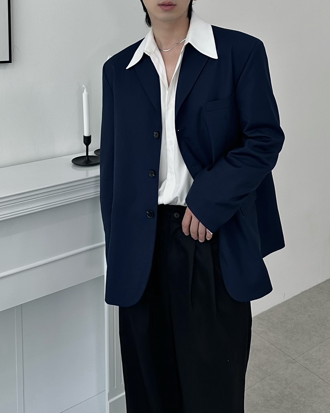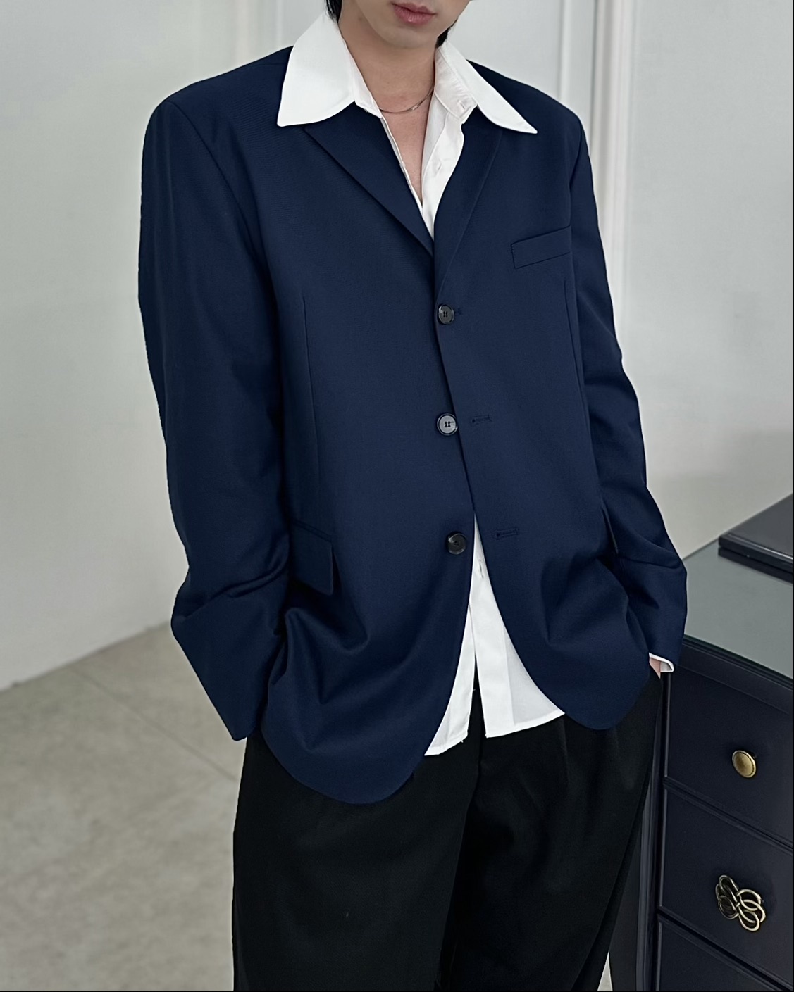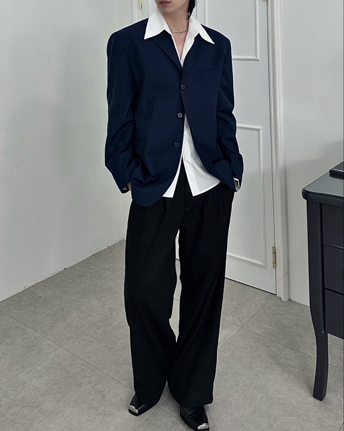 -3버튼 싱글 형태로 깔끔한 미니멀 아웃핏