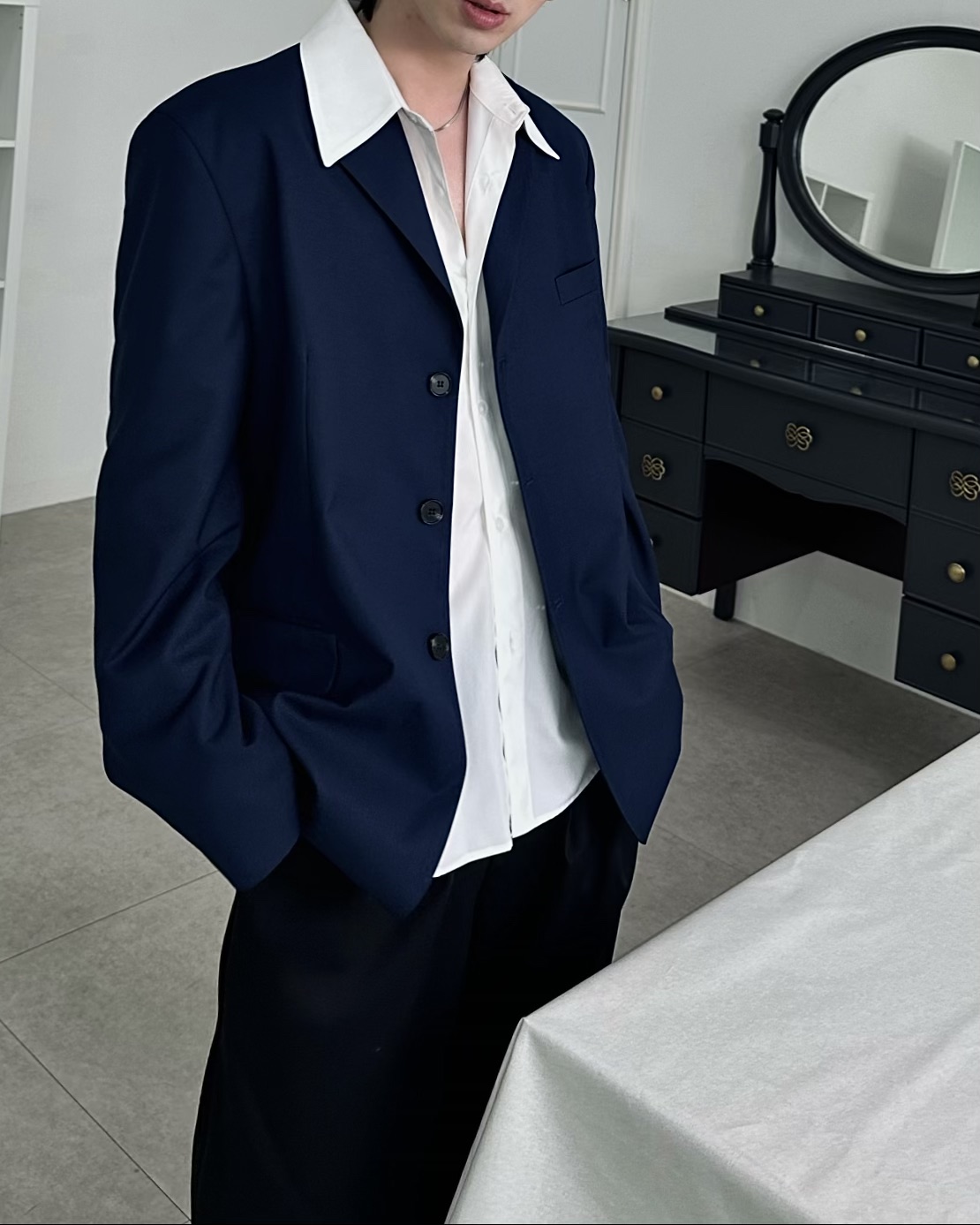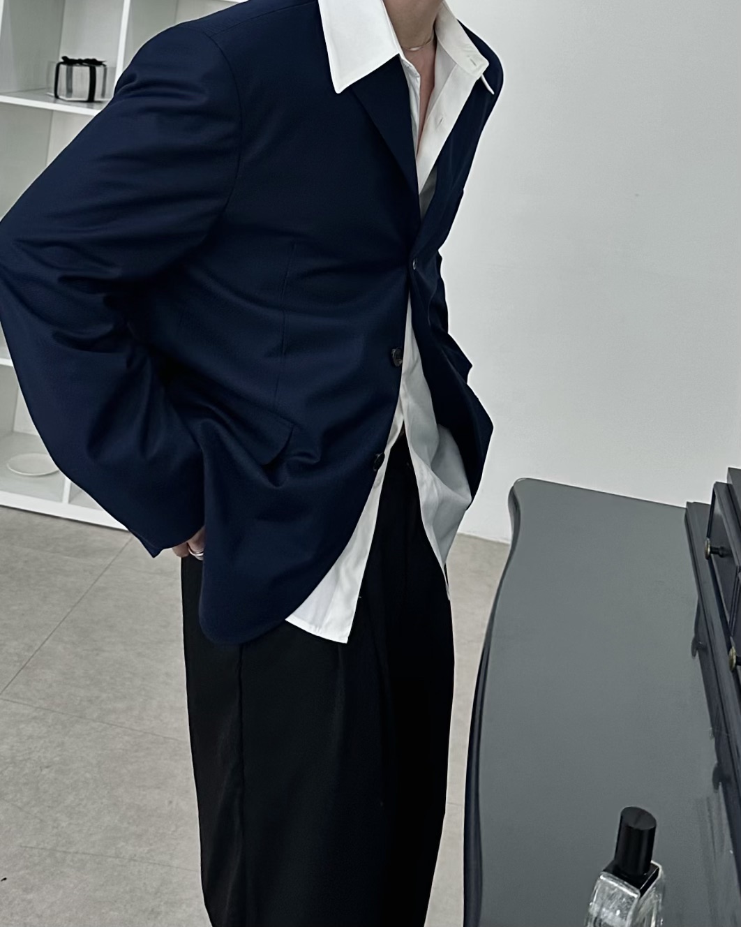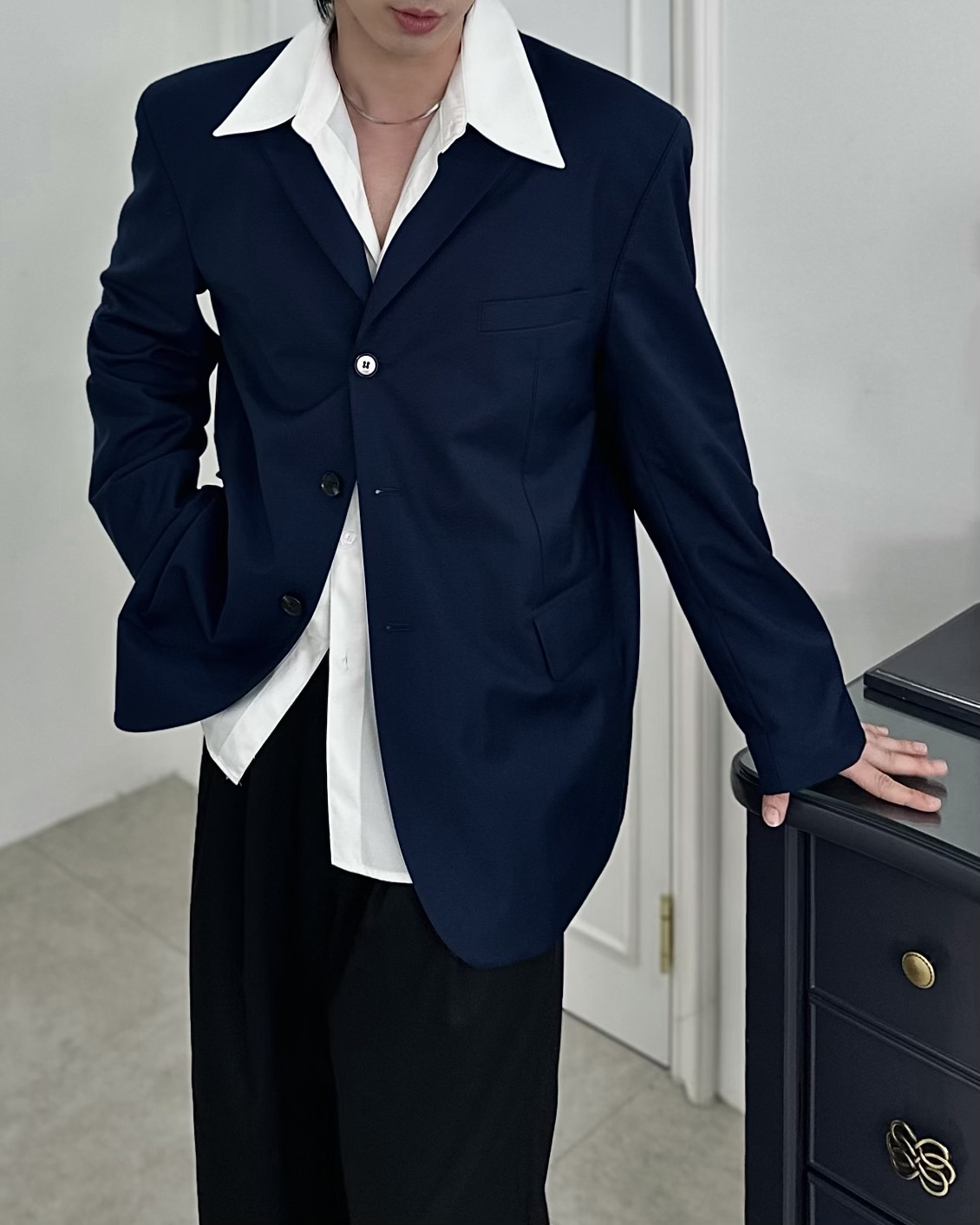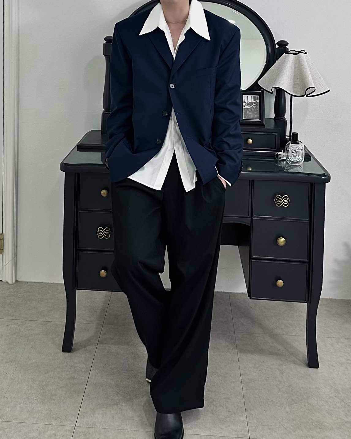 -3버튼 싱글 형태로 깔끔한 미니멀 아웃핏
