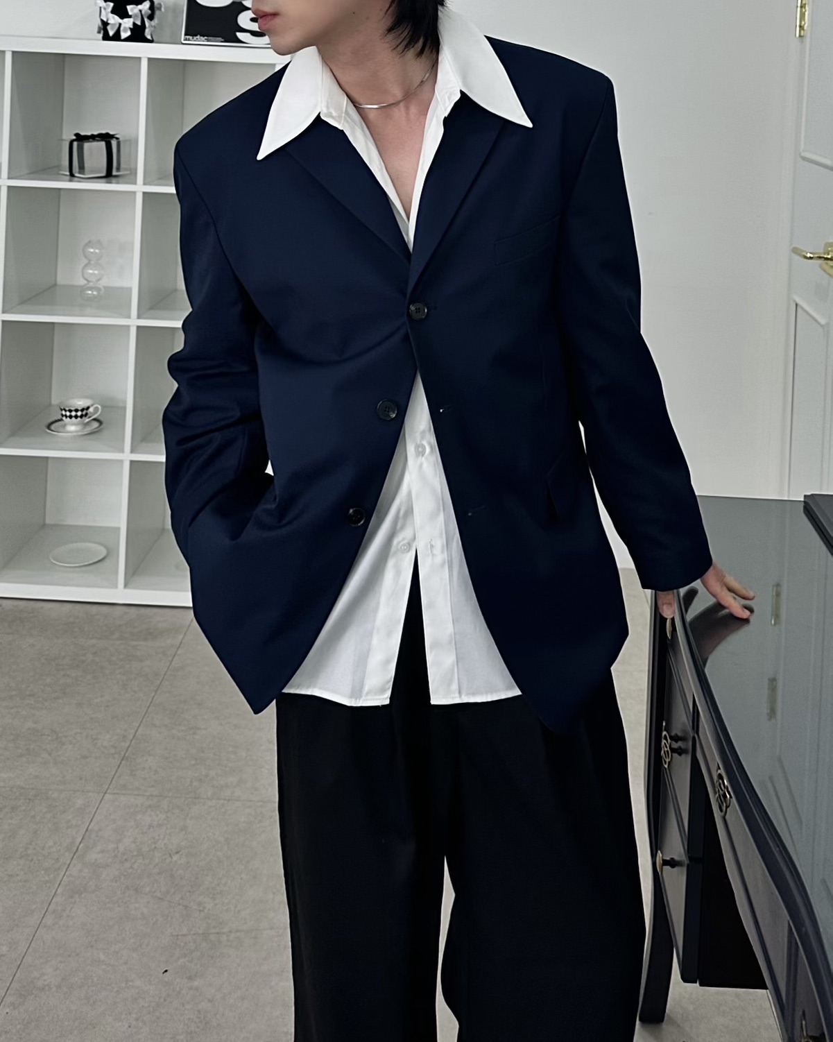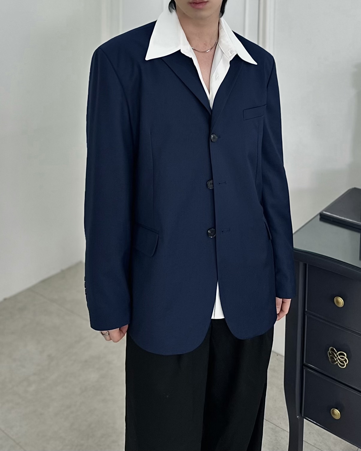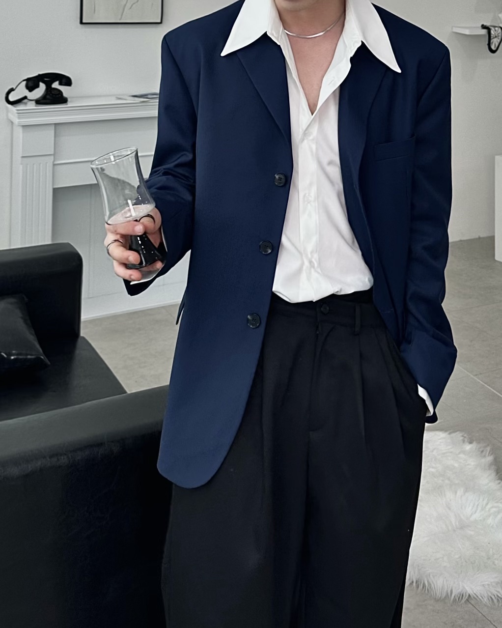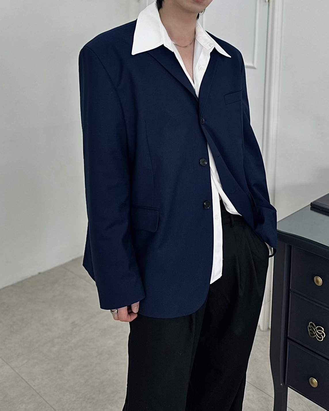 -3버튼 싱글 형태로 깔끔한 미니멀 아웃핏