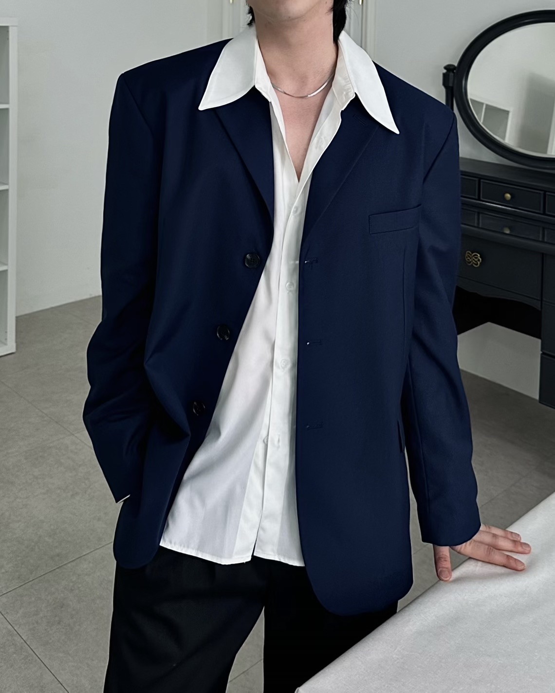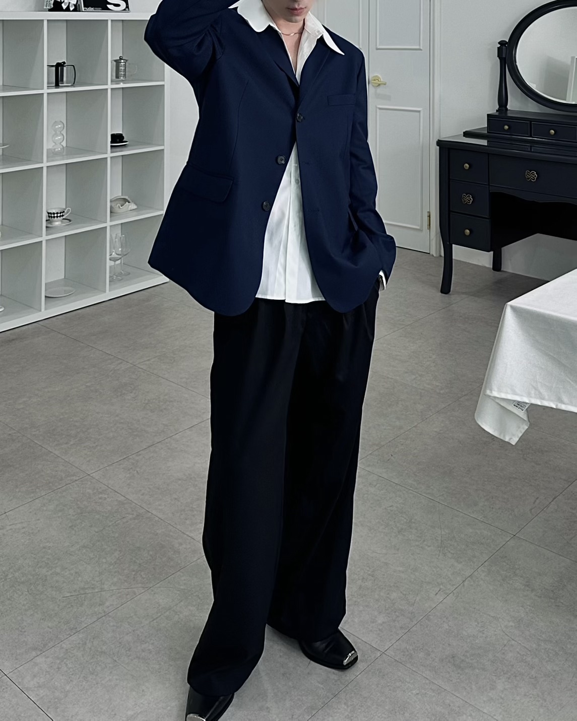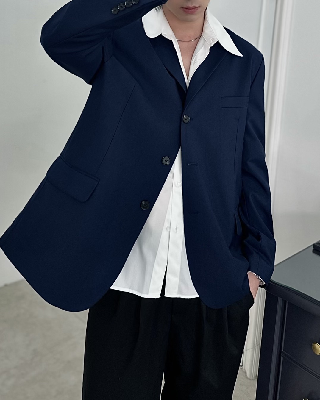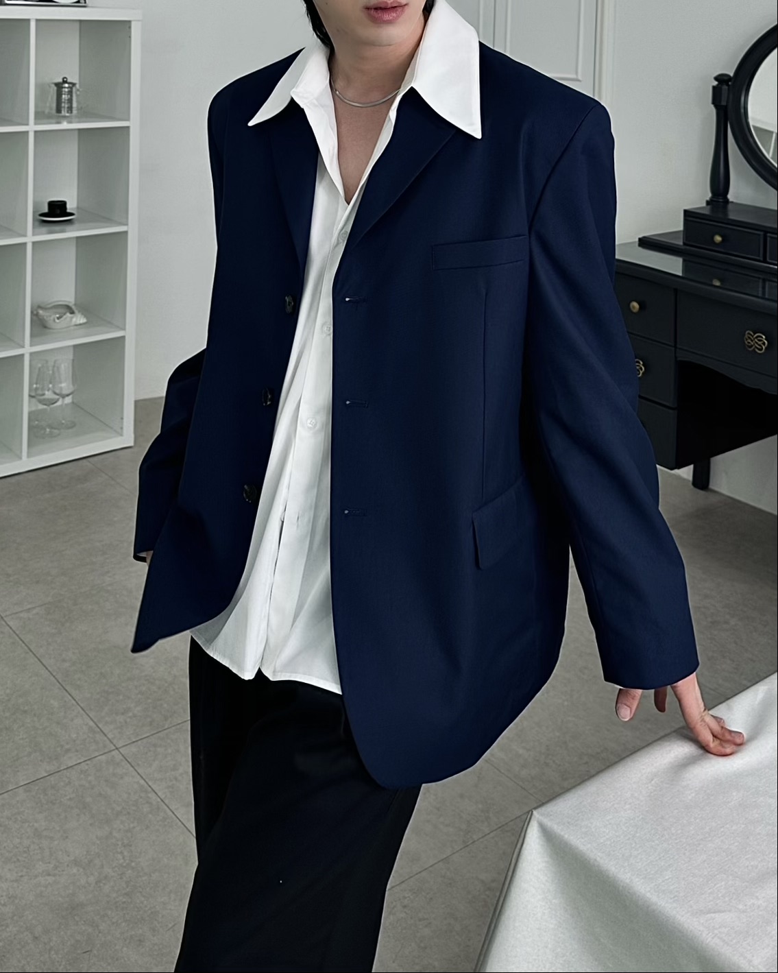 -3버튼 싱글 형태로 깔끔한 미니멀 아웃핏