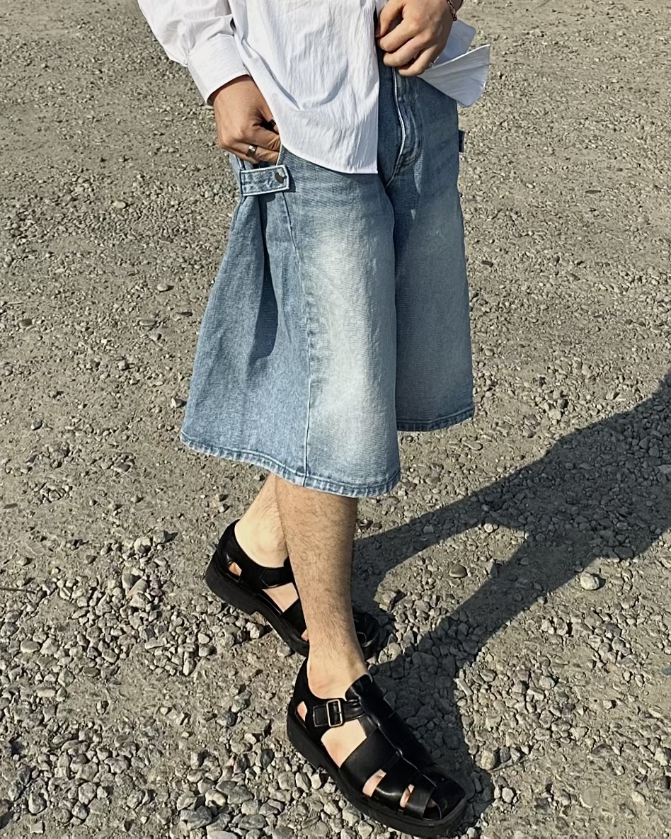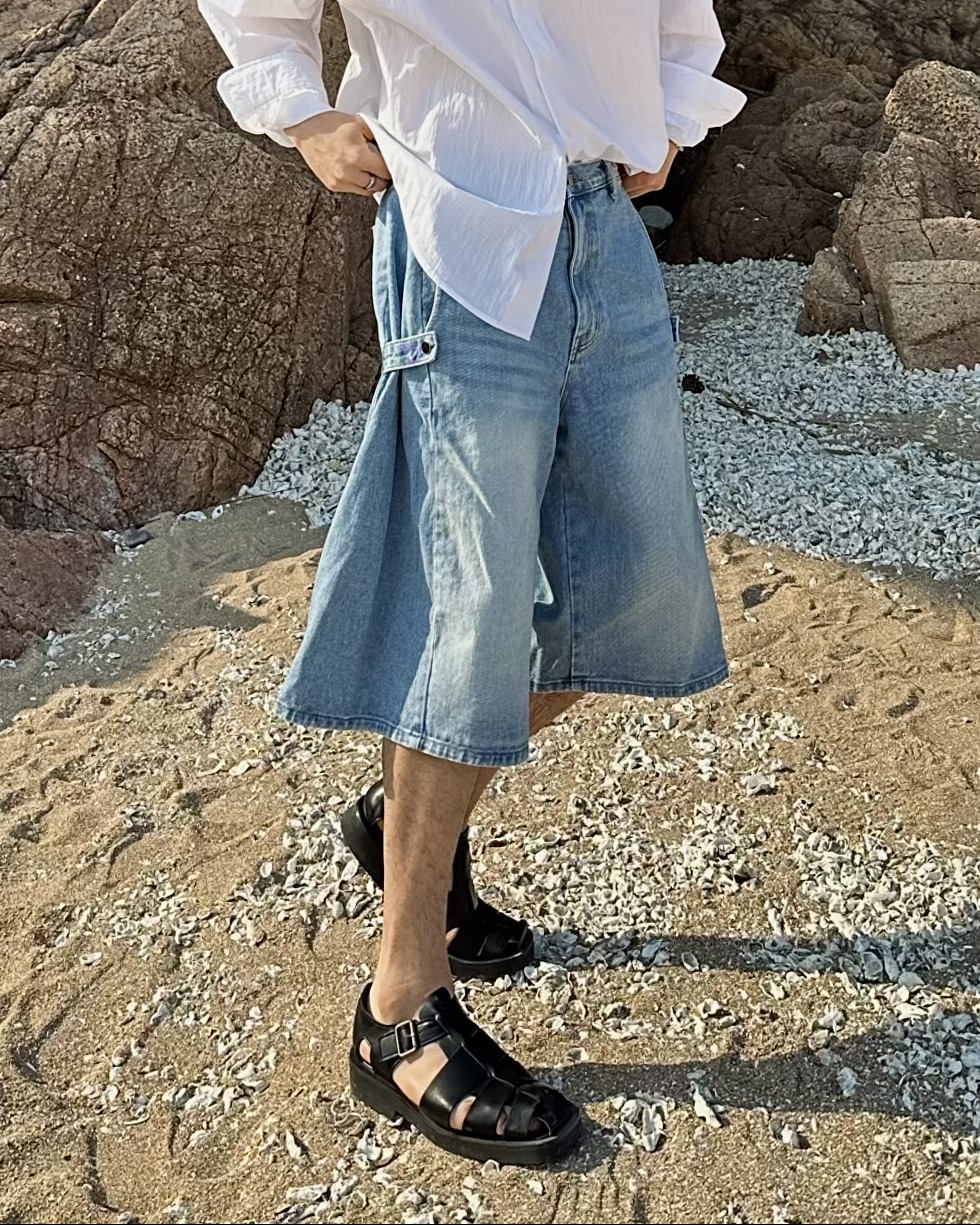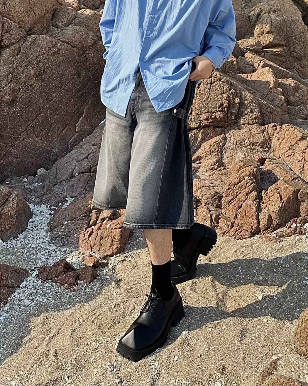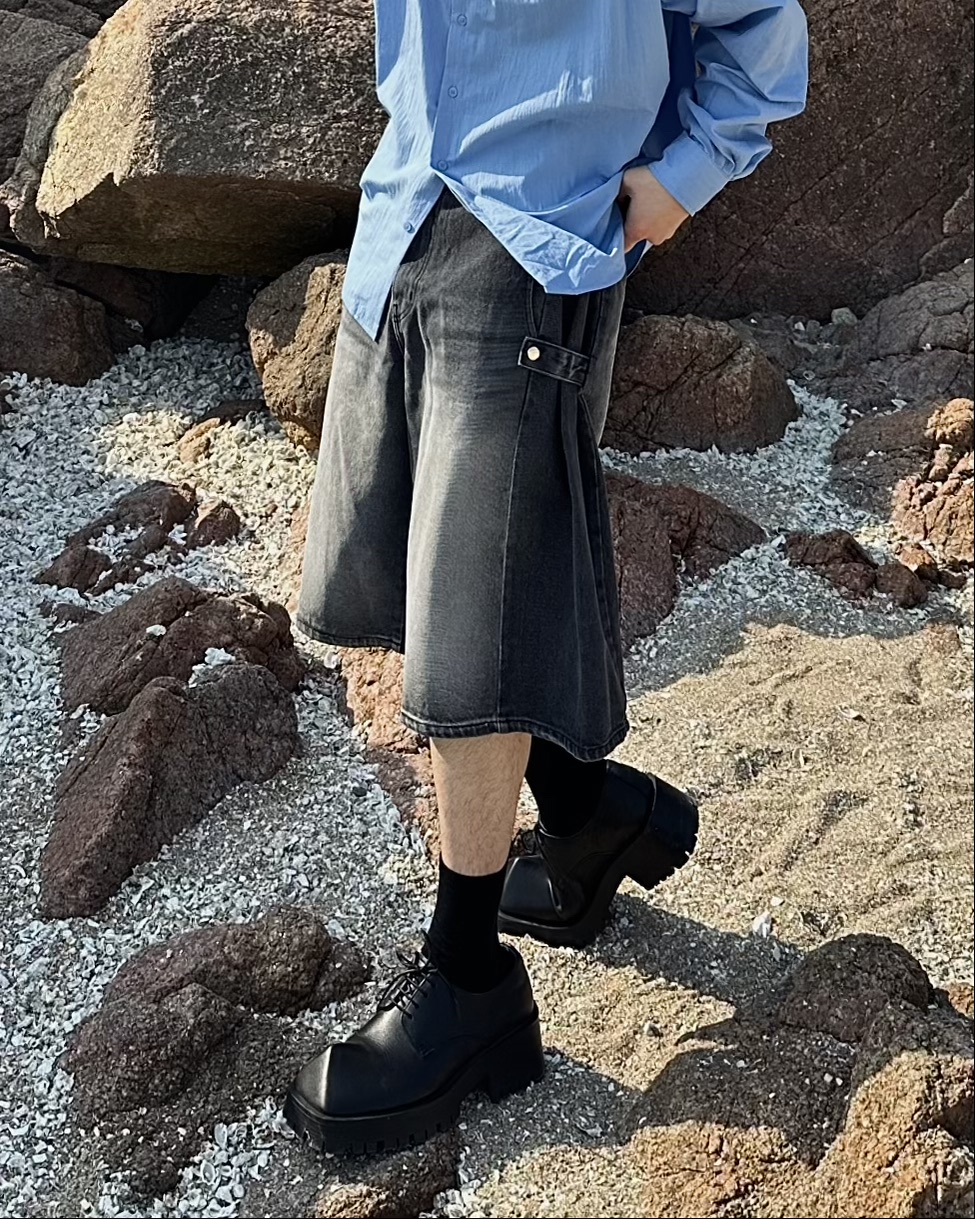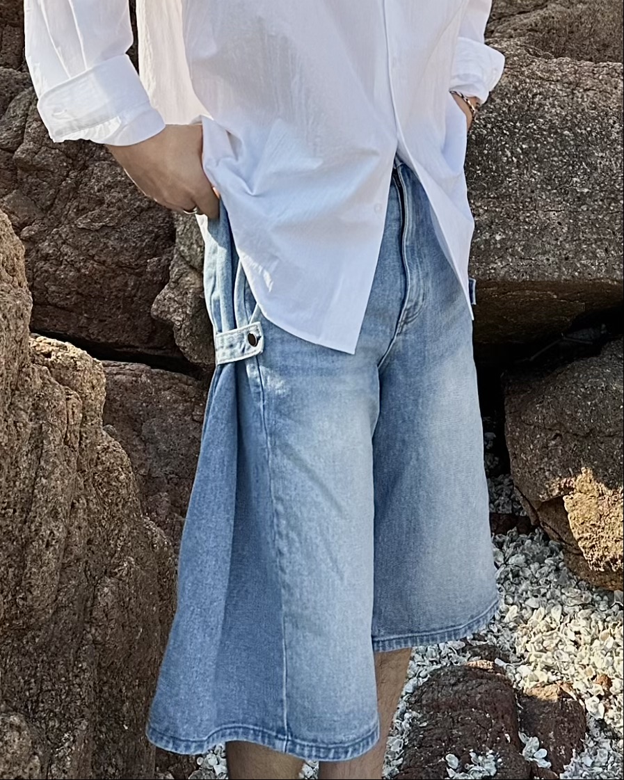 -탄탄한 데님 원단의 하프 팬츠