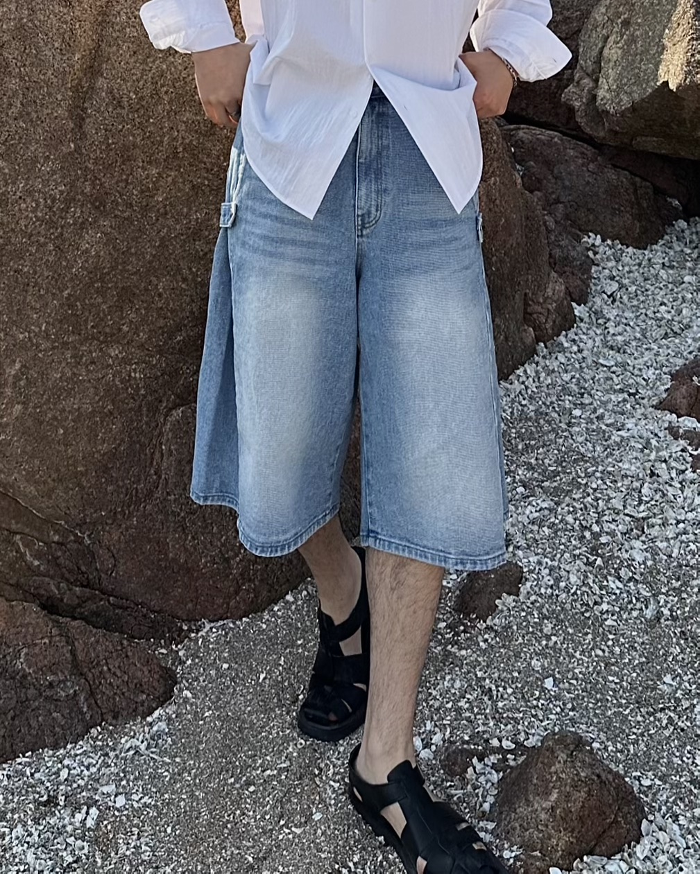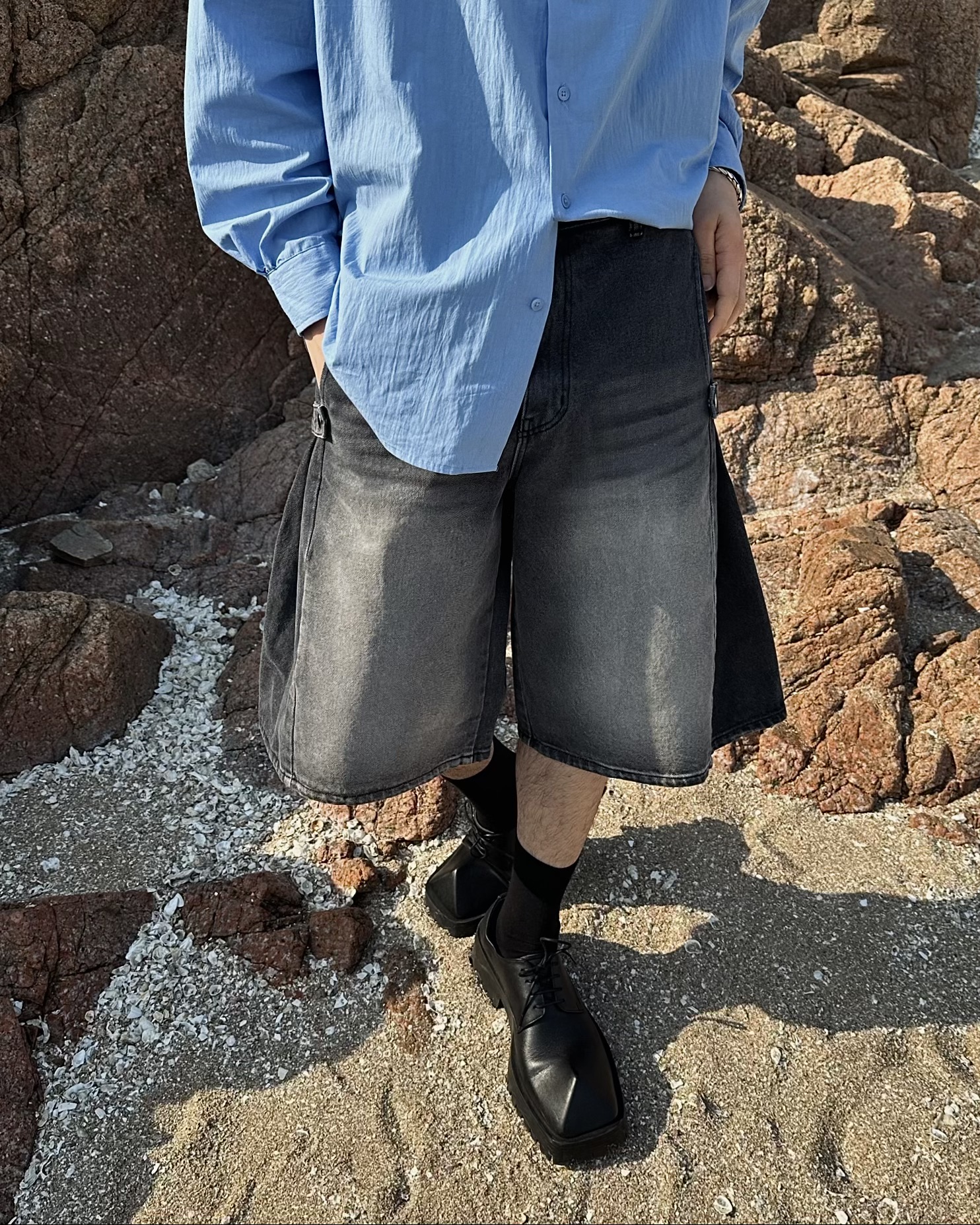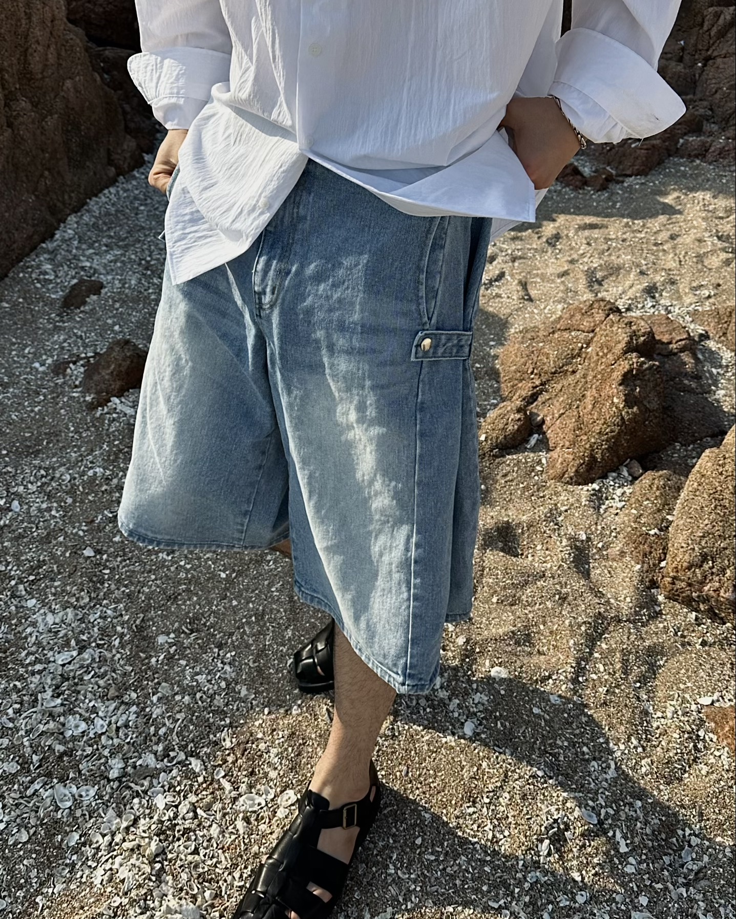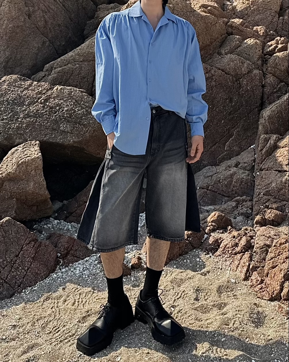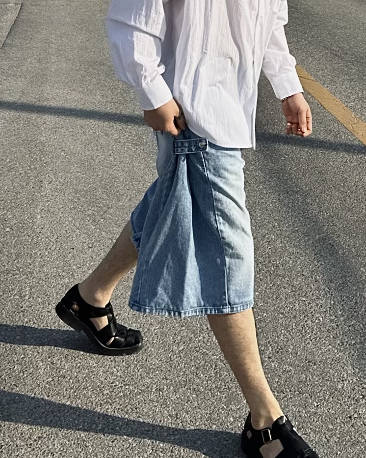 -탄탄한 데님 원단의 하프 팬츠