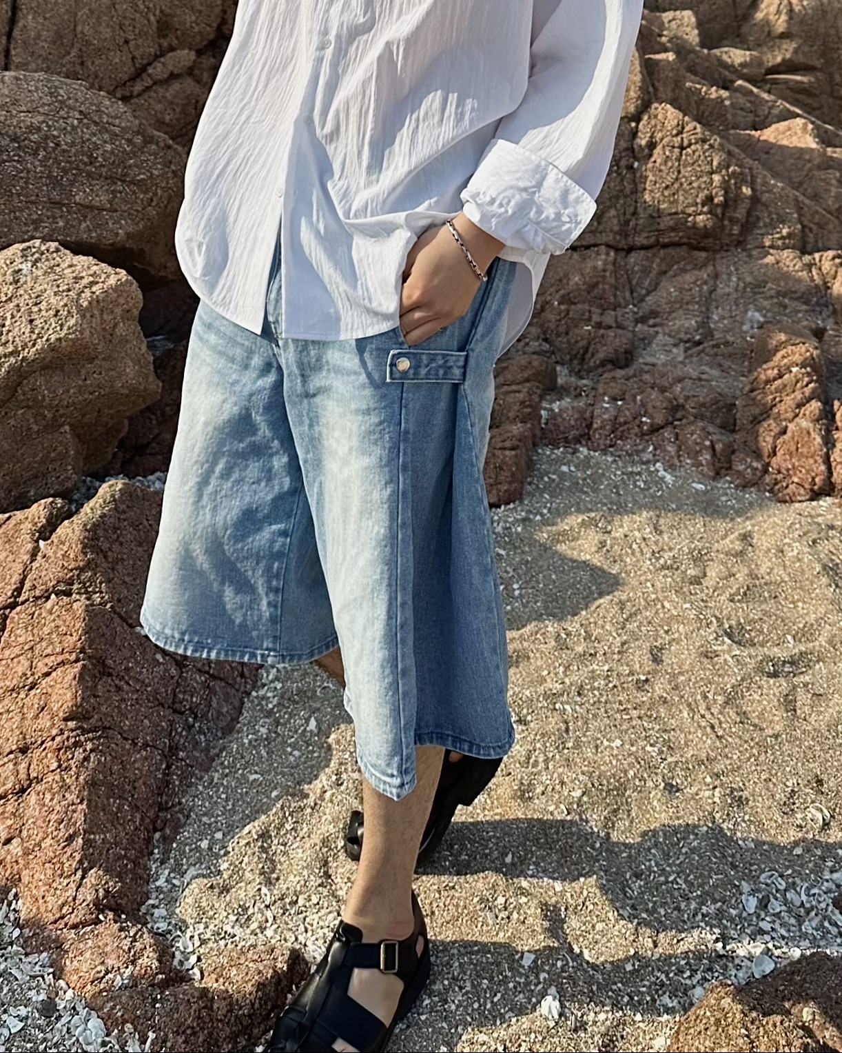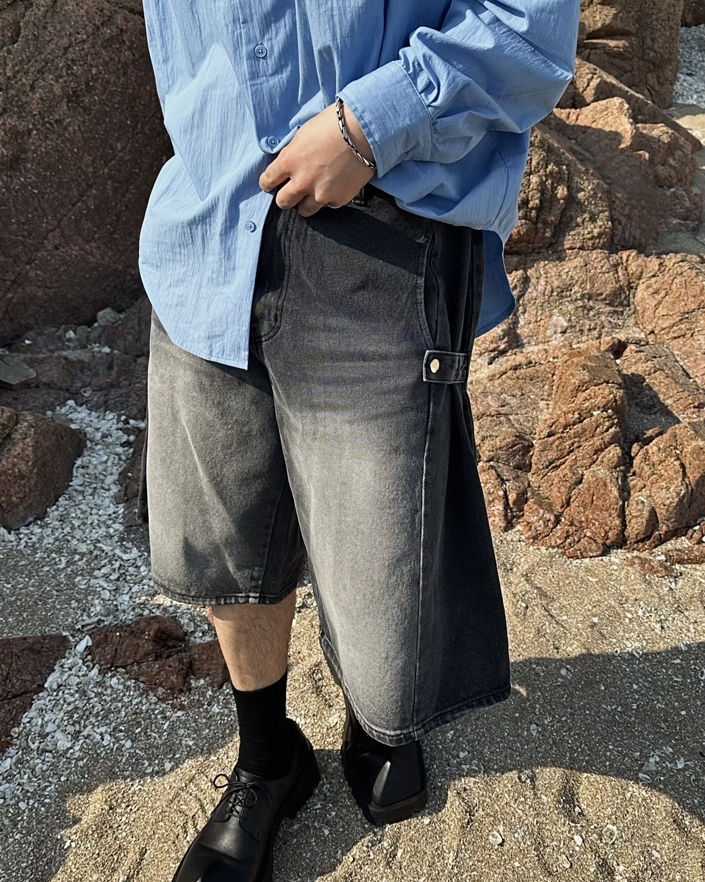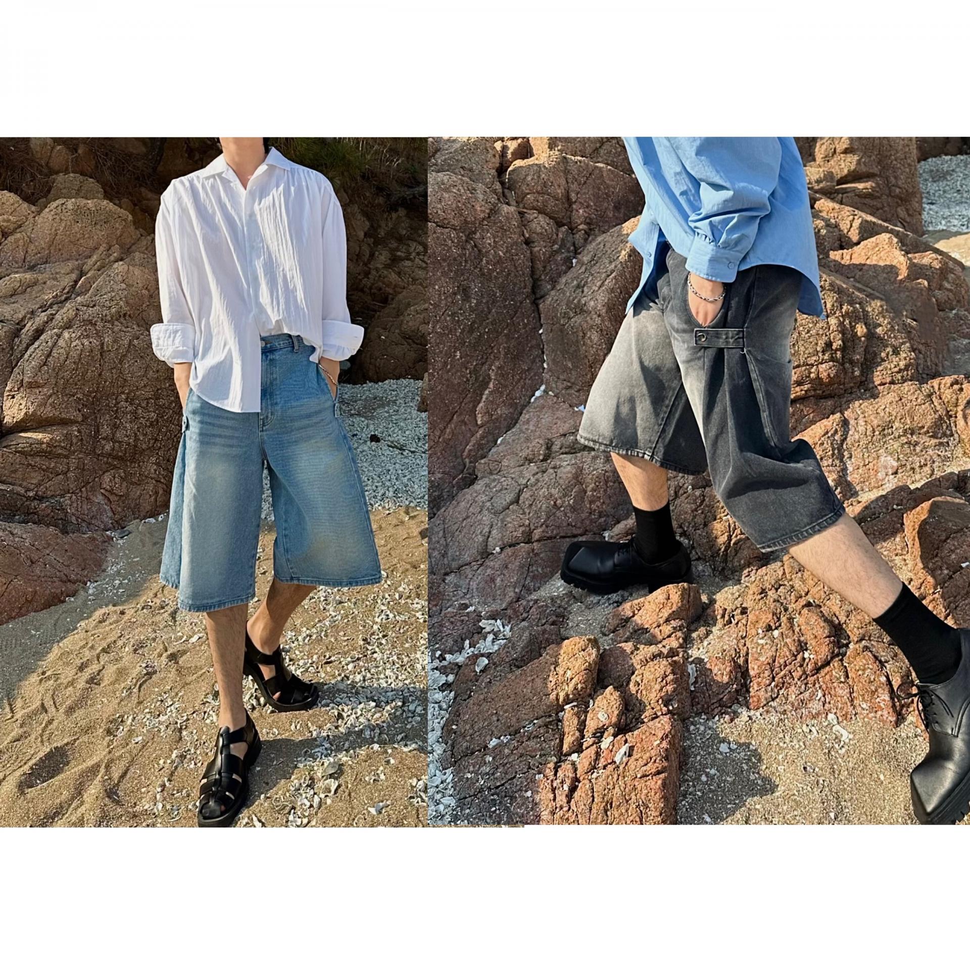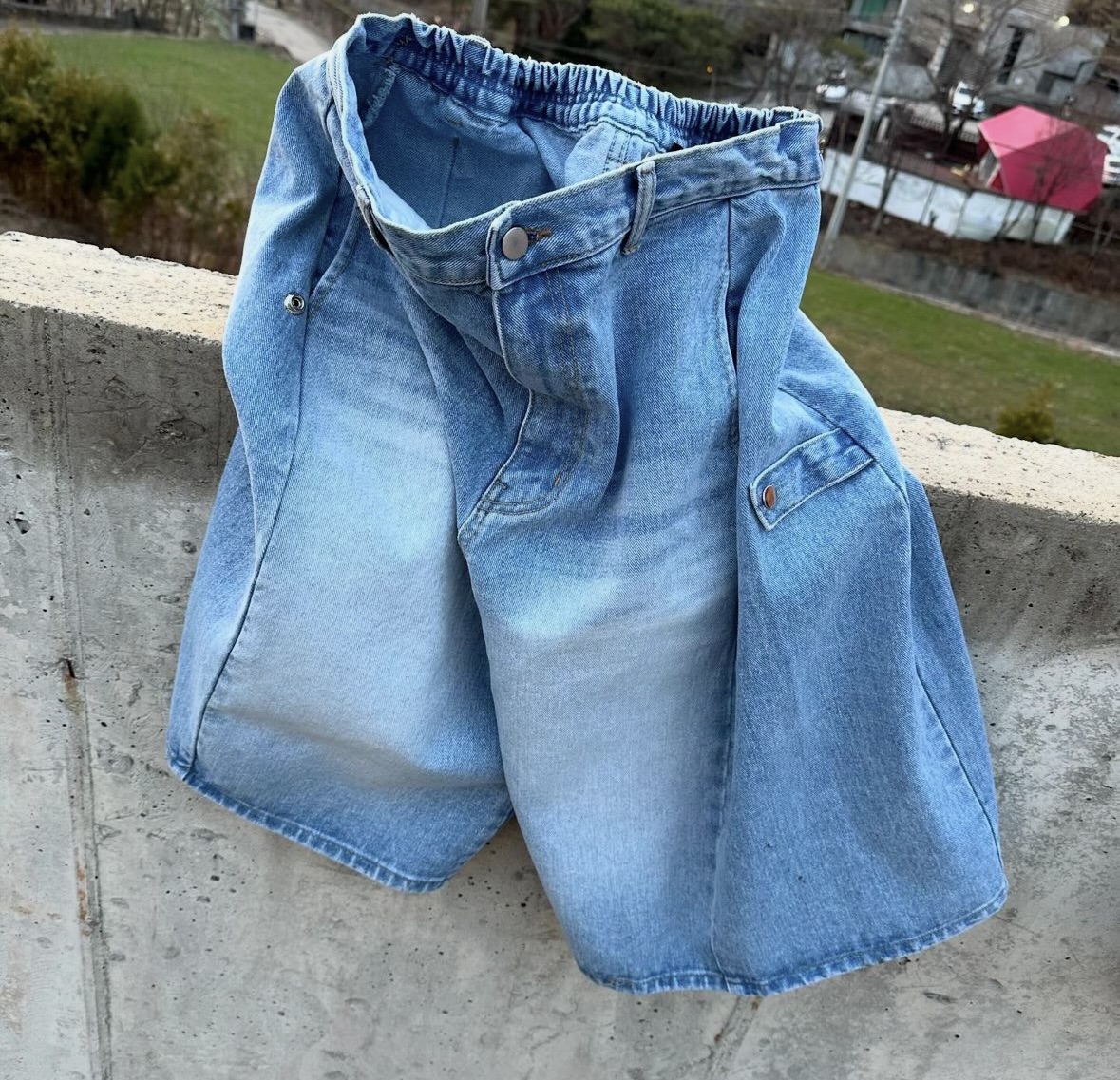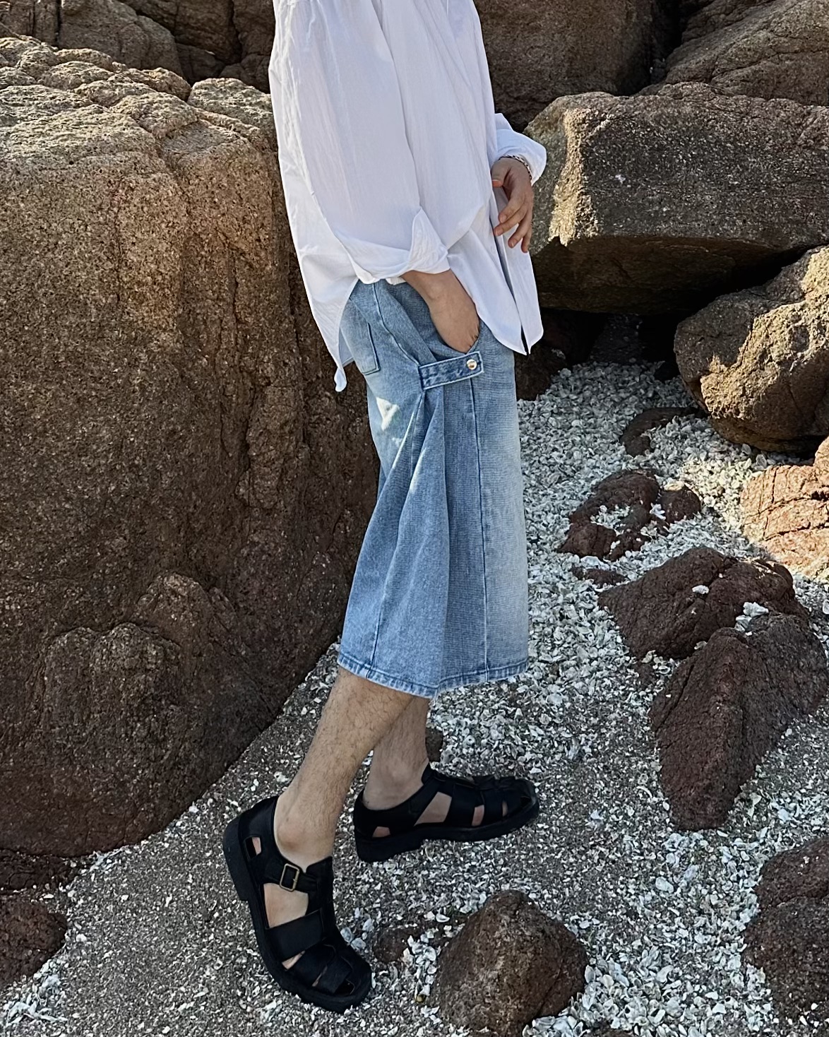 -탄탄한 데님 원단의 하프 팬츠