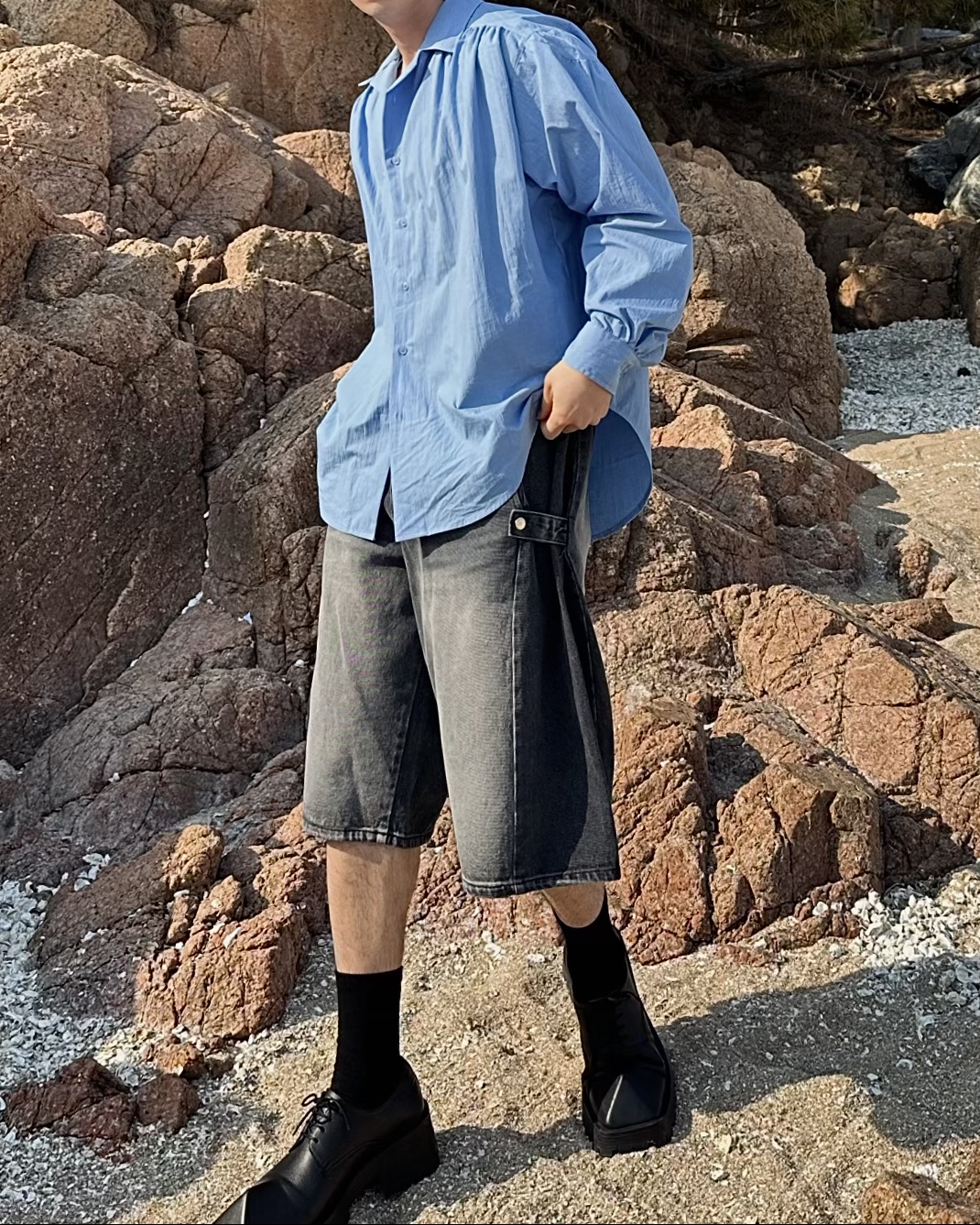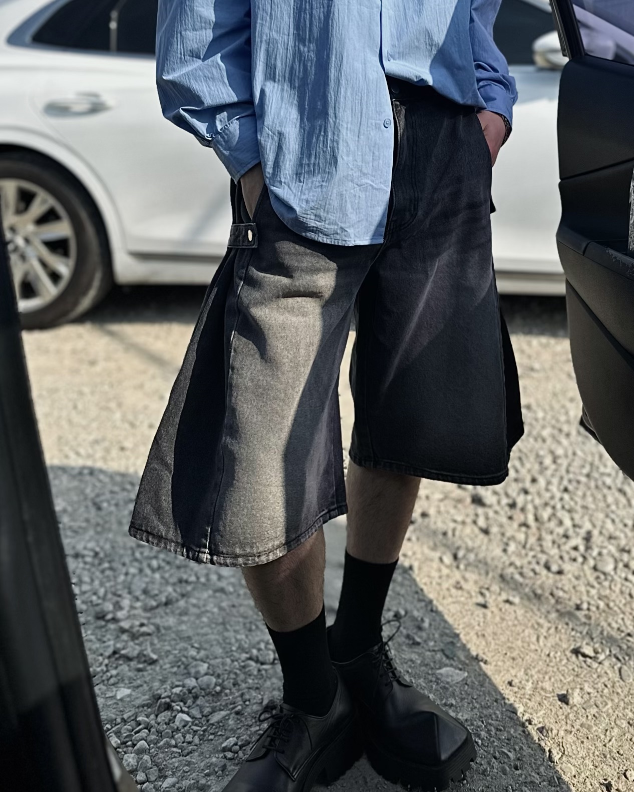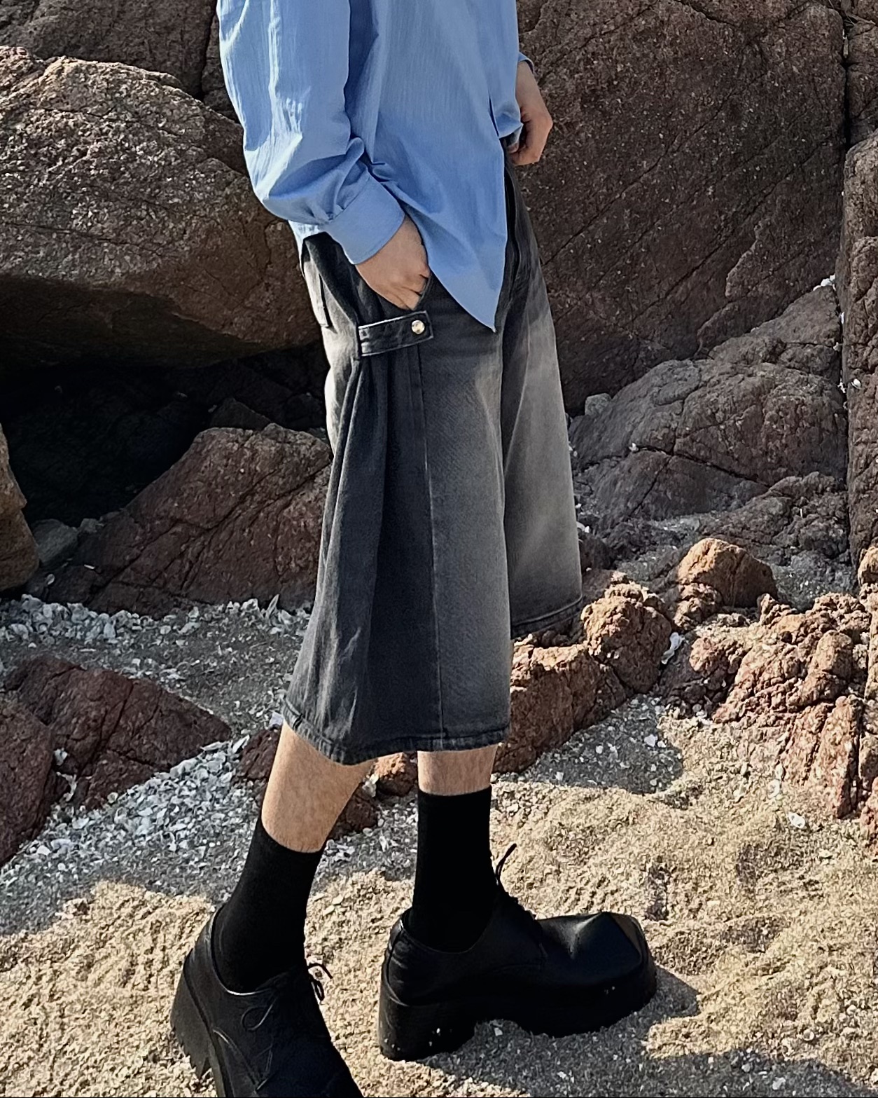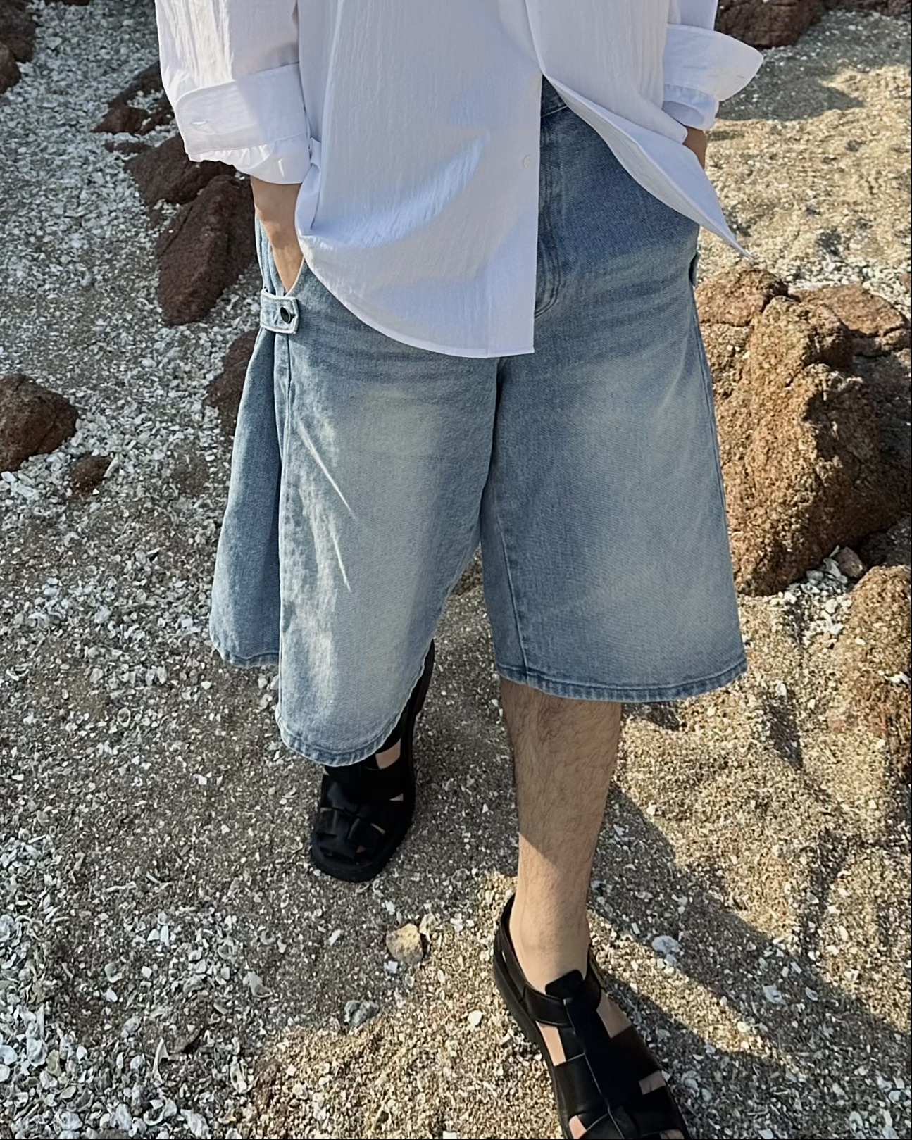 -탄탄한 데님 원단의 하프 팬츠