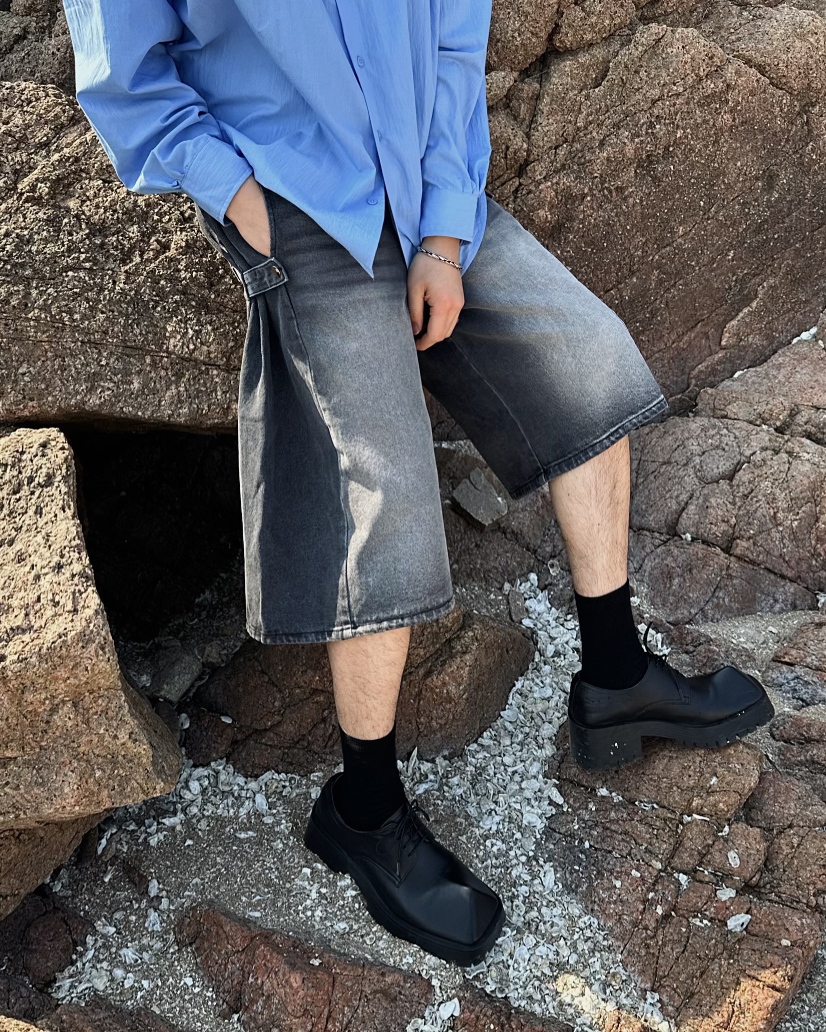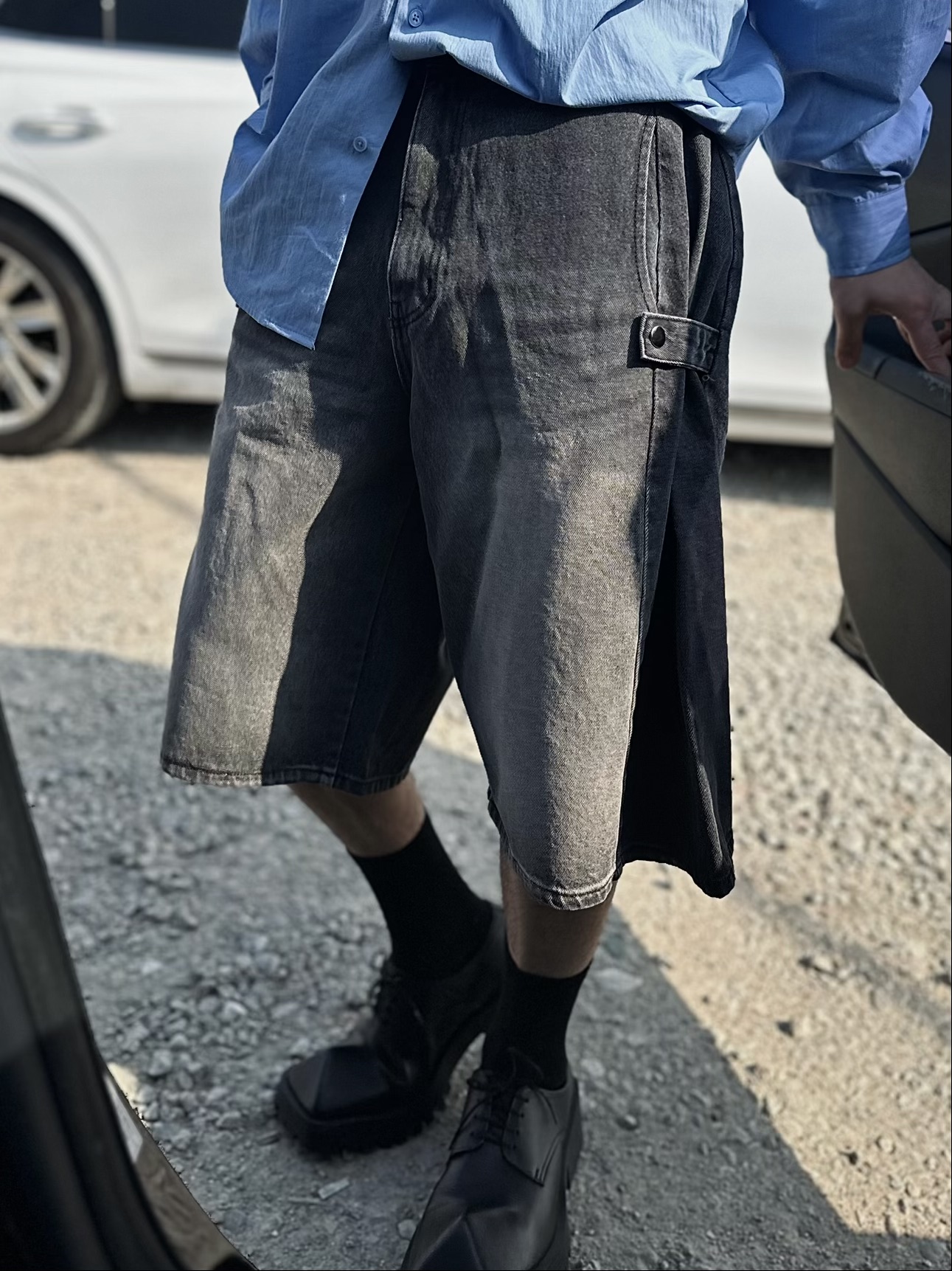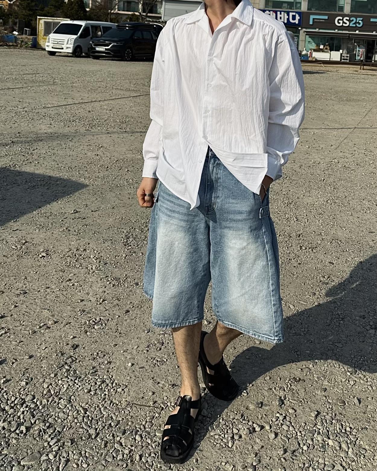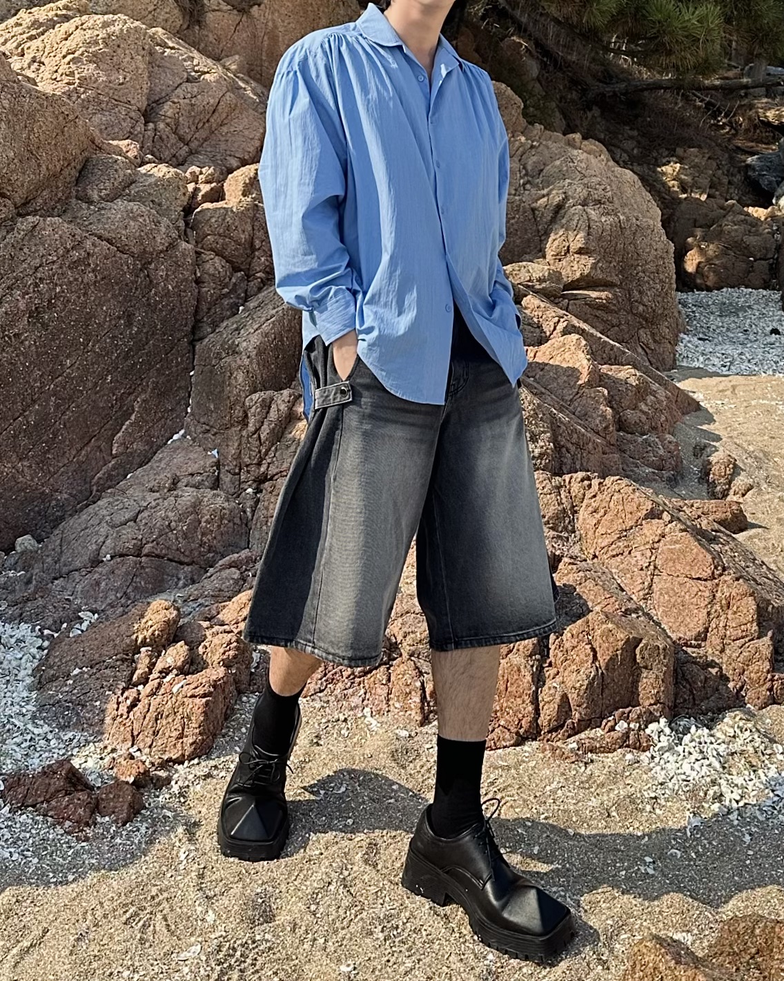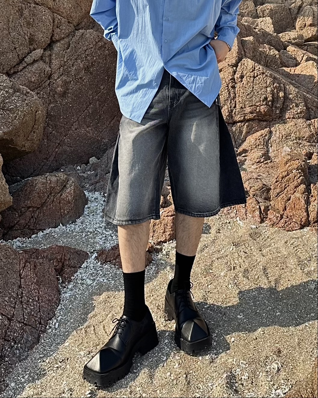 -탄탄한 데님 원단의 하프 팬츠