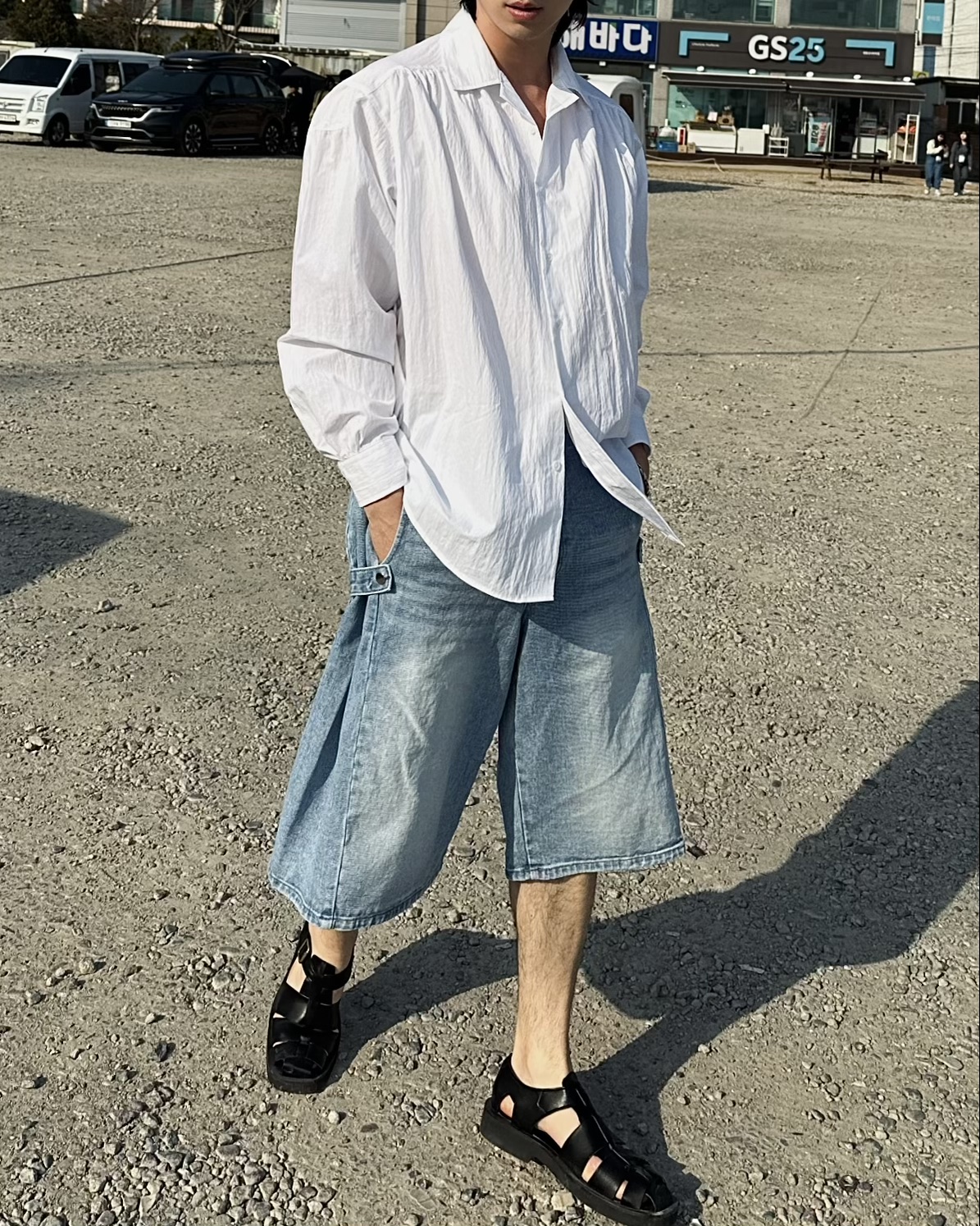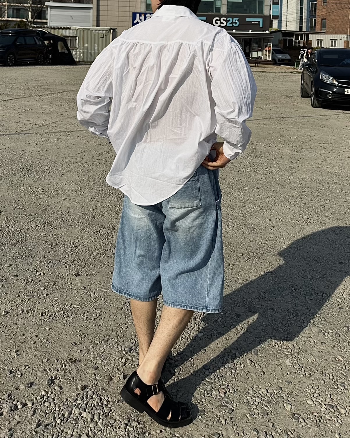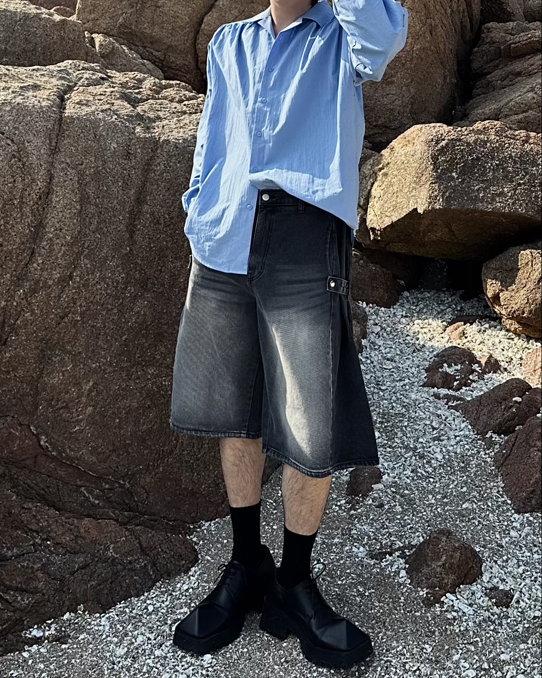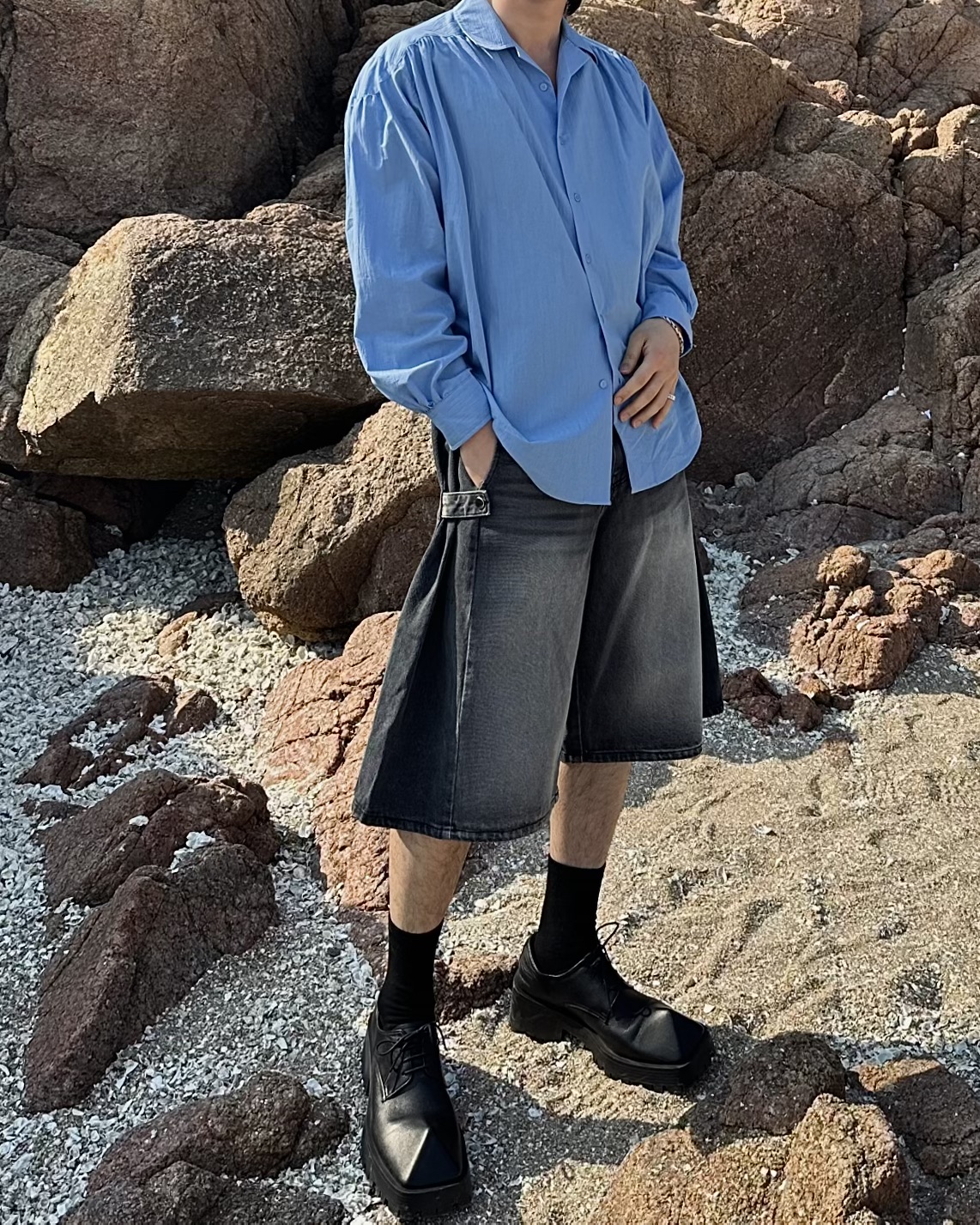 -탄탄한 데님 원단의 하프 팬츠