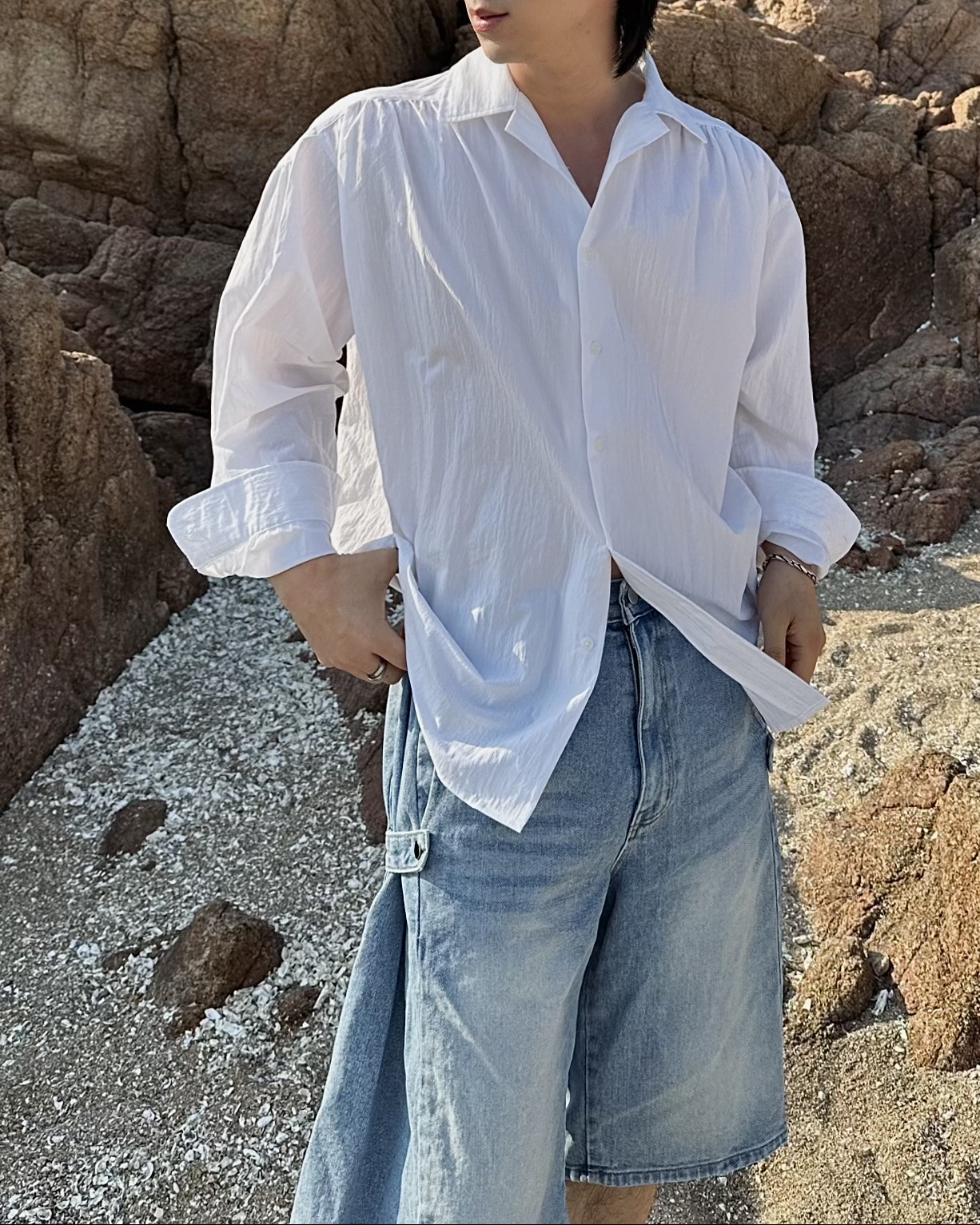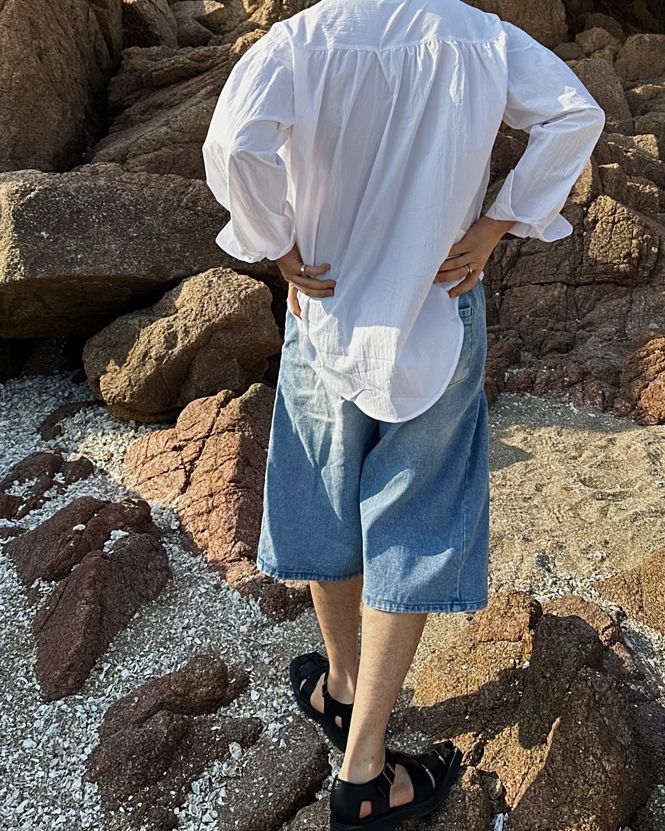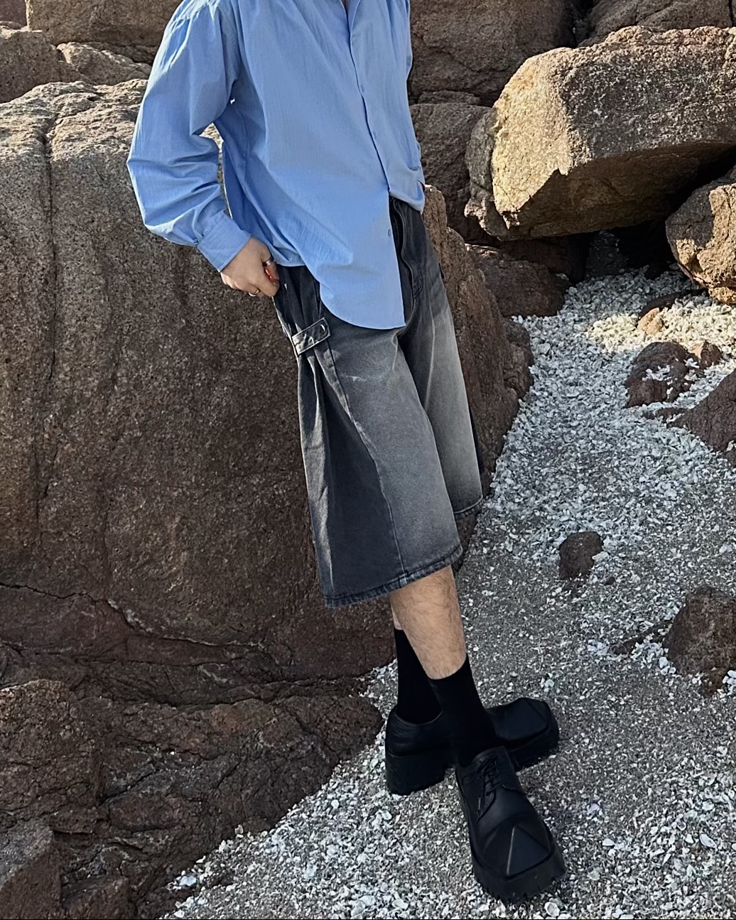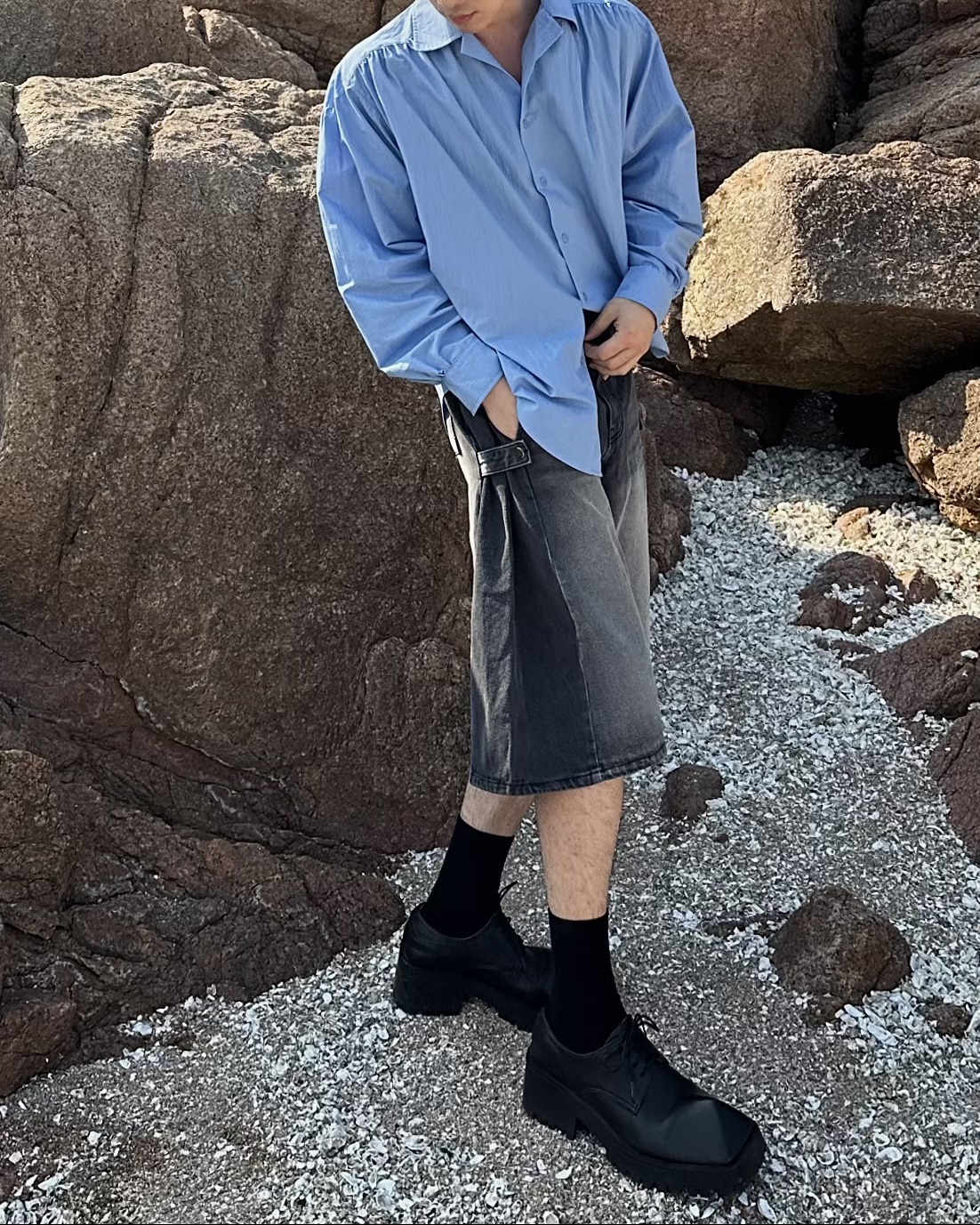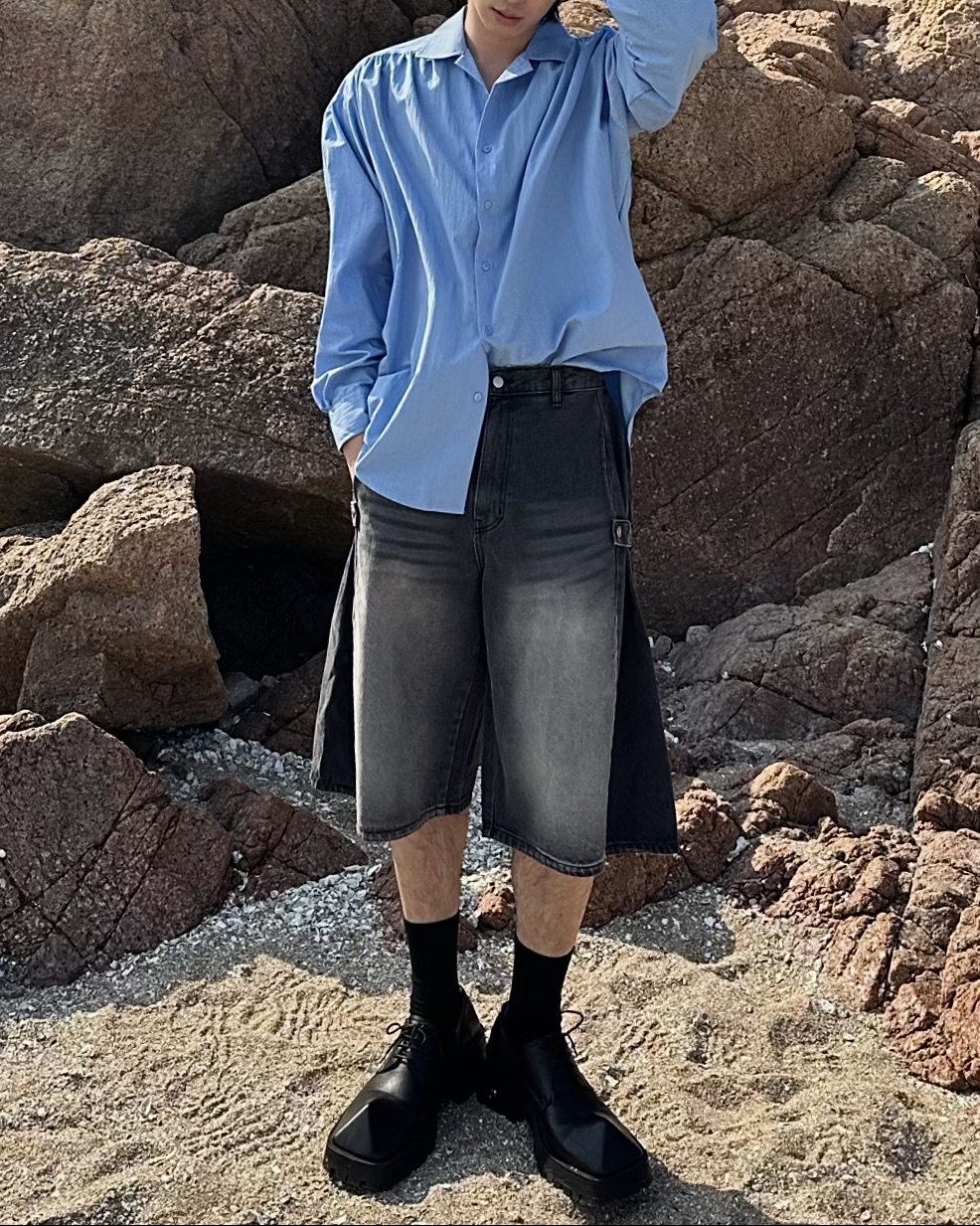 -탄탄한 데님 원단의 하프 팬츠
