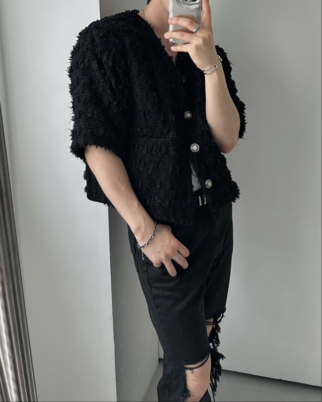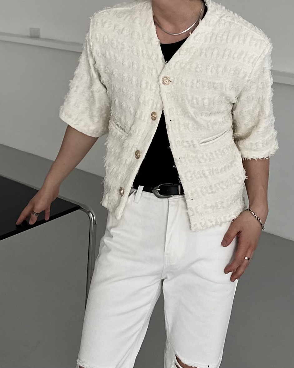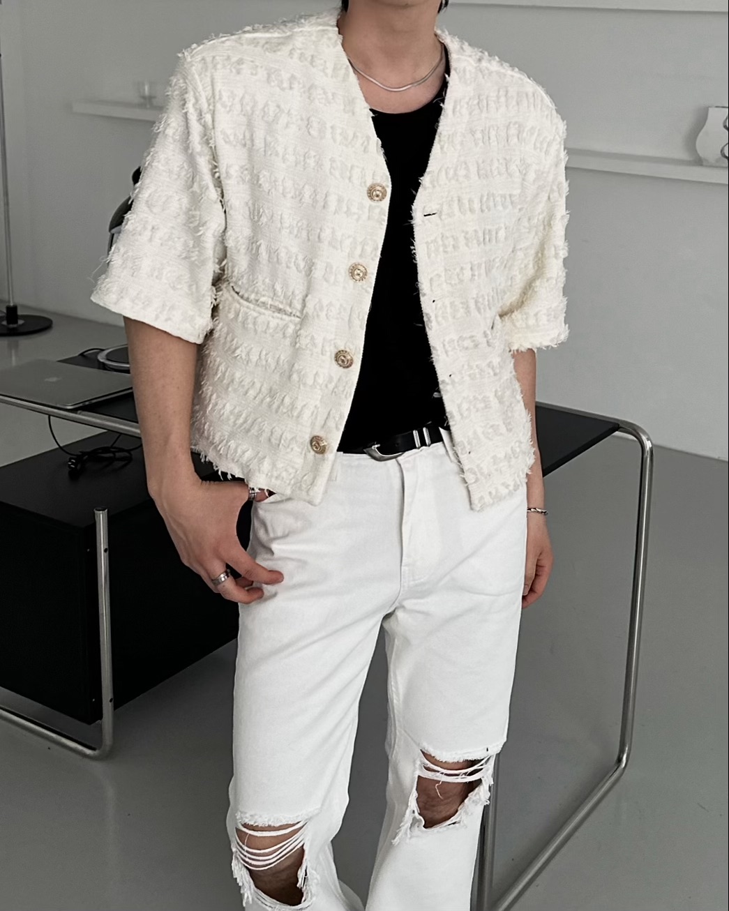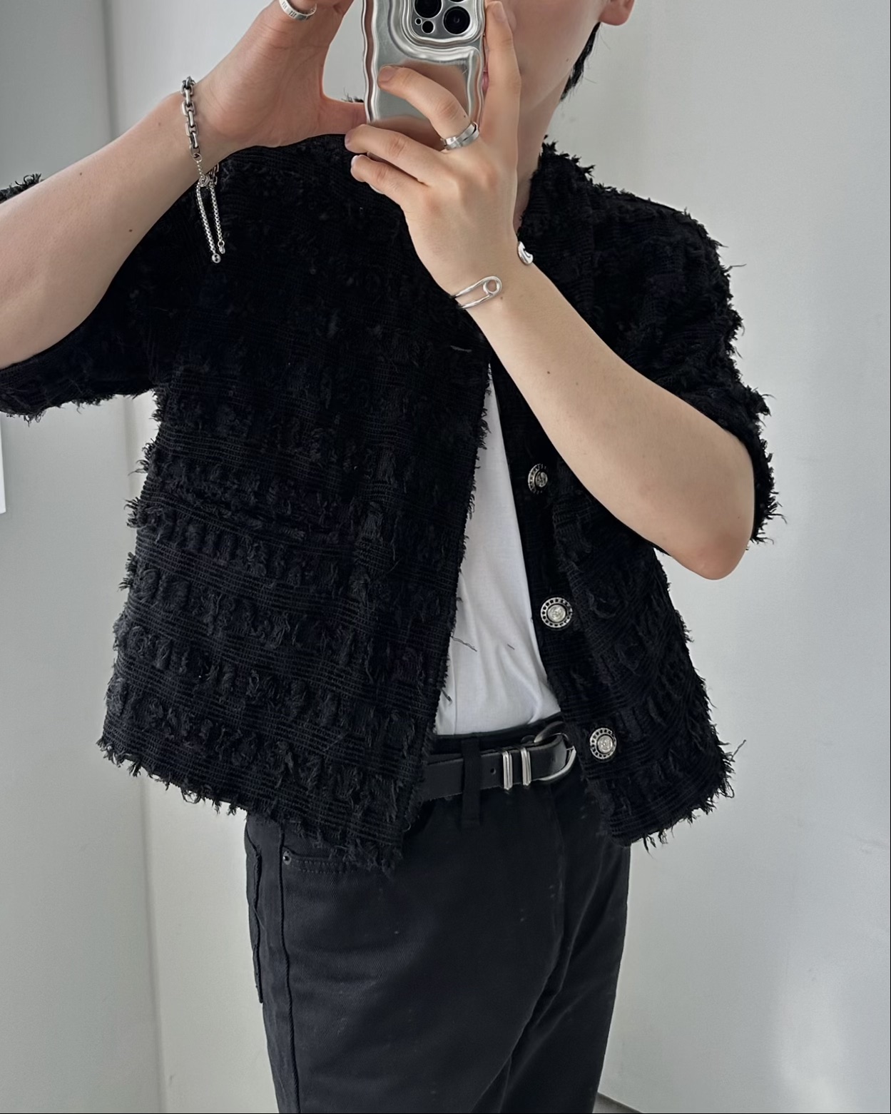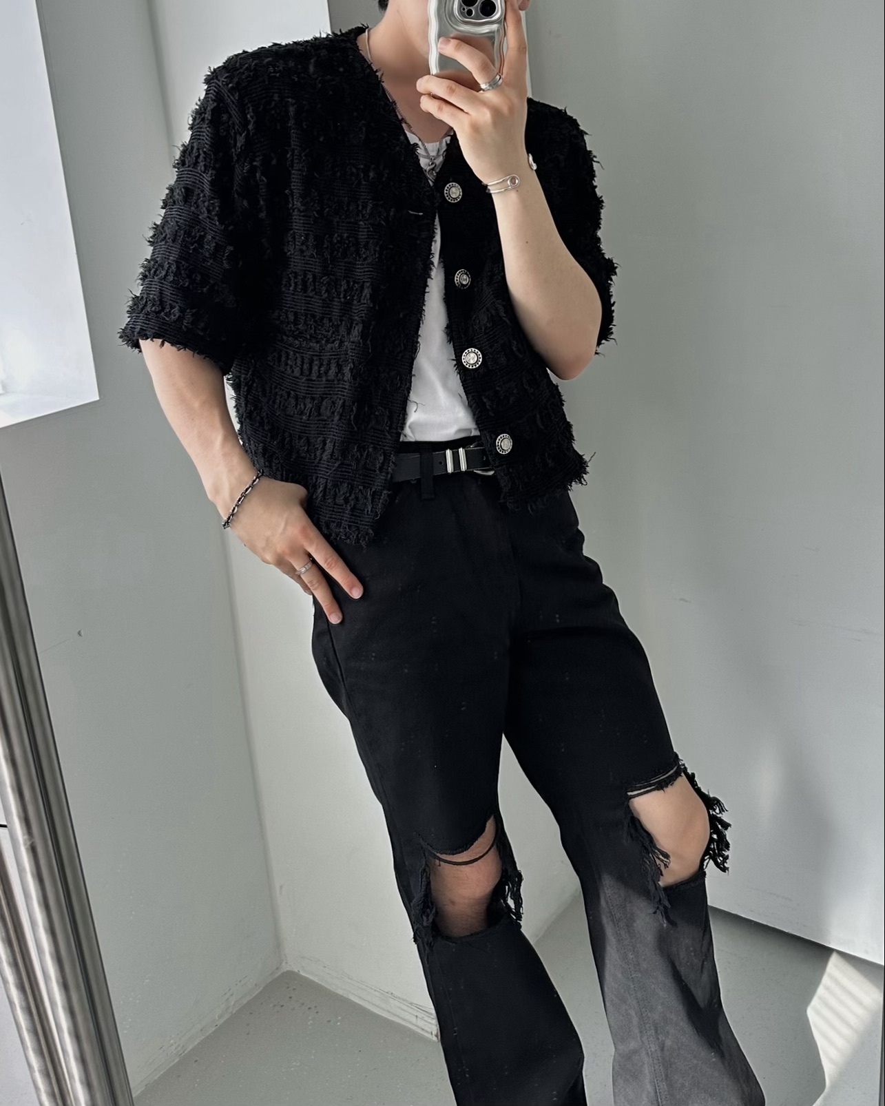 -S/S시즌 스타일링 내기 좋은 유니크한 트위드 하프 자켓
