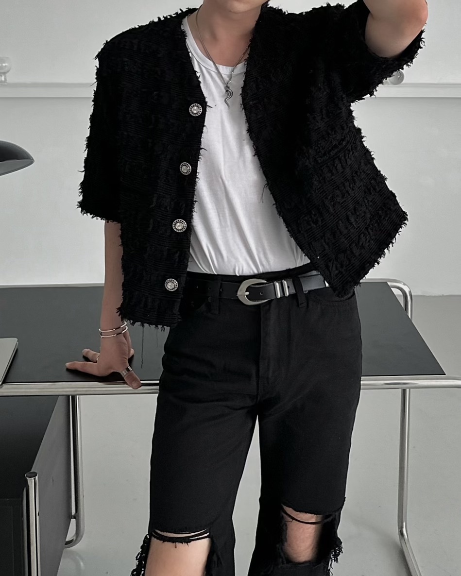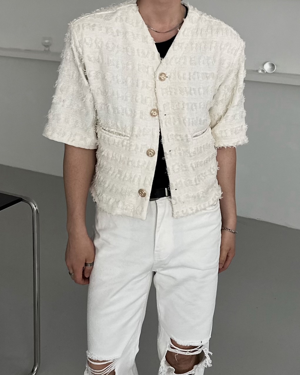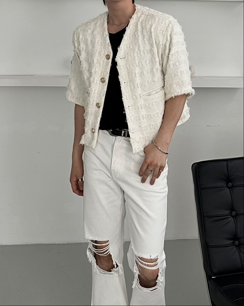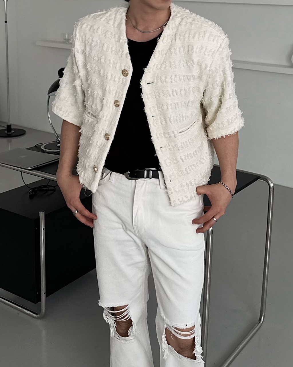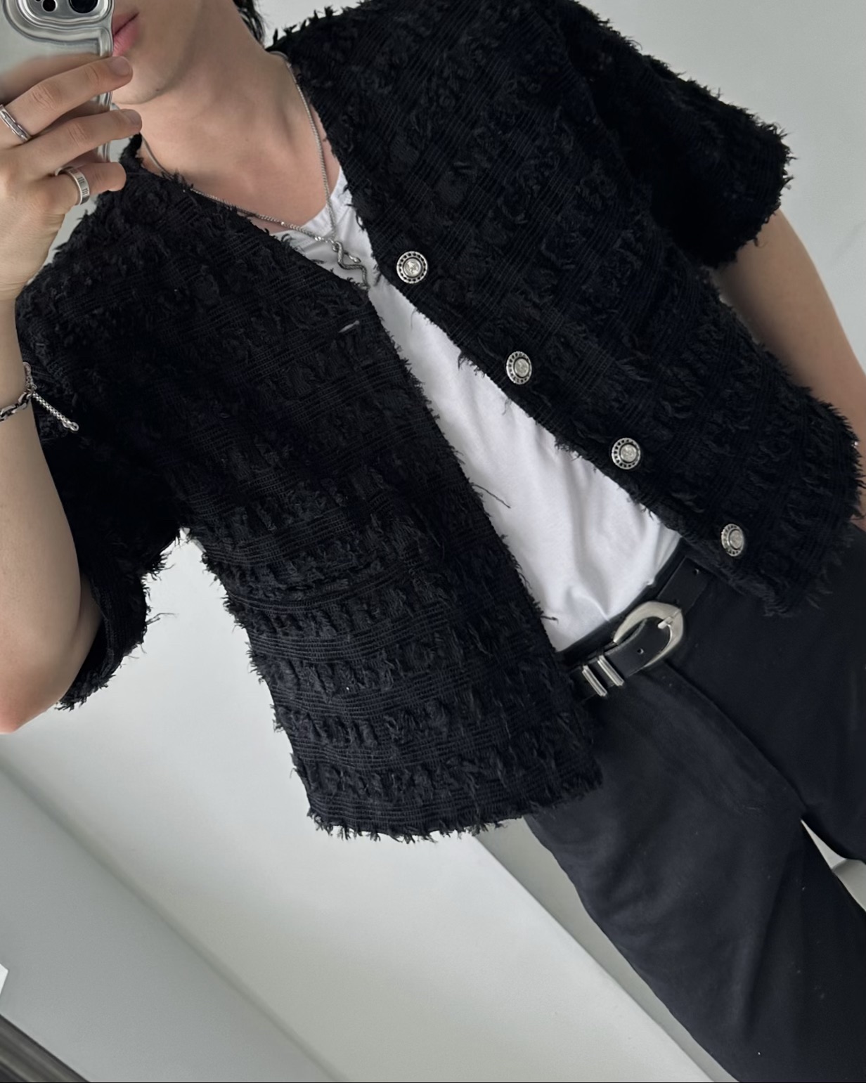-S/S시즌 스타일링 내기 좋은 유니크한 트위드 하프 자켓