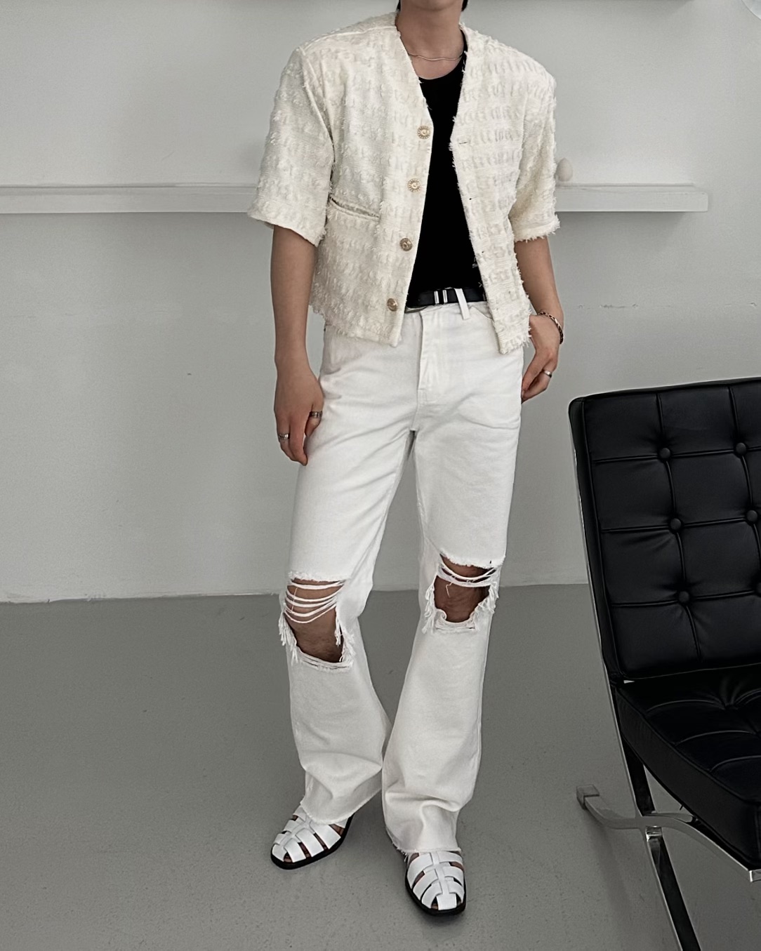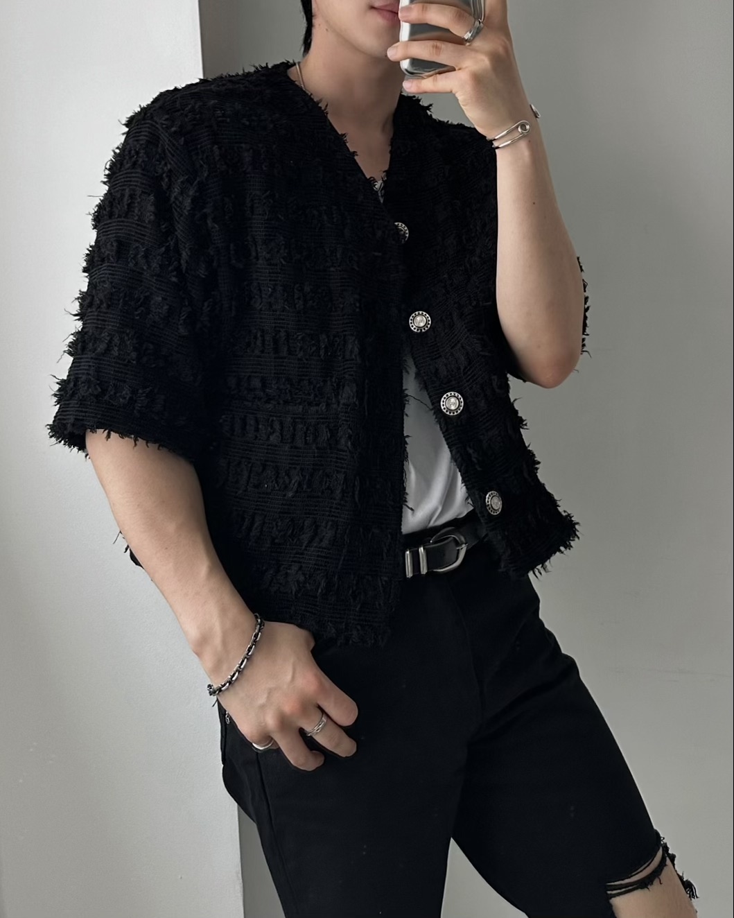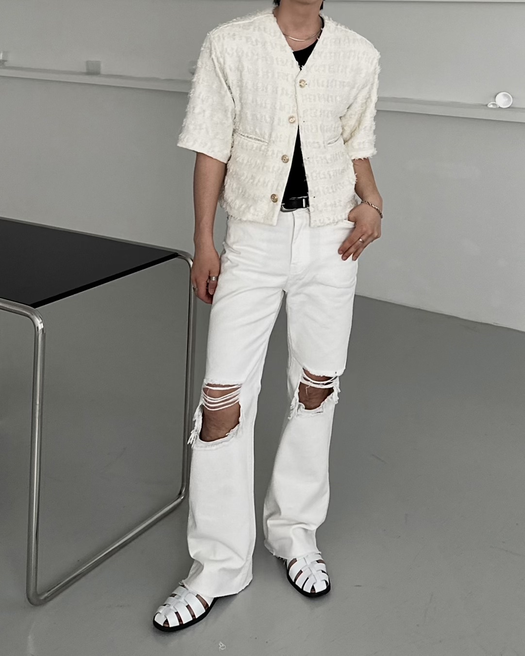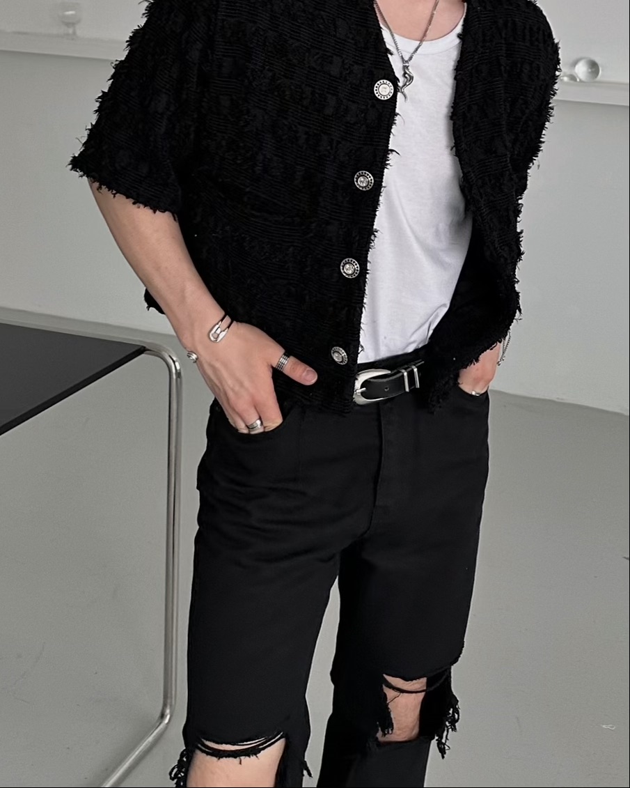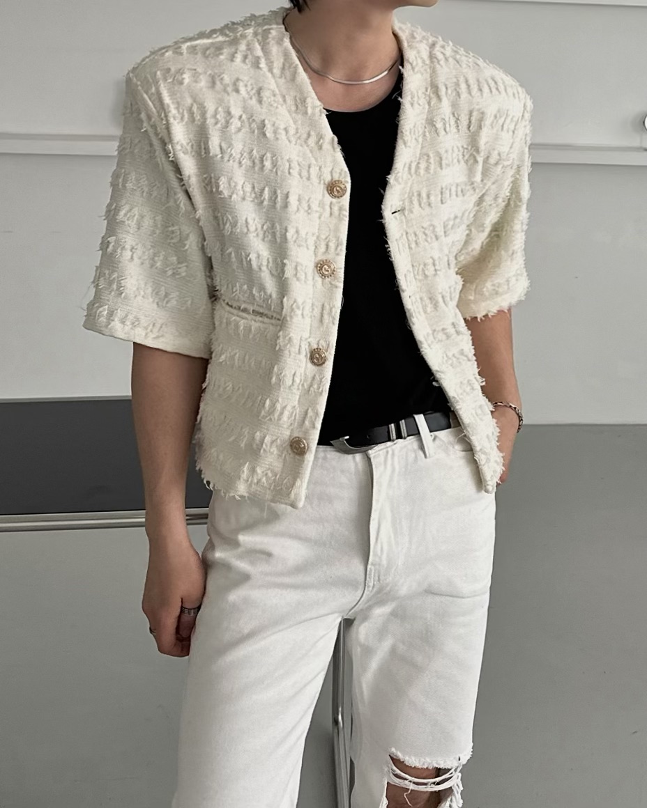 -S/S시즌 스타일링 내기 좋은 유니크한 트위드 하프 자켓