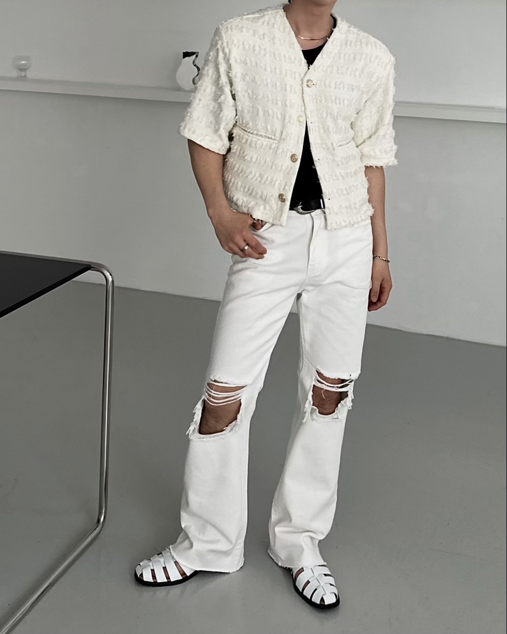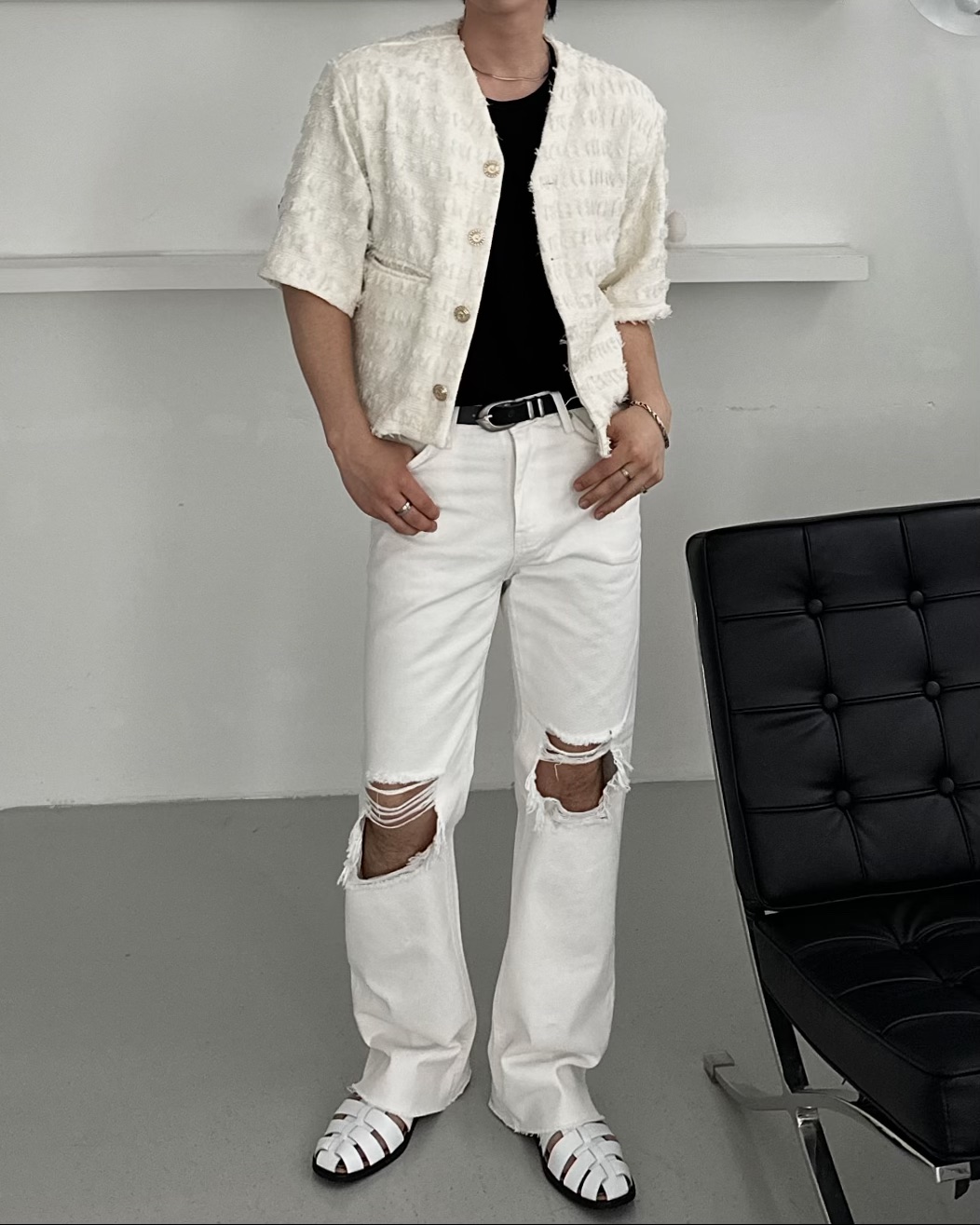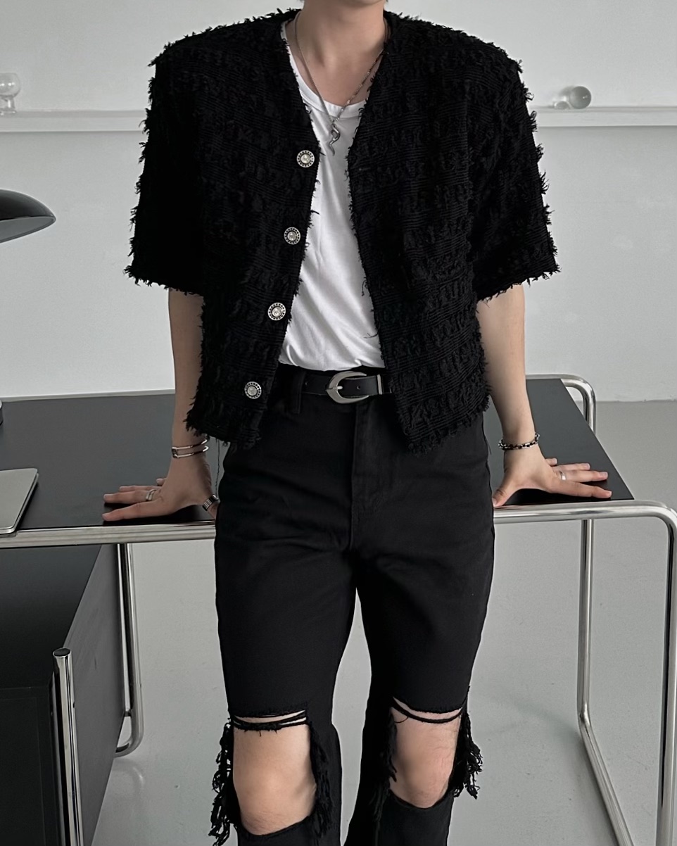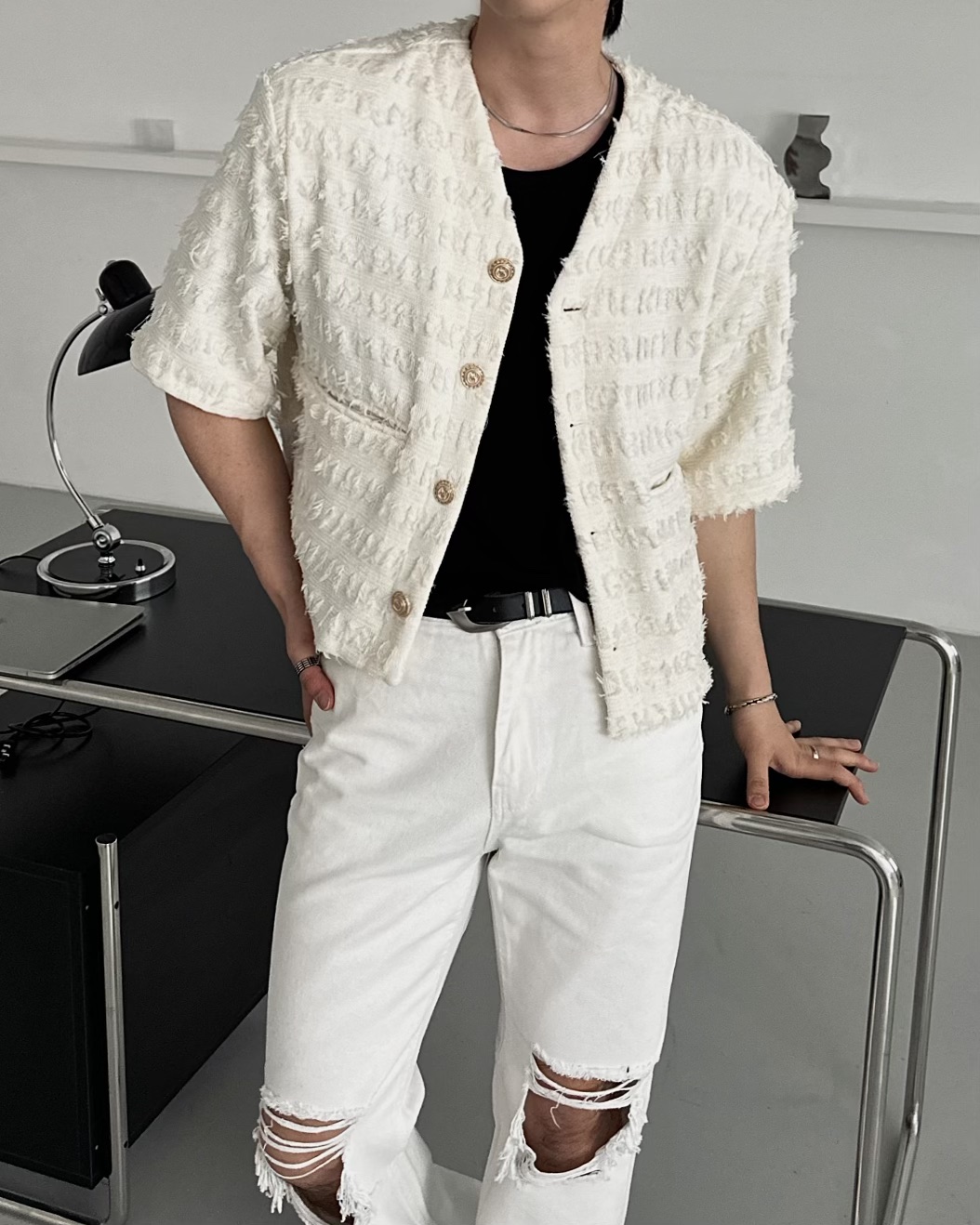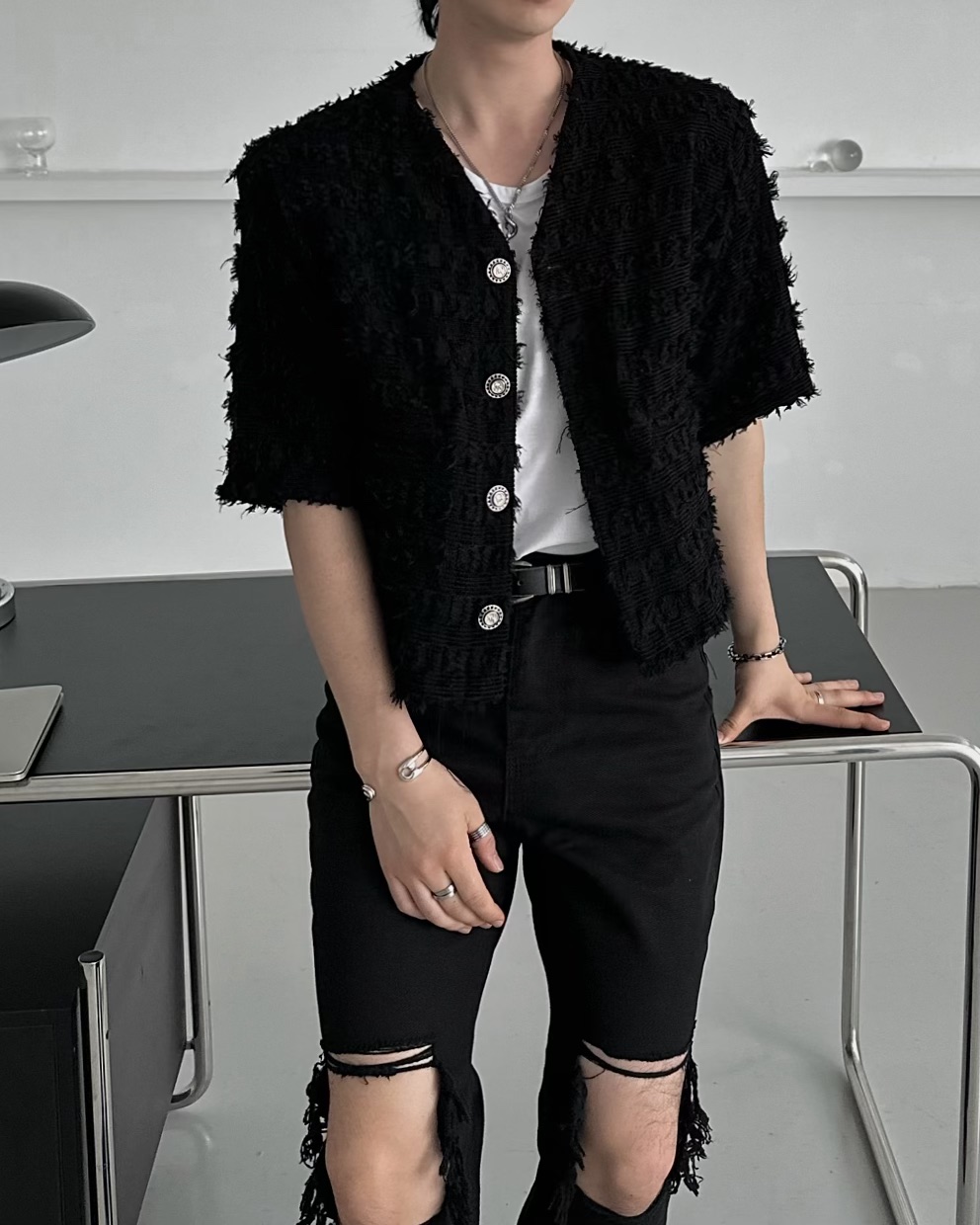 -S/S시즌 스타일링 내기 좋은 유니크한 트위드 하프 자켓