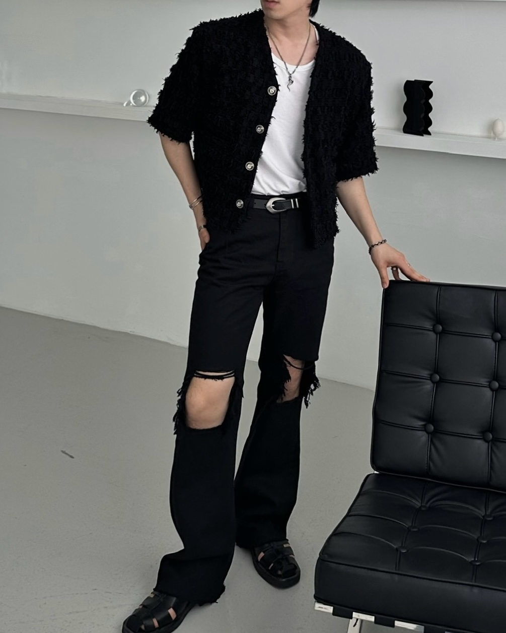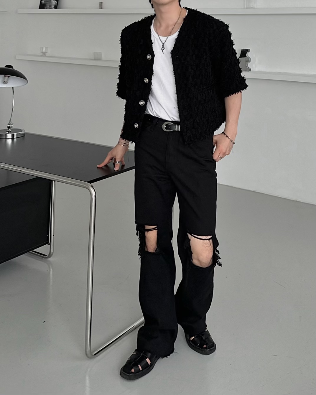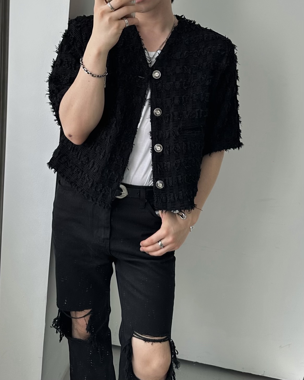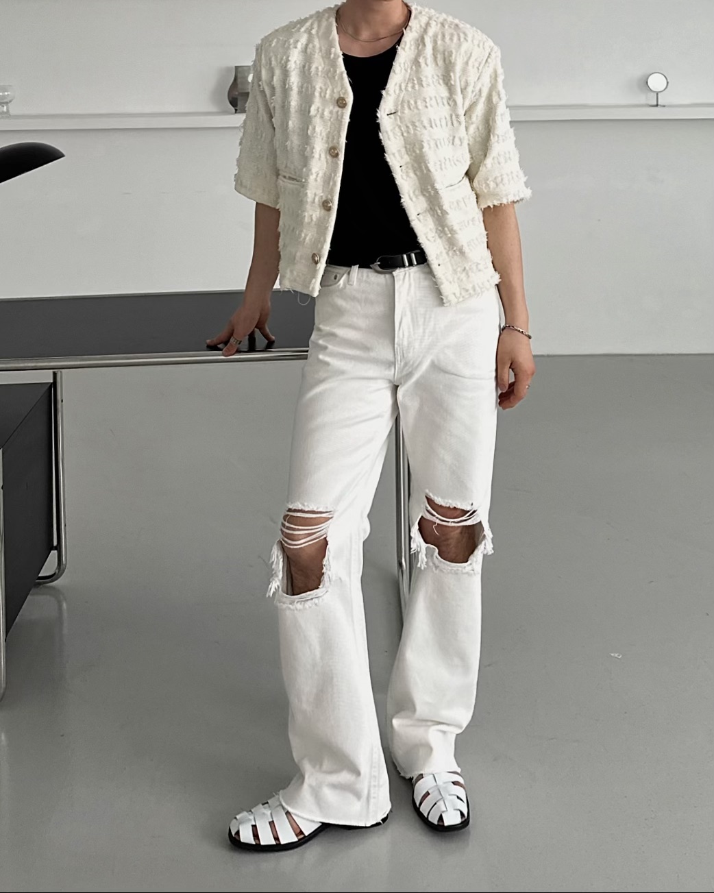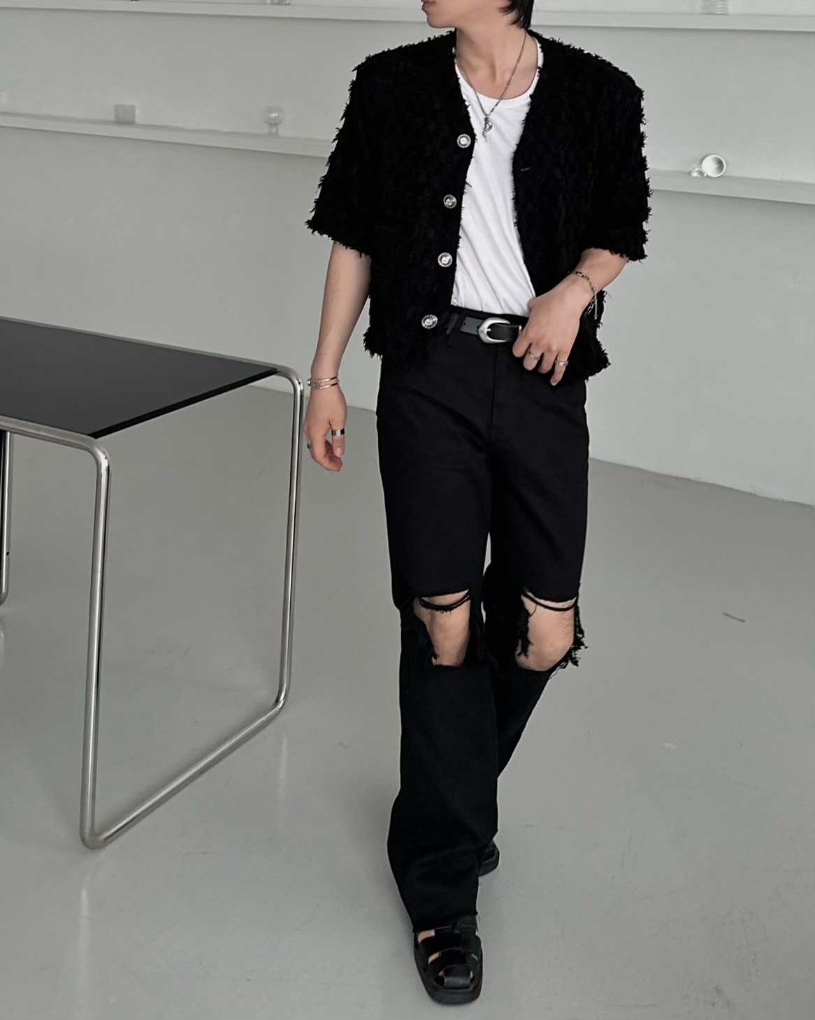 -S/S시즌 스타일링 내기 좋은 유니크한 트위드 하프 자켓
